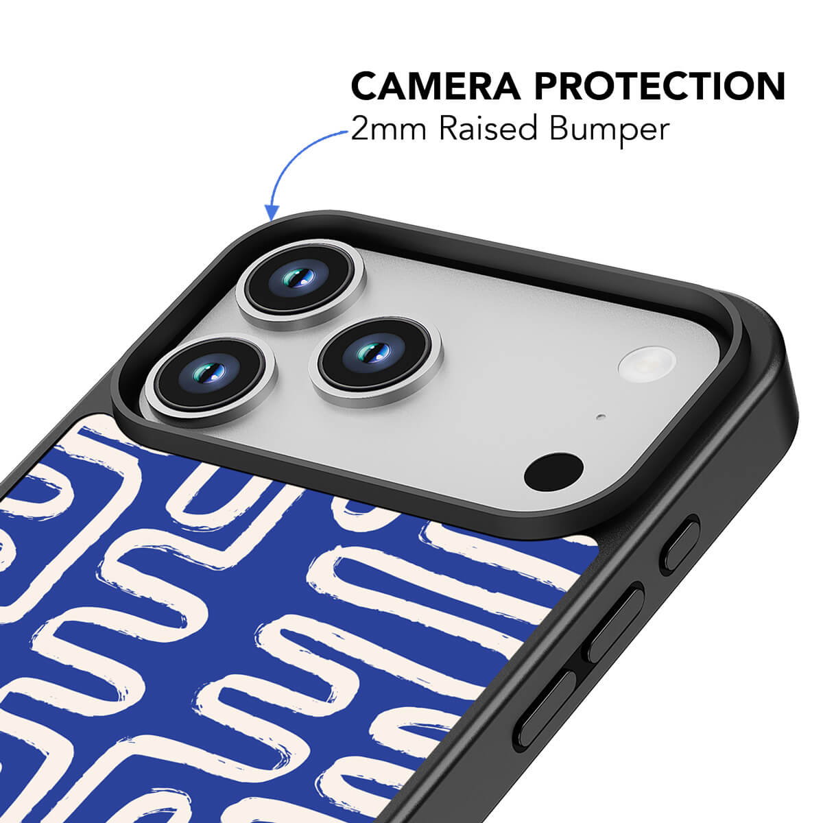 Navigate the twists and turns of style with our Abstract Maze Elite iPhone Case. This case features a bold, maze-like pattern in white against a deep blue background, offering a striking visual impact. Not only does it provide a unique aesthetic, but it also ensures robust protection against bumps and scratches, keeping your iPhone secure in every situation.