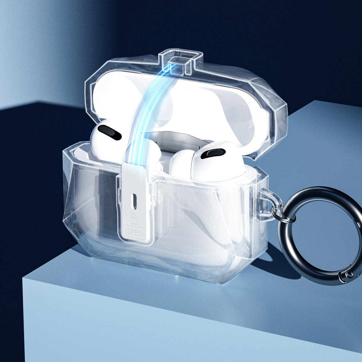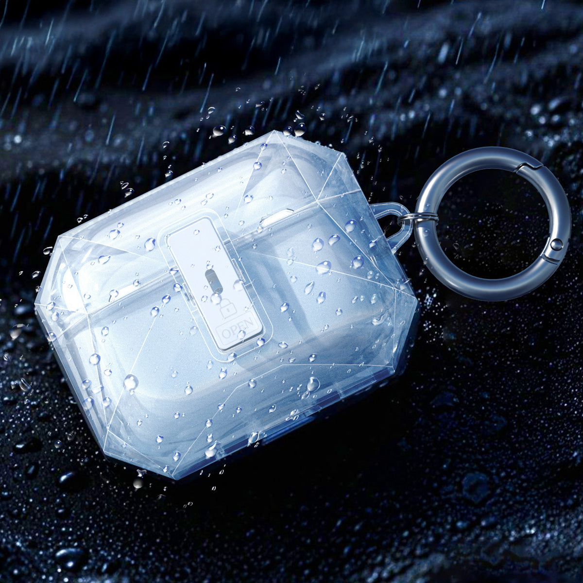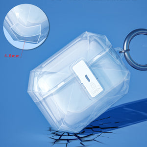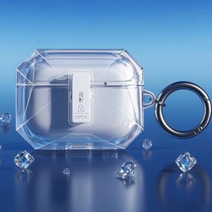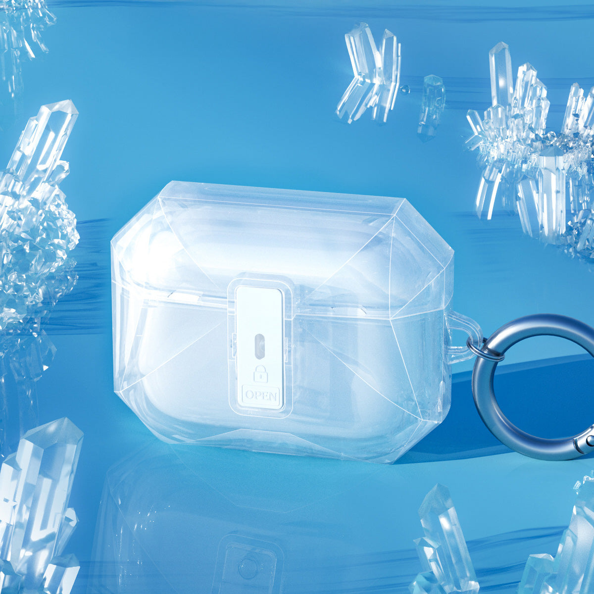 Protect your AirPods in stunning, sculptural style. This transparent AirPods Case features a striking, gem-like design, with geometric facets that catch and refract light like a piece of cut crystal. Its crystal-clear construction beautifully showcases the original minimalist design of your AirPods, while adding a touch of modern artistry. This durable AirPods Case is engineered to provide robust protection from everyday scratches, scuffs, and drops, keeping your tech safe and secure. The included sleek metal carabiner allows you to conveniently attach your AirPods to your keys, bag, or belt loop for easy access and peace of mind.