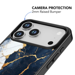Embrace elegance with the Azure Opulence Elite iPhone Case, featuring a stunning blend of deep blue and rich gold marble patterns. This exquisite case combines luxury with durability, offering superior protection while showcasing a regal design. Perfect for those who desire a sophisticated accessory that complements their style, it ensures your phone is safeguarded in grandeur. Elevate your device with this lavish protective case.