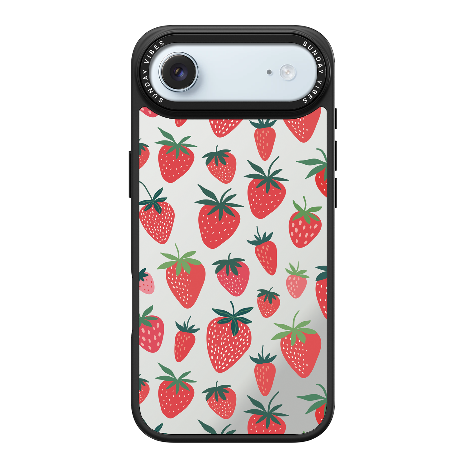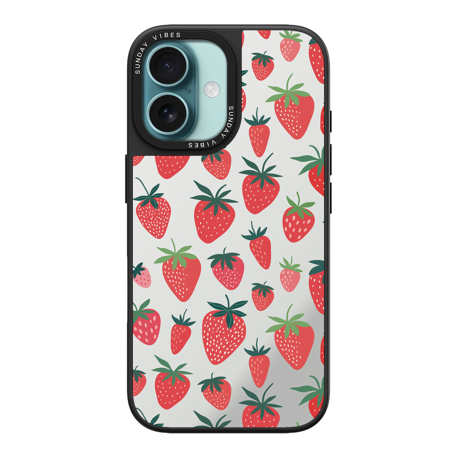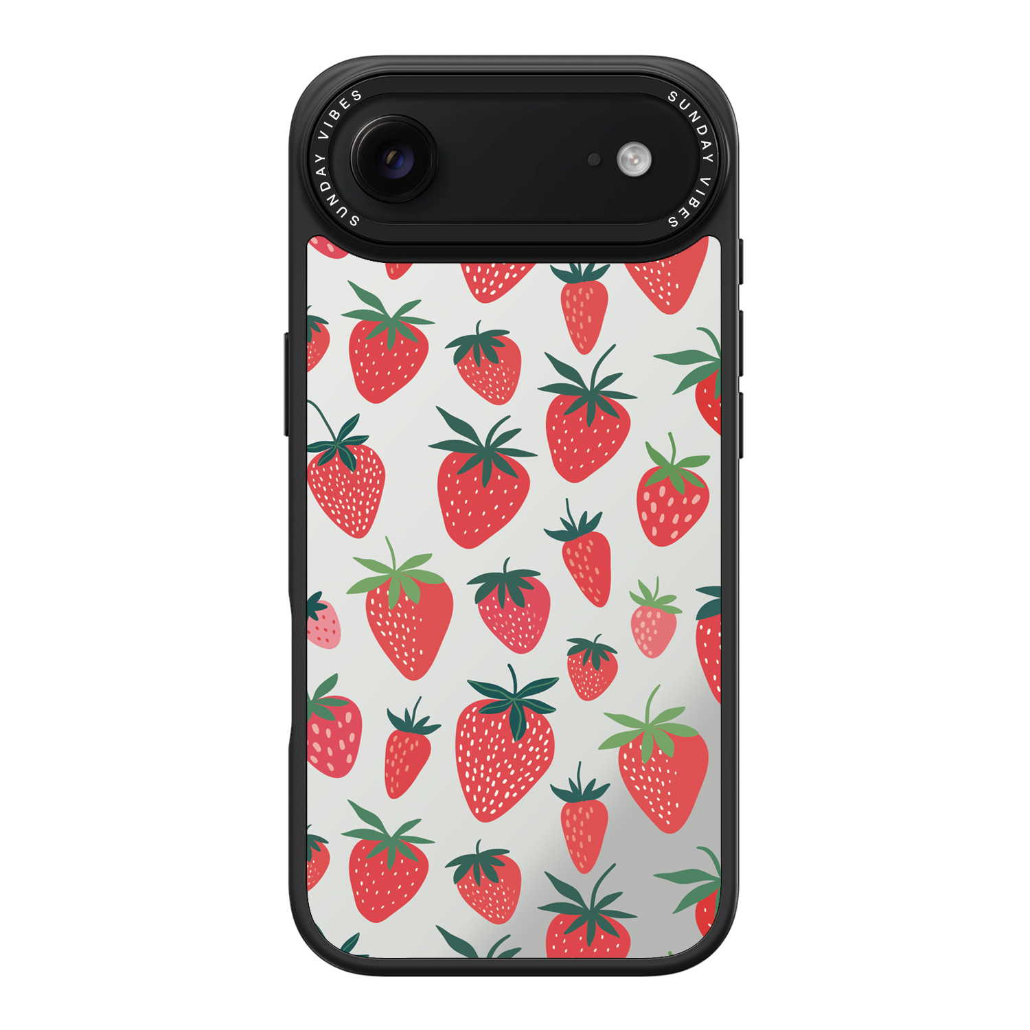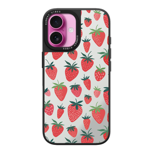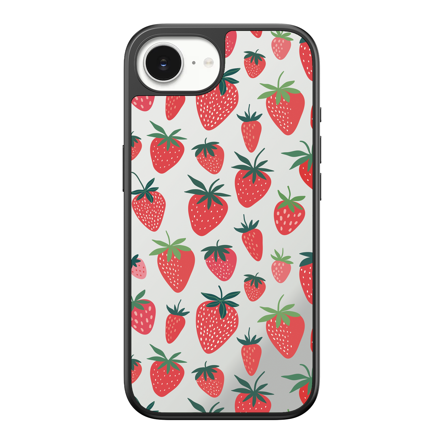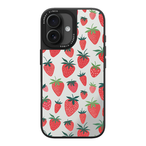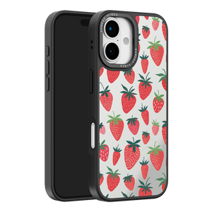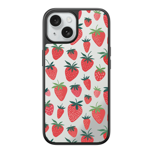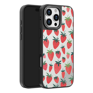 Adorn your device with the pure, vibrant fun of the Berry Cheeky iPhone Case. This striking design showcases a cheerful, repeated pattern of juicy red strawberries and green foliage, set against the highly reflective, functional mirror backing. This fresh, energetic aesthetic ensures you are always ready for a quick style check or selfie. The vibrant print and texture are applied directly onto the mirror surface for maximum visual impact.