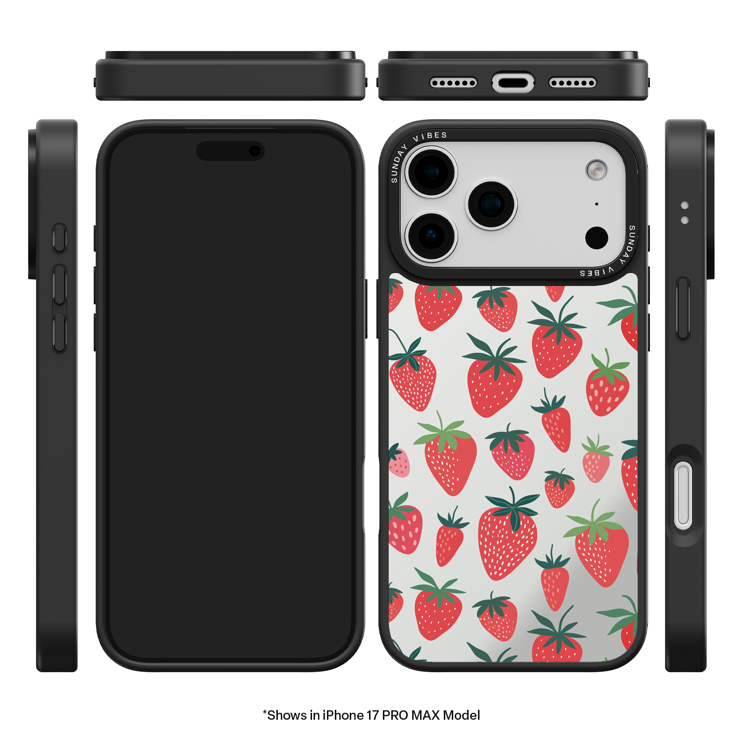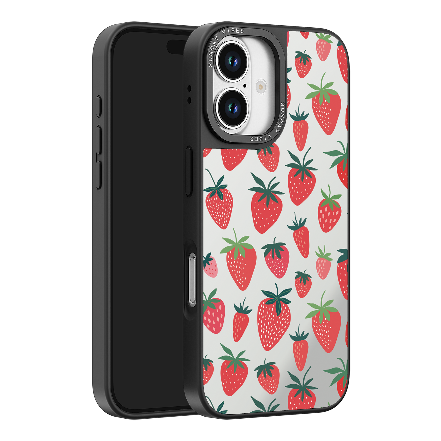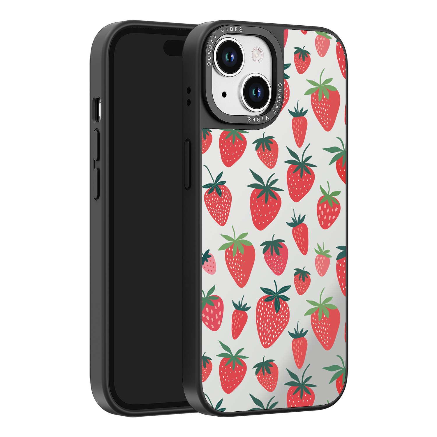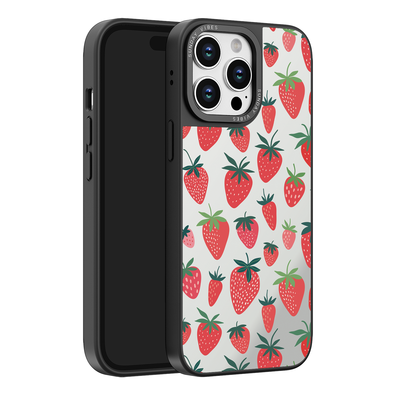 Adorn your device with the pure, vibrant fun of the Berry Cheeky iPhone Case. This striking design showcases a cheerful, repeated pattern of juicy red strawberries and green foliage, set against the highly reflective, functional mirror backing. This fresh, energetic aesthetic ensures you are always ready for a quick style check or selfie. The vibrant print and texture are applied directly onto the mirror surface for maximum visual impact.