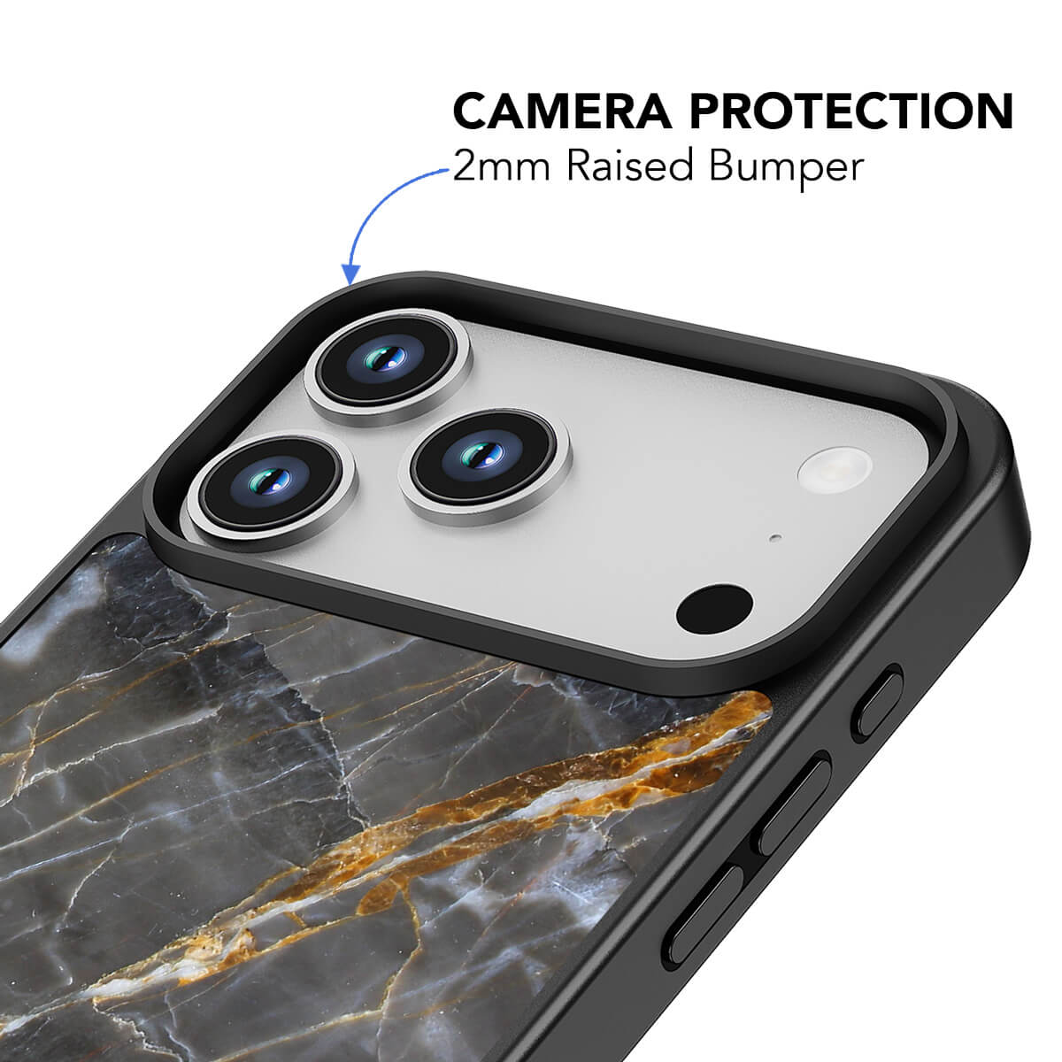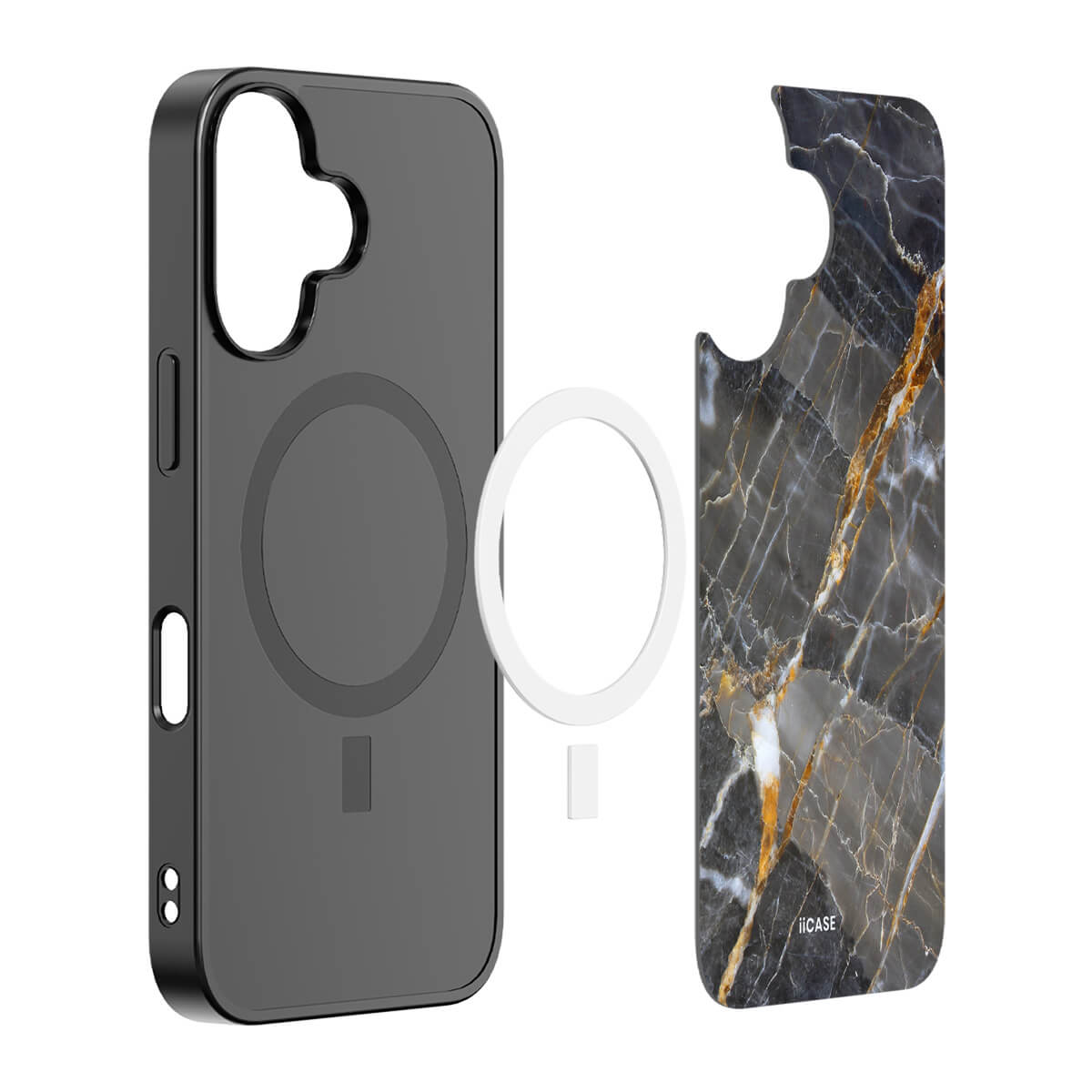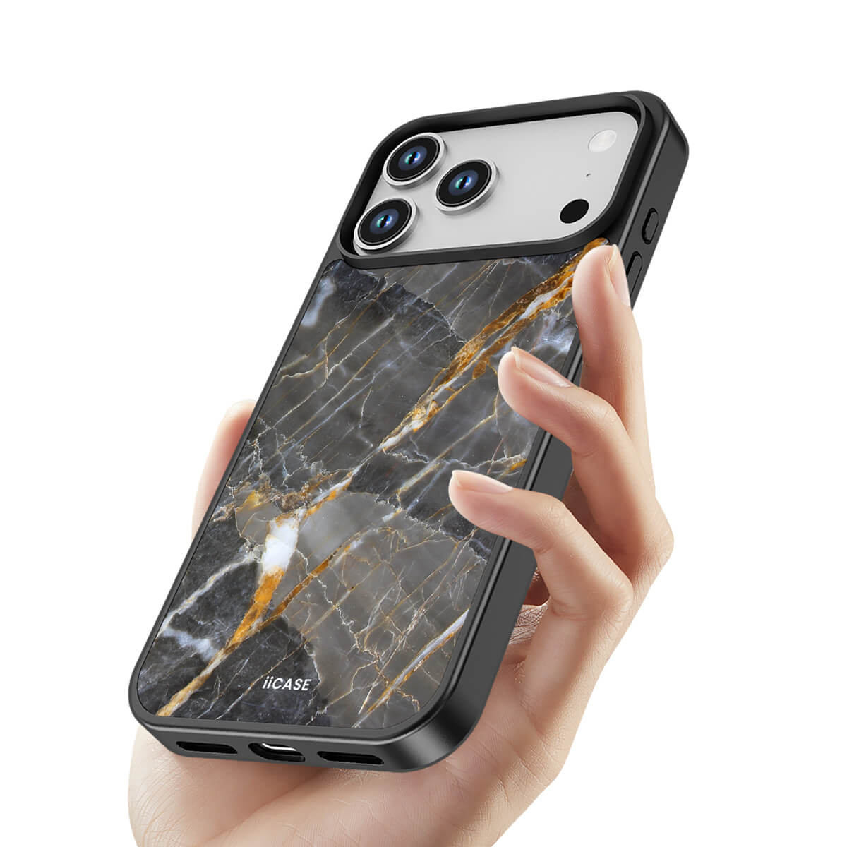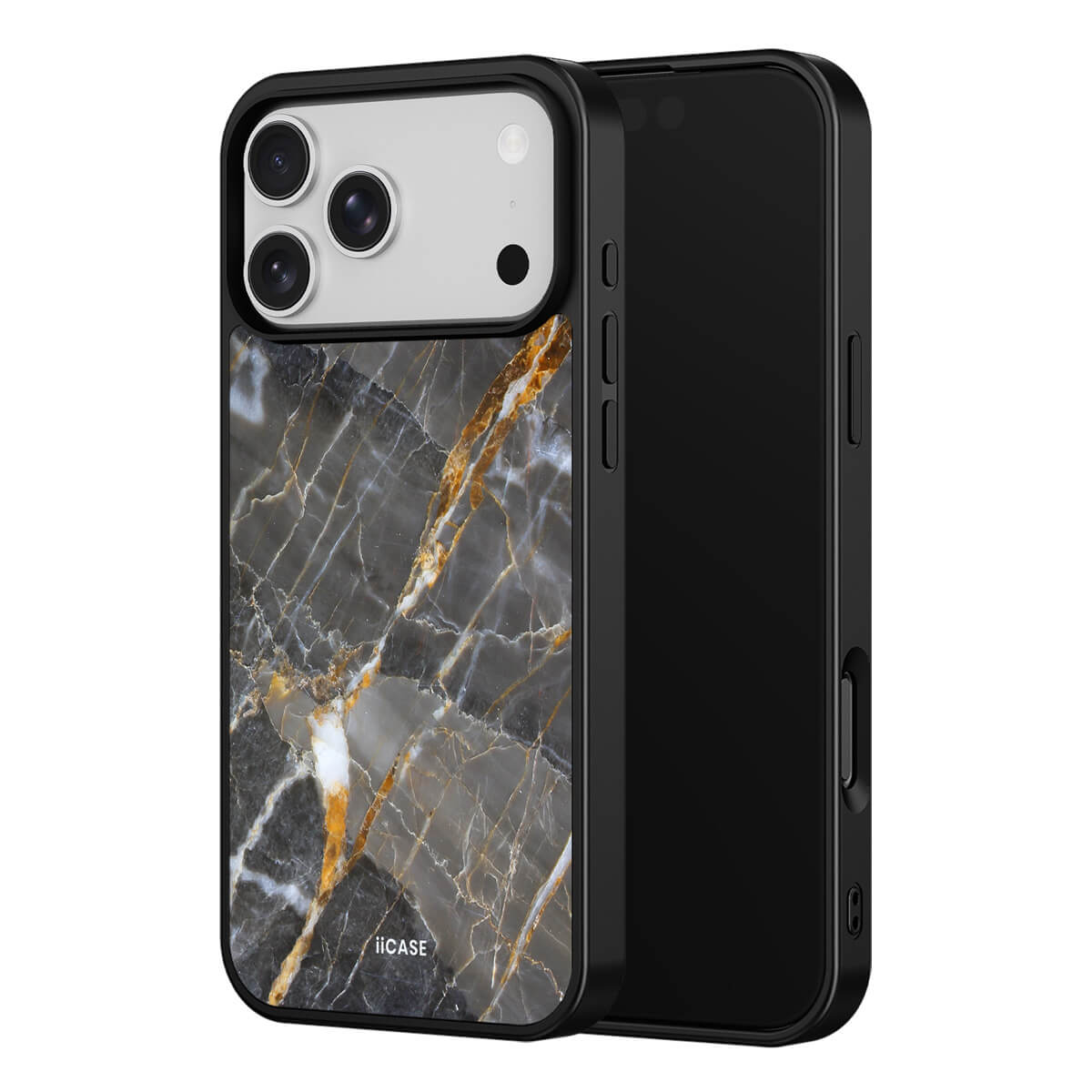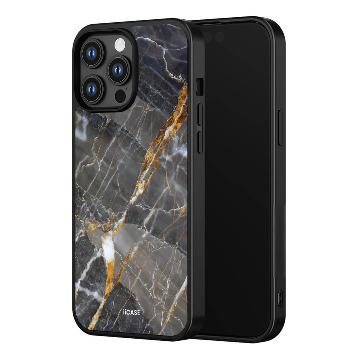 Dress your iPhone in the opulent Dark Elegance Marble Pattern iPhone Case from iiCASE. The rich black marble with intricate gold veins portrays a luxurious aesthetic. This is not just about premium style; it's a fortress for your phone, ready to protect against the rigors of daily life.