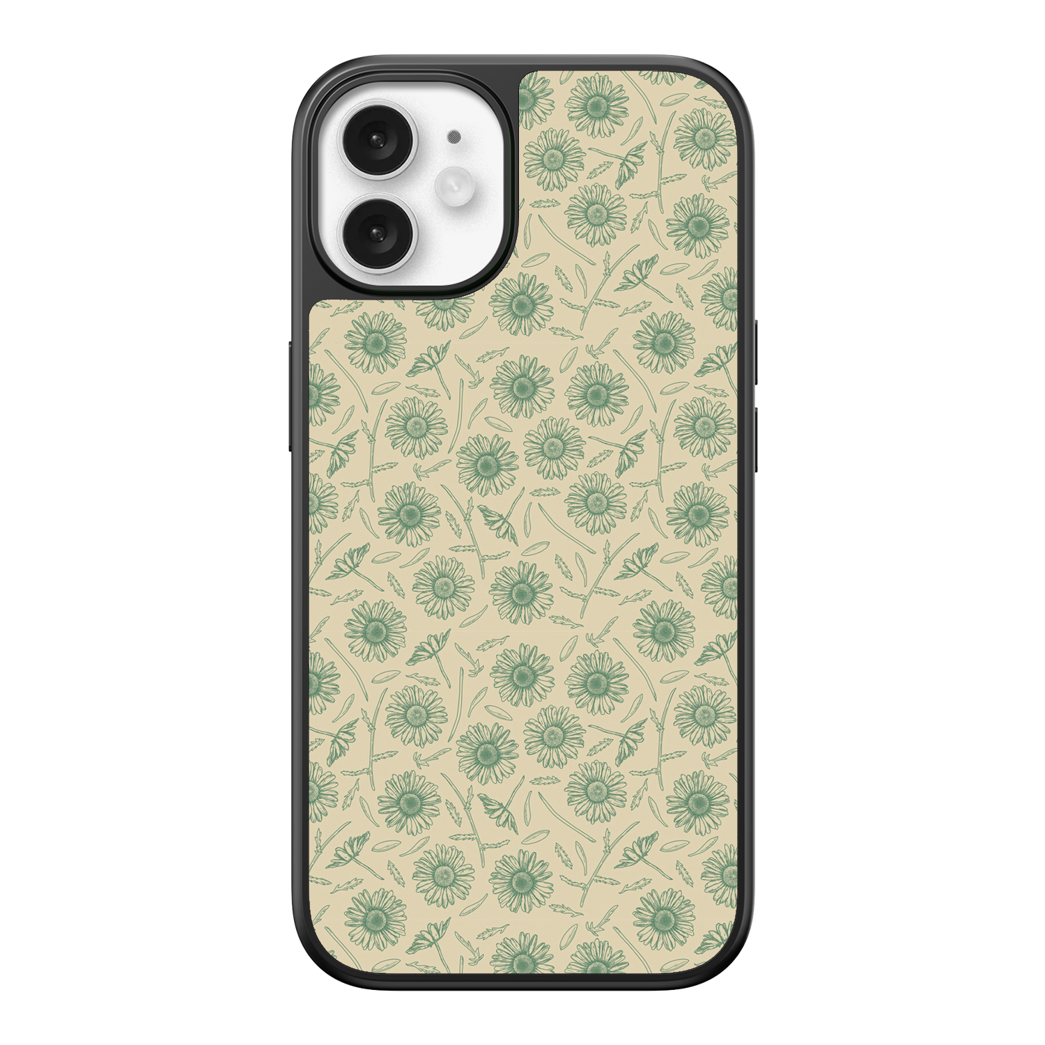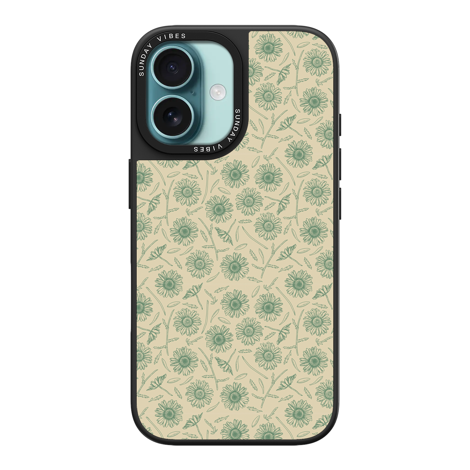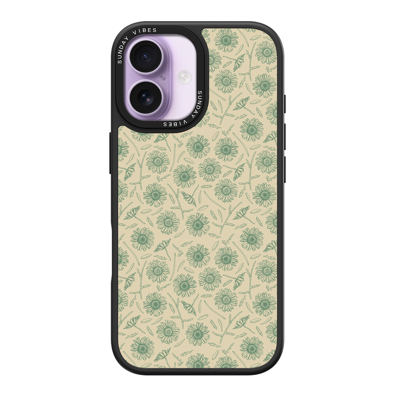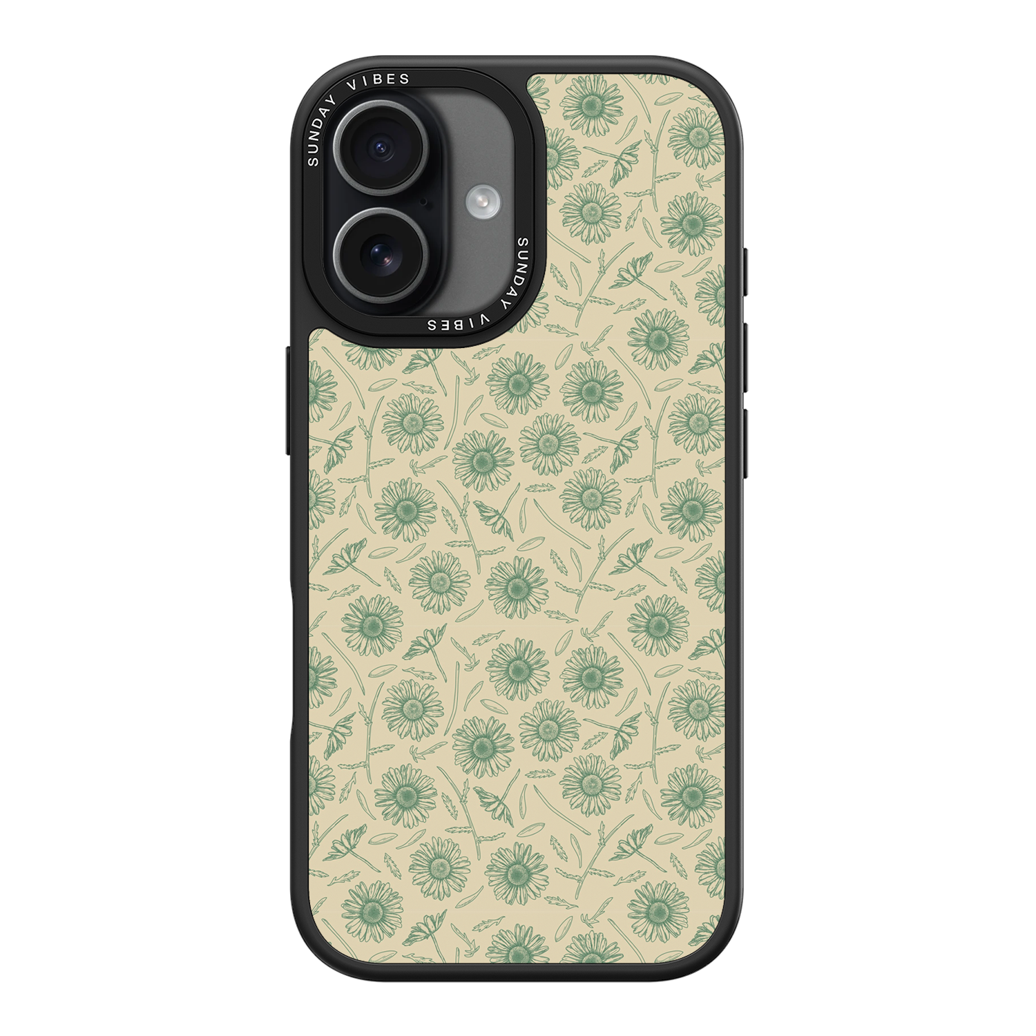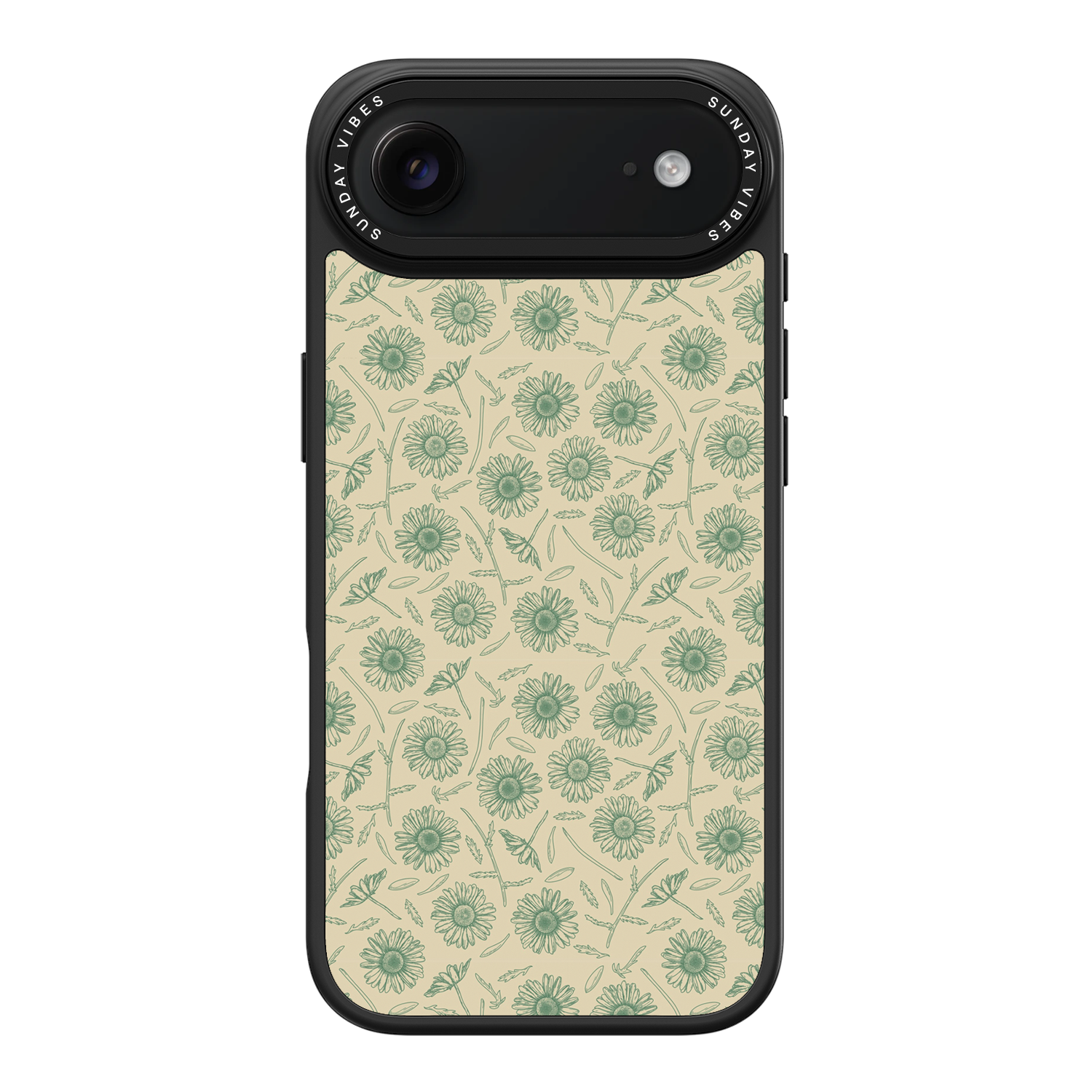Adorn your device with the quiet poetry of the Enchanted Meadow iPhone Case. This striking design features a delicate, vintage line-art pattern of daisies and foliage, rendered in subtle sage green against a warm, creamy background. This beautiful print creates a serene, deeply sophisticated aesthetic that feels both timeless and unique. The core artistic integrity is preserved by the case's premium 3-layer back panel: a base layer for protection, a middle ultra HD gallery print layer for precise detail, and a velvet smooth anti-scratch and anti-fingerprint top coating.