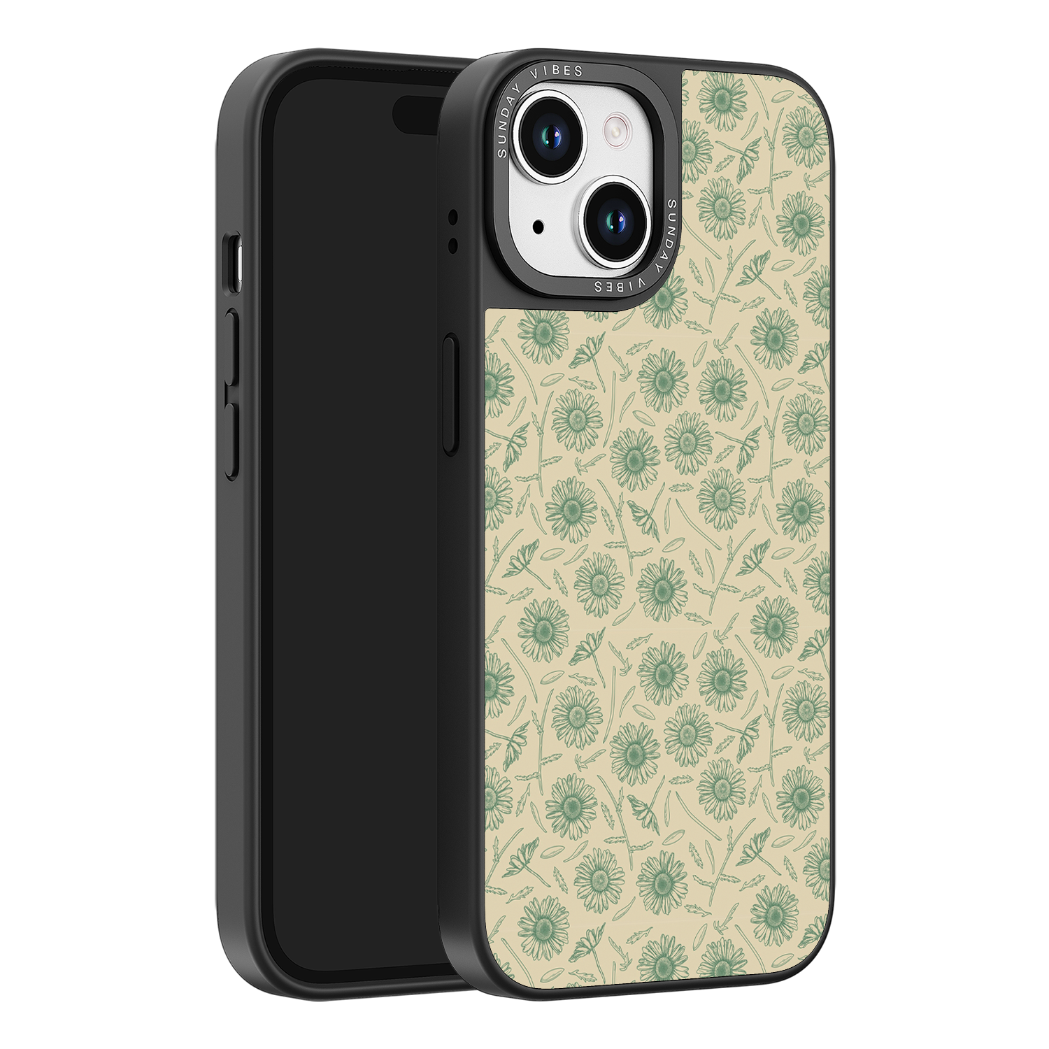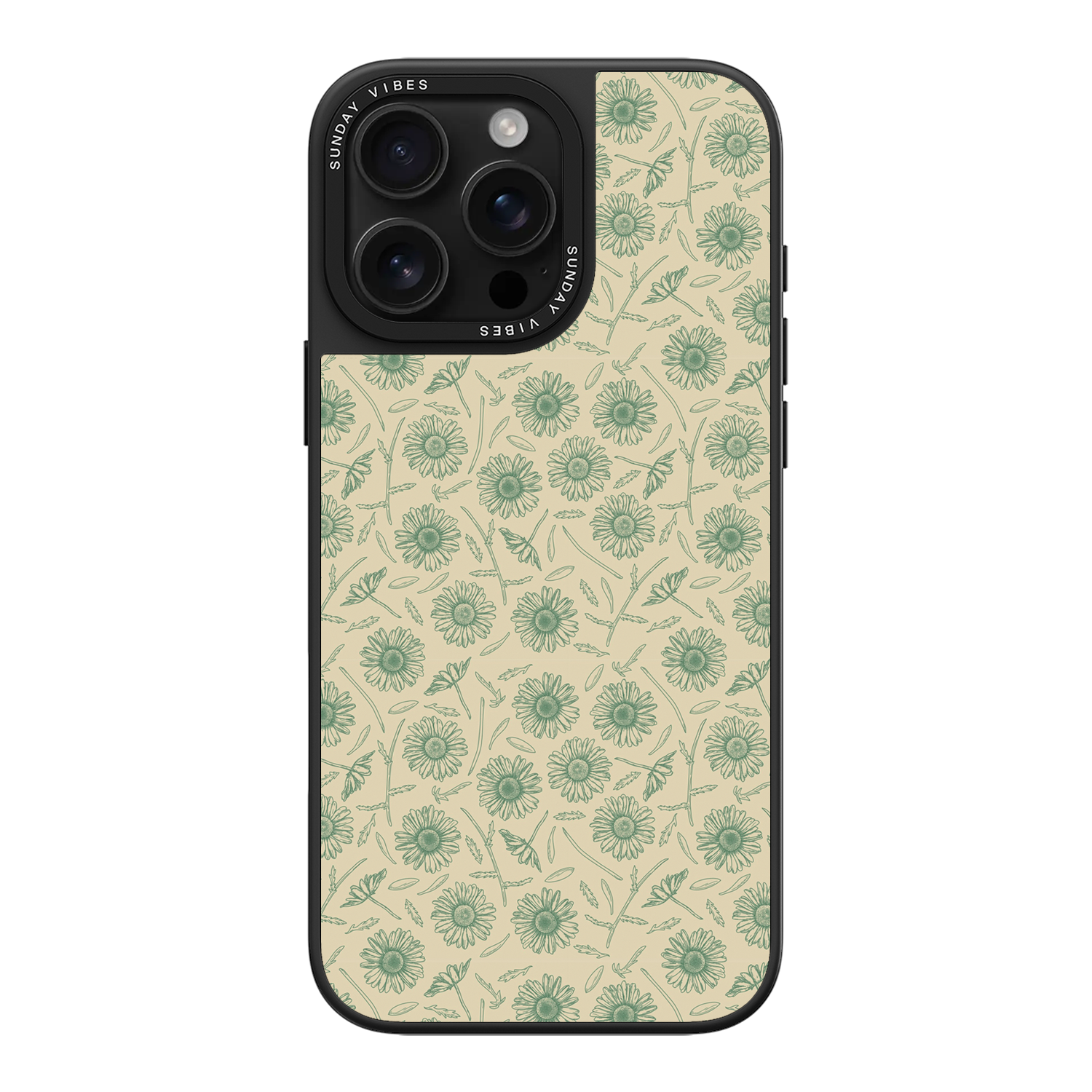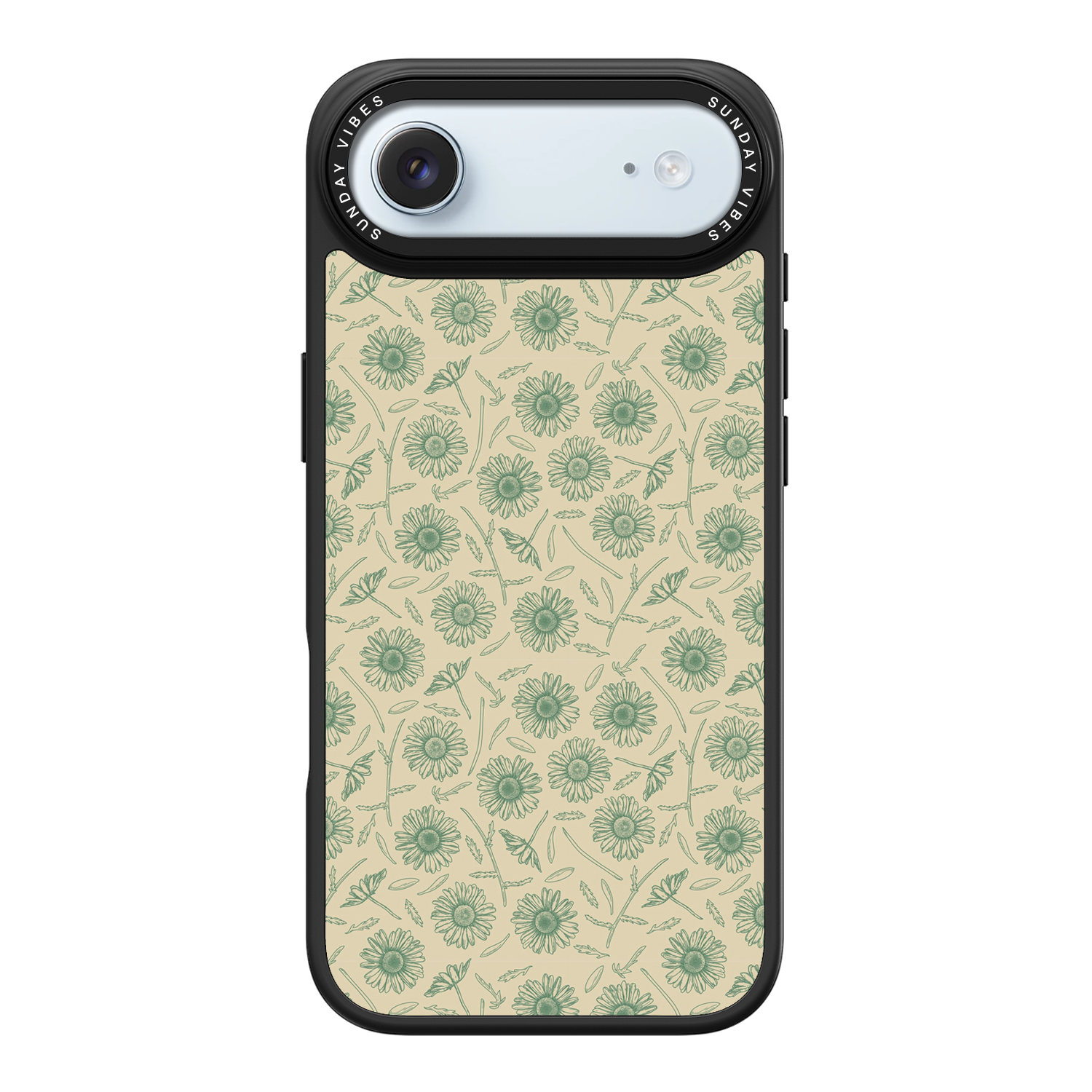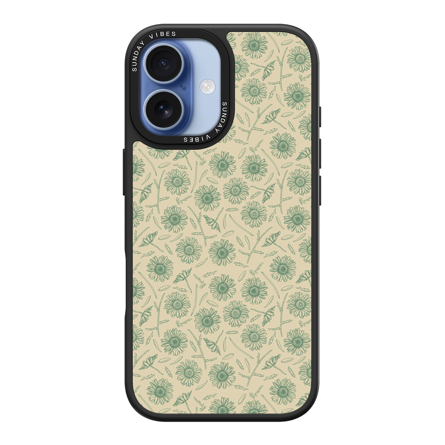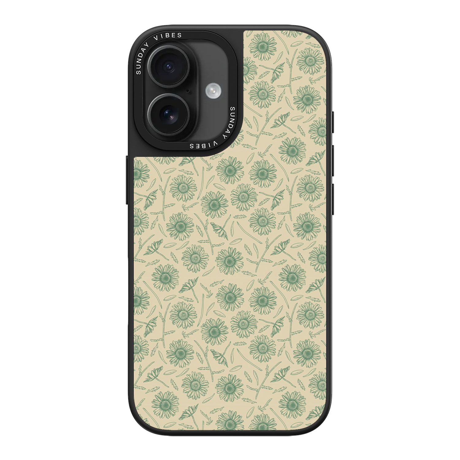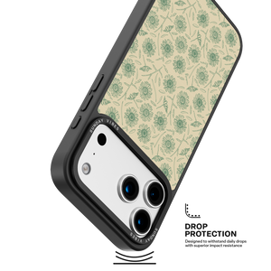 Adorn your device with the quiet poetry of the Enchanted Meadow iPhone Case. This striking design features a delicate, vintage line-art pattern of daisies and foliage, rendered in subtle sage green against a warm, creamy background. This beautiful print creates a serene, deeply sophisticated aesthetic that feels both timeless and unique. The core artistic integrity is preserved by the case's premium 3-layer back panel: a base layer for protection, a middle ultra HD gallery print layer for precise detail, and a velvet smooth anti-scratch and anti-fingerprint top coating.