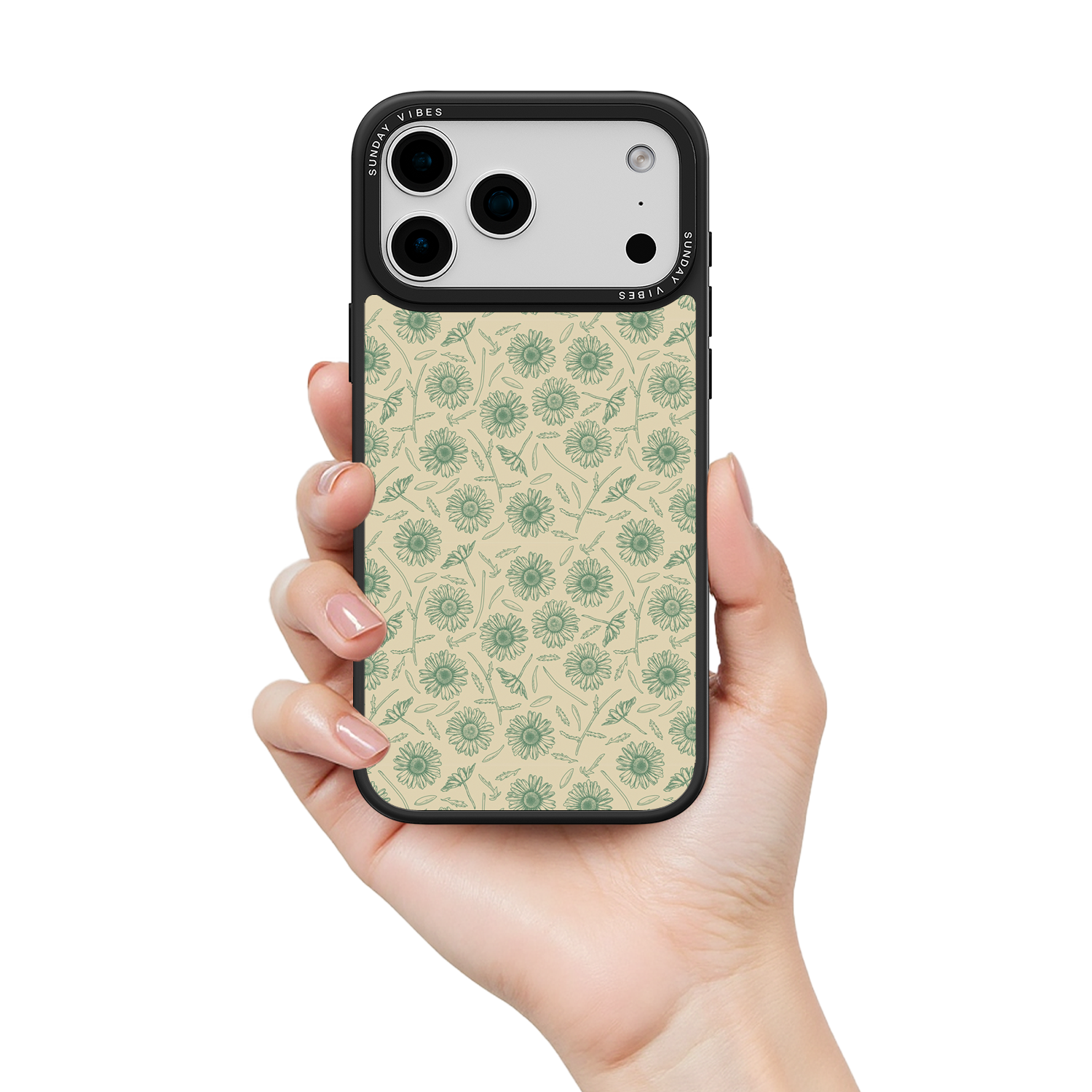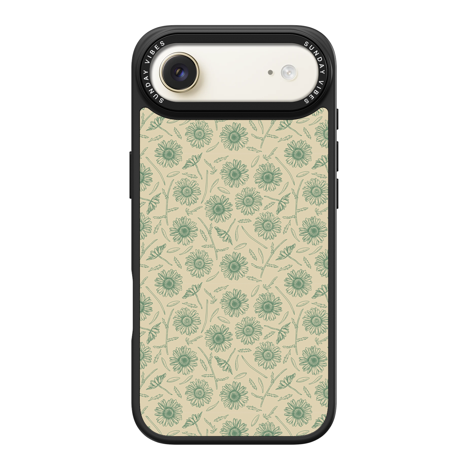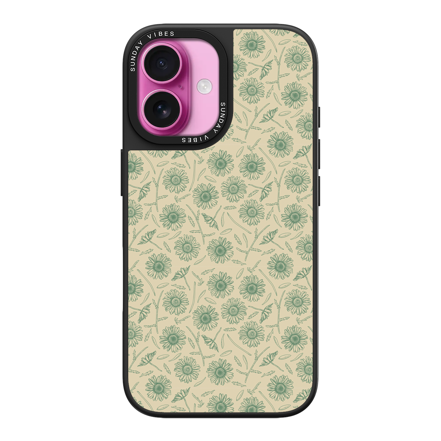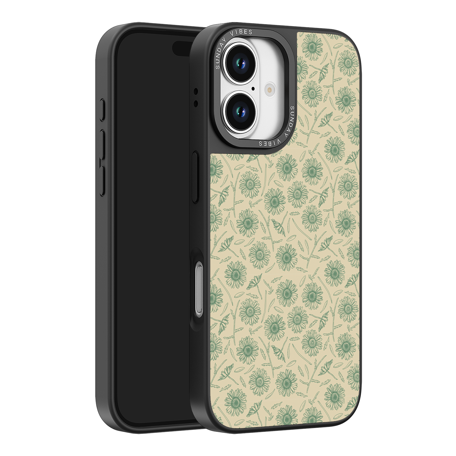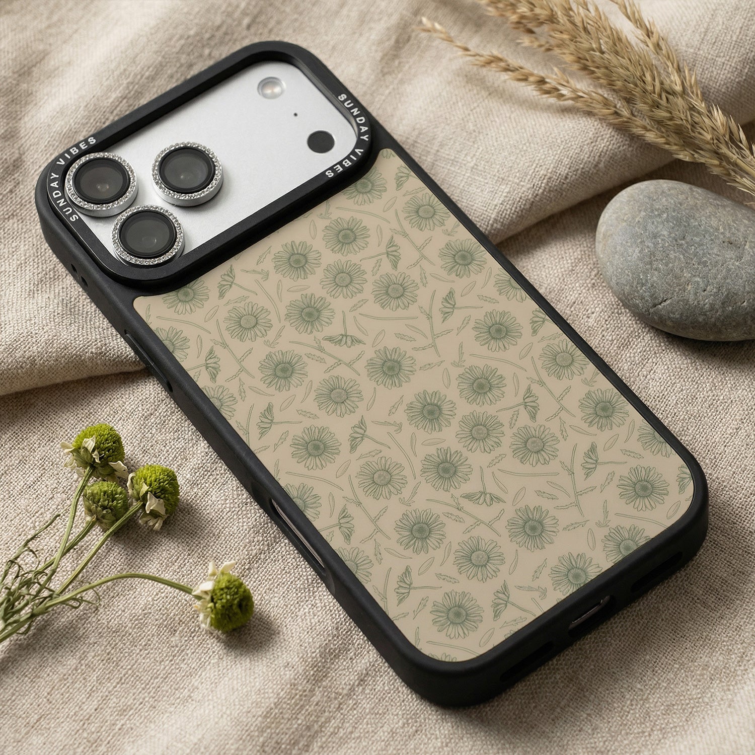 Adorn your device with the quiet poetry of the Enchanted Meadow iPhone Case. This striking design features a delicate, vintage line-art pattern of daisies and foliage, rendered in subtle sage green against a warm, creamy background. This beautiful print creates a serene, deeply sophisticated aesthetic that feels both timeless and unique. The core artistic integrity is preserved by the case's premium 3-layer back panel: a base layer for protection, a middle ultra HD gallery print layer for precise detail, and a velvet smooth anti-scratch and anti-fingerprint top coating.
