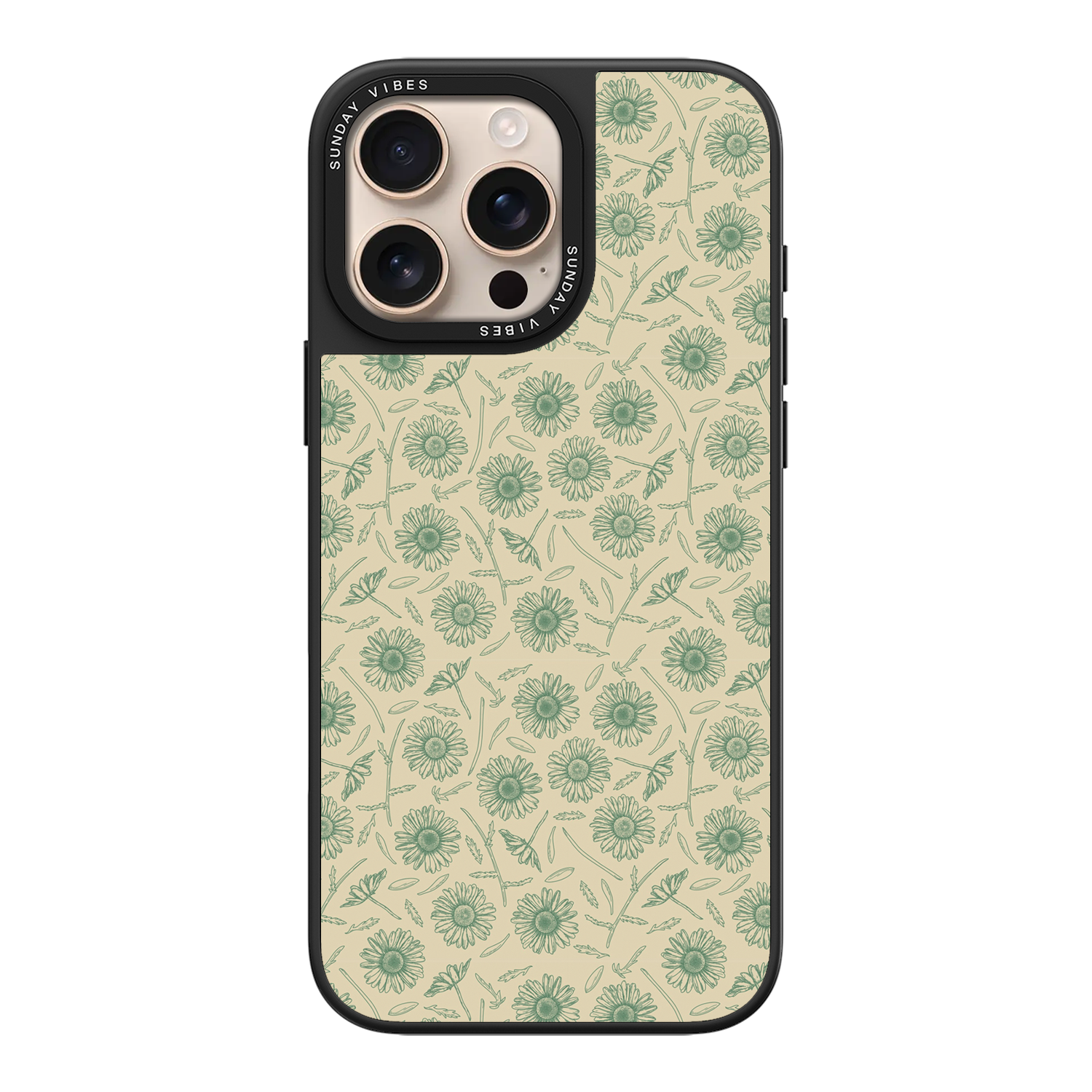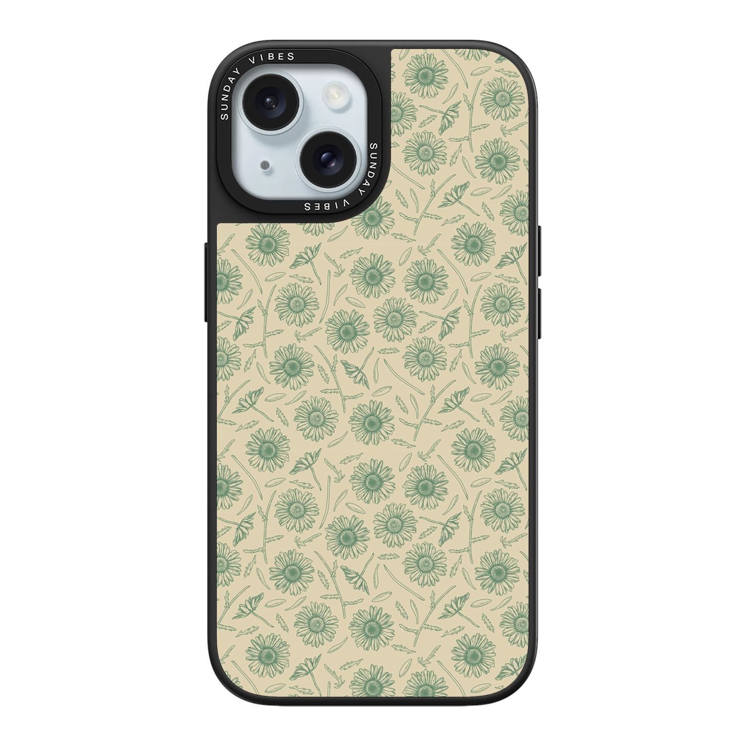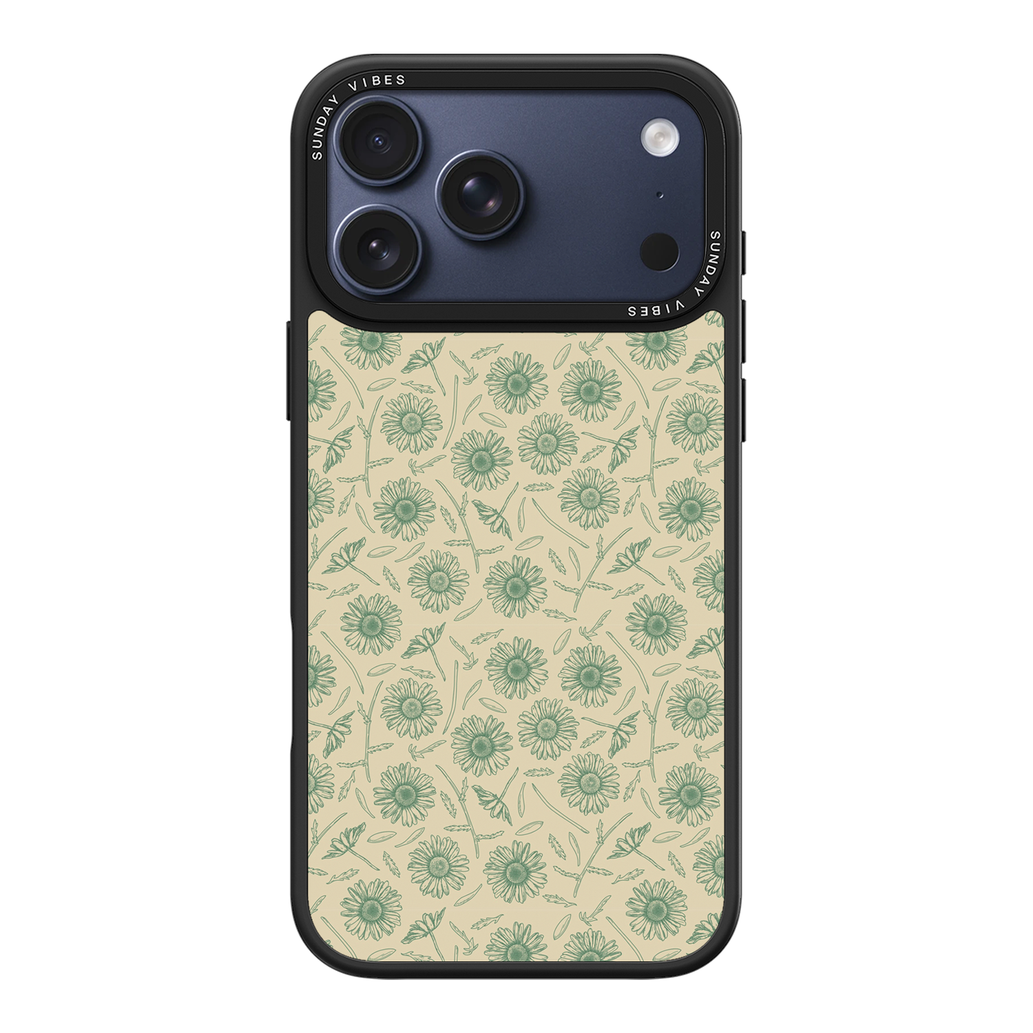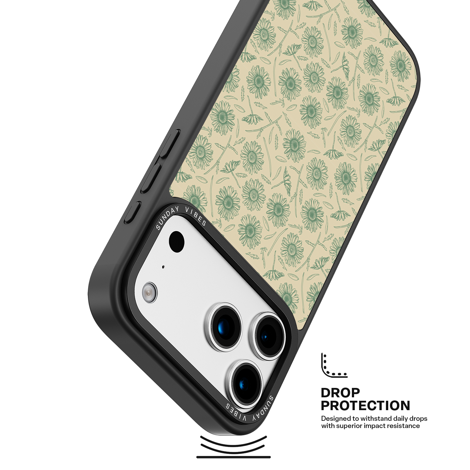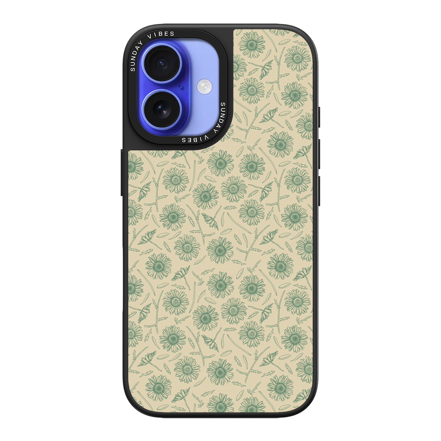 Adorn your device with the quiet poetry of the Enchanted Meadow iPhone Case. This striking design features a delicate, vintage line-art pattern of daisies and foliage, rendered in subtle sage green against a warm, creamy background. This beautiful print creates a serene, deeply sophisticated aesthetic that feels both timeless and unique. The core artistic integrity is preserved by the case's premium 3-layer back panel: a base layer for protection, a middle ultra HD gallery print layer for precise detail, and a velvet smooth anti-scratch and anti-fingerprint top coating.