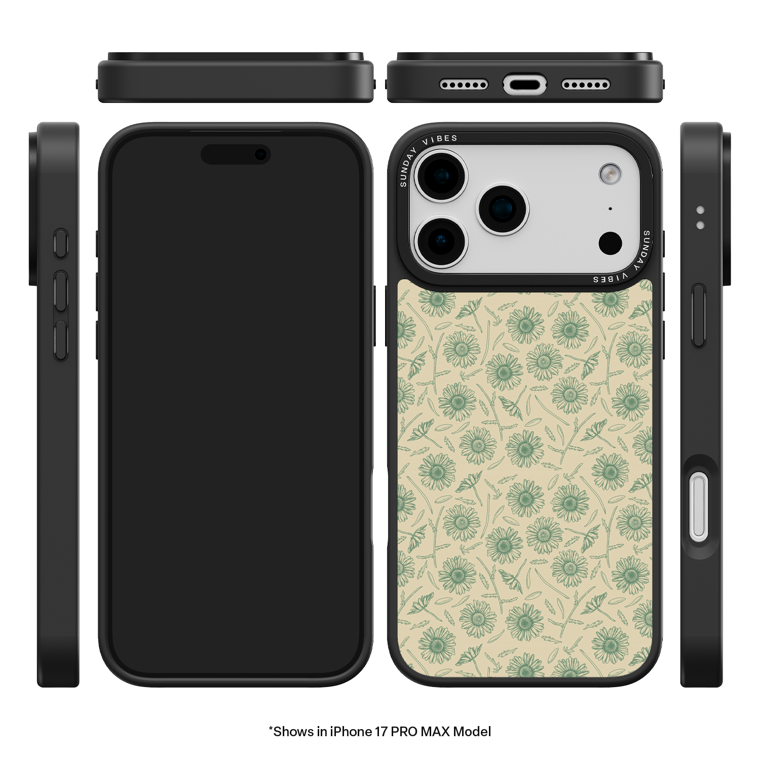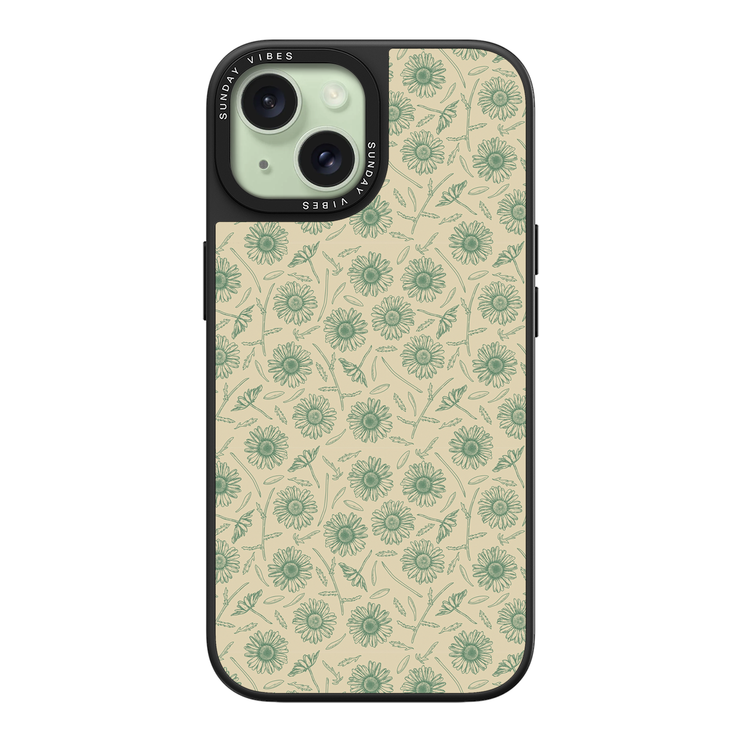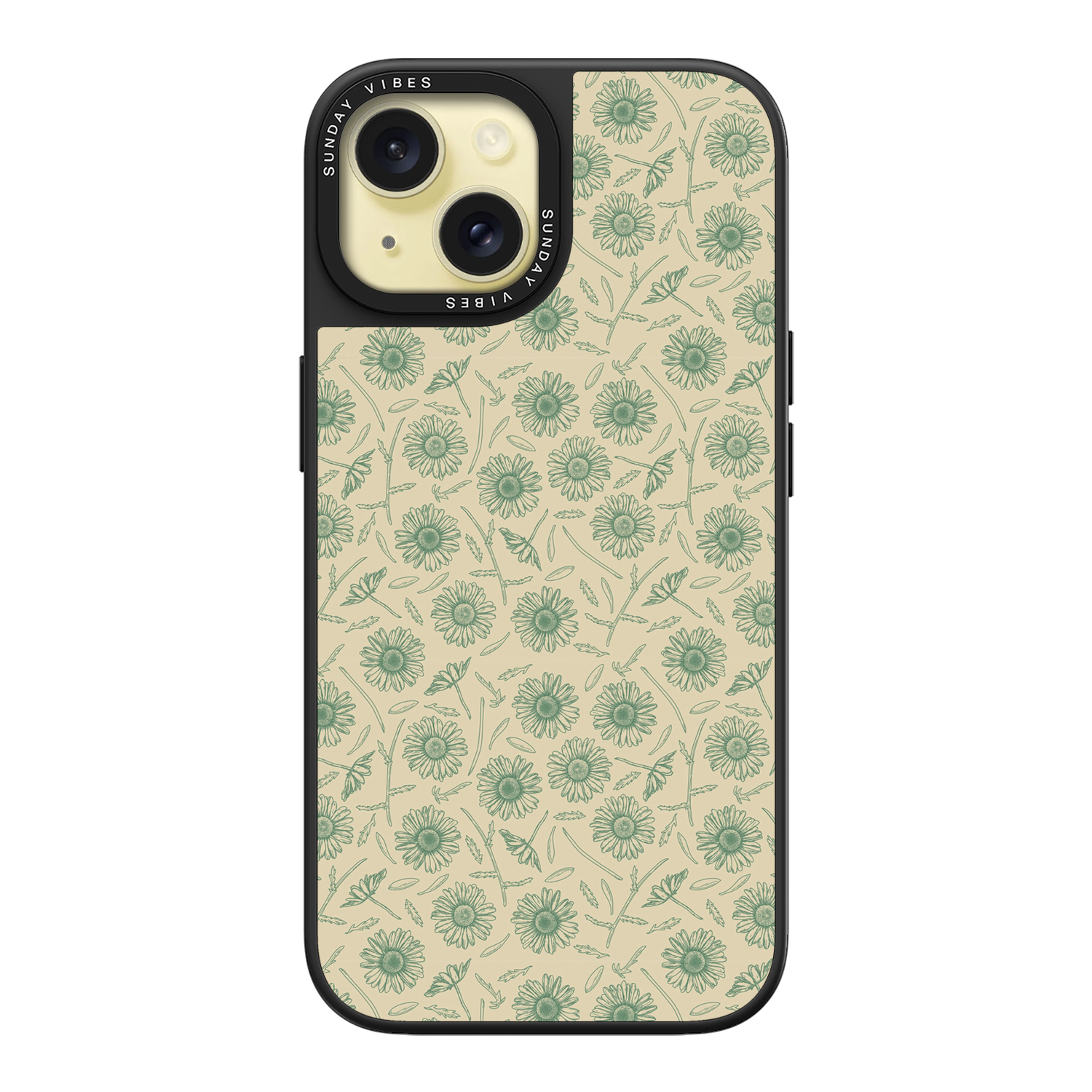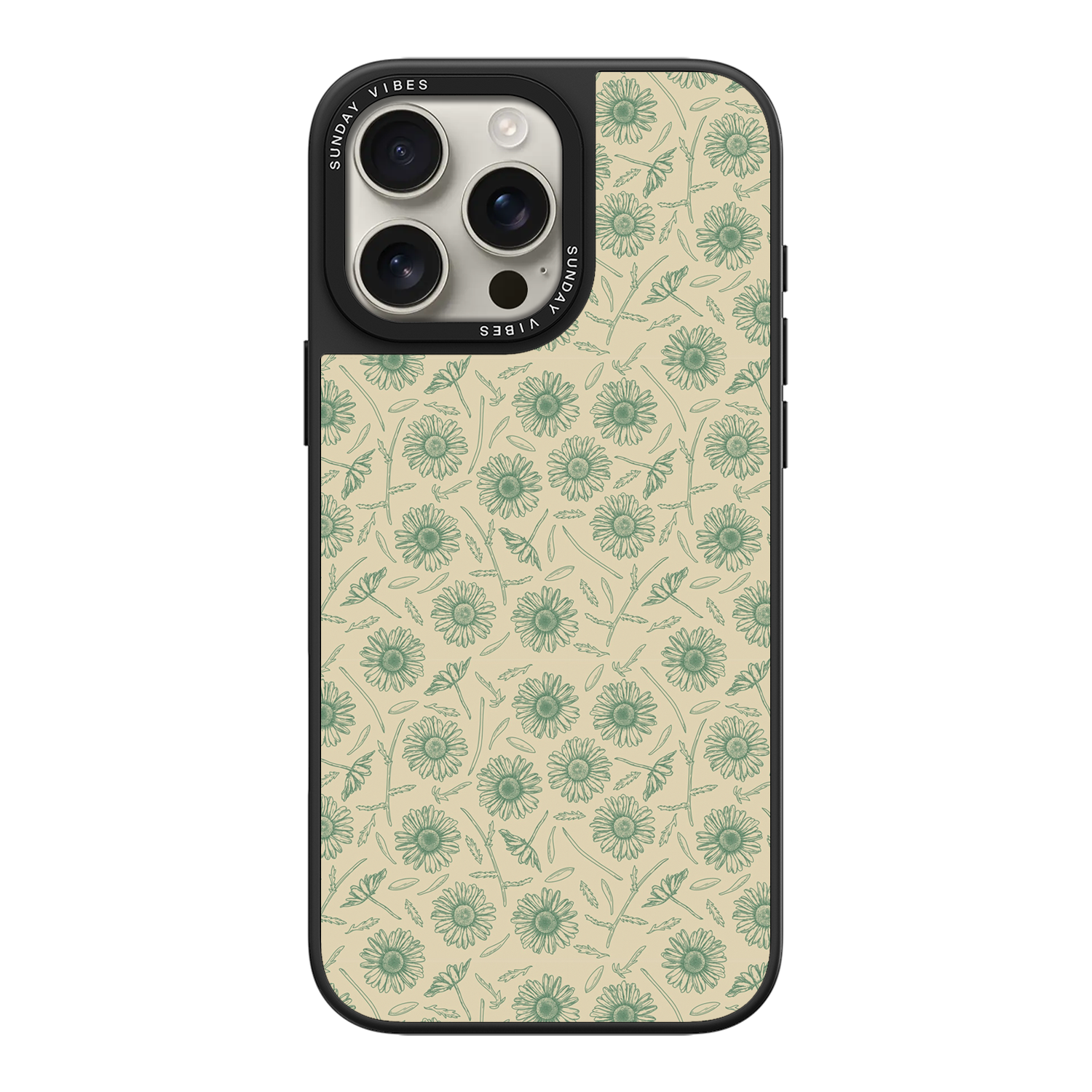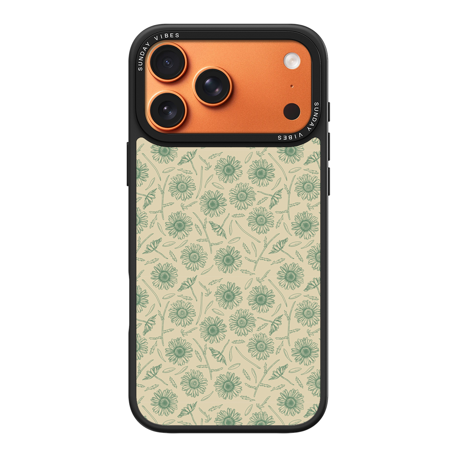 Adorn your device with the quiet poetry of the Enchanted Meadow iPhone Case. This striking design features a delicate, vintage line-art pattern of daisies and foliage, rendered in subtle sage green against a warm, creamy background. This beautiful print creates a serene, deeply sophisticated aesthetic that feels both timeless and unique. The core artistic integrity is preserved by the case's premium 3-layer back panel: a base layer for protection, a middle ultra HD gallery print layer for precise detail, and a velvet smooth anti-scratch and anti-fingerprint top coating.