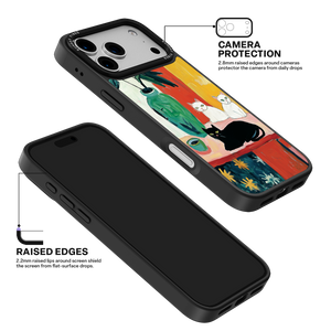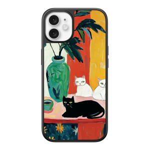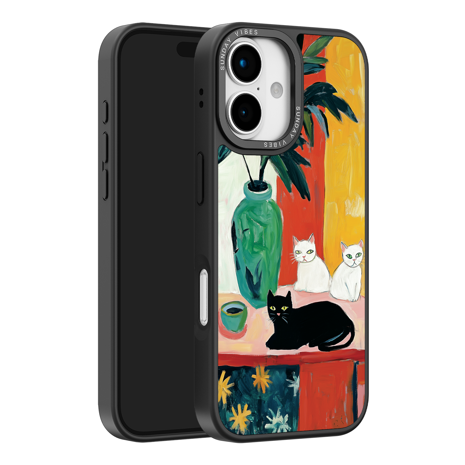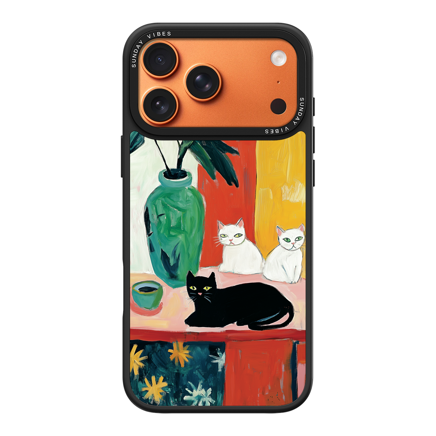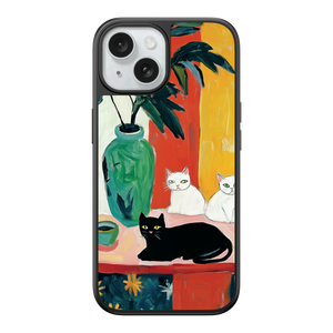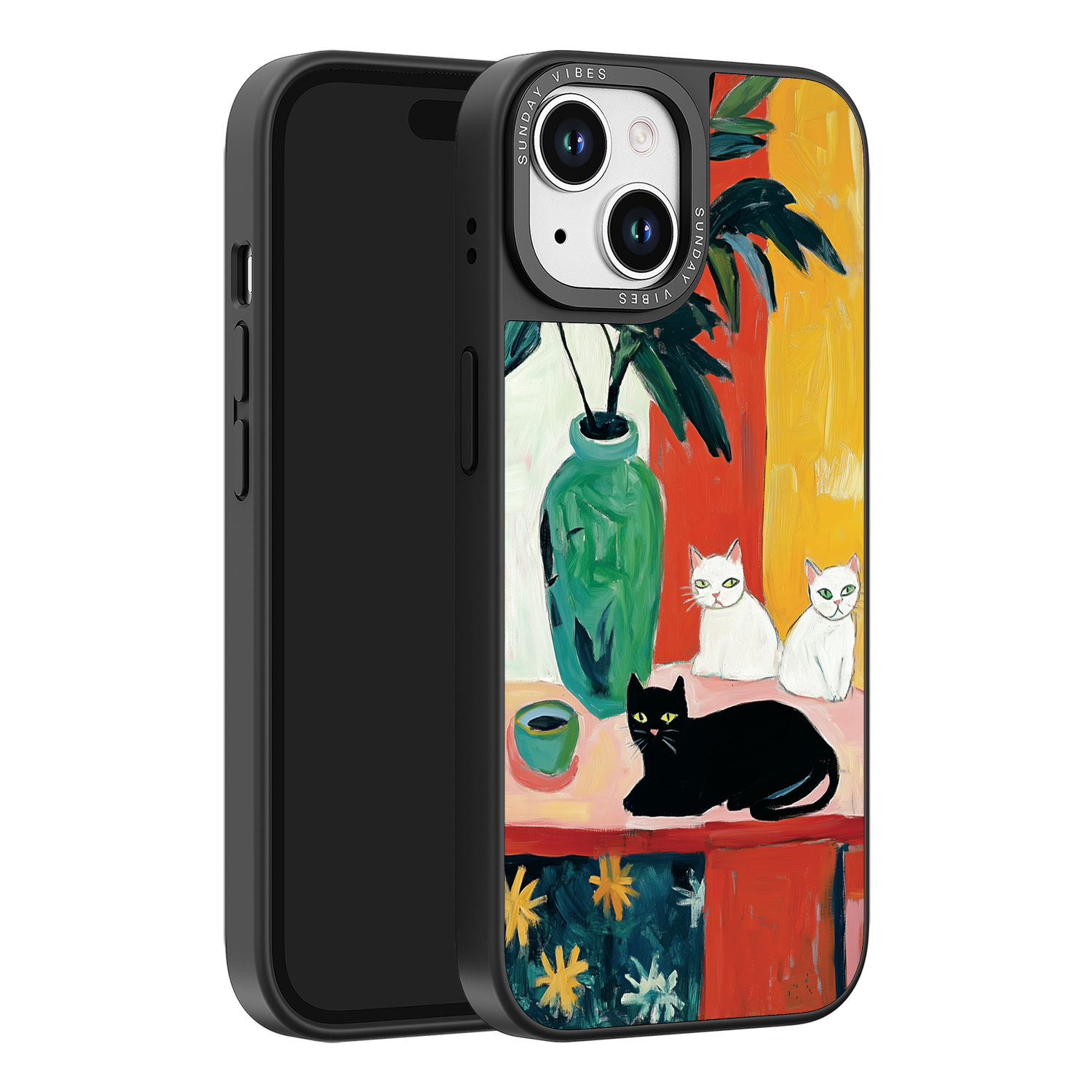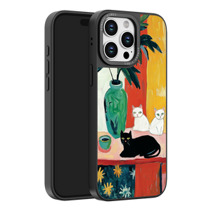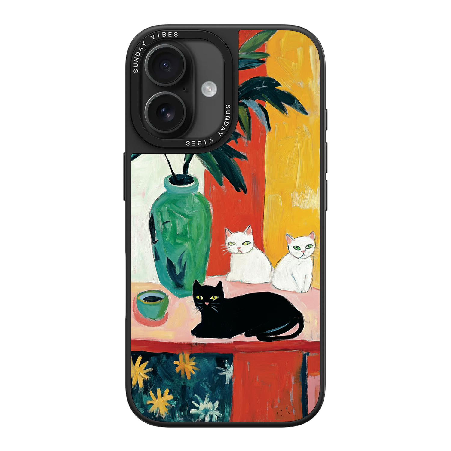 Adorn your device with the bold, quirky charm of the Feline Artistry iPhone Case. This exquisite design captures an expressive, painted scene featuring high-contrast black and white cats set against striking colour blocks of red and yellow. The visible brushstrokes and vivid composition transform your phone into a unique, wearable statement piece that celebrates artistic freedom. The core aesthetic integrity is preserved by the case's premium 3-layer back panel: a base layer for protection, a middle ultra HD gallery print layer for precise detail, and a velvet smooth anti-scratch and anti-fingerprint top coating.