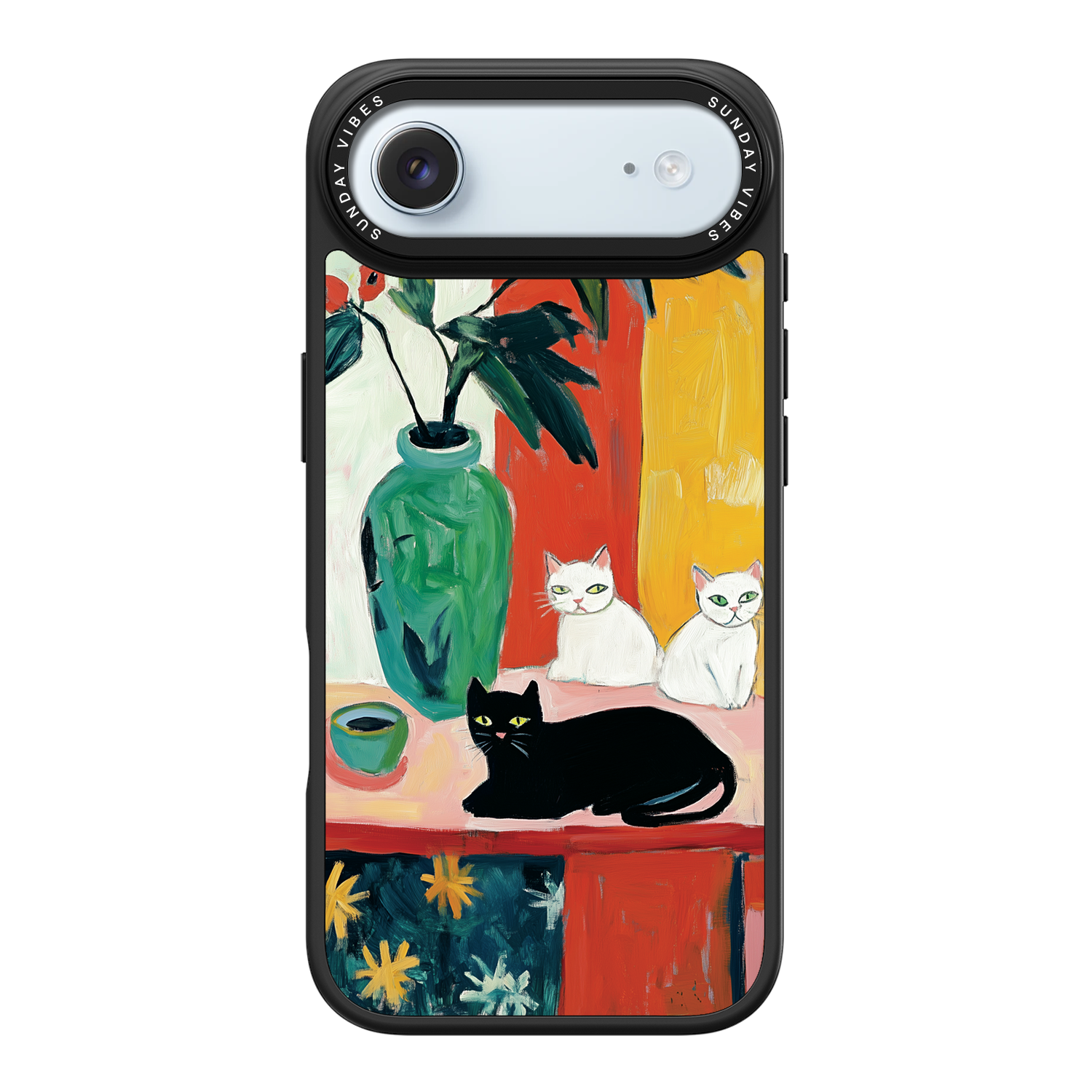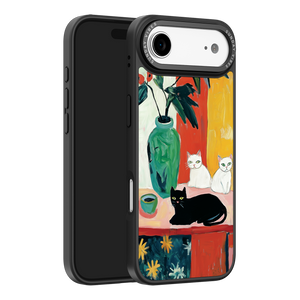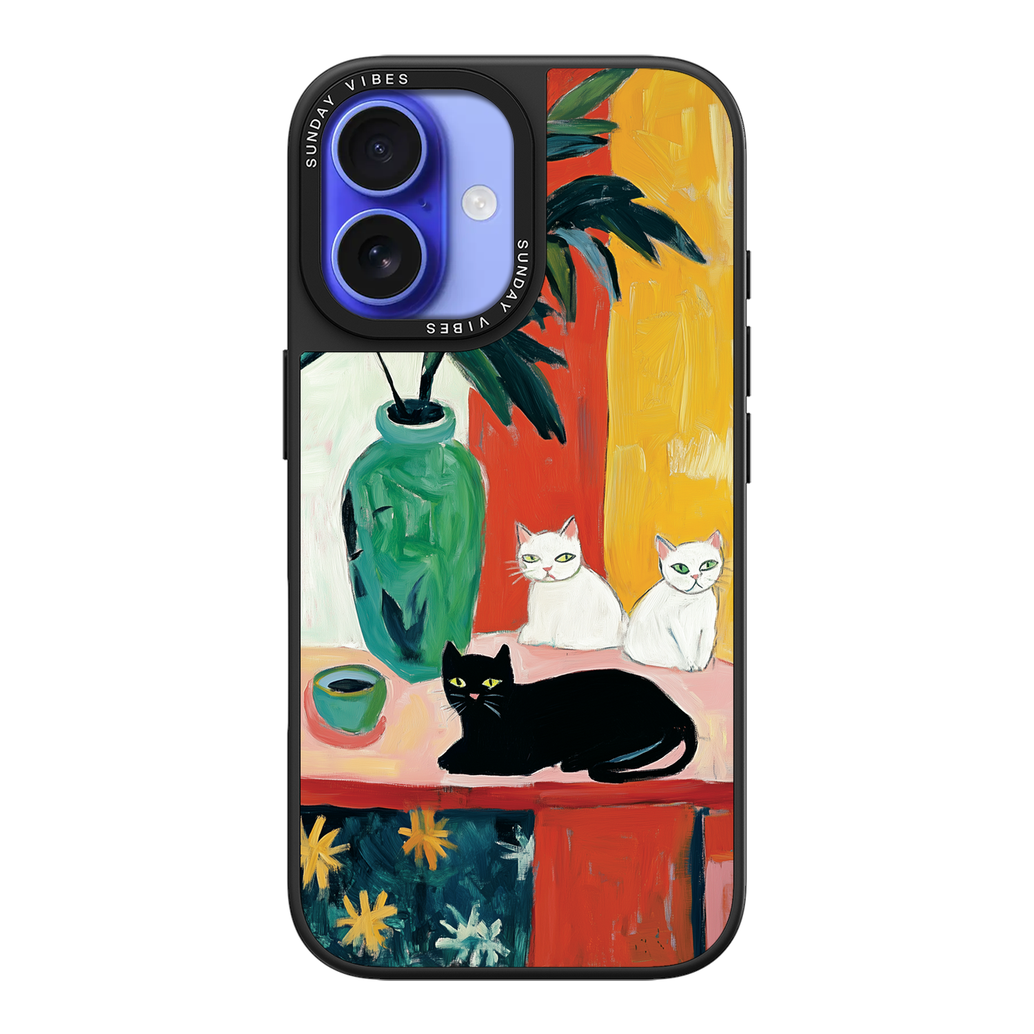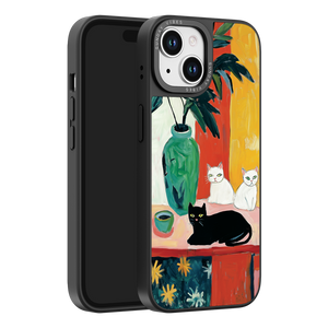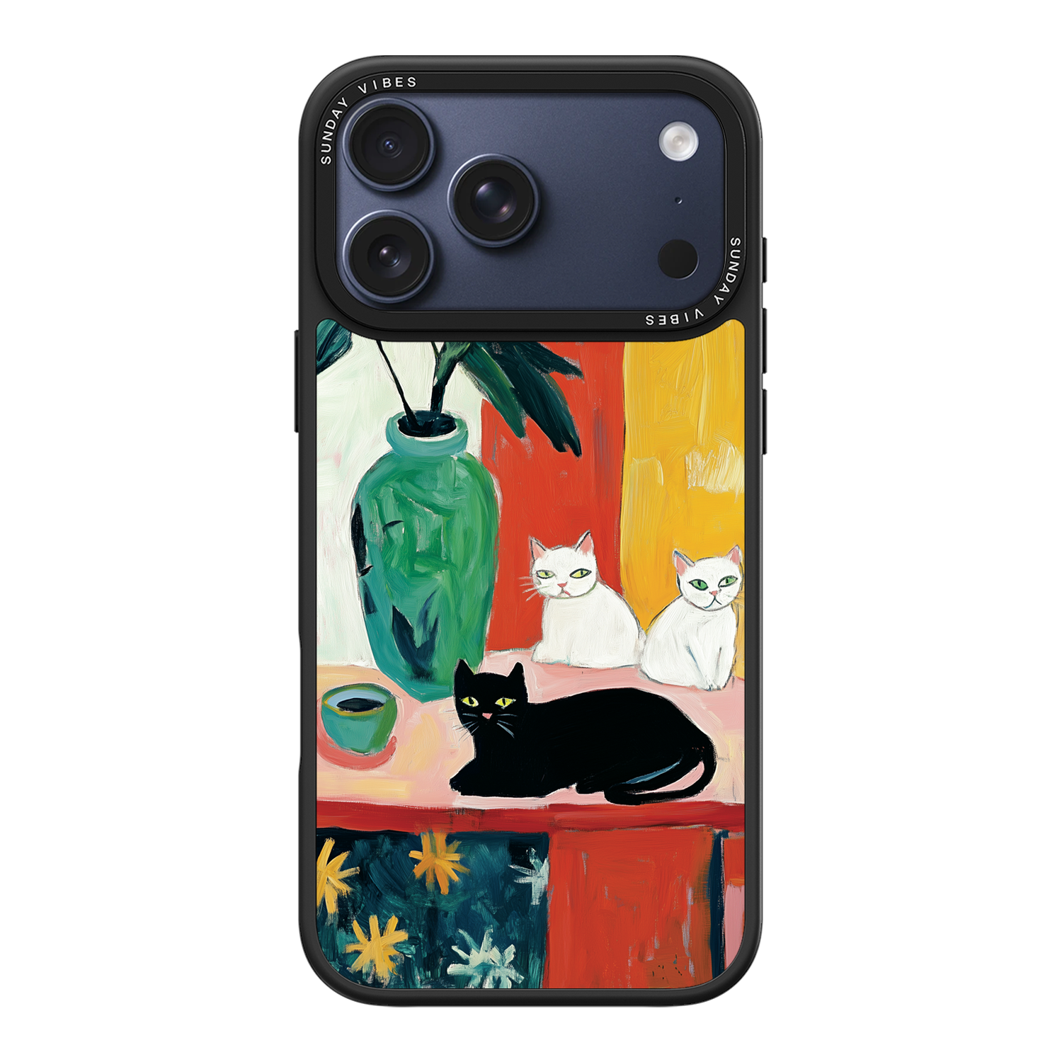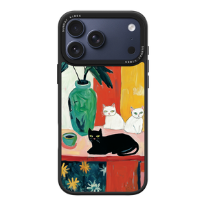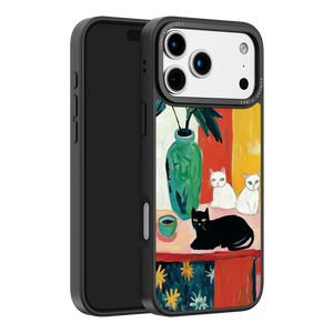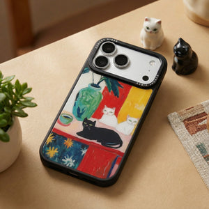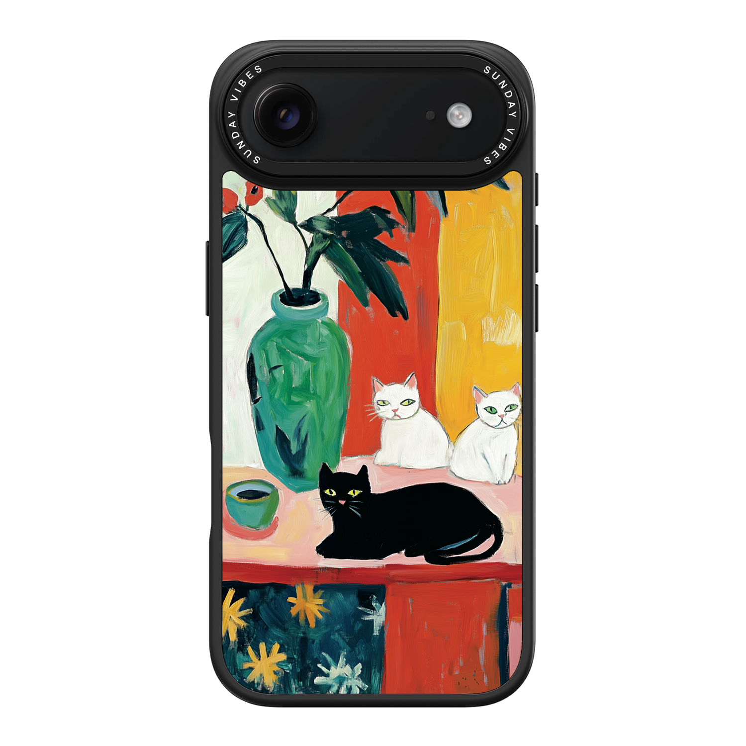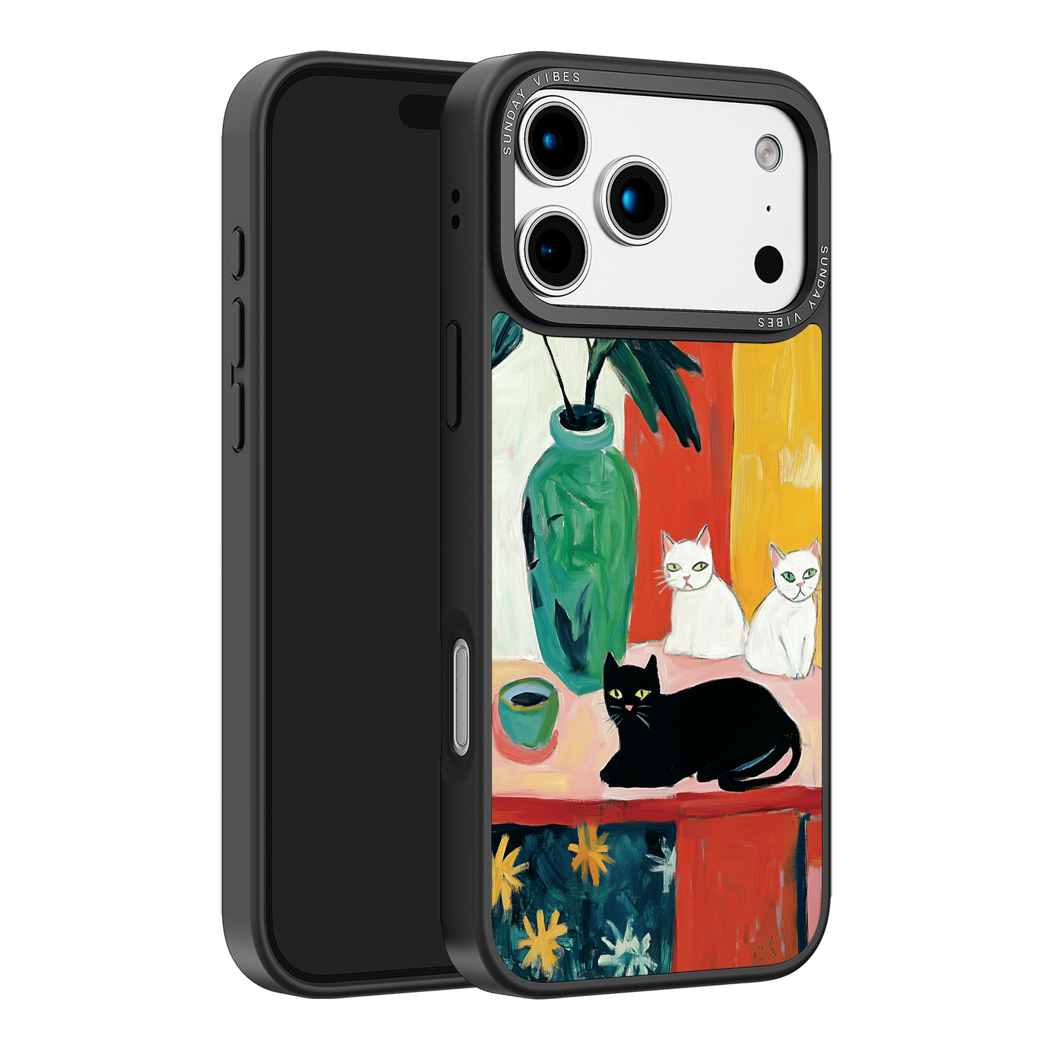 Adorn your device with the bold, quirky charm of the Feline Artistry iPhone Case. This exquisite design captures an expressive, painted scene featuring high-contrast black and white cats set against striking colour blocks of red and yellow. The visible brushstrokes and vivid composition transform your phone into a unique, wearable statement piece that celebrates artistic freedom. The core aesthetic integrity is preserved by the case's premium 3-layer back panel: a base layer for protection, a middle ultra HD gallery print layer for precise detail, and a velvet smooth anti-scratch and anti-fingerprint top coating.