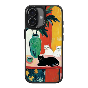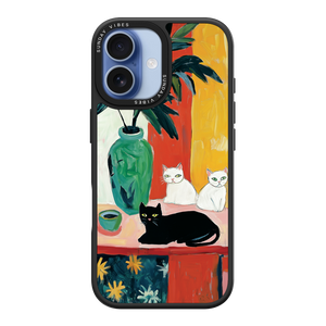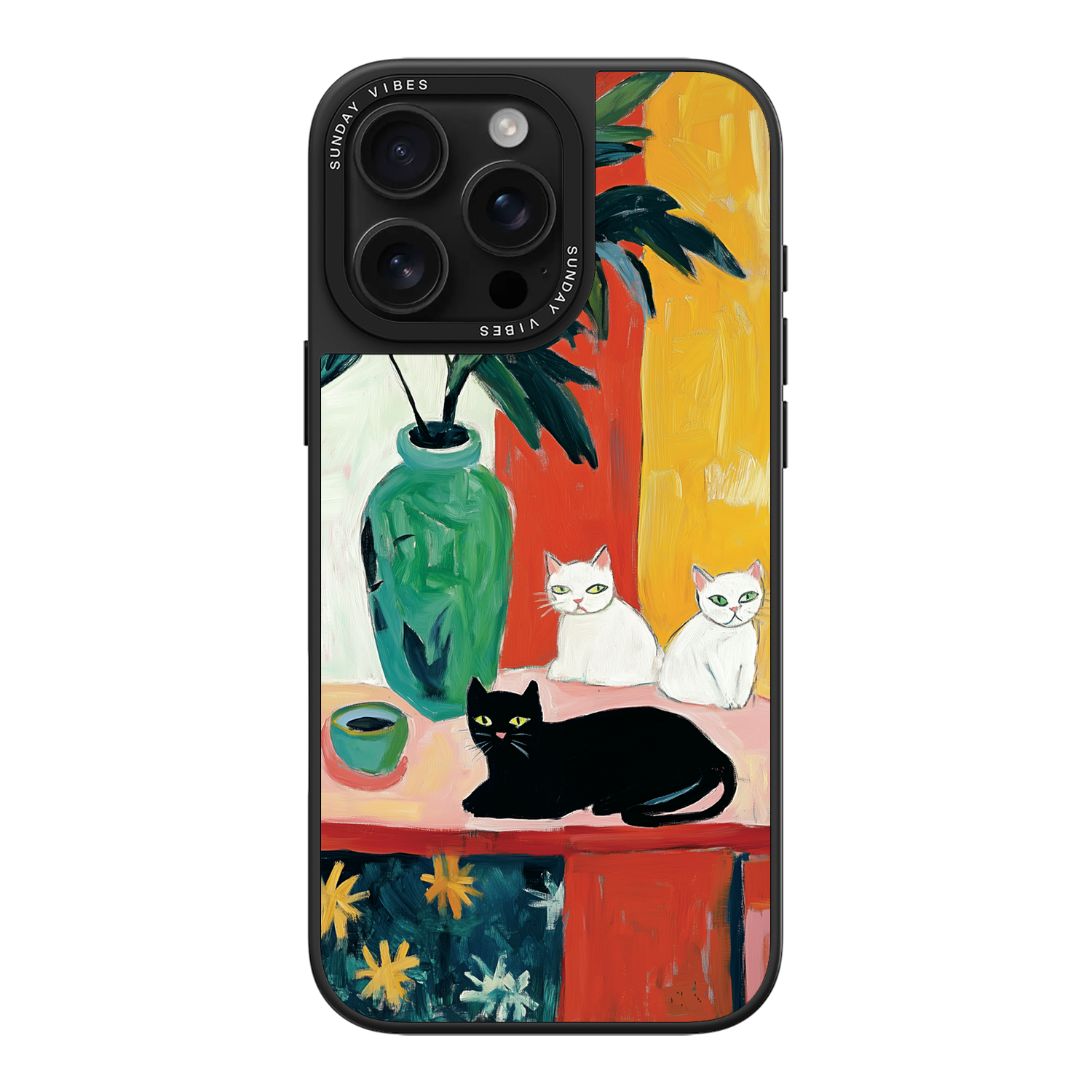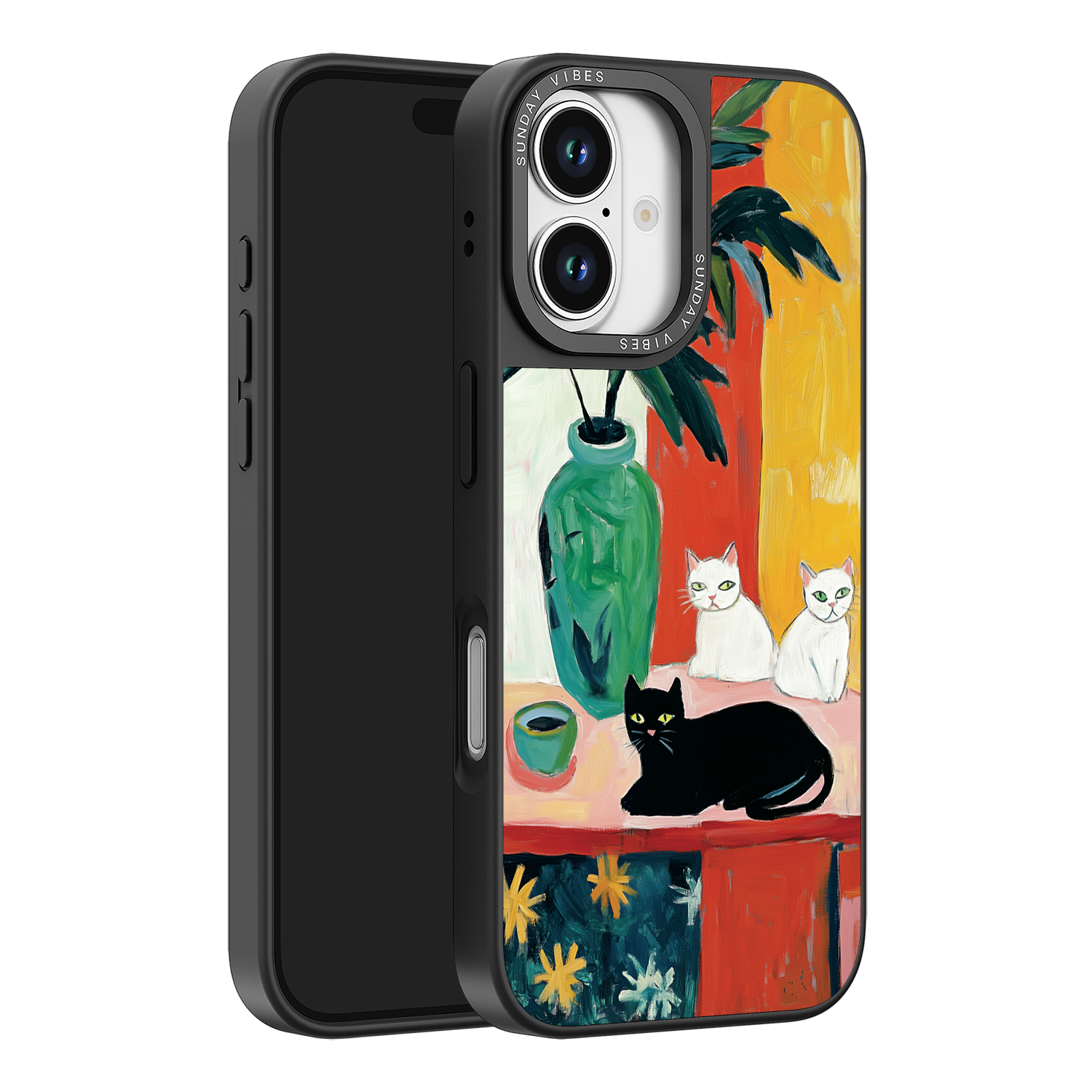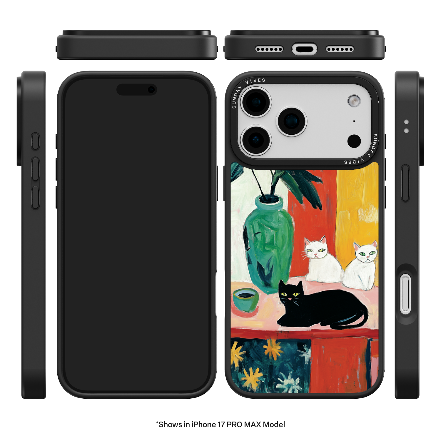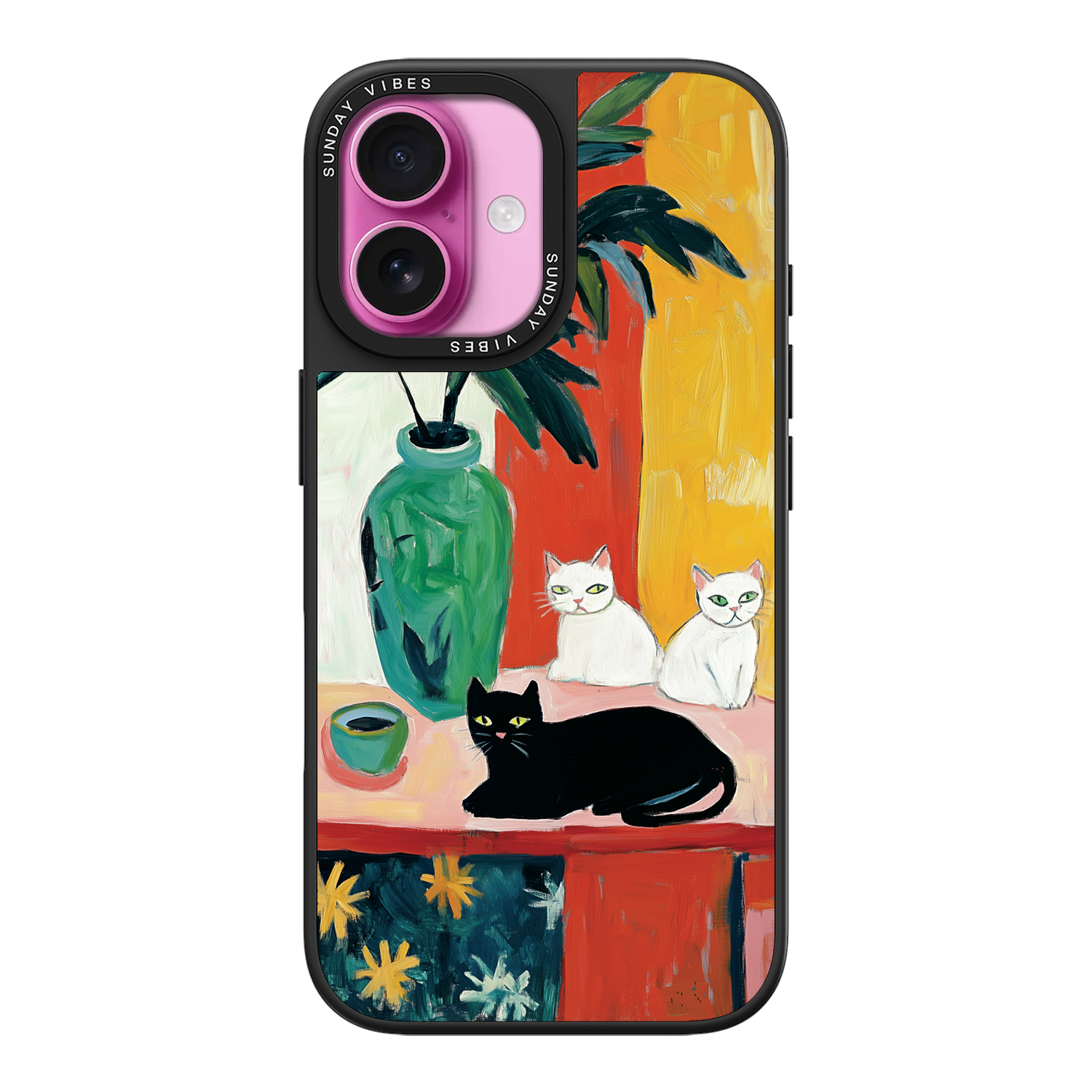 Adorn your device with the bold, quirky charm of the Feline Artistry iPhone Case. This exquisite design captures an expressive, painted scene featuring high-contrast black and white cats set against striking colour blocks of red and yellow. The visible brushstrokes and vivid composition transform your phone into a unique, wearable statement piece that celebrates artistic freedom. The core aesthetic integrity is preserved by the case's premium 3-layer back panel: a base layer for protection, a middle ultra HD gallery print layer for precise detail, and a velvet smooth anti-scratch and anti-fingerprint top coating.