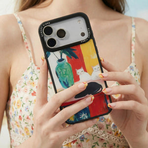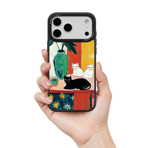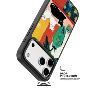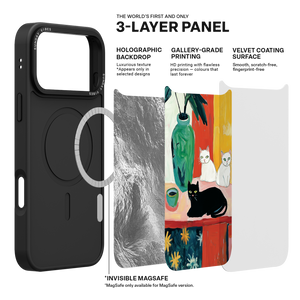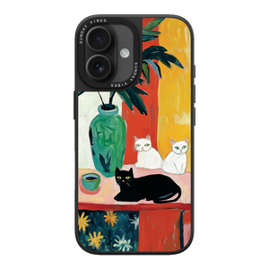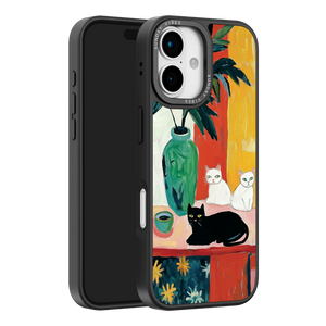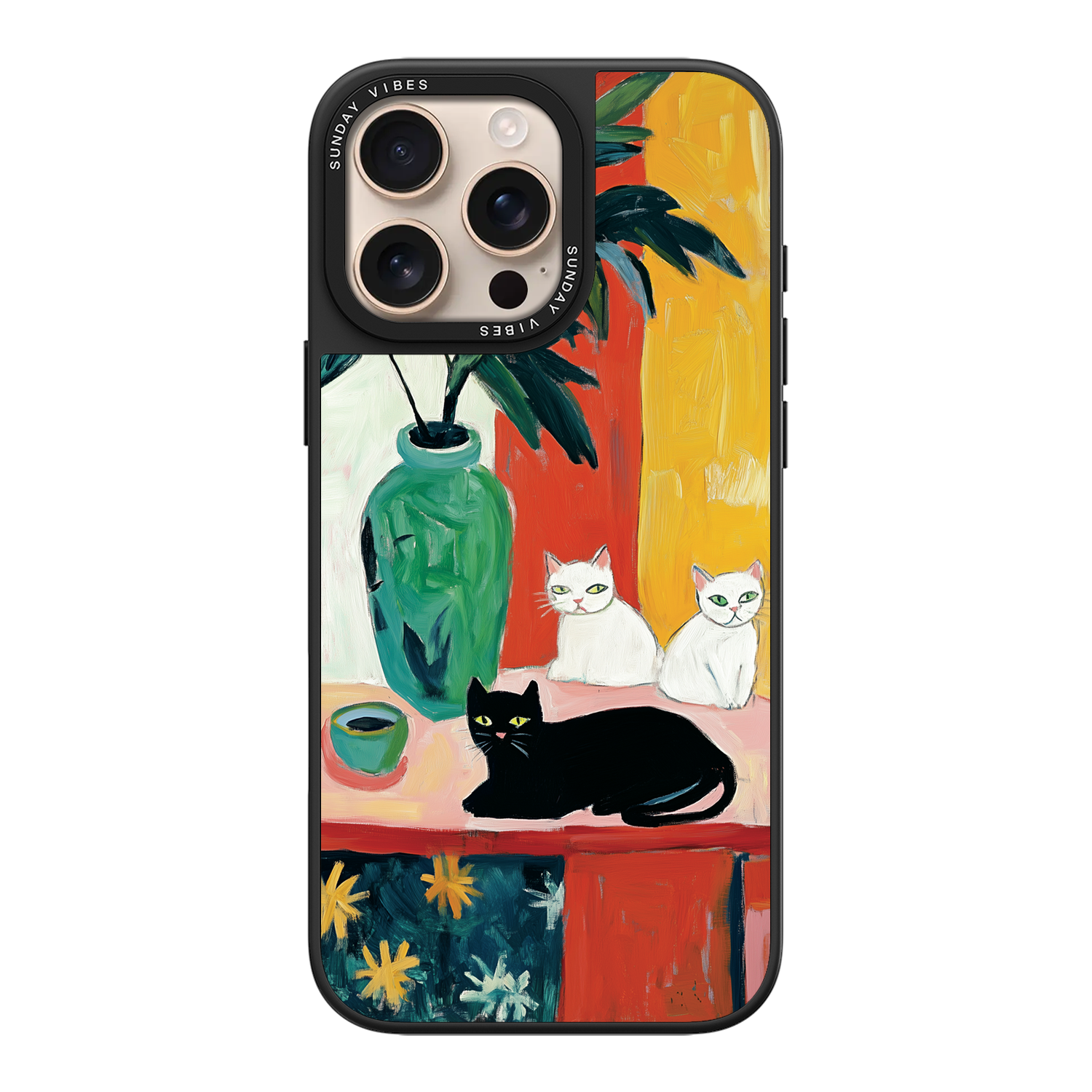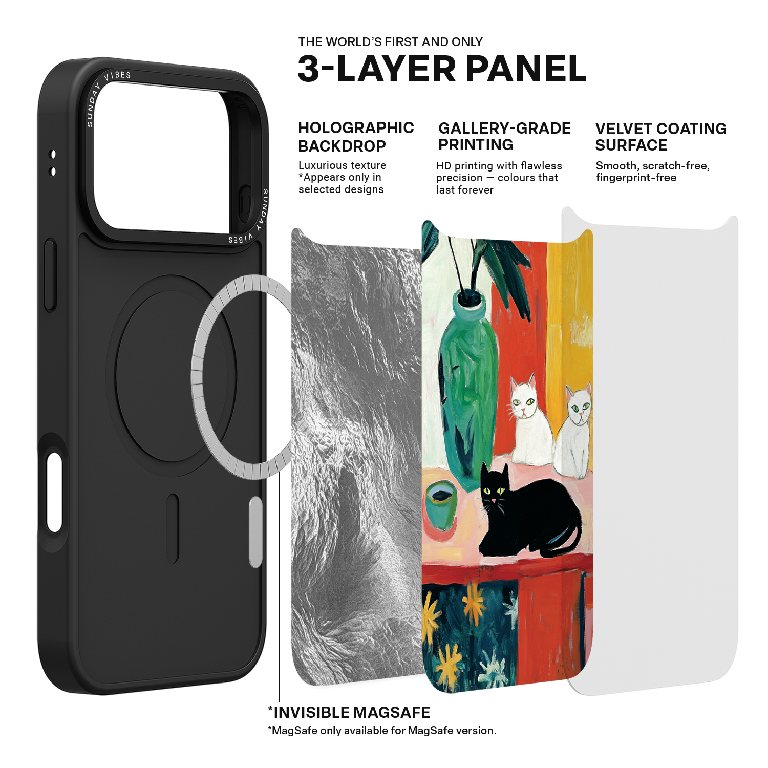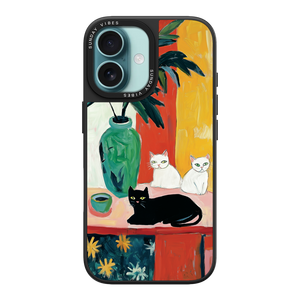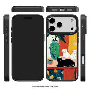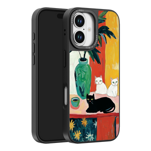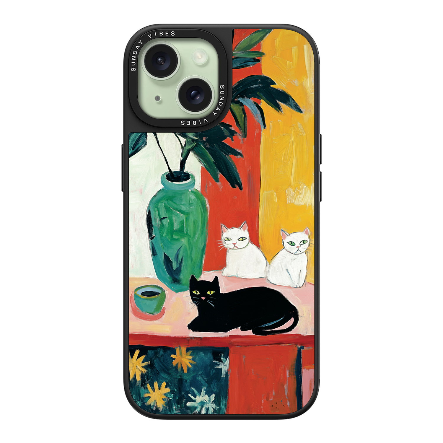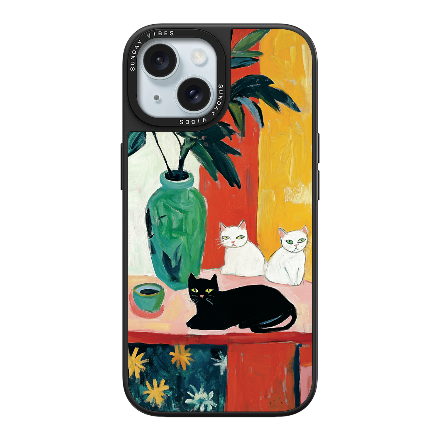 Adorn your device with the bold, quirky charm of the Feline Artistry iPhone Case. This exquisite design captures an expressive, painted scene featuring high-contrast black and white cats set against striking colour blocks of red and yellow. The visible brushstrokes and vivid composition transform your phone into a unique, wearable statement piece that celebrates artistic freedom. The core aesthetic integrity is preserved by the case's premium 3-layer back panel: a base layer for protection, a middle ultra HD gallery print layer for precise detail, and a velvet smooth anti-scratch and anti-fingerprint top coating.