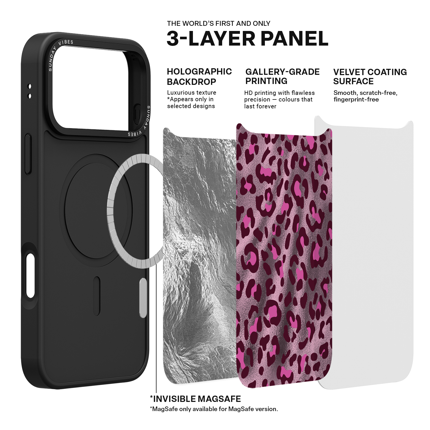 Make a fierce statement with the Fuchsia Fever iPhone Case. The entire surface features a full holographic finish in vibrant shades of pink and fuchsia, ensuring the bold leopard print catches every bit of light. This light-shifting metallic background gives the case an undeniably stylish and eye-catching aesthetic, instantly upgrading your gear.