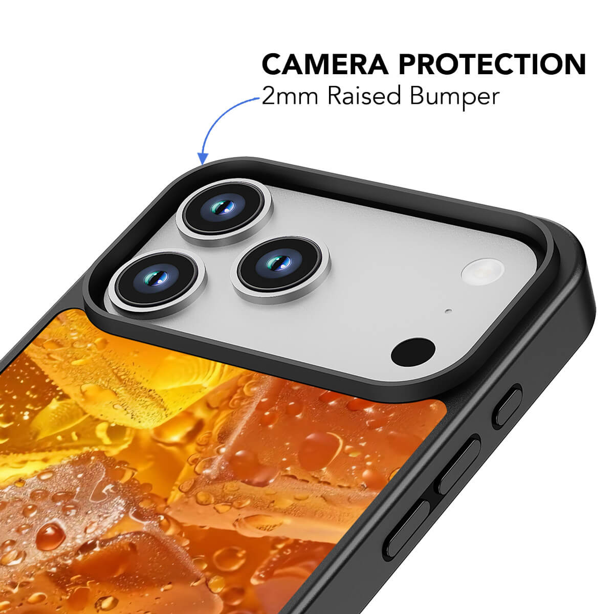 This iPhone case showcases a vivid design of iced amber liquid (reminiscent of a refreshing brew) with glistening ice cubes and water droplets, bringing a cool, summer-ready vibe to your device. Crafted with durable materials, it defends your phone against daily bumps and scratches. The sleek build ensures easy access to all ports and buttons, while the eye-catching artwork adds a stylish, refreshing touch.