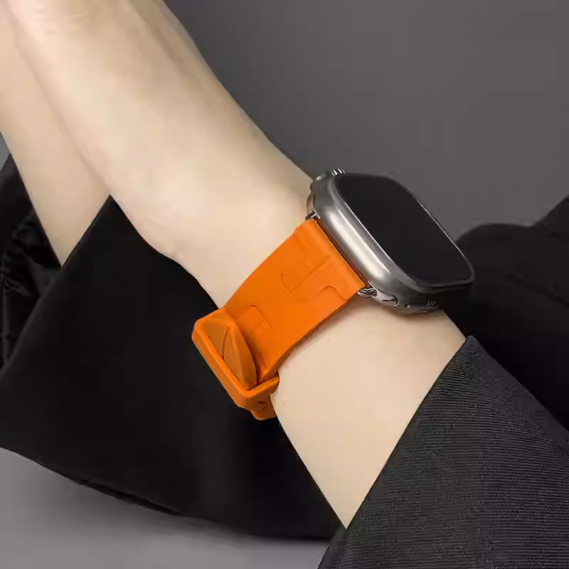 Indulge in the luxury of our Kilim Single Tour strap for your Apple Watch. Crafted from premium silicone for comfort and durability, this strap features a unique hue, embodying a blend of elegance and practicality. Perfect for those who seek a high-end look with everyday functionality.