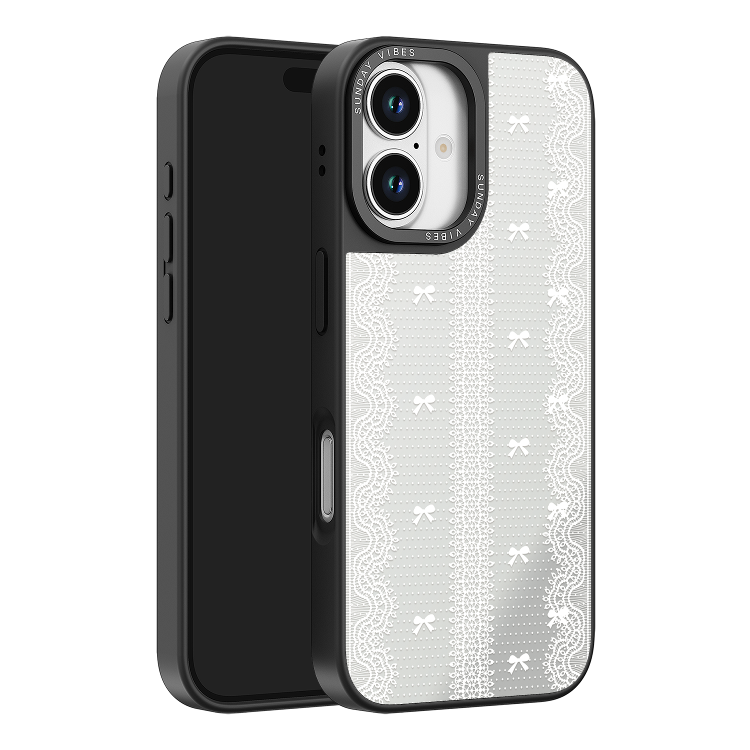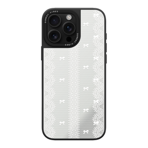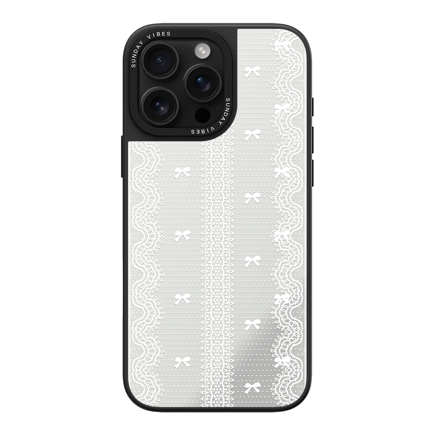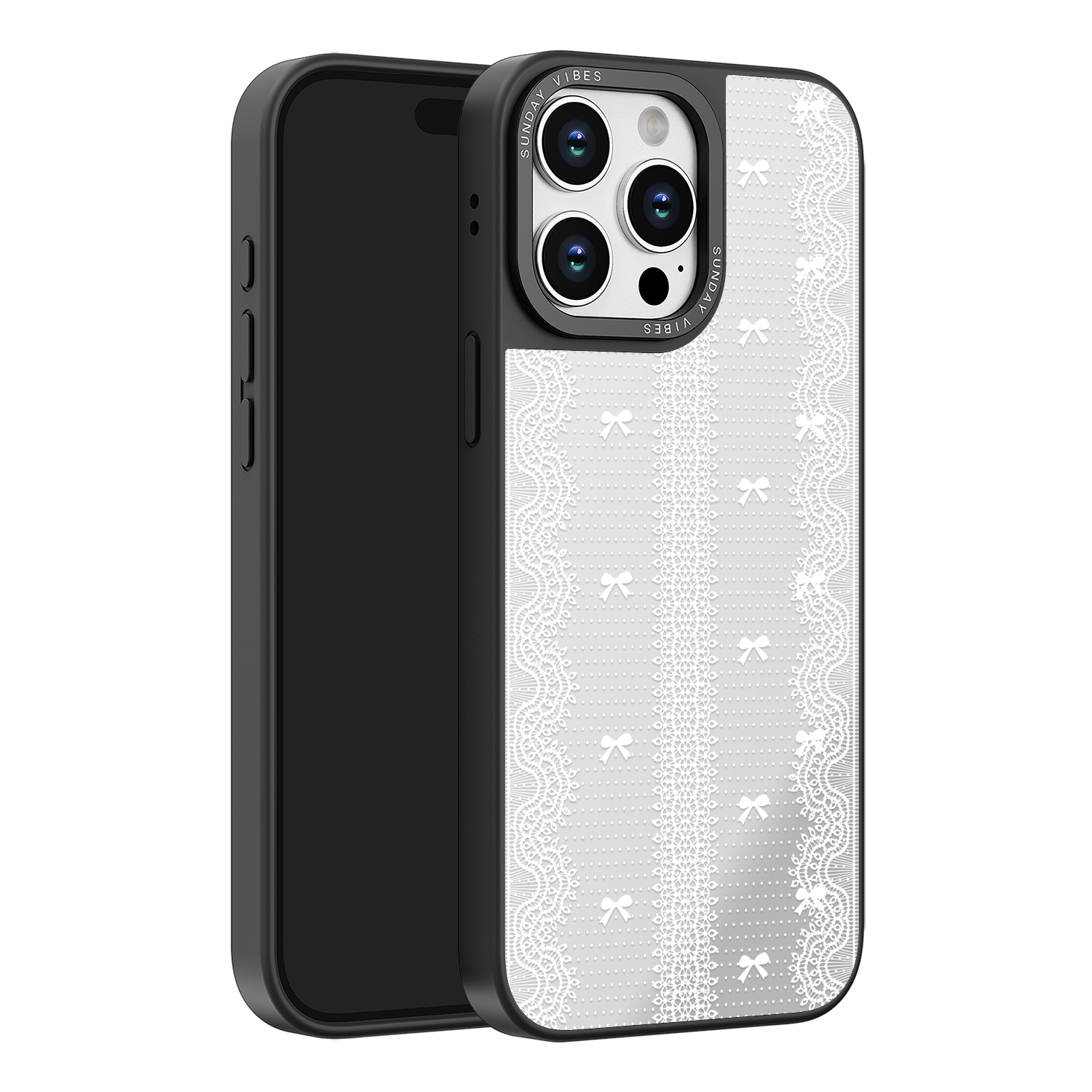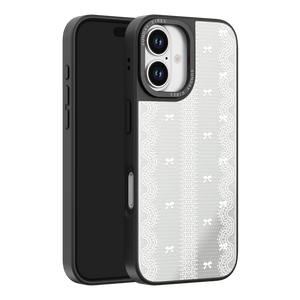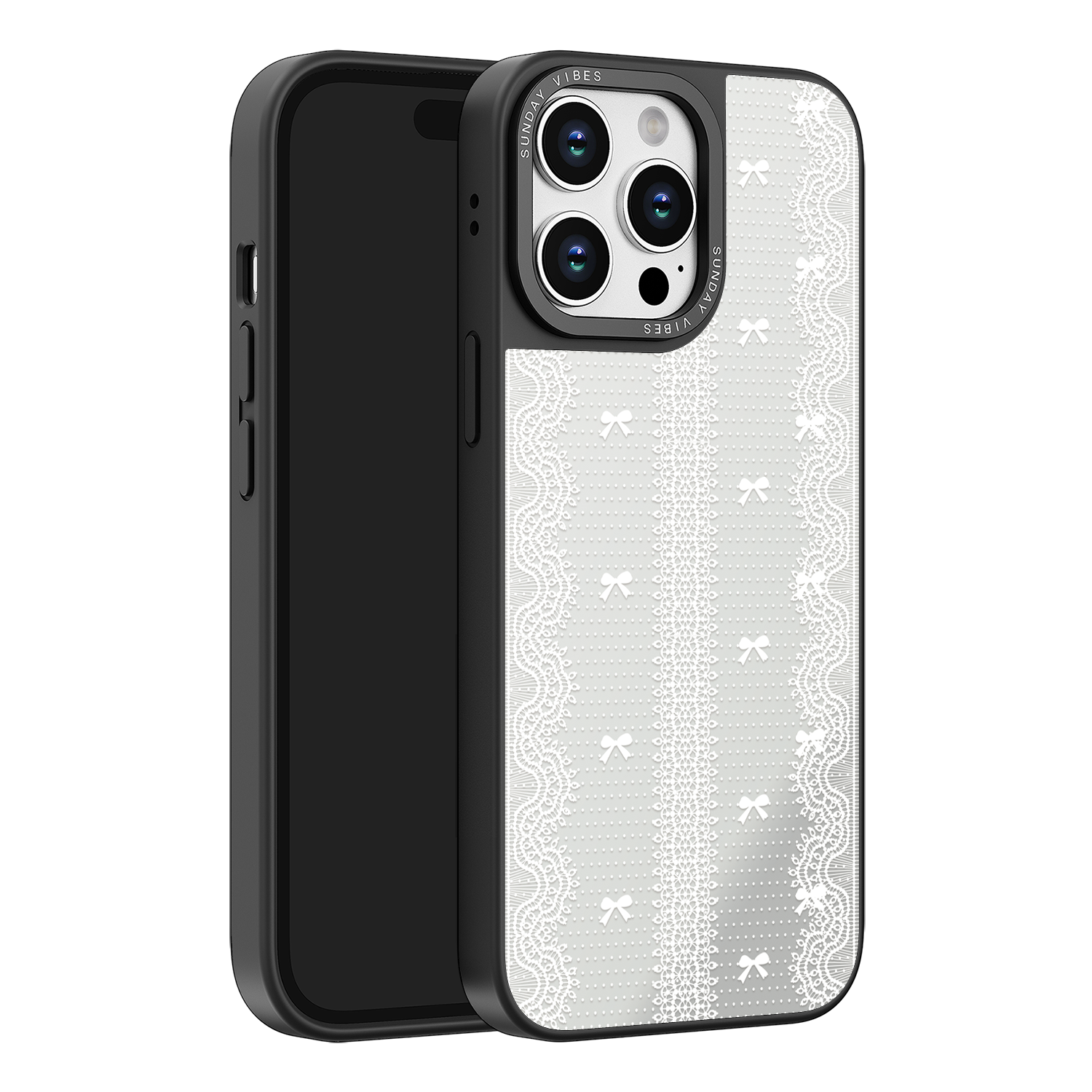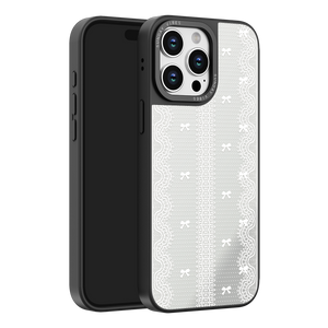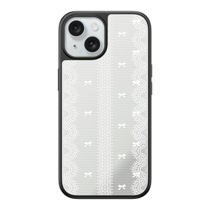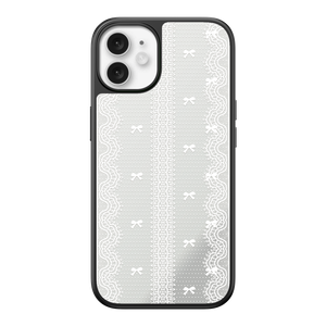 Elevate your look with the soft, ethereal beauty of the Lace Whisper iPhone Case. The detailed white lace and ribbon motif pops gracefully against the high-shine, reflective mirror backdrop, creating a dazzling, instantly sophisticated accessory. This design perfectly merges a delicate, feminine aesthetic with essential mirror convenience.