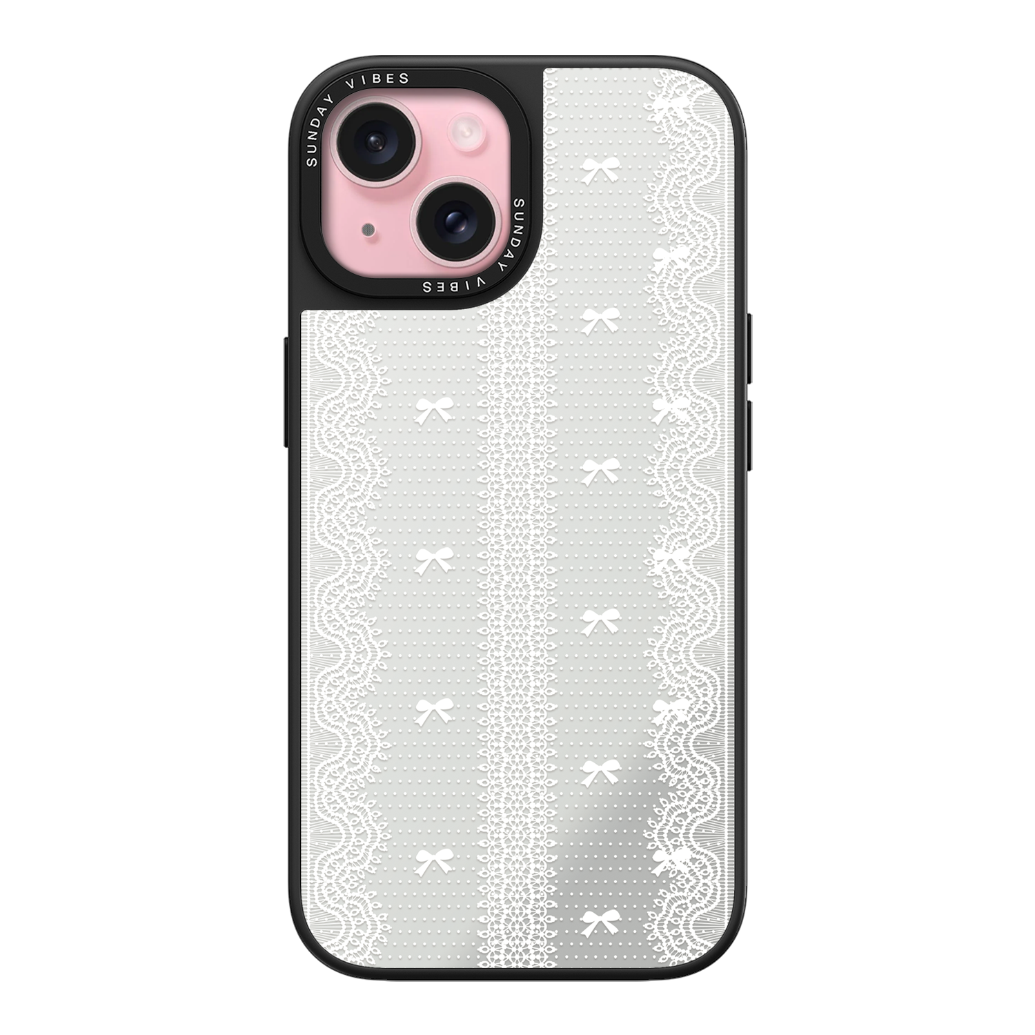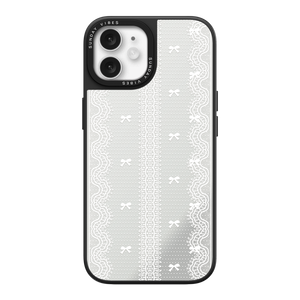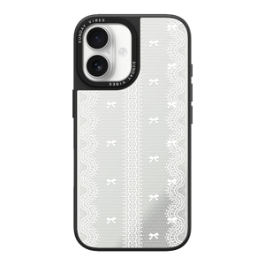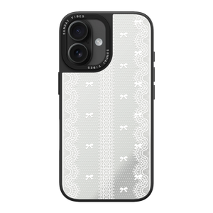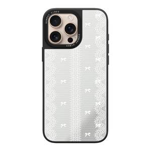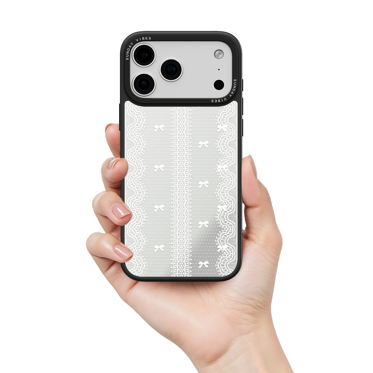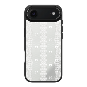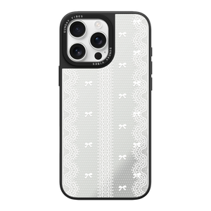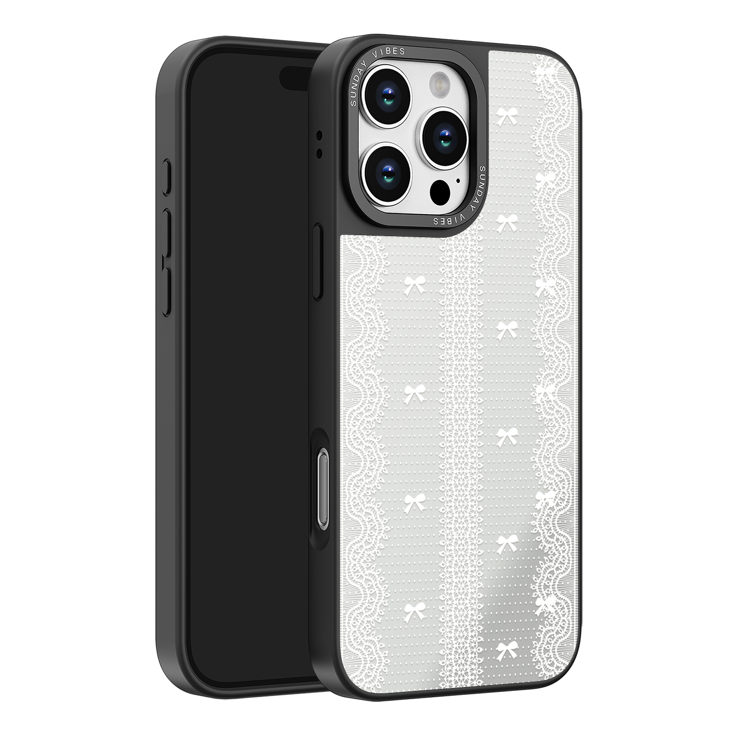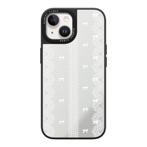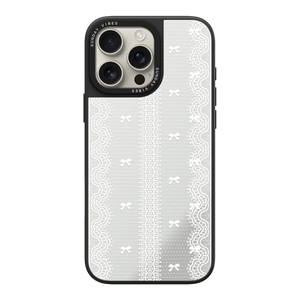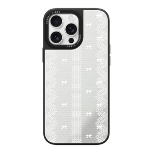 Elevate your look with the soft, ethereal beauty of the Lace Whisper iPhone Case. The detailed white lace and ribbon motif pops gracefully against the high-shine, reflective mirror backdrop, creating a dazzling, instantly sophisticated accessory. This design perfectly merges a delicate, feminine aesthetic with essential mirror convenience.