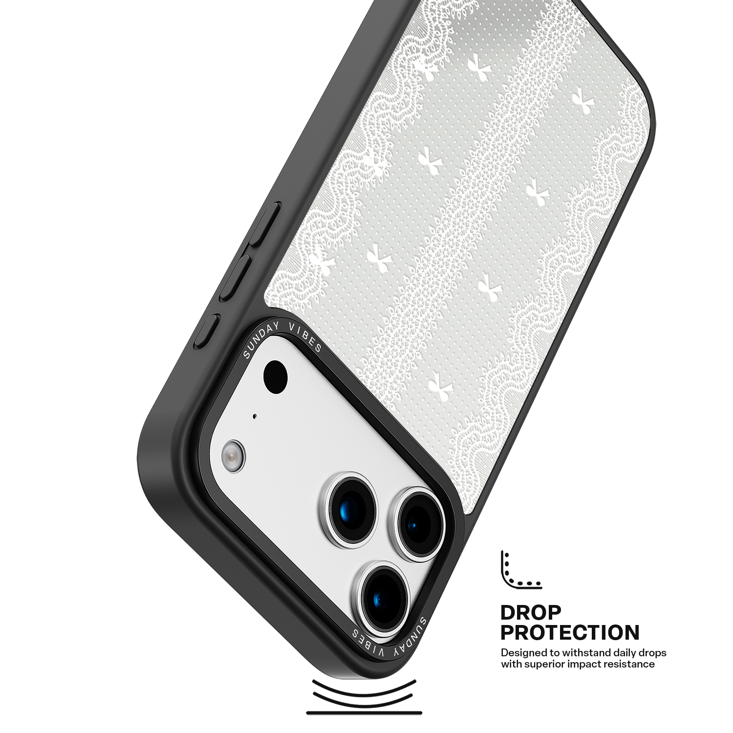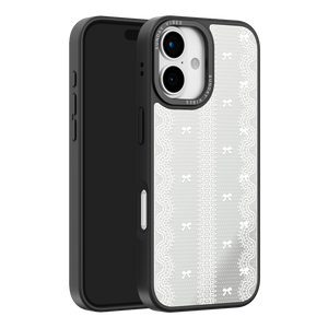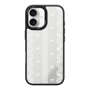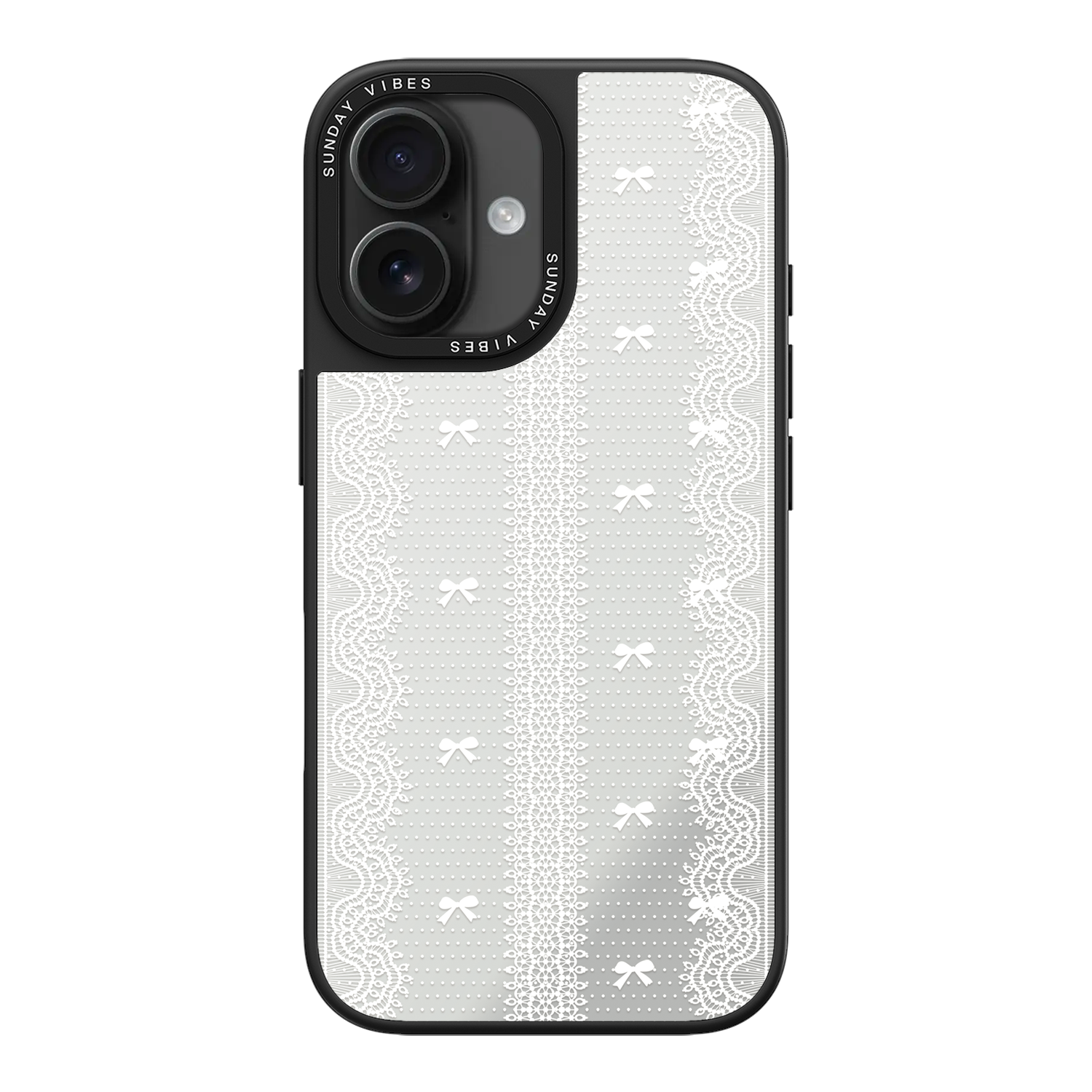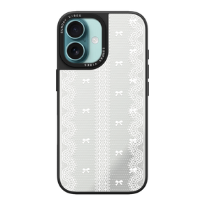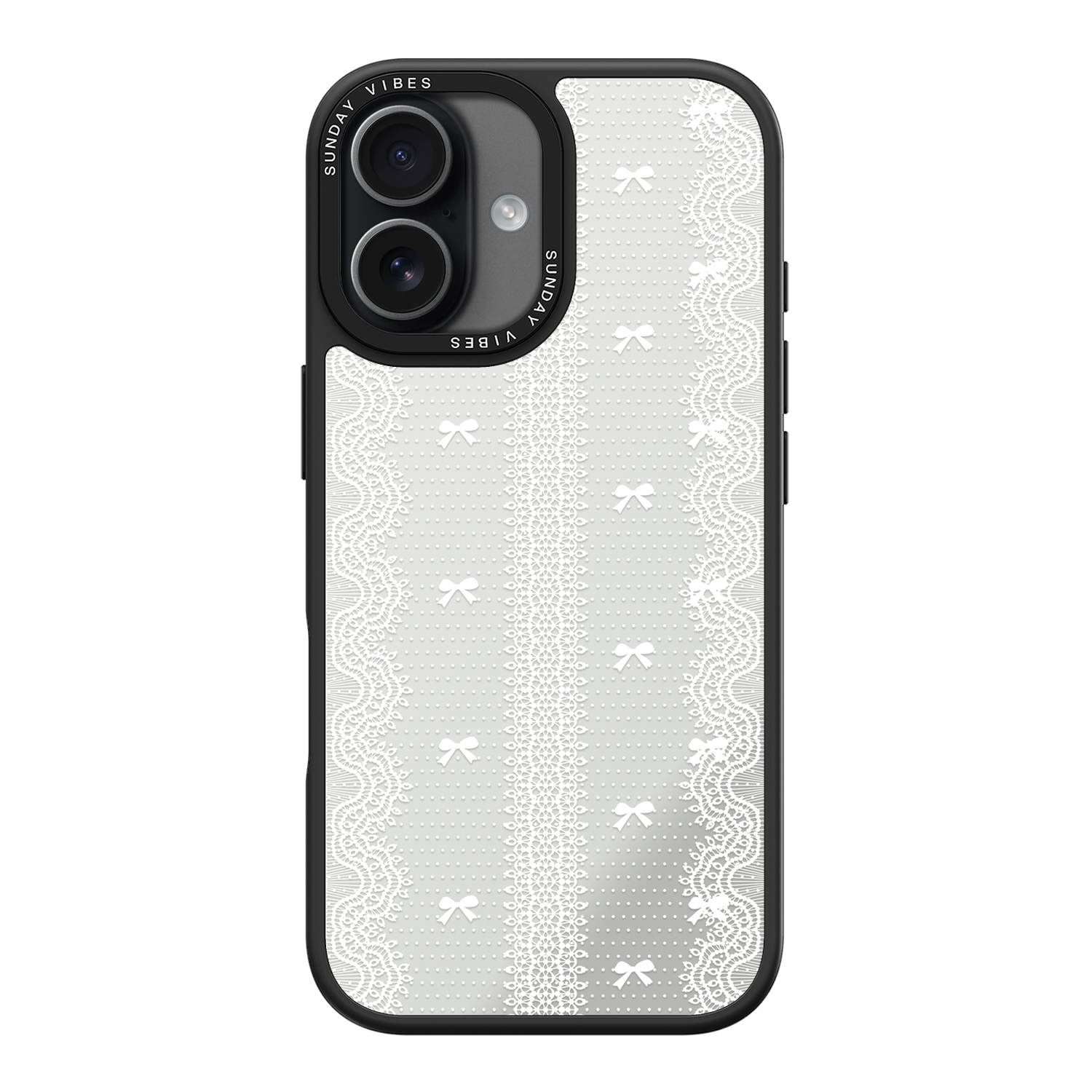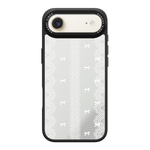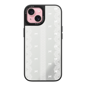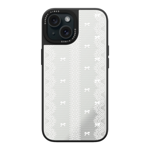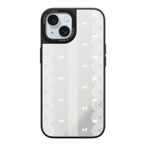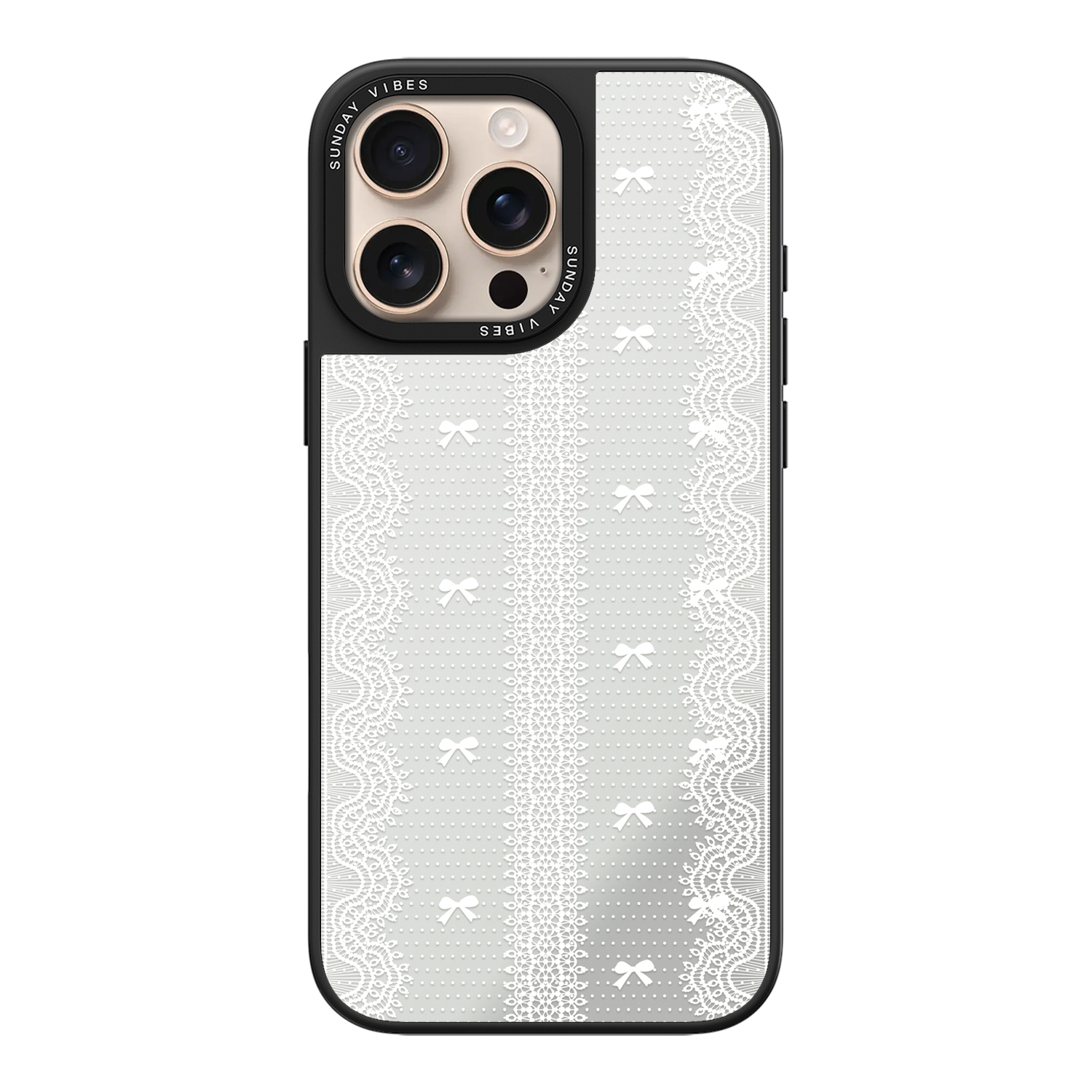 Elevate your look with the soft, ethereal beauty of the Lace Whisper iPhone Case. The detailed white lace and ribbon motif pops gracefully against the high-shine, reflective mirror backdrop, creating a dazzling, instantly sophisticated accessory. This design perfectly merges a delicate, feminine aesthetic with essential mirror convenience.