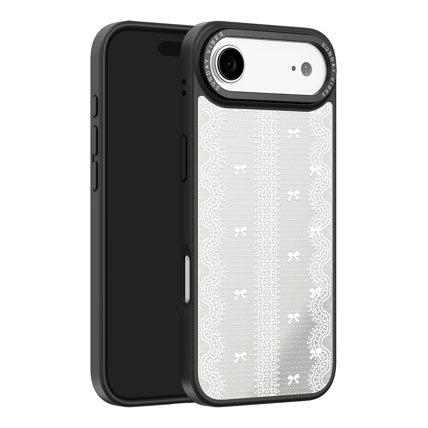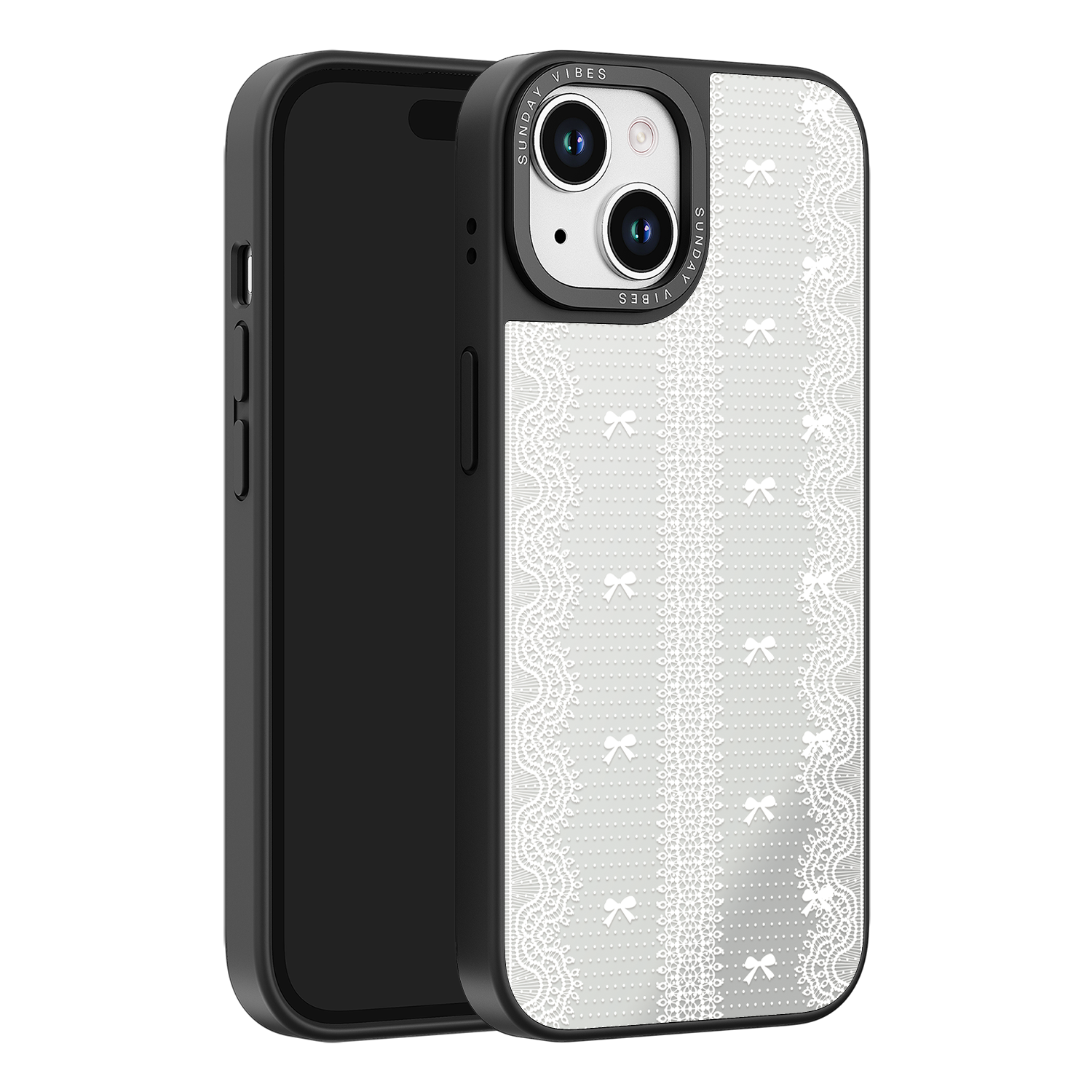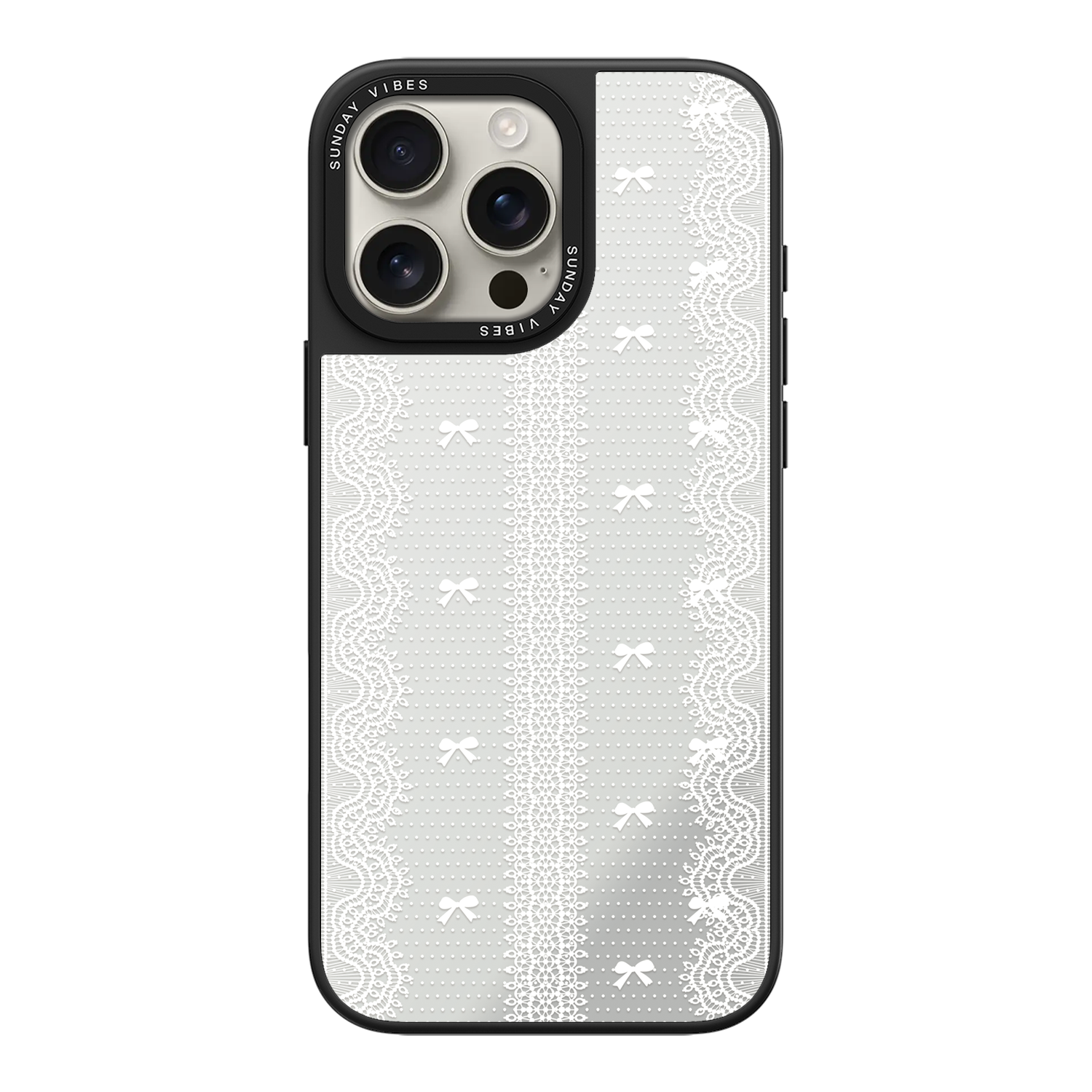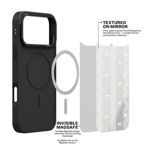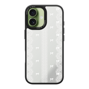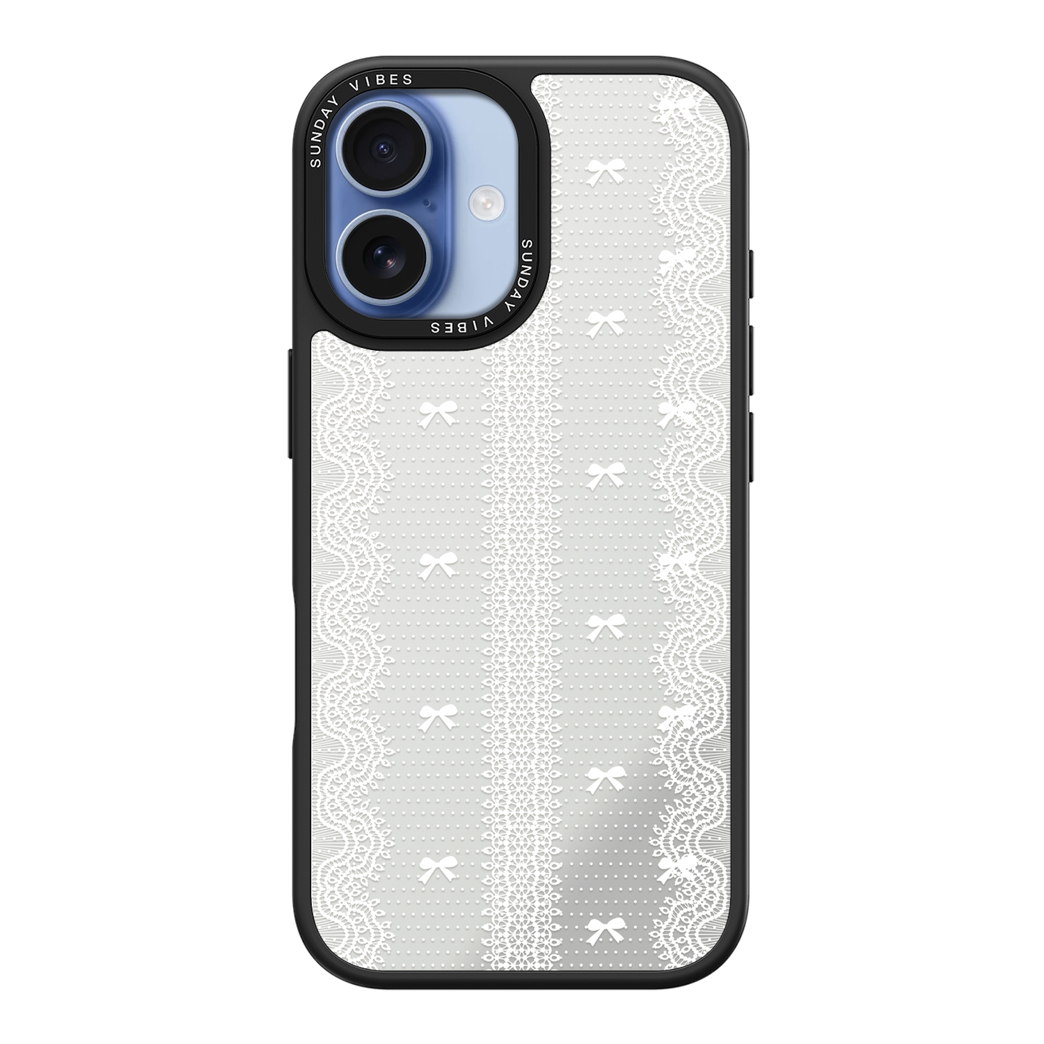 Elevate your look with the soft, ethereal beauty of the Lace Whisper iPhone Case. The detailed white lace and ribbon motif pops gracefully against the high-shine, reflective mirror backdrop, creating a dazzling, instantly sophisticated accessory. This design perfectly merges a delicate, feminine aesthetic with essential mirror convenience.