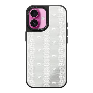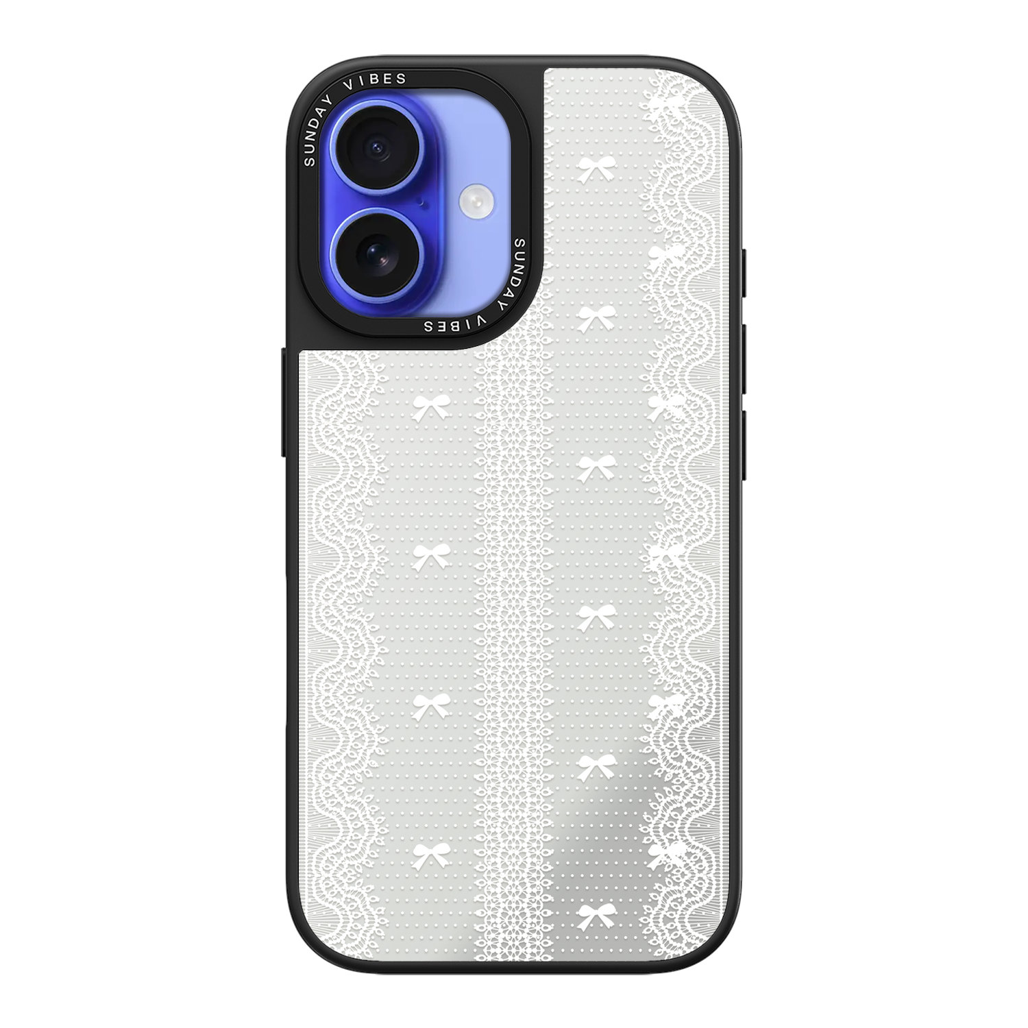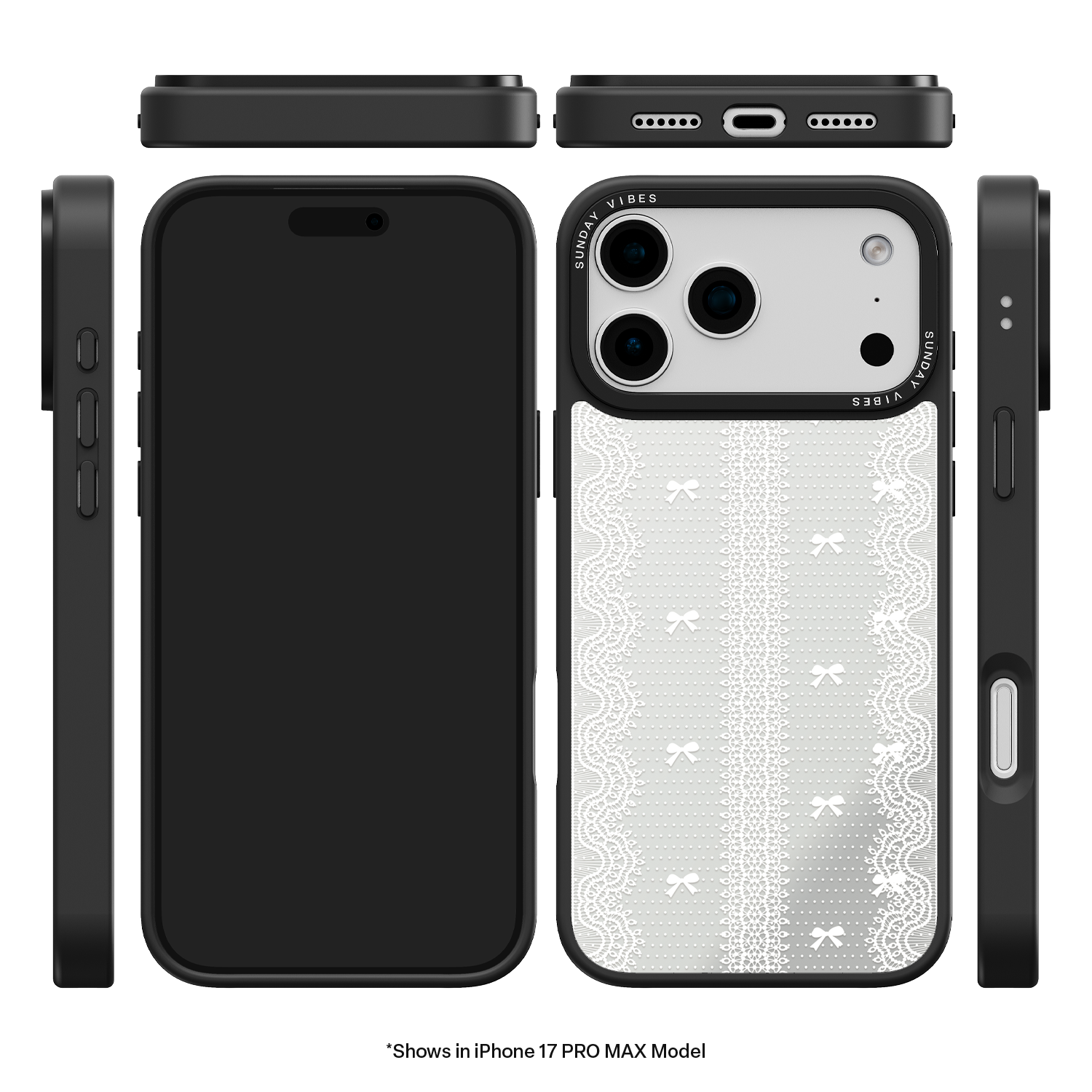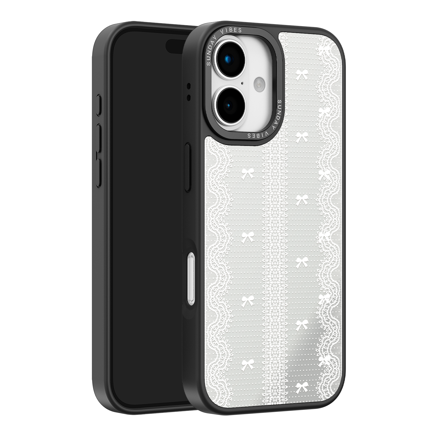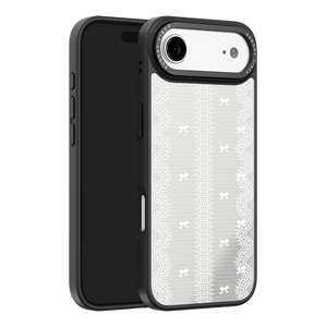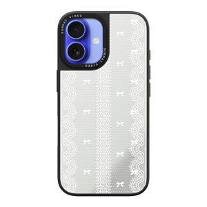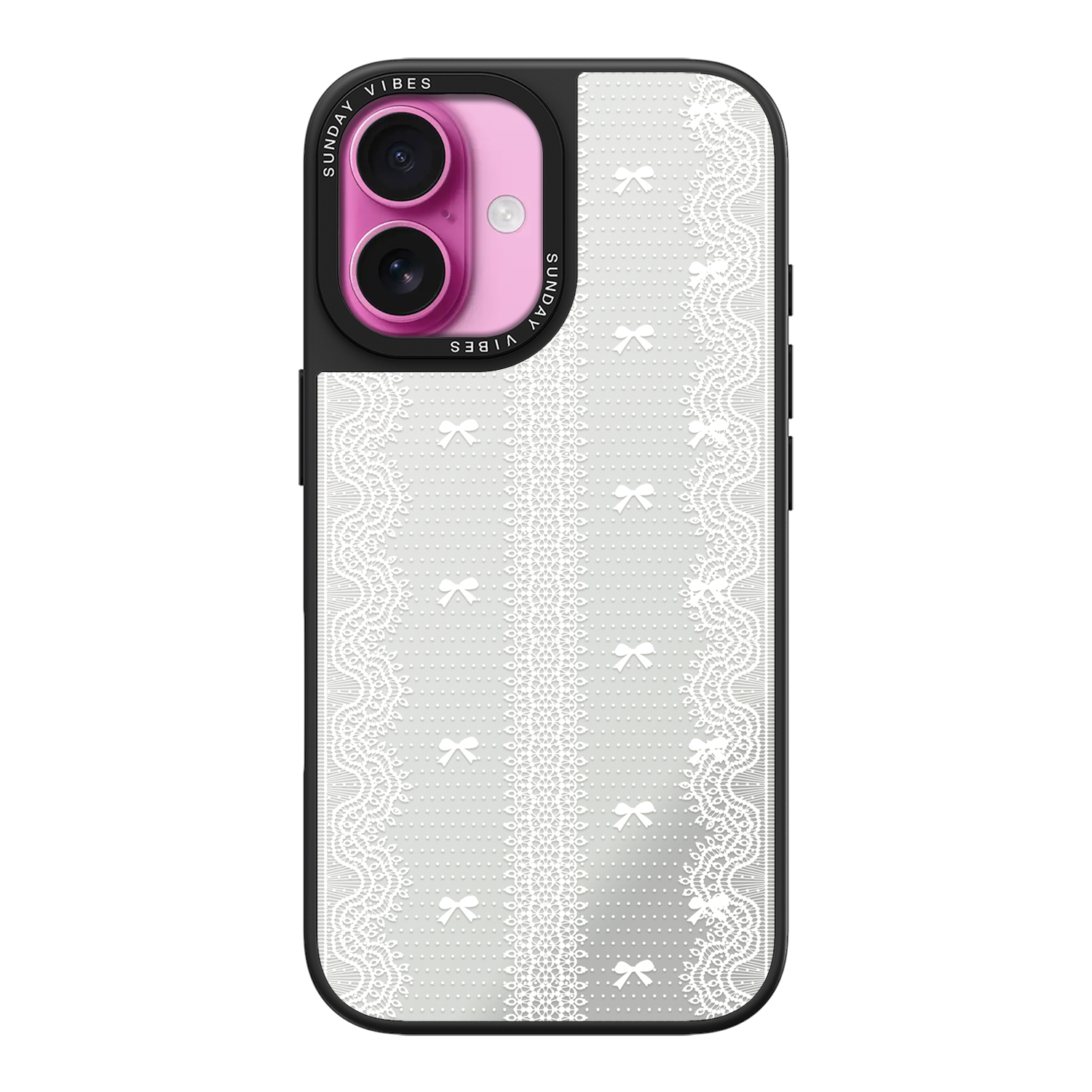 Elevate your look with the soft, ethereal beauty of the Lace Whisper iPhone Case. The detailed white lace and ribbon motif pops gracefully against the high-shine, reflective mirror backdrop, creating a dazzling, instantly sophisticated accessory. This design perfectly merges a delicate, feminine aesthetic with essential mirror convenience.