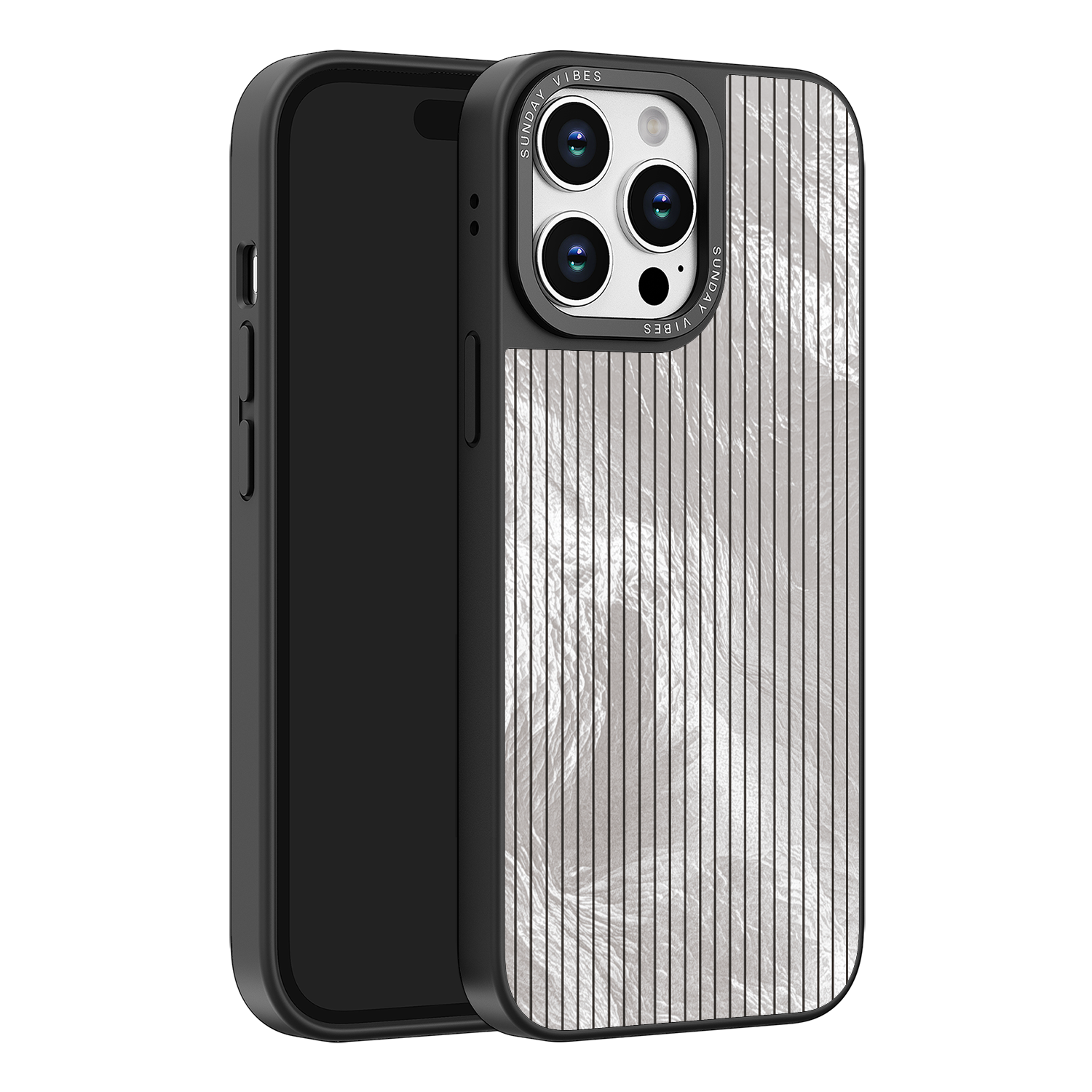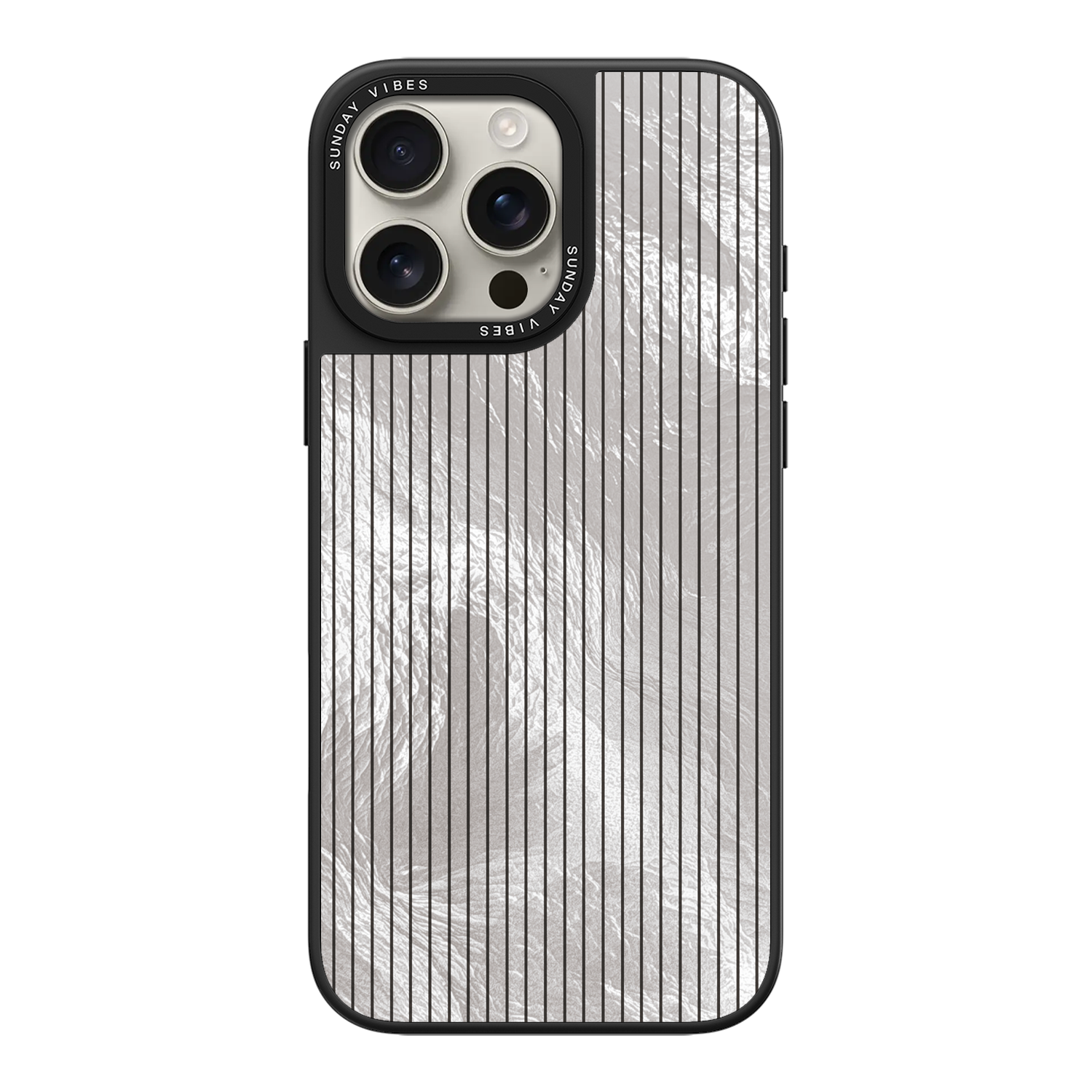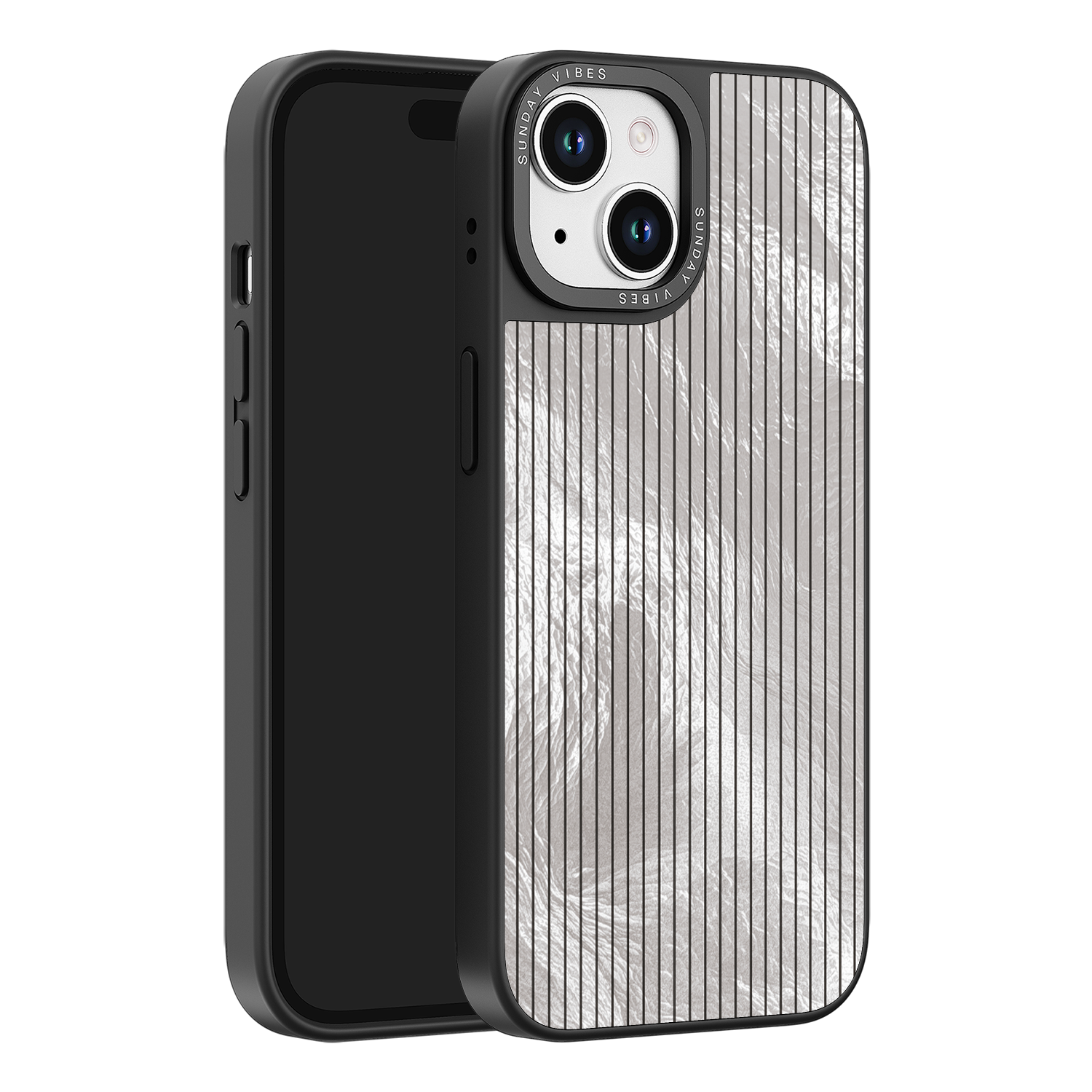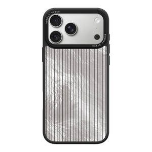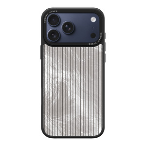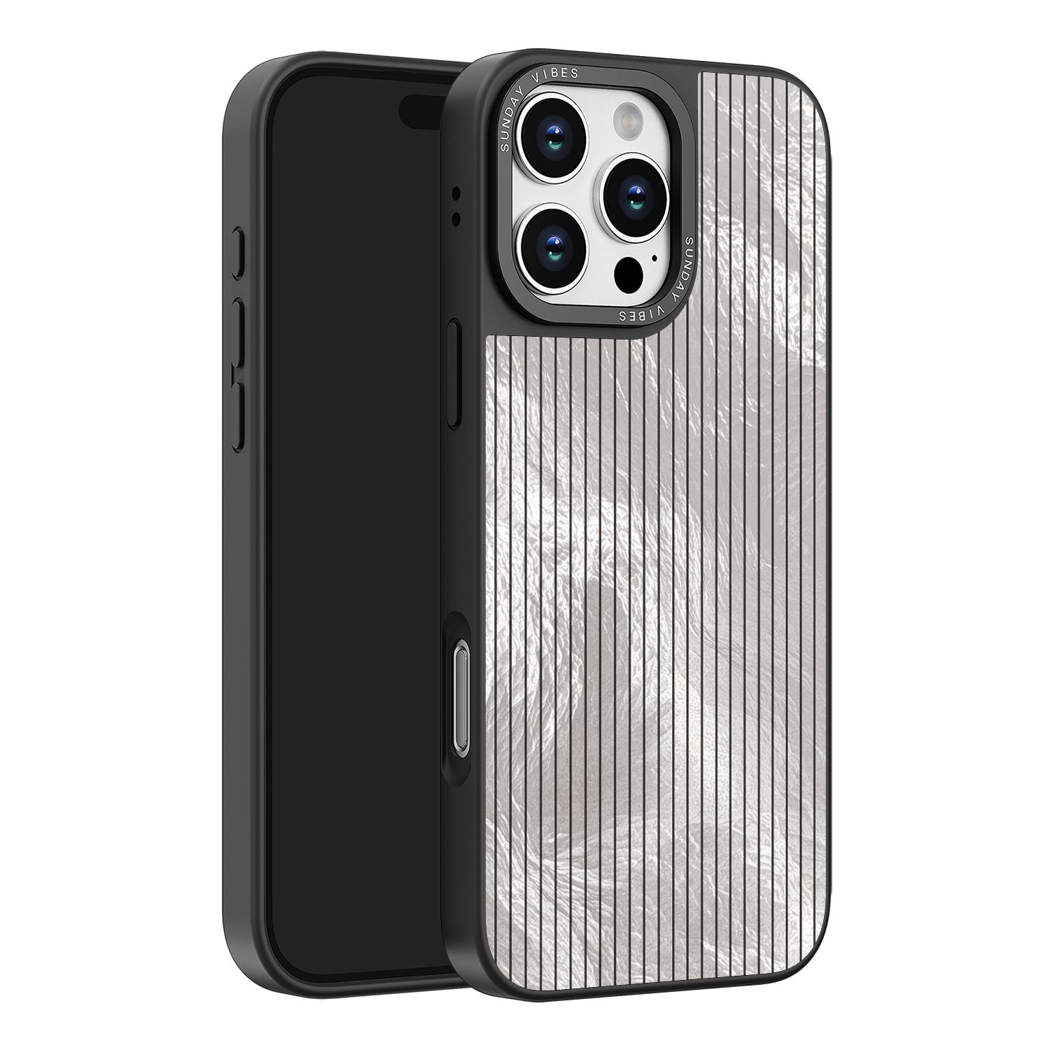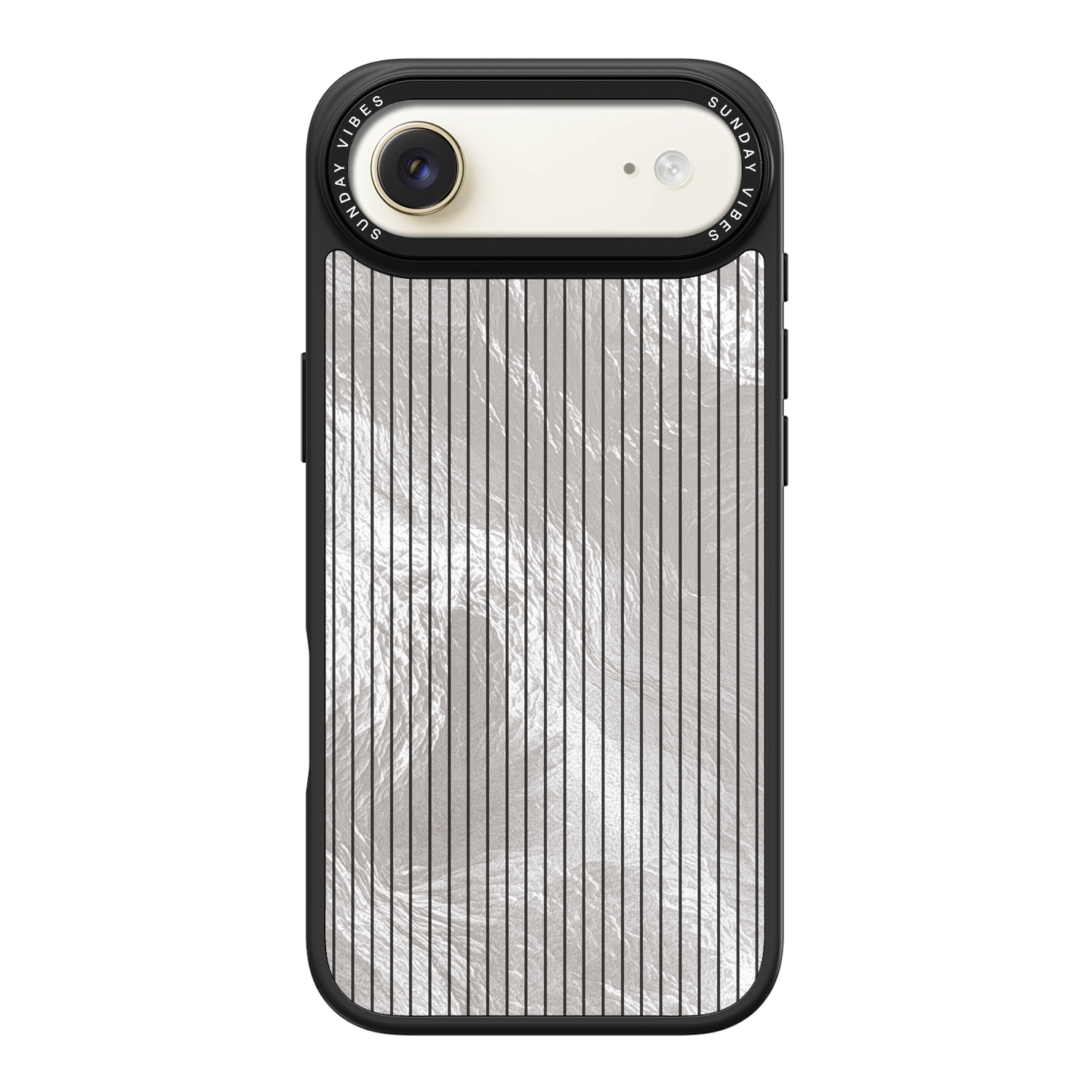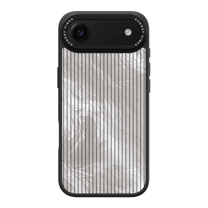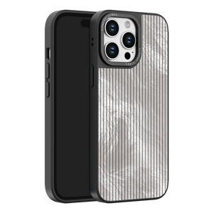 Make a futuristic and elegant statement with the Liquid Chrome iPhone Case. This striking design features sharp, black vertical lines contrasting against a brightly textured, light silver holographic background that shimmers like fluid metal. This modern aesthetic is perfect for those who favour sophisticated, high-contrast style. The case's structural integrity is delivered via a premium 3-layer back panel: featuring a base holographic layer with texture, an ultra HD gallery print layer, and a velvet smooth anti-scratch and anti-fingerprint top coating.