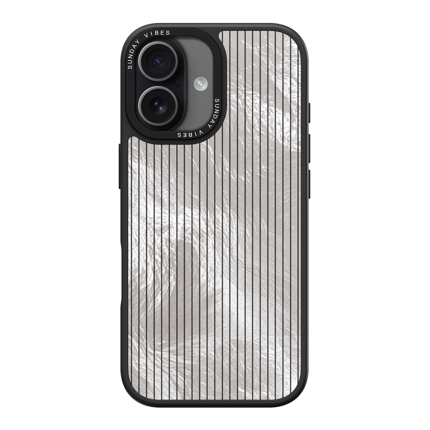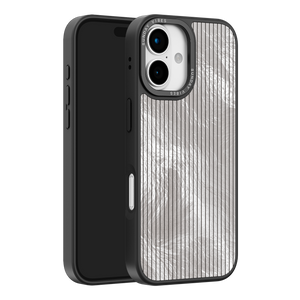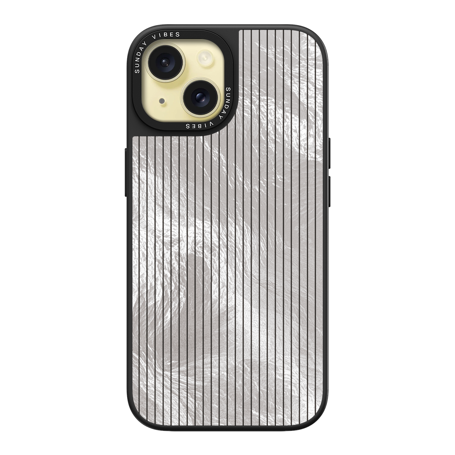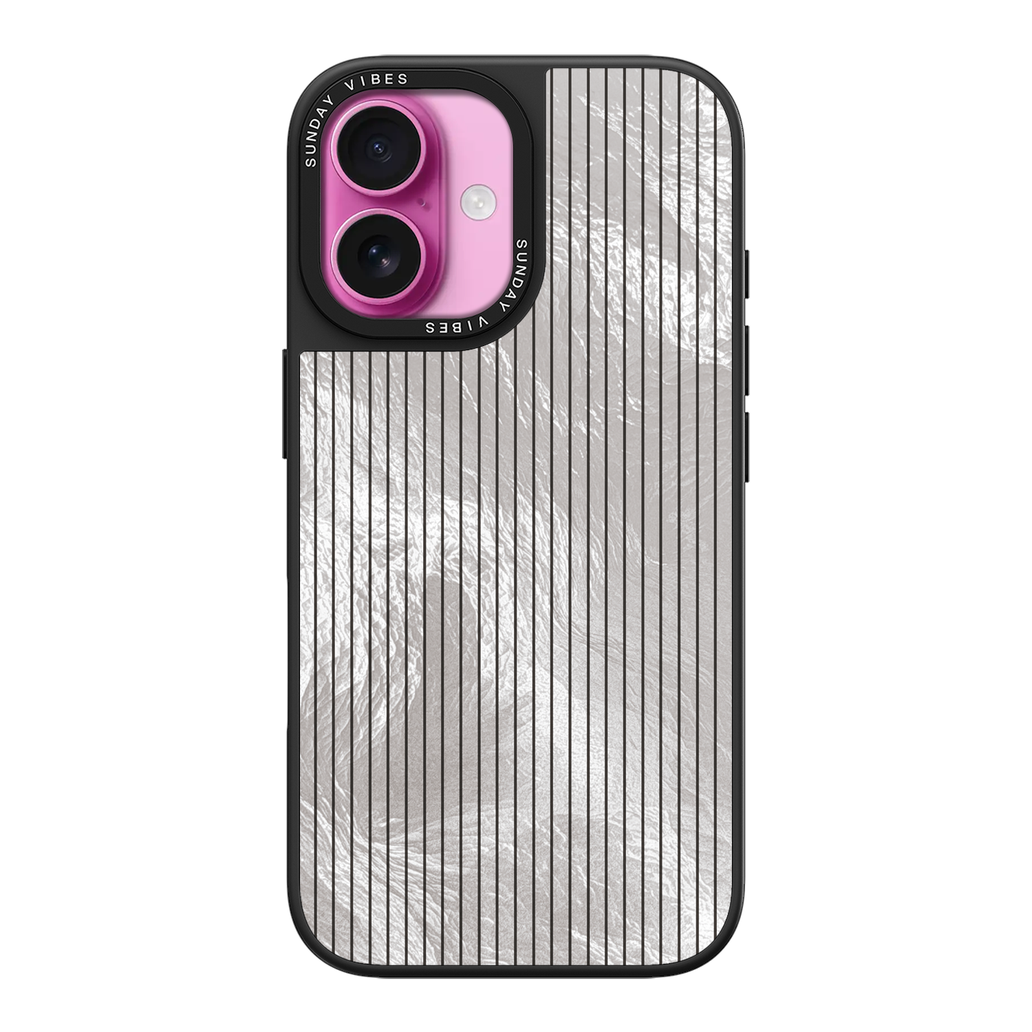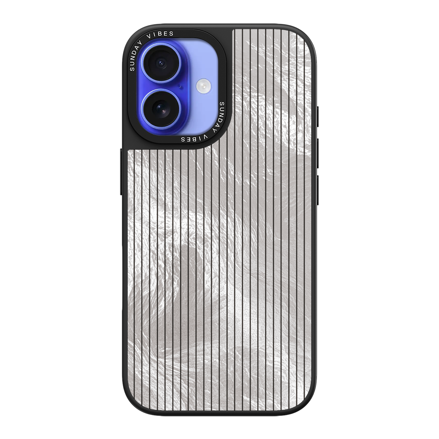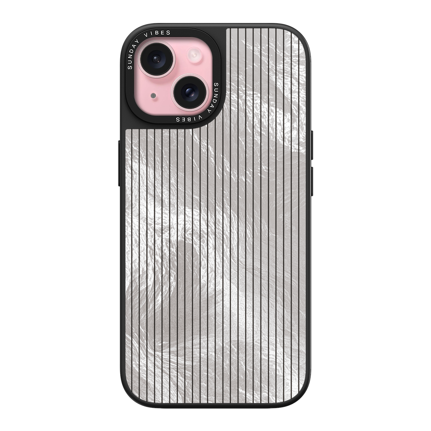 Make a futuristic and elegant statement with the Liquid Chrome iPhone Case. This striking design features sharp, black vertical lines contrasting against a brightly textured, light silver holographic background that shimmers like fluid metal. This modern aesthetic is perfect for those who favour sophisticated, high-contrast style. The case's structural integrity is delivered via a premium 3-layer back panel: featuring a base holographic layer with texture, an ultra HD gallery print layer, and a velvet smooth anti-scratch and anti-fingerprint top coating.