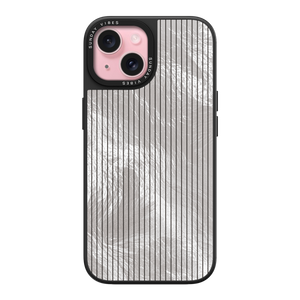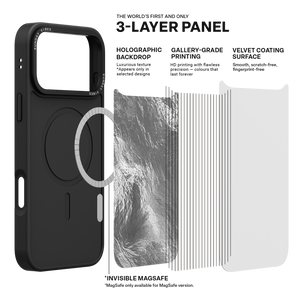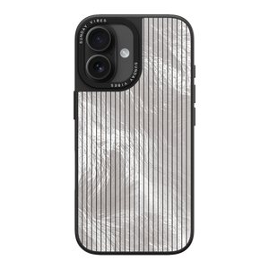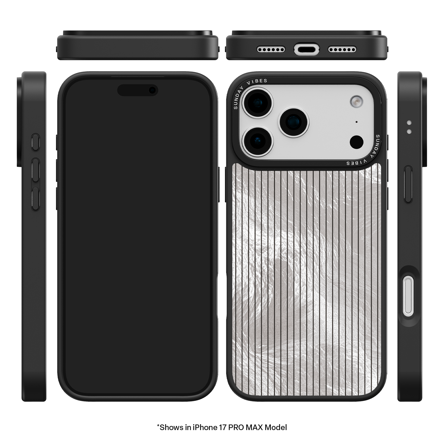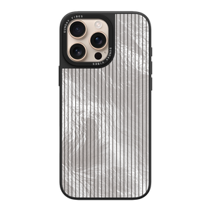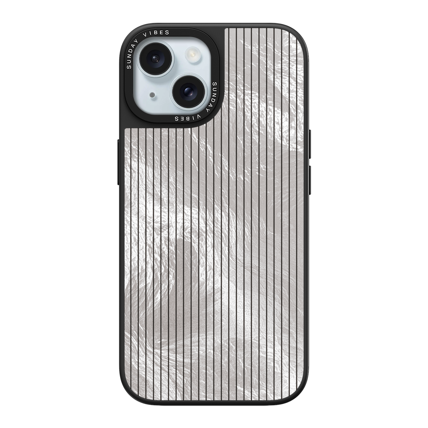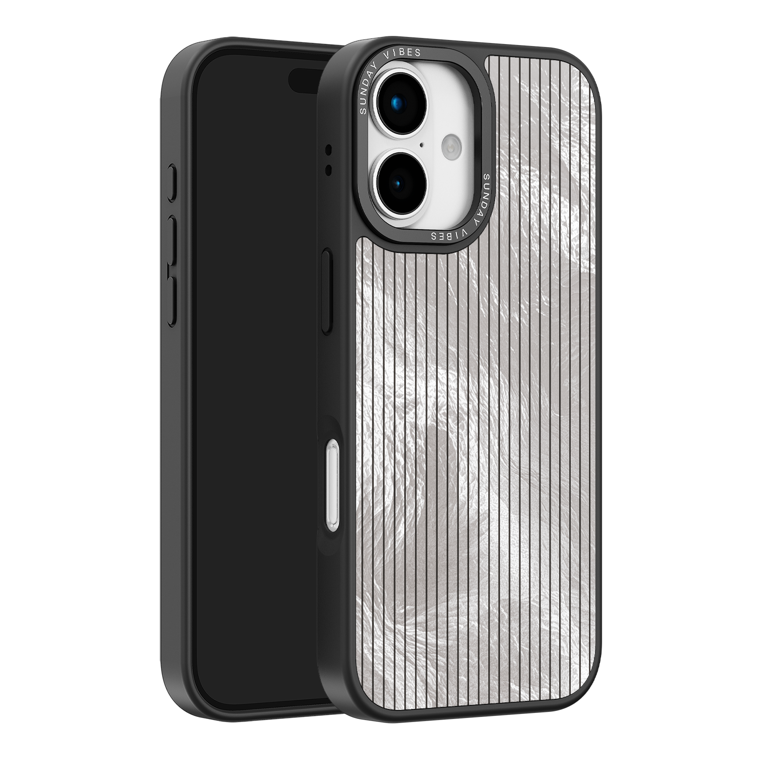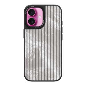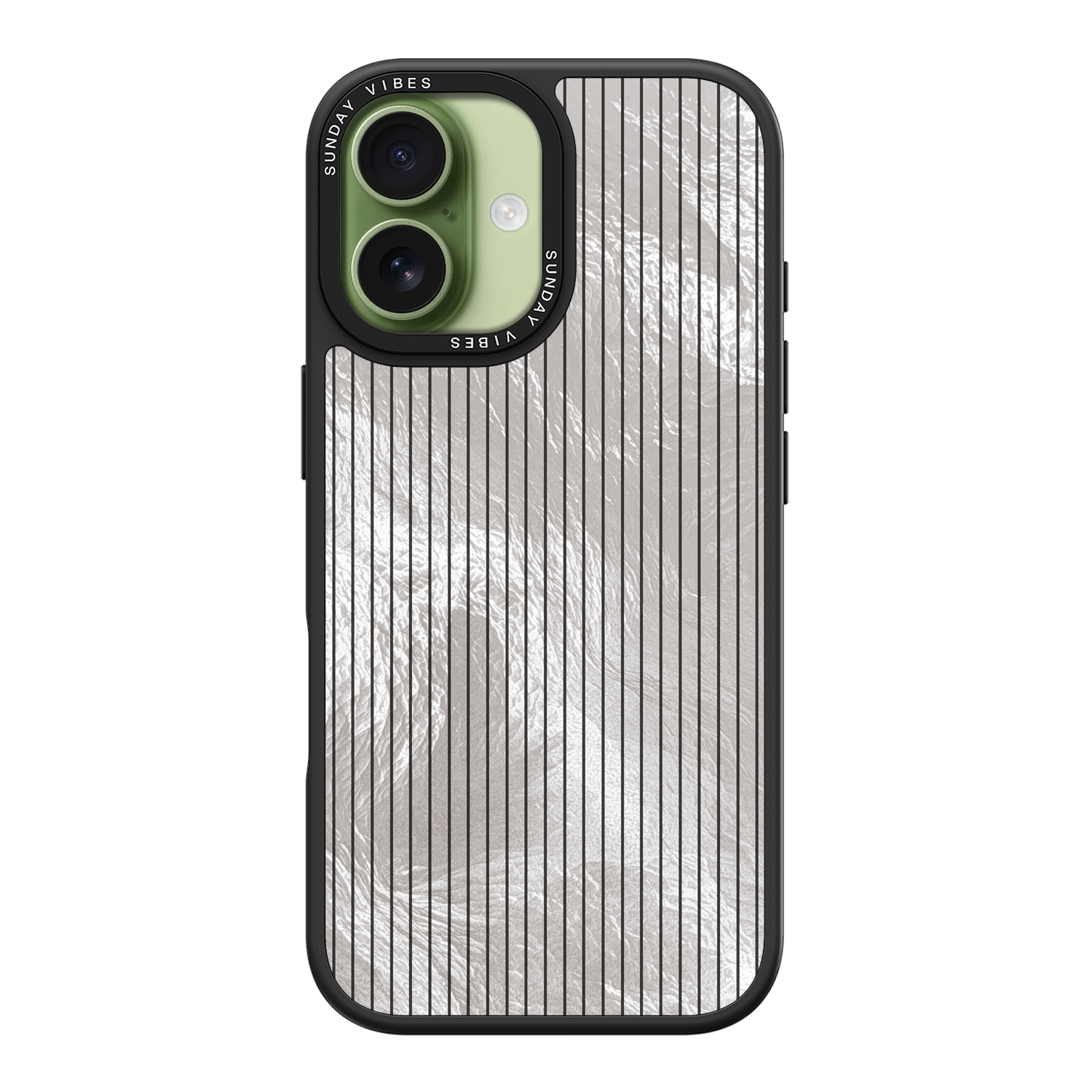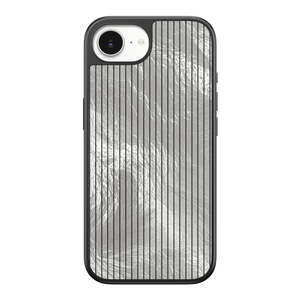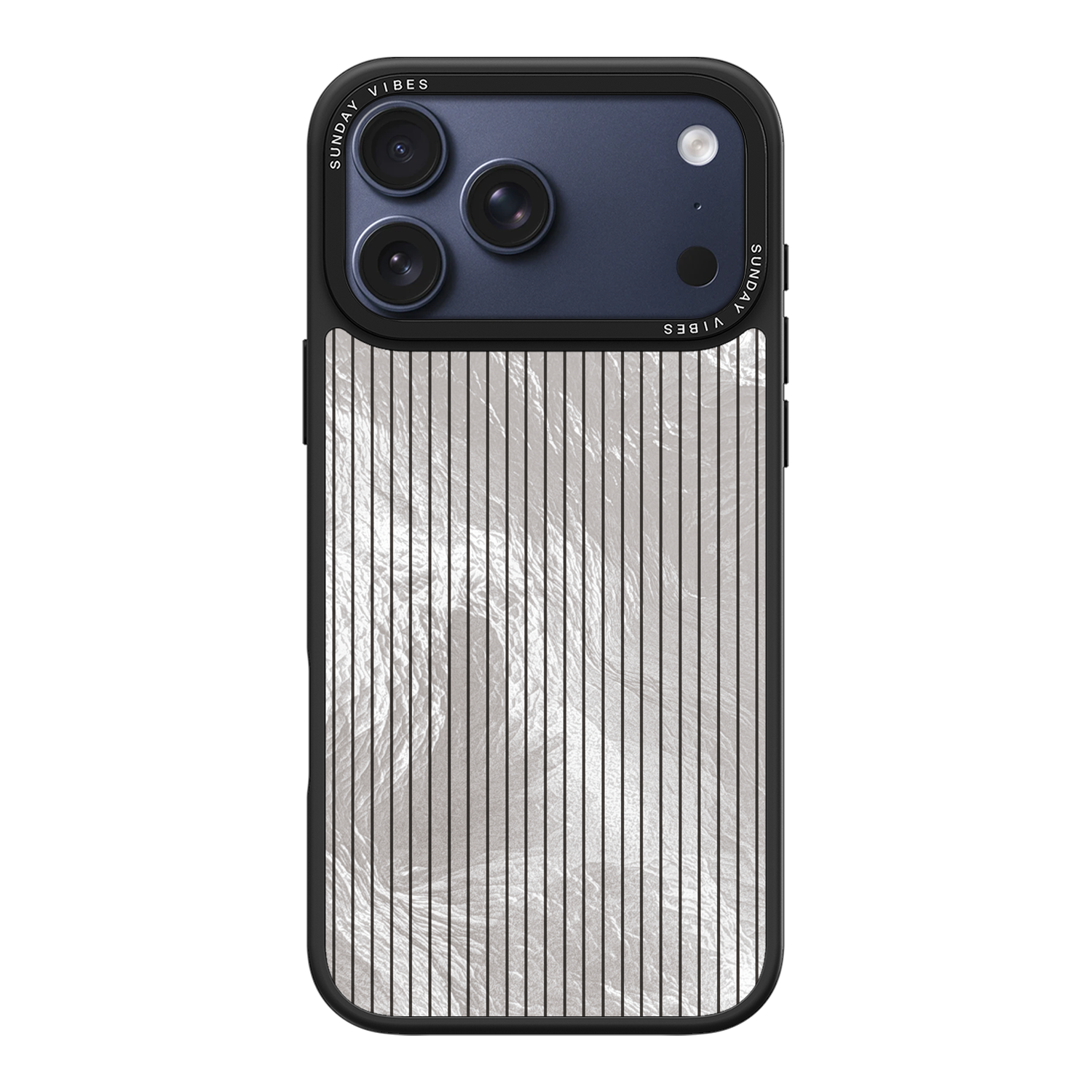 Make a futuristic and elegant statement with the Liquid Chrome iPhone Case. This striking design features sharp, black vertical lines contrasting against a brightly textured, light silver holographic background that shimmers like fluid metal. This modern aesthetic is perfect for those who favour sophisticated, high-contrast style. The case's structural integrity is delivered via a premium 3-layer back panel: featuring a base holographic layer with texture, an ultra HD gallery print layer, and a velvet smooth anti-scratch and anti-fingerprint top coating.