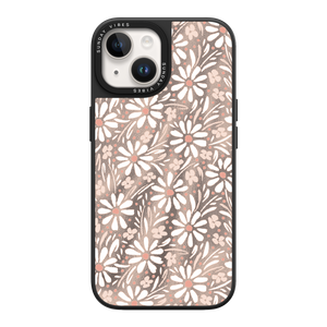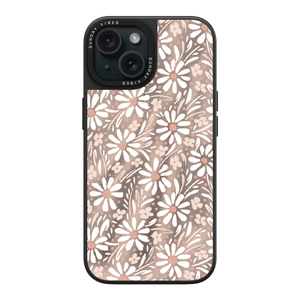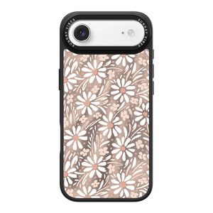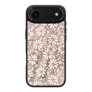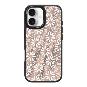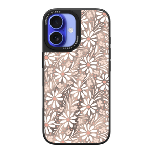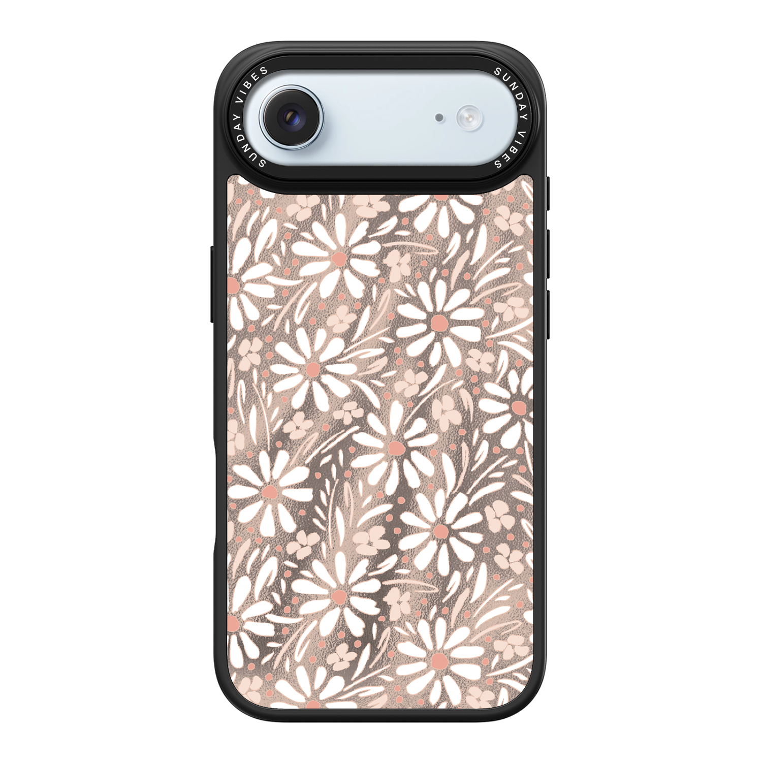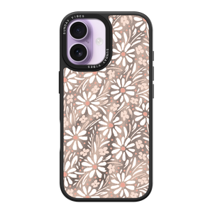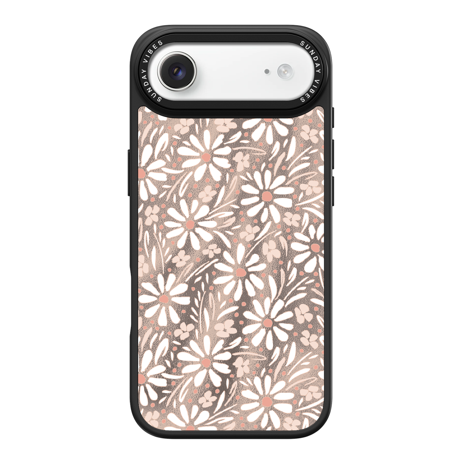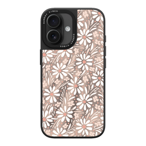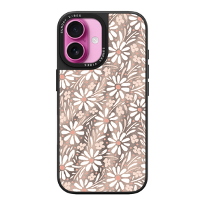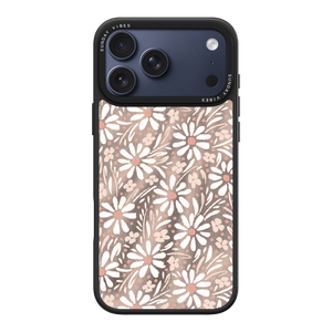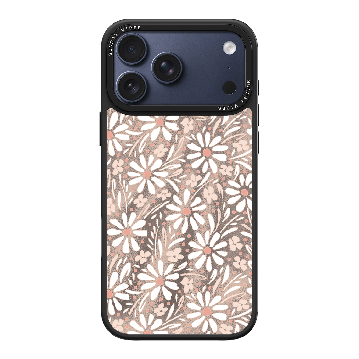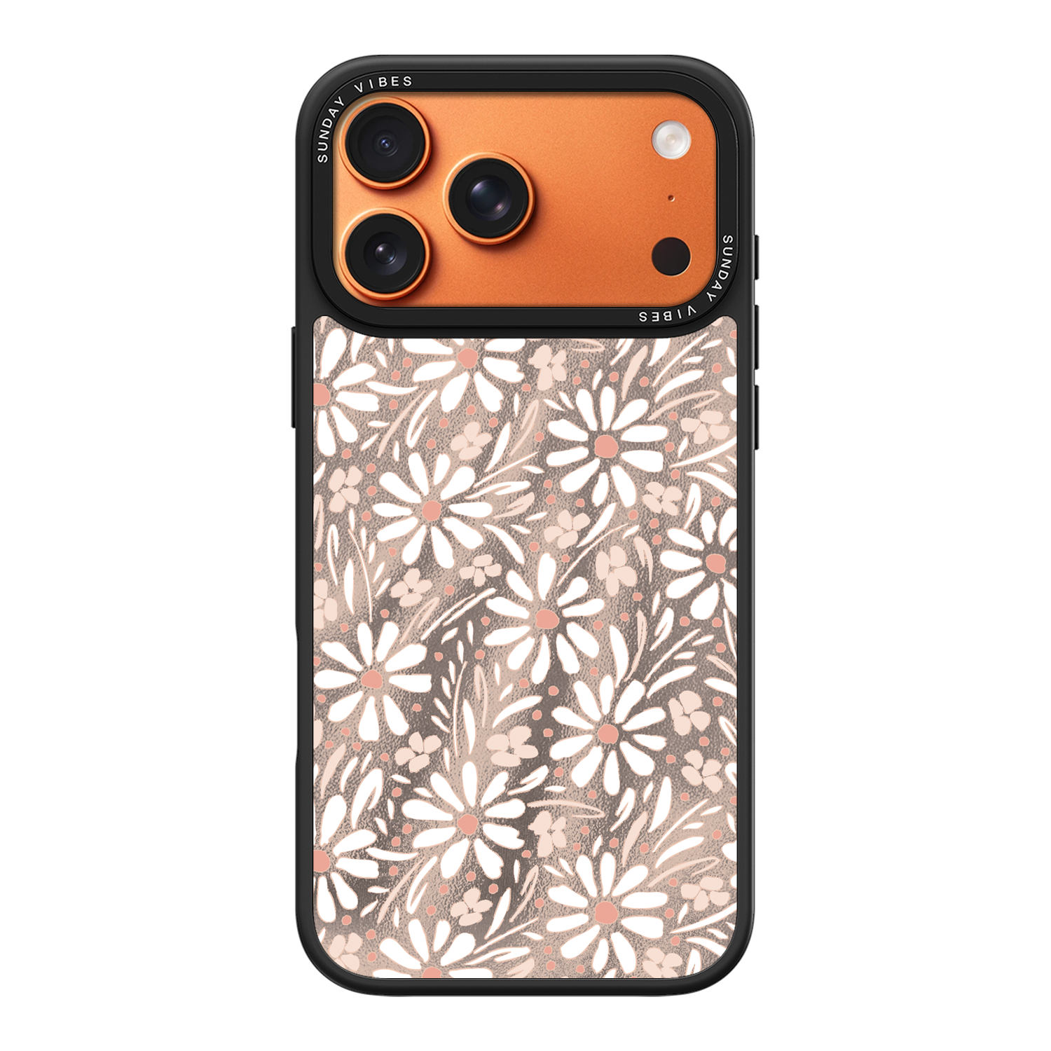 Discover the soft beauty of the Meadow Shimmer iPhone Case. This intricate design features a dense, vintage-style floral pattern of white daisies and delicate foliage, set against a warm, muted background that glows with a subtle holographic shimmer. This unique blend of cozy aesthetic and light-shifting texture creates a truly enchanting style. The case is built with a premium 3-layer back panel: a base holographic layer with texture, a middle ultra HD gallery print layer, and a velvet smooth anti-scratch and anti-fingerprint top coating.