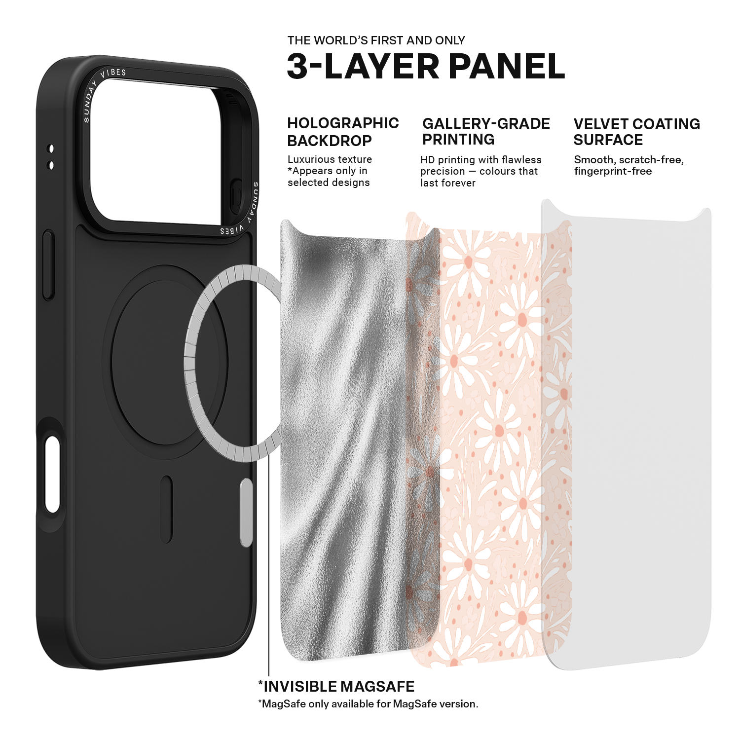 This protective phone case delivers robust daily protection. Its shockproof design is enhanced by raised camera and front bumpers, offering comprehensive screen and lens protection. Built to be incredibly slim and lightweight, it fits effortlessly. For MagSafe version cases, an invisible built-in MagSafe function is included, making this the essential stylish iPhone Case for poetic elegance.