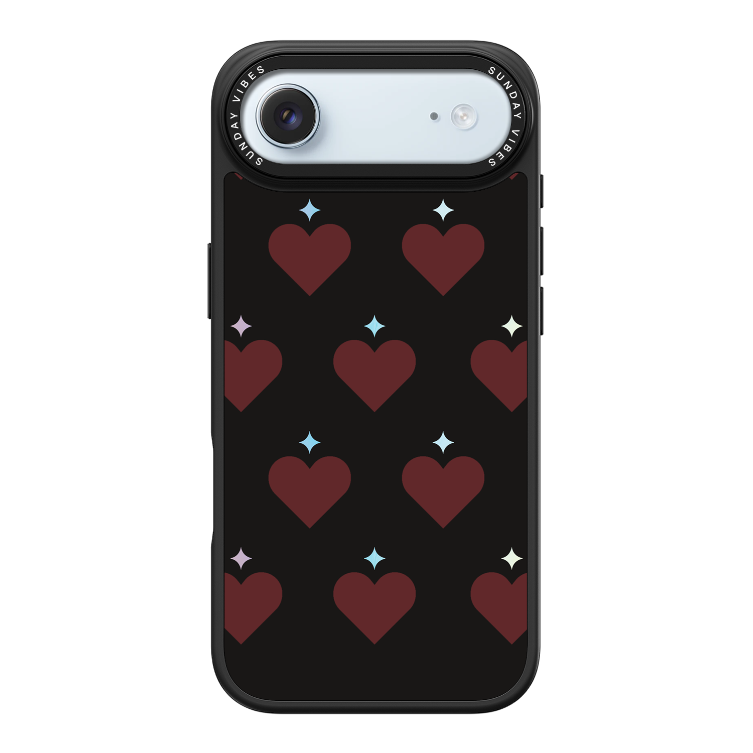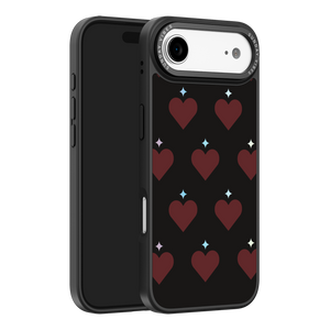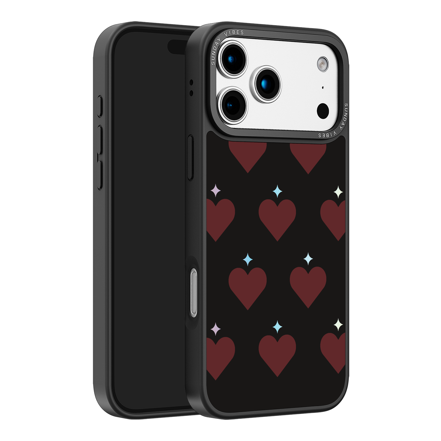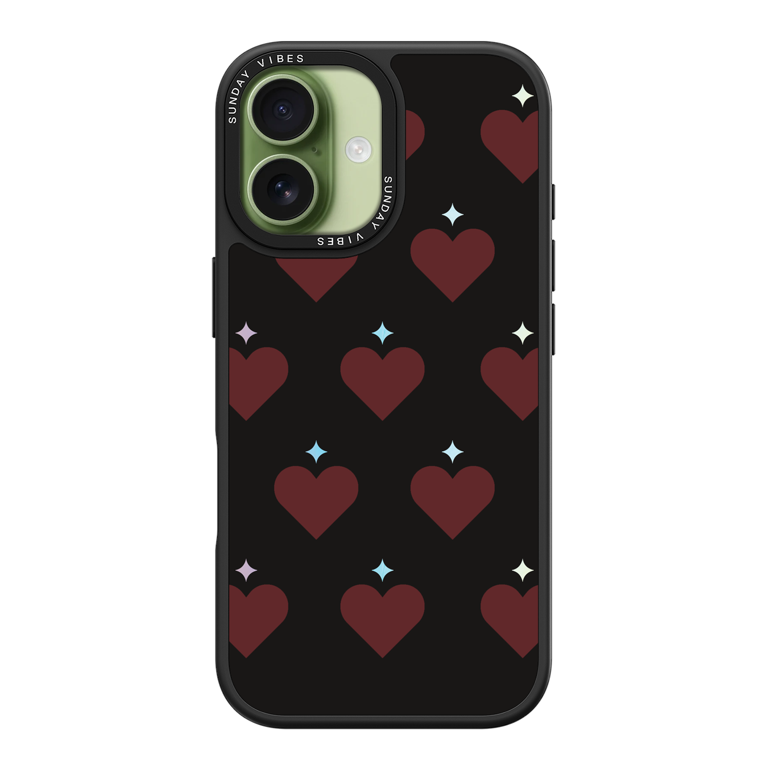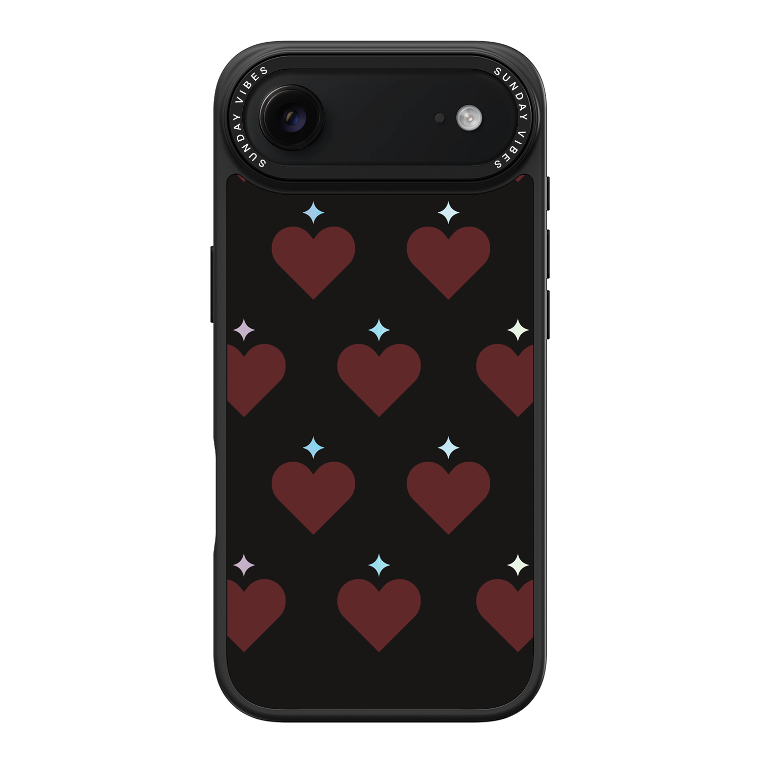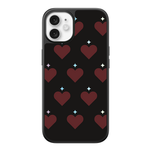 Capture the night with the Midnight Wish iPhone Case. This design presents a sleek, dark aesthetic with deep maroon hearts set against a black ground. The key feature is the dynamic holographic star detail, shifting in the light to ensure your device catches every eye. This is a premium protective phone case engineered with a durable, shockproof perimeter to safeguard your gear from daily knocks. It maintains a genuinely slim fit profile and is fully scratch-resistant, ensuring lasting quality and style for your iPhone Case. A perfect blend of aesthetic and substance.