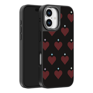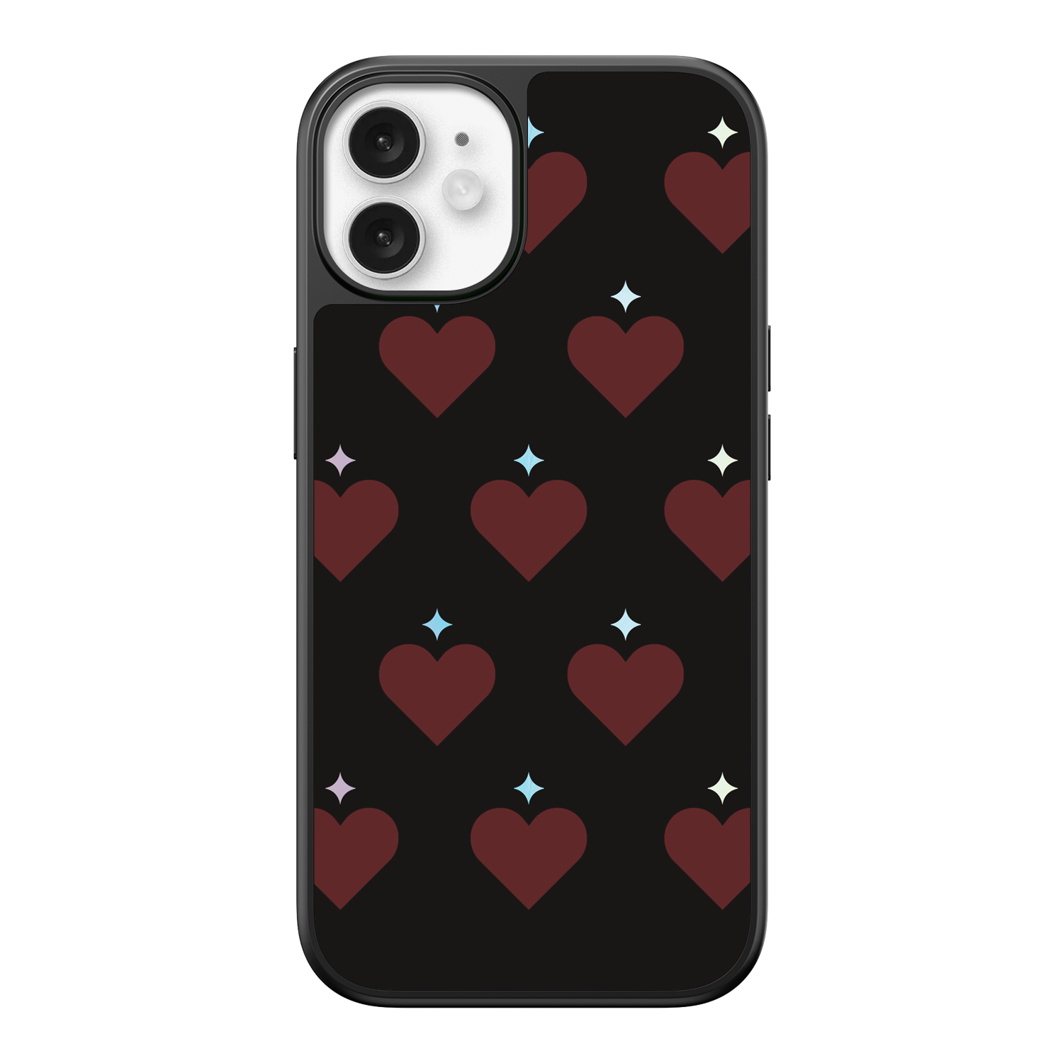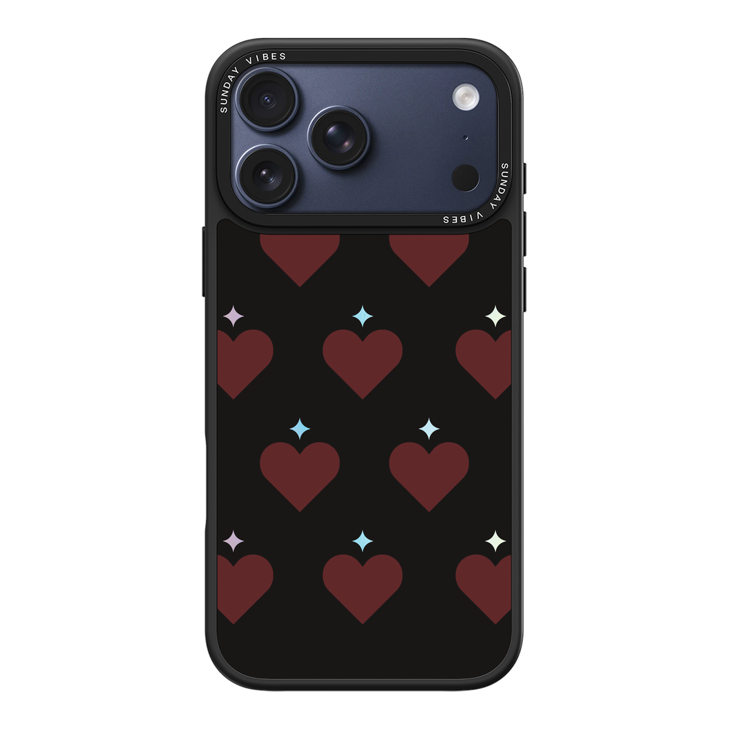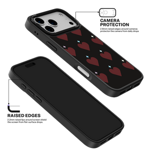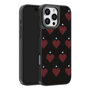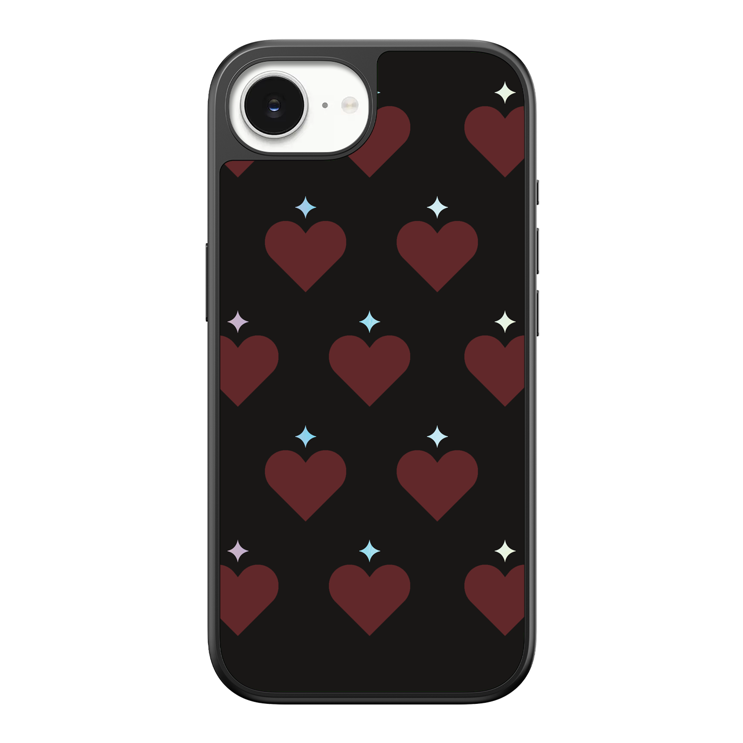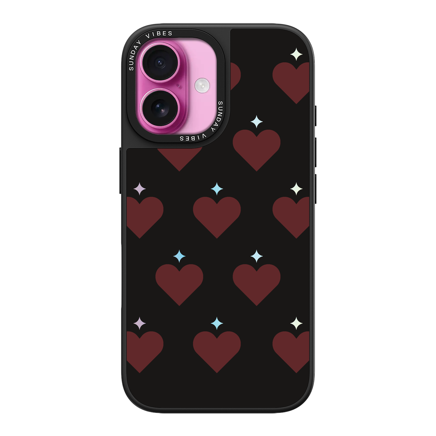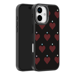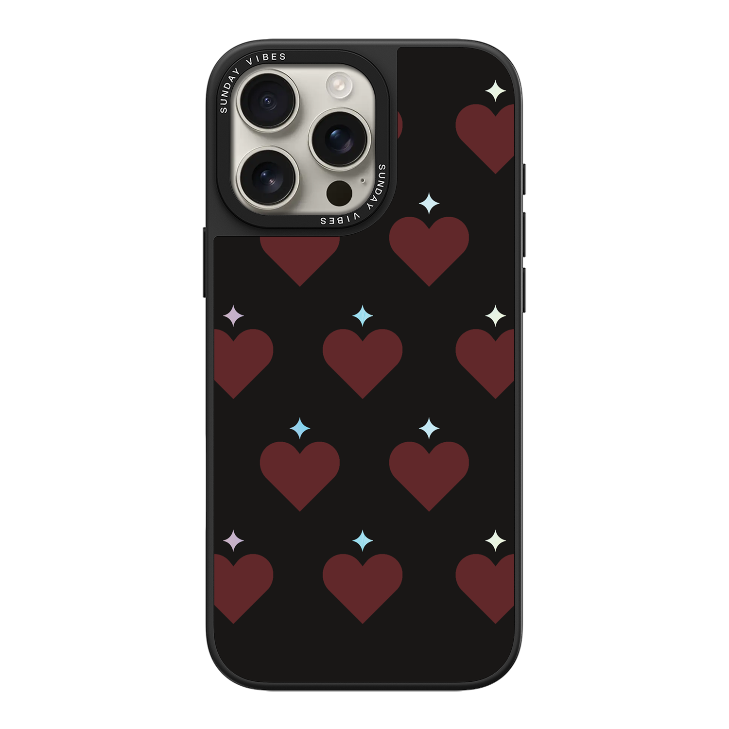 Capture the night with the Midnight Wish iPhone Case. This design presents a sleek, dark aesthetic with deep maroon hearts set against a black ground. The key feature is the dynamic holographic star detail, shifting in the light to ensure your device catches every eye. This is a premium protective phone case engineered with a durable, shockproof perimeter to safeguard your gear from daily knocks. It maintains a genuinely slim fit profile and is fully scratch-resistant, ensuring lasting quality and style for your iPhone Case. A perfect blend of aesthetic and substance.