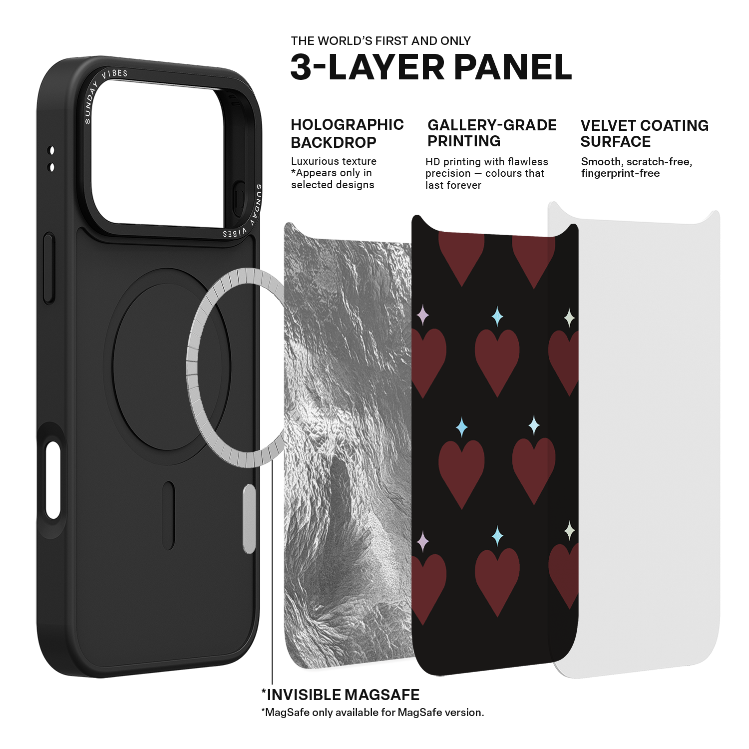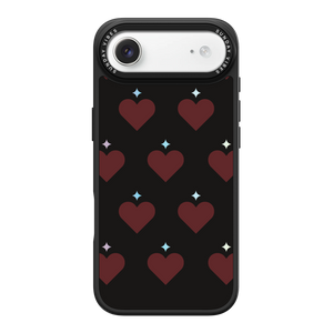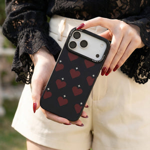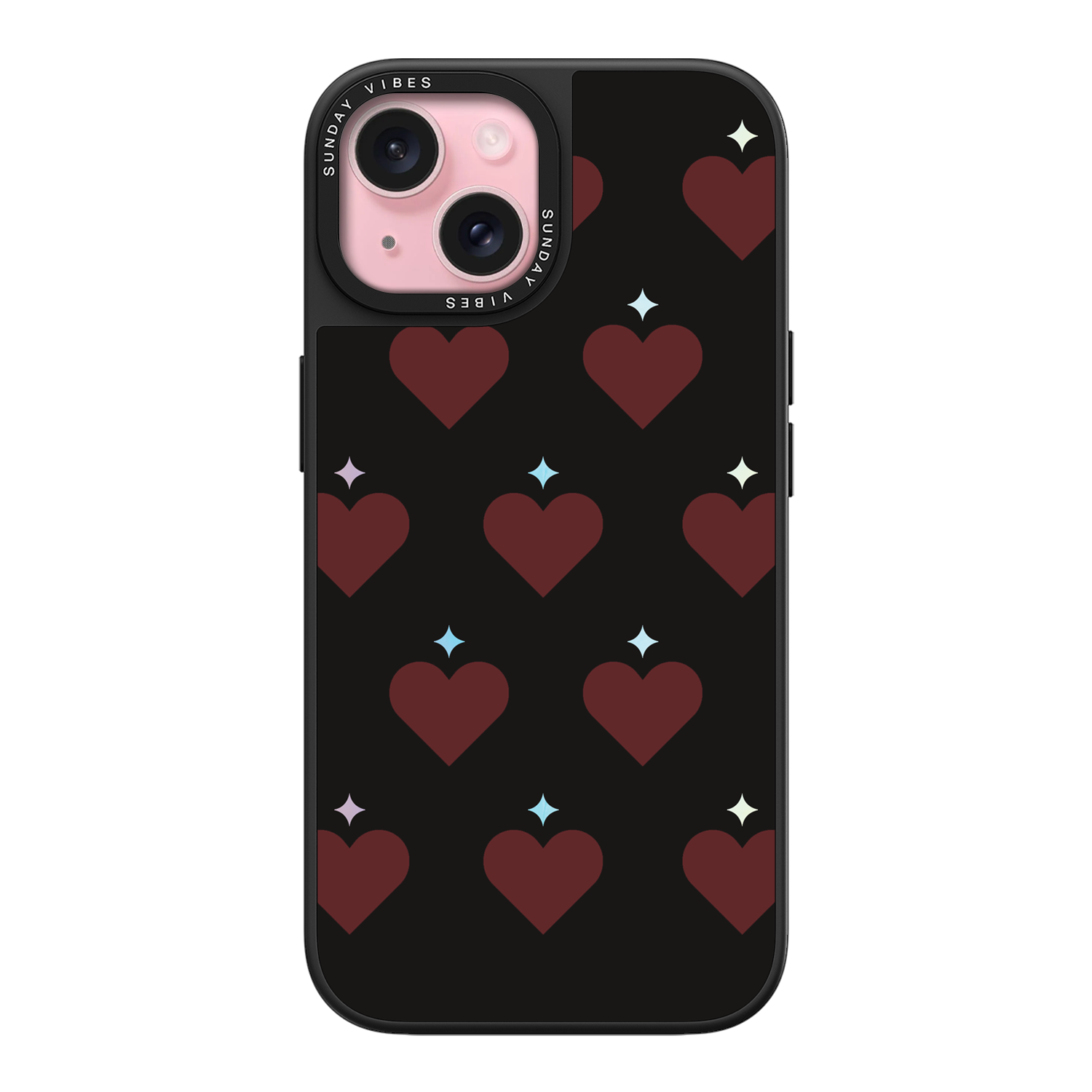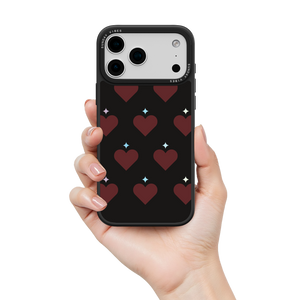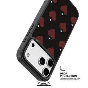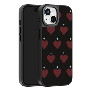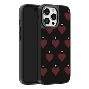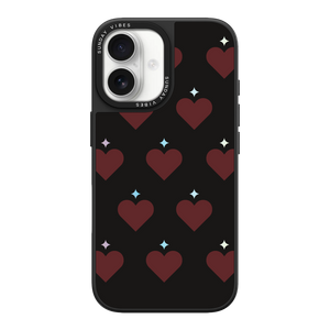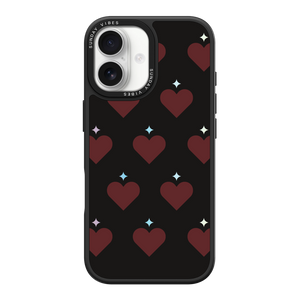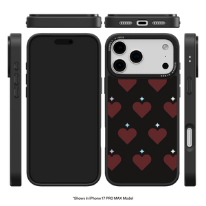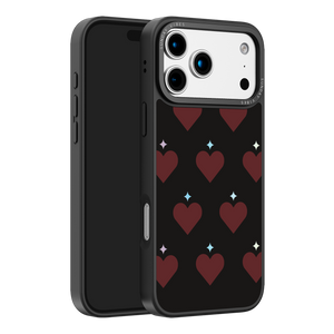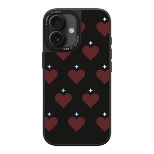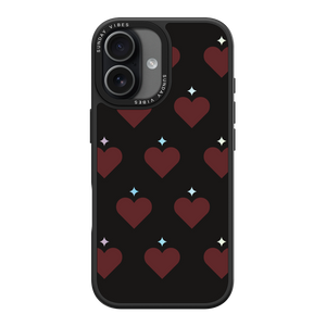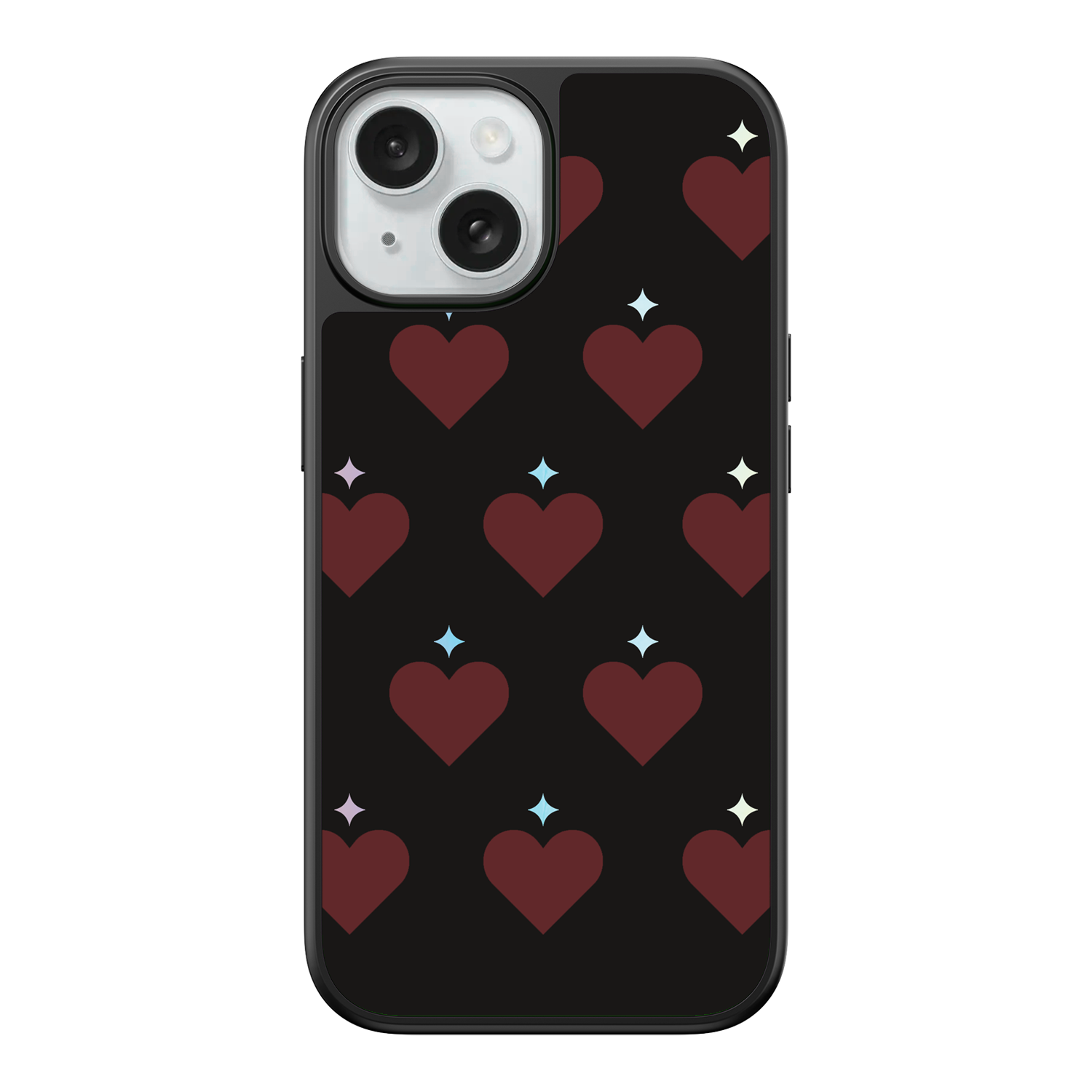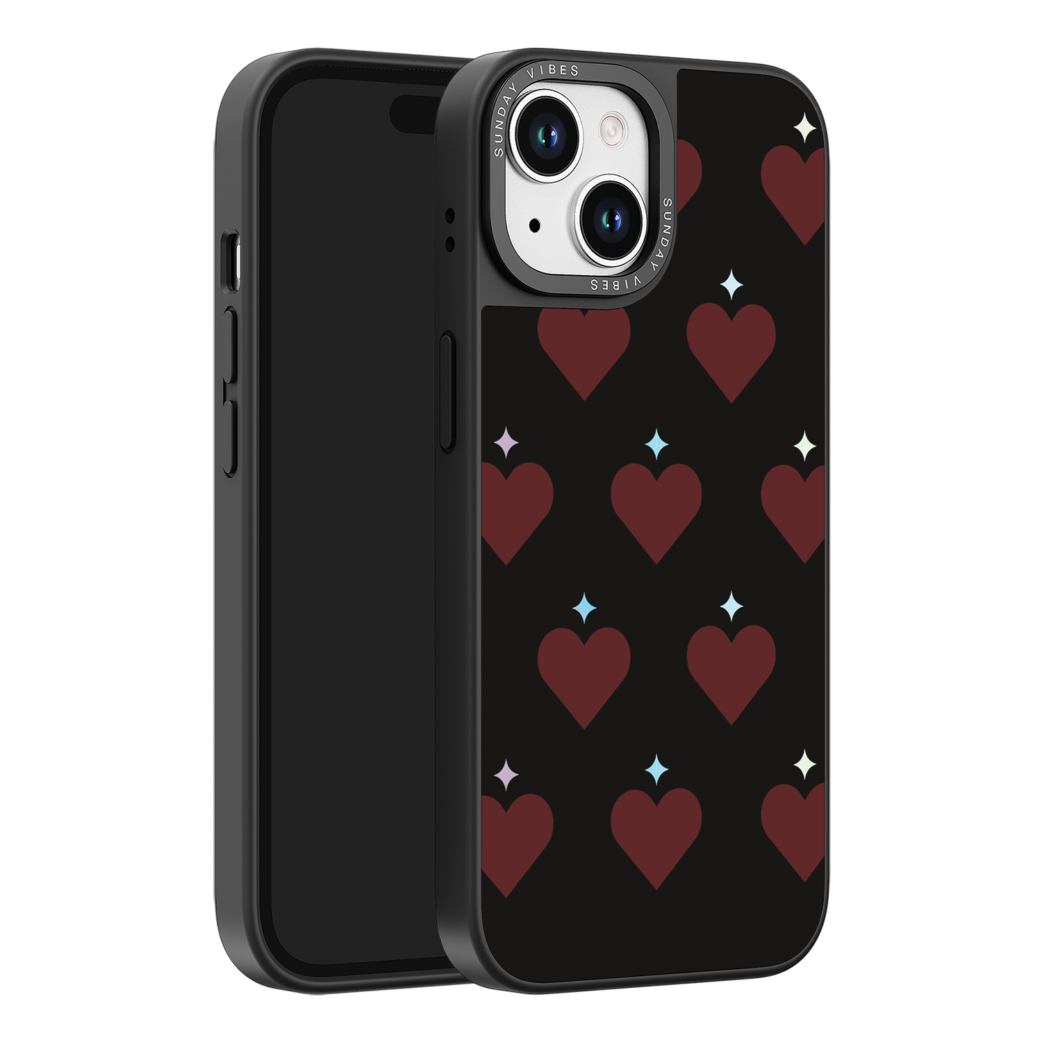 Capture the night with the Midnight Wish iPhone Case. This design presents a sleek, dark aesthetic with deep maroon hearts set against a black ground. The key feature is the dynamic holographic star detail, shifting in the light to ensure your device catches every eye. This is a premium protective phone case engineered with a durable, shockproof perimeter to safeguard your gear from daily knocks. It maintains a genuinely slim fit profile and is fully scratch-resistant, ensuring lasting quality and style for your iPhone Case. A perfect blend of aesthetic and substance.