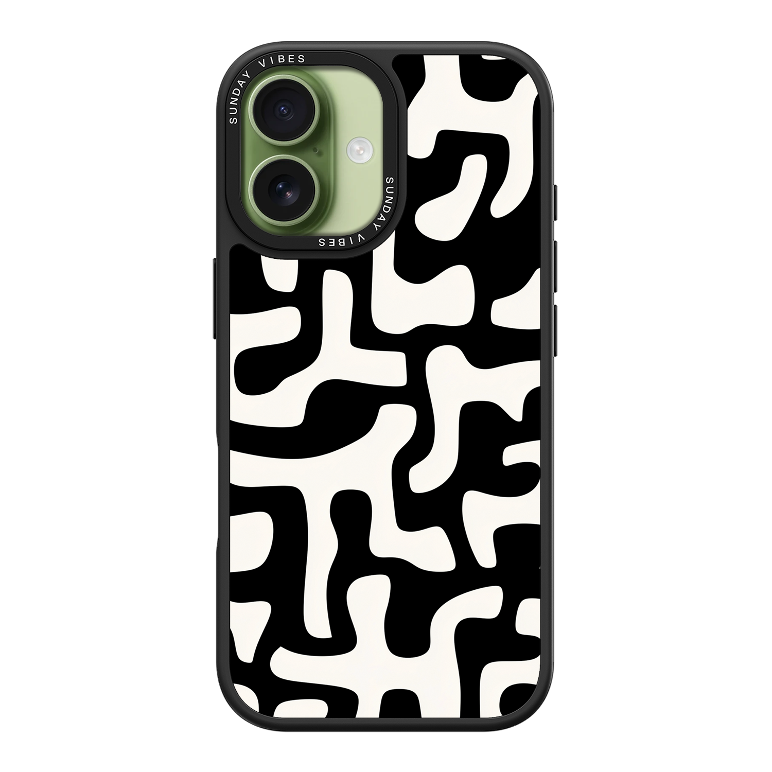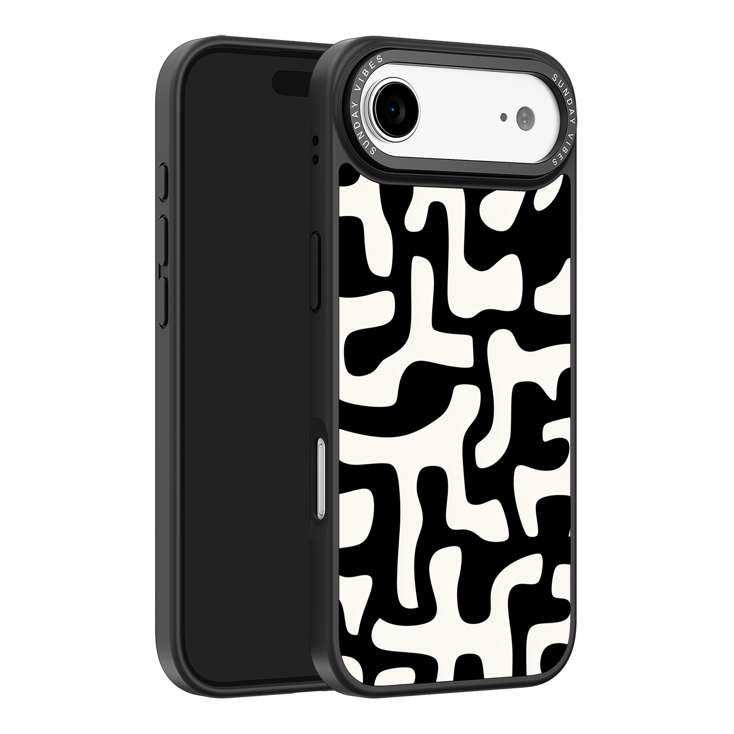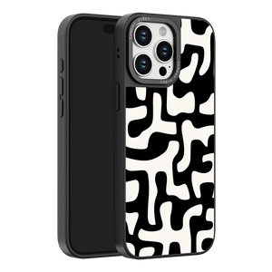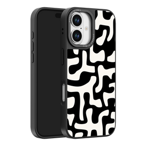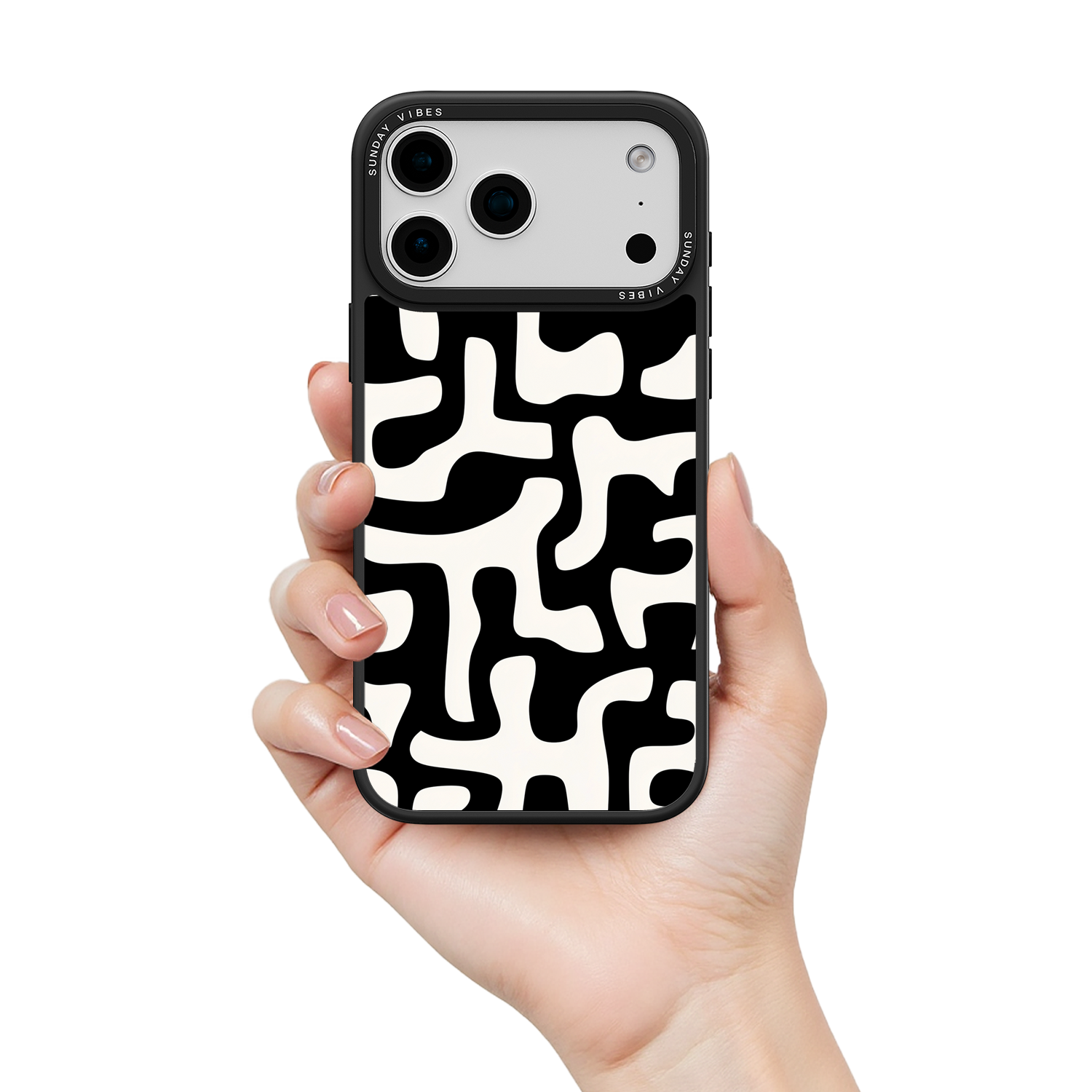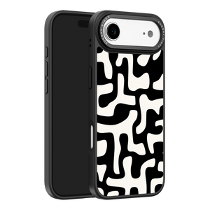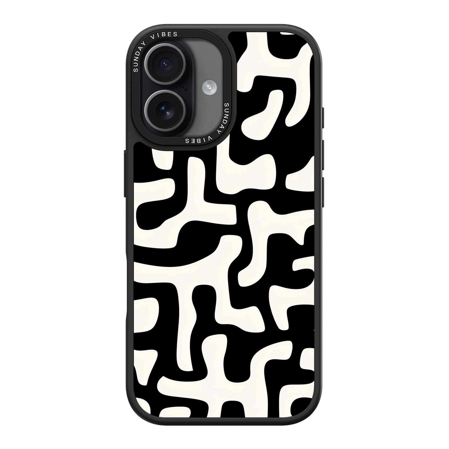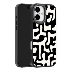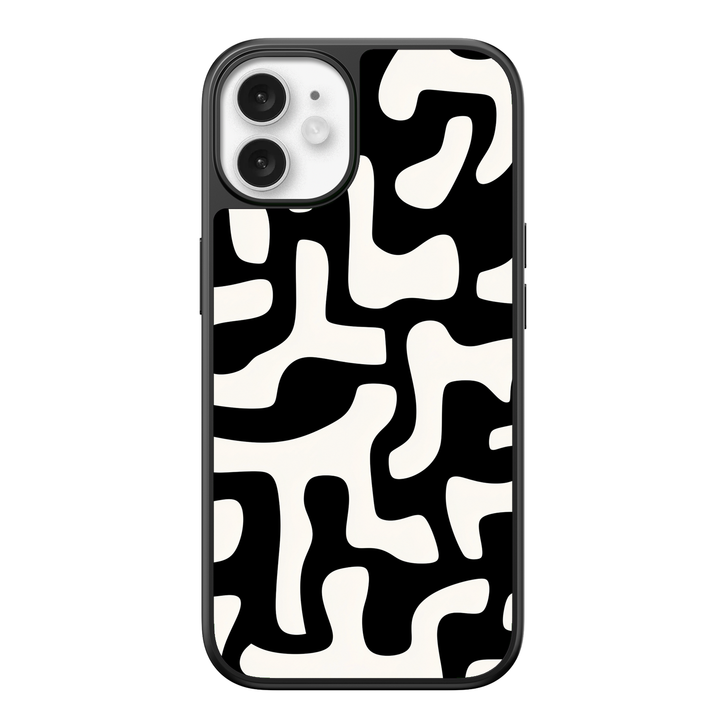 Adorn your device with the bold, graphic style of the Monochrome Moo iPhone Case. This striking design showcases an abstract, high-contrast pattern of intertwining black and cream shapes, nodding cleverly to a modern cow print aesthetic. The clean lines and strong contrast transform your phone into an instantly quirky and stylish accessory. The core aesthetic integrity is preserved by the case's premium 3-layer back panel: a base layer for protection, a middle ultra HD gallery print layer for precise detail, and a velvet smooth anti-scratch and anti-fingerprint top coating.