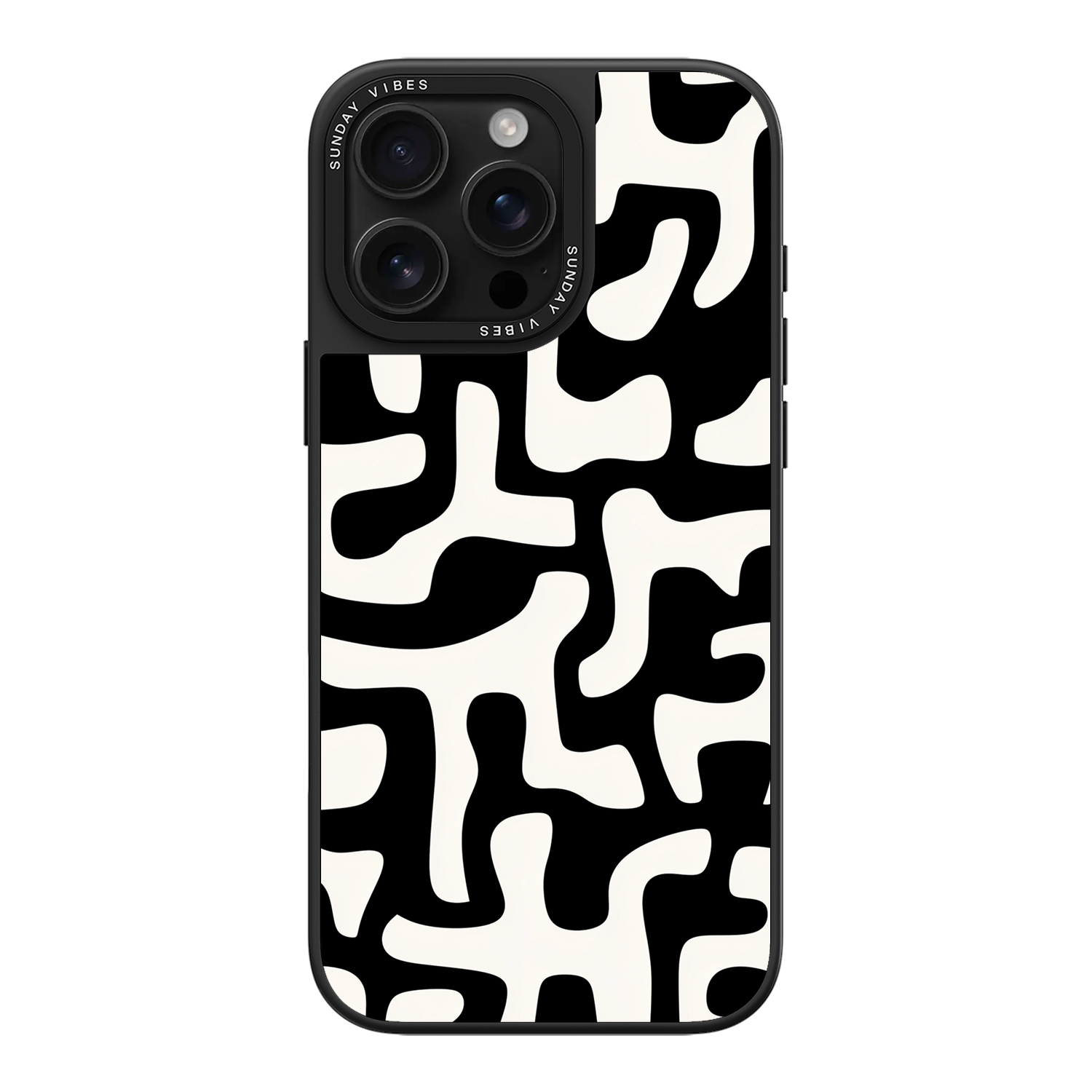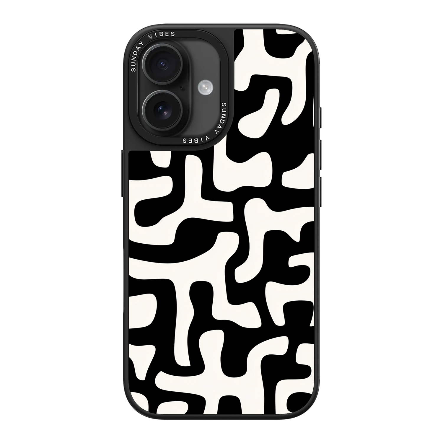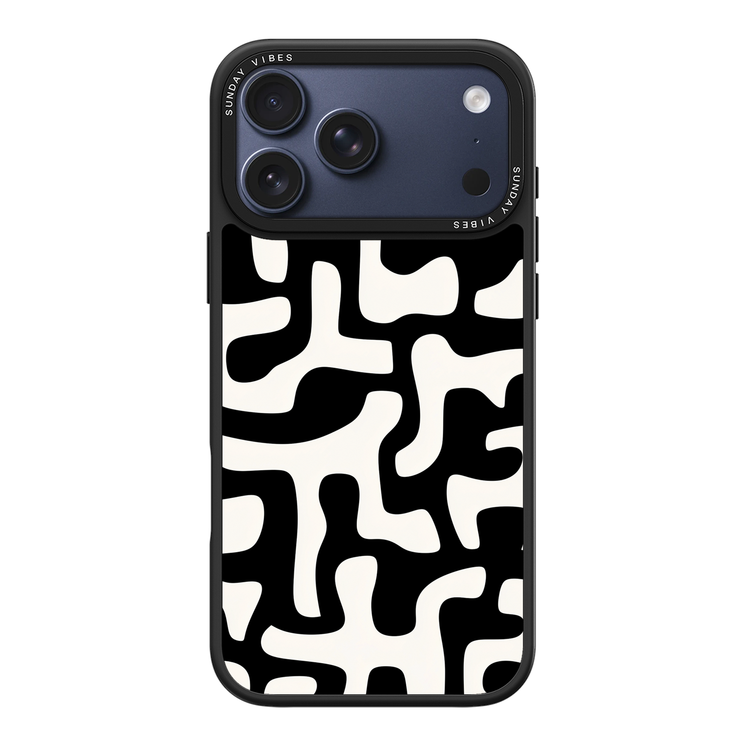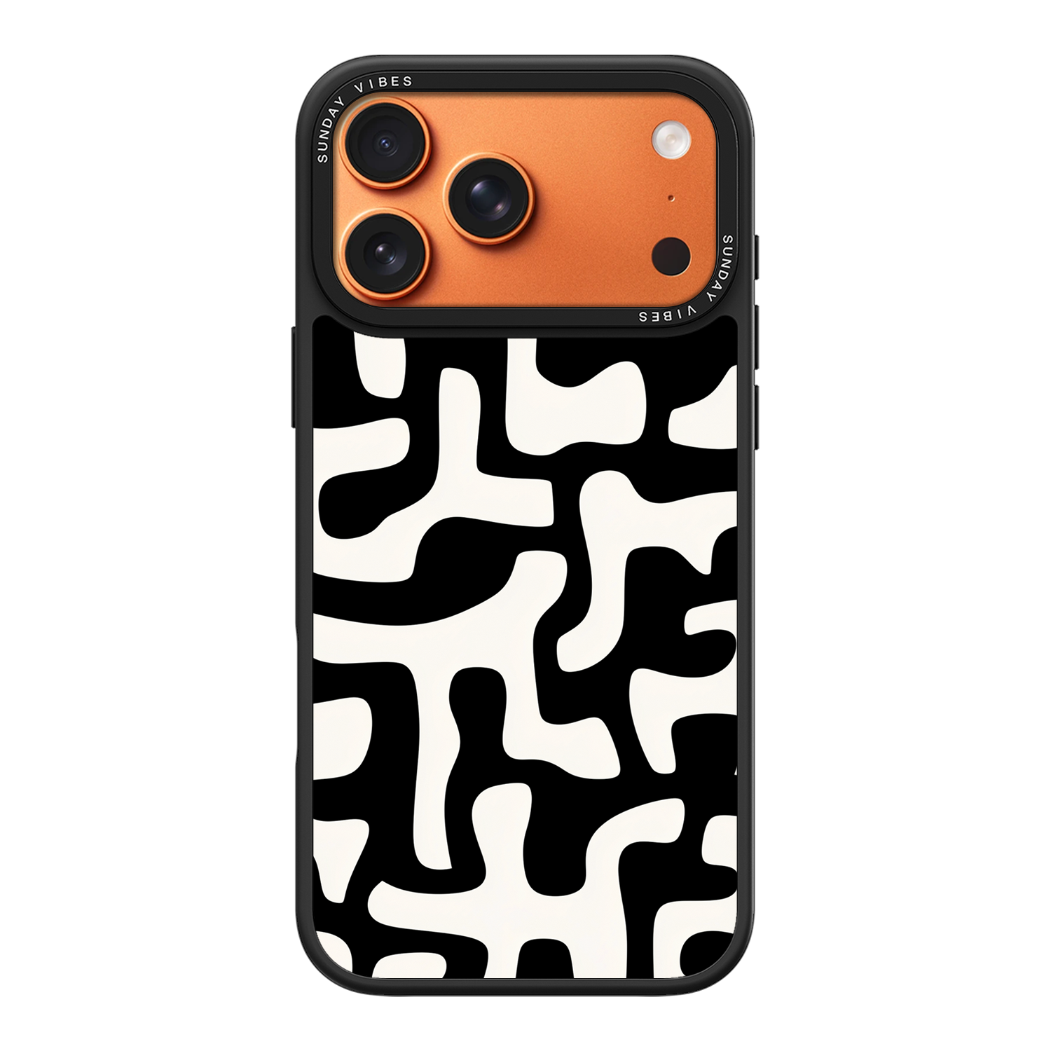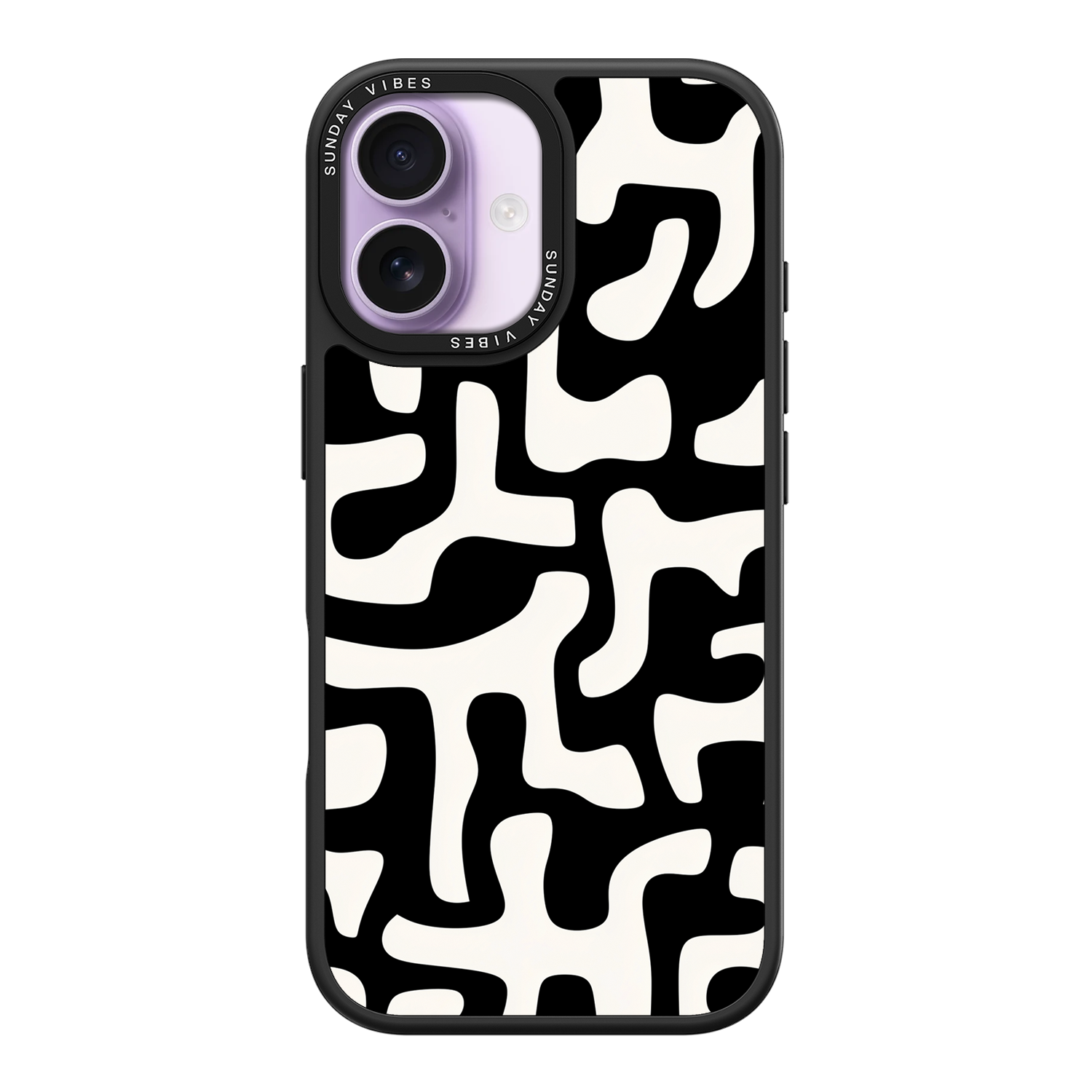 Adorn your device with the bold, graphic style of the Monochrome Moo iPhone Case. This striking design showcases an abstract, high-contrast pattern of intertwining black and cream shapes, nodding cleverly to a modern cow print aesthetic. The clean lines and strong contrast transform your phone into an instantly quirky and stylish accessory. The core aesthetic integrity is preserved by the case's premium 3-layer back panel: a base layer for protection, a middle ultra HD gallery print layer for precise detail, and a velvet smooth anti-scratch and anti-fingerprint top coating.