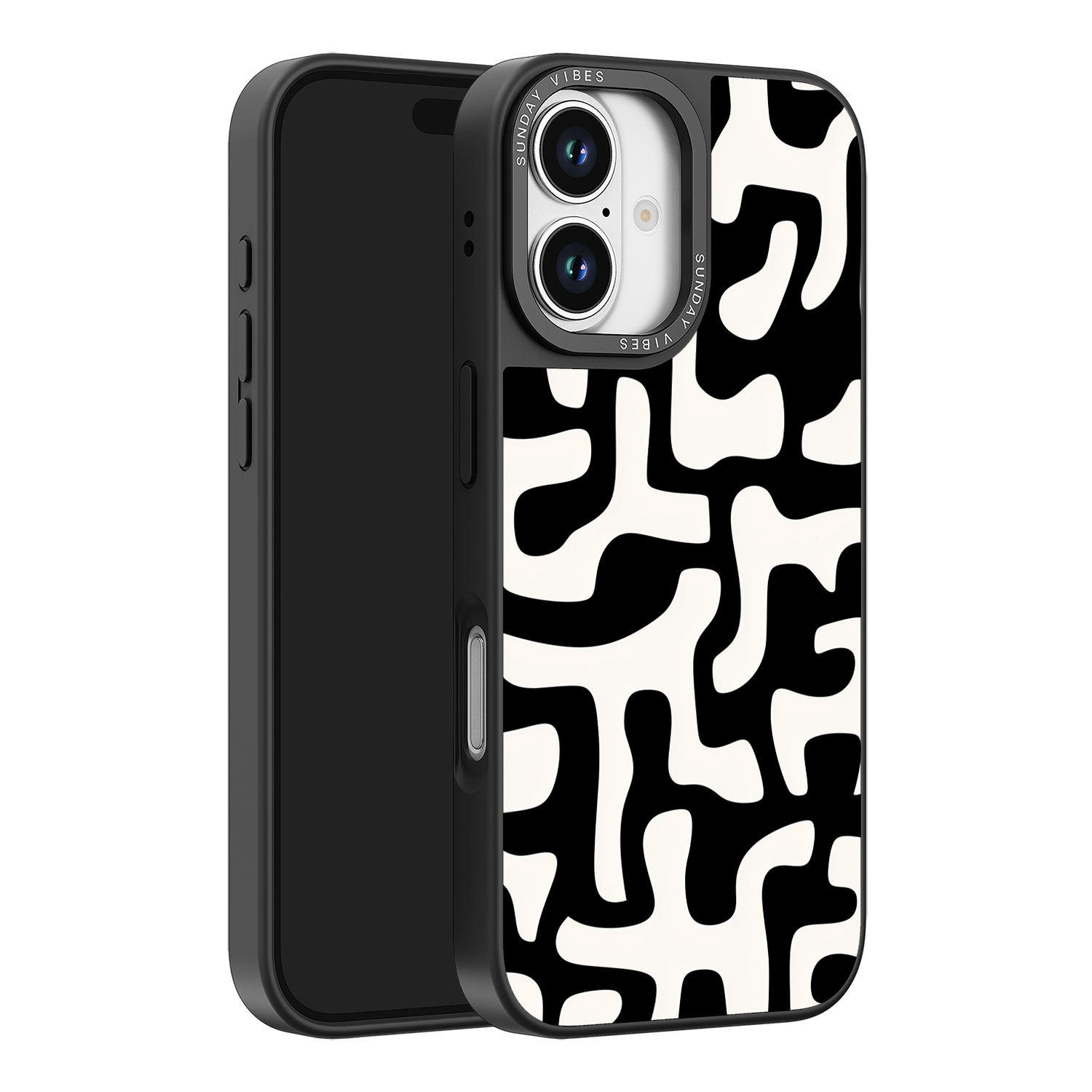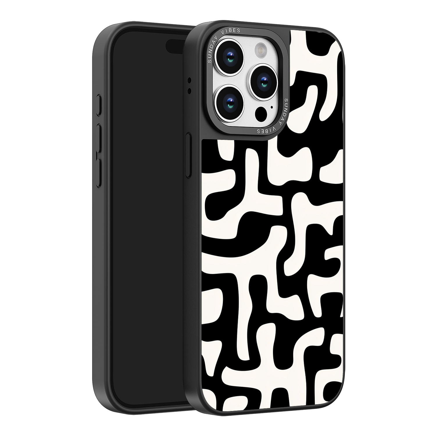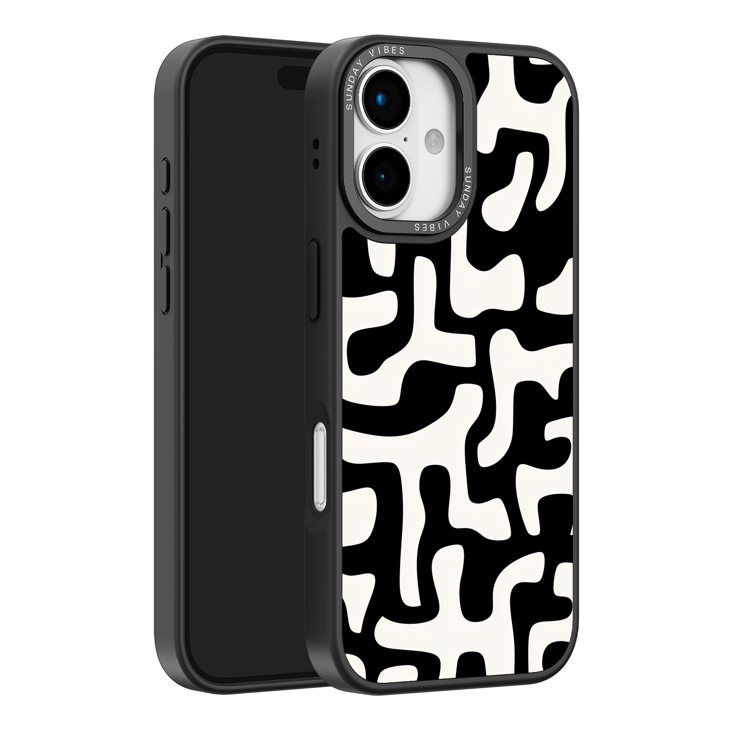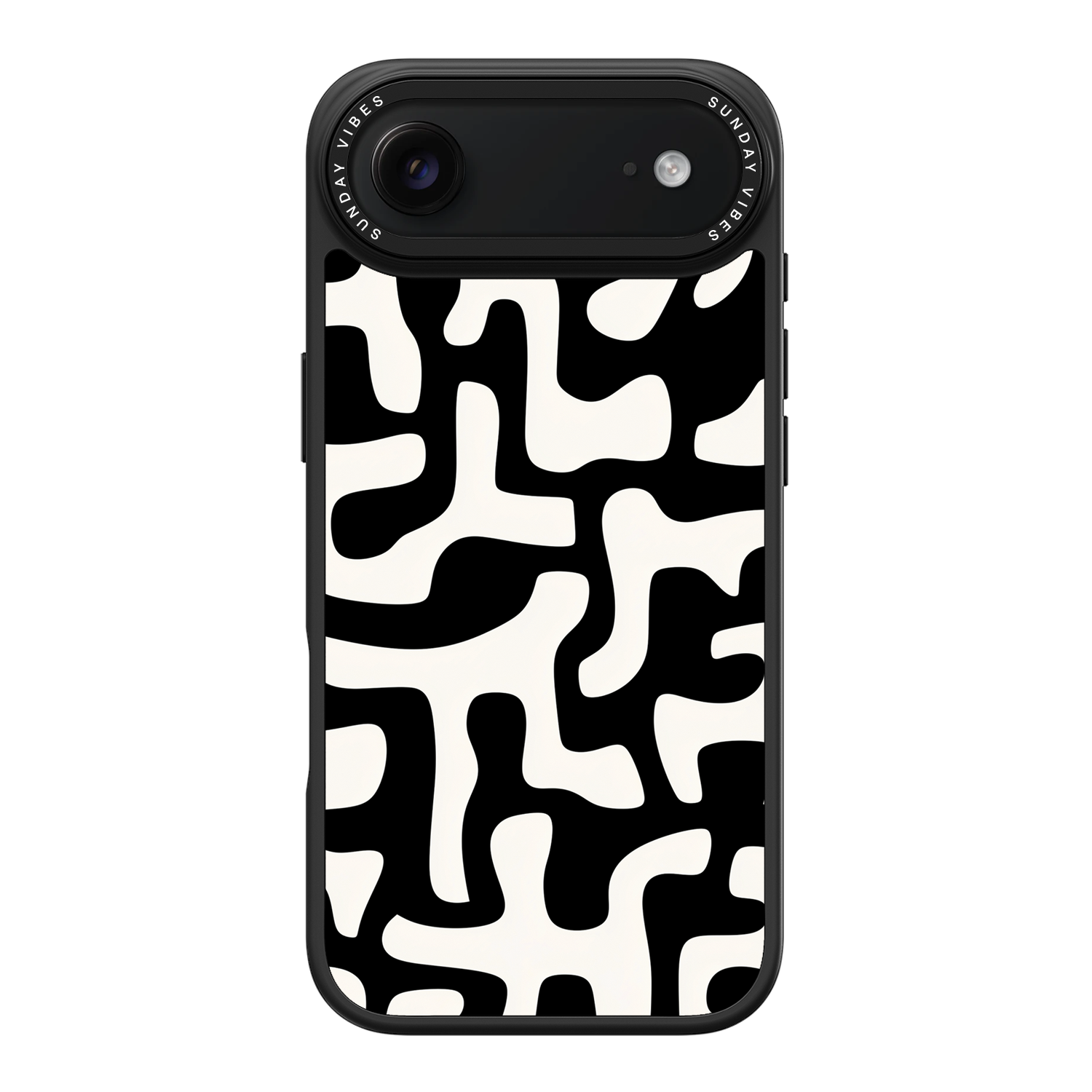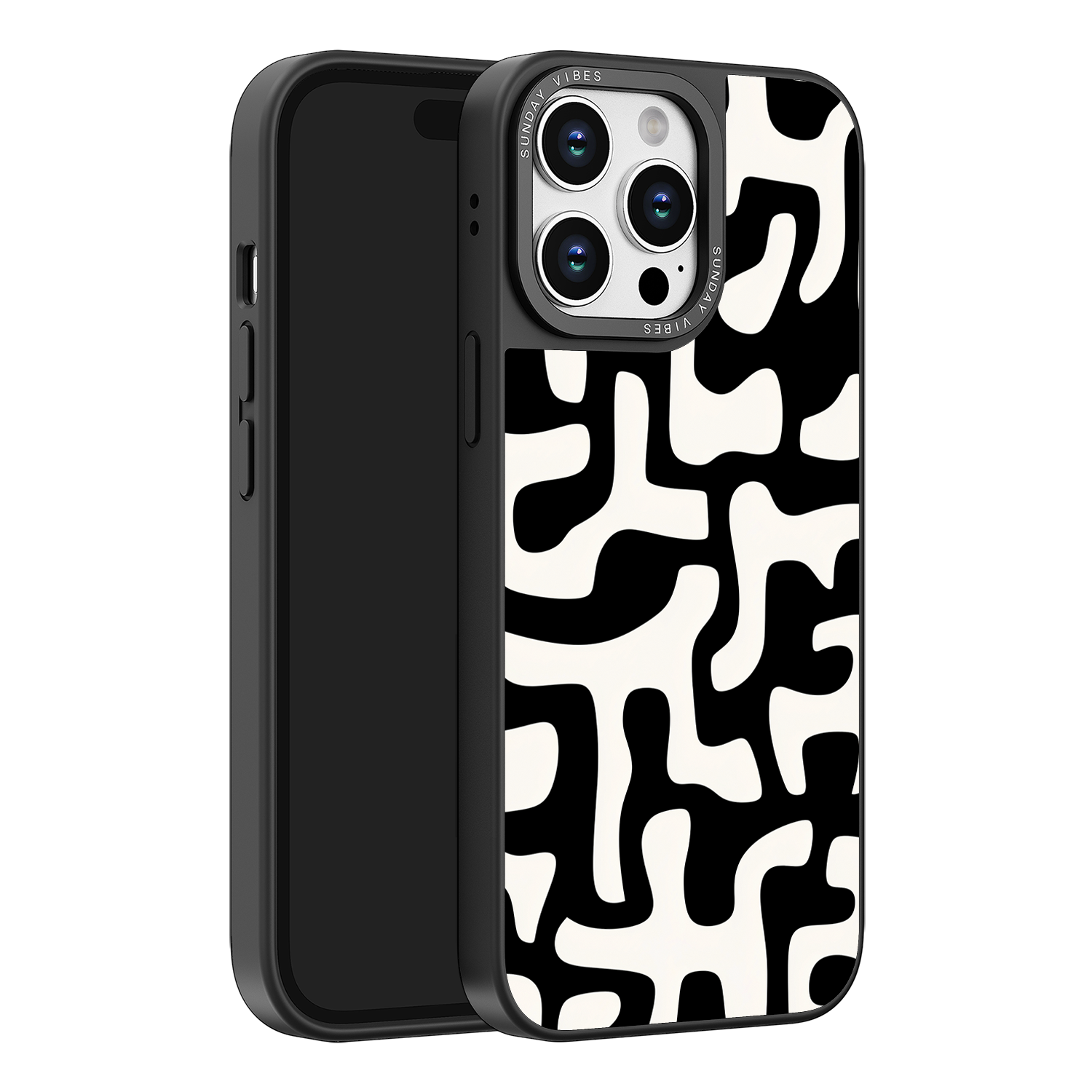 Adorn your device with the bold, graphic style of the Monochrome Moo iPhone Case. This striking design showcases an abstract, high-contrast pattern of intertwining black and cream shapes, nodding cleverly to a modern cow print aesthetic. The clean lines and strong contrast transform your phone into an instantly quirky and stylish accessory. The core aesthetic integrity is preserved by the case's premium 3-layer back panel: a base layer for protection, a middle ultra HD gallery print layer for precise detail, and a velvet smooth anti-scratch and anti-fingerprint top coating.