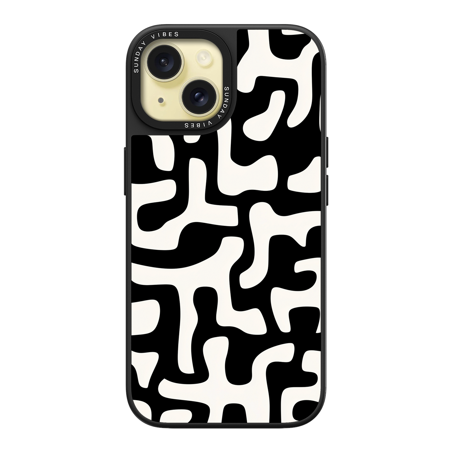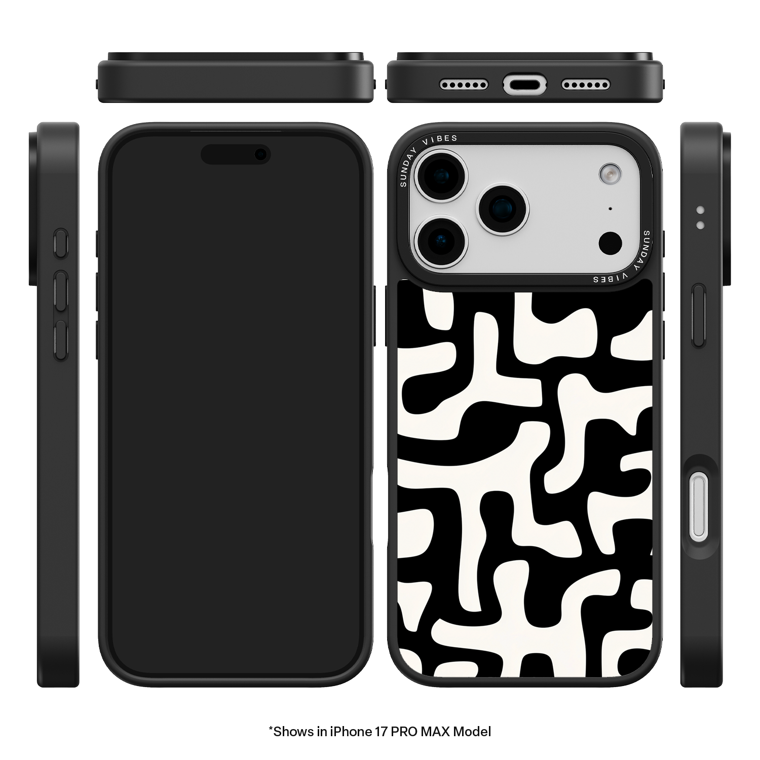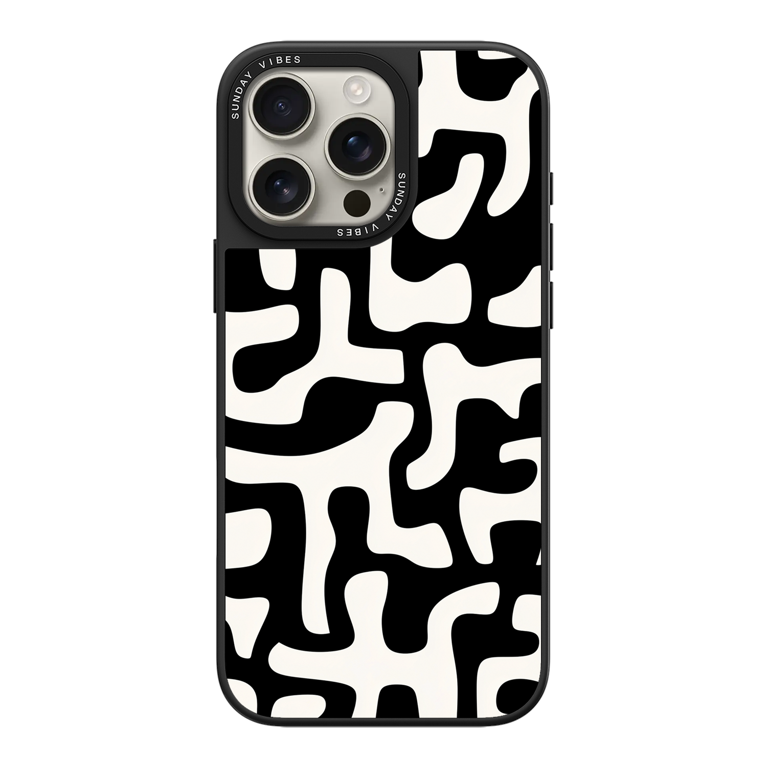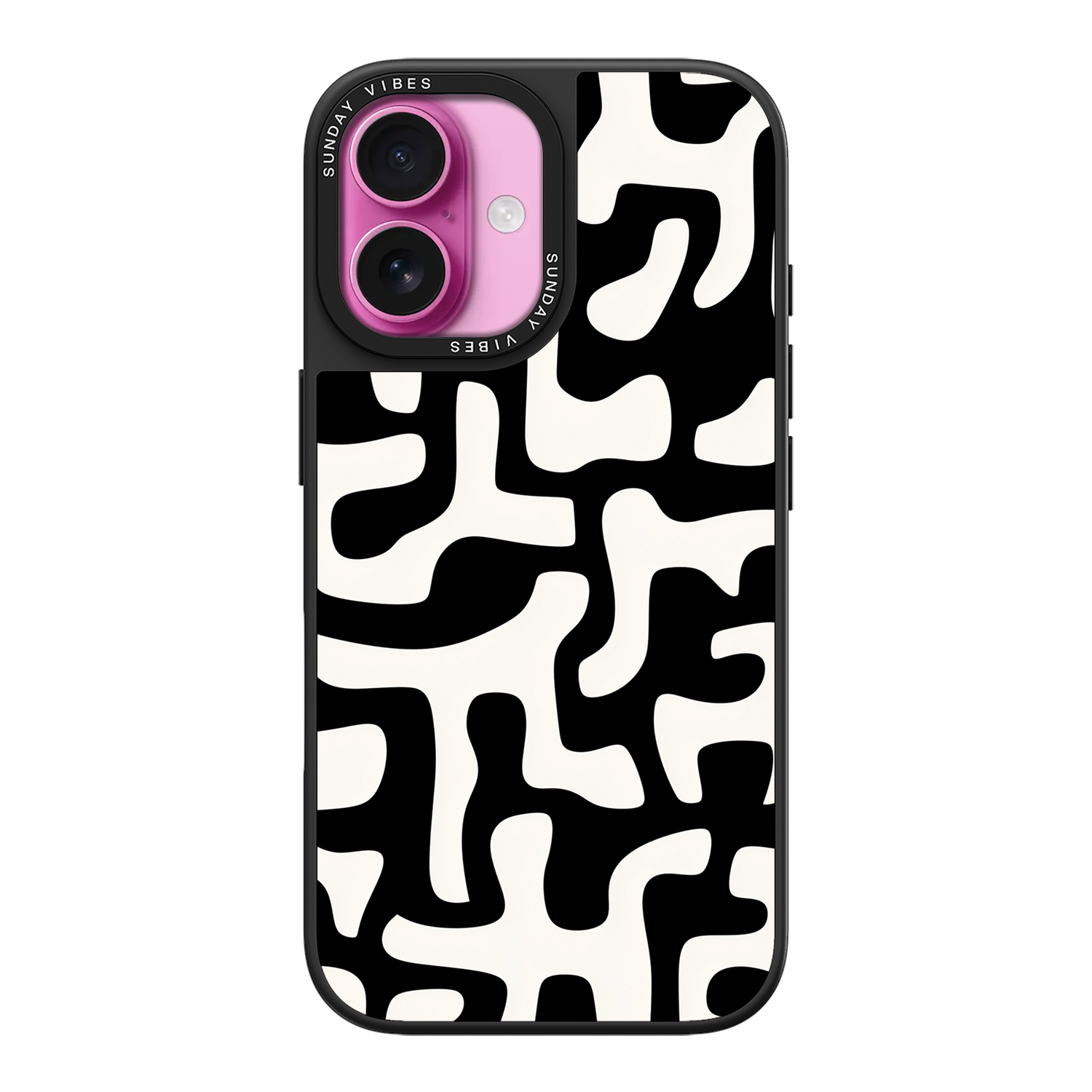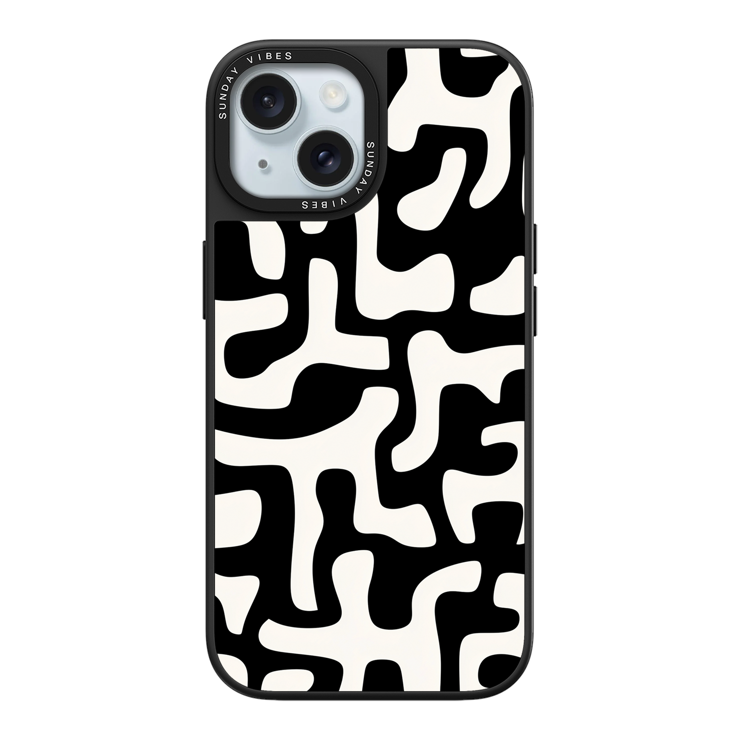 Adorn your device with the bold, graphic style of the Monochrome Moo iPhone Case. This striking design showcases an abstract, high-contrast pattern of intertwining black and cream shapes, nodding cleverly to a modern cow print aesthetic. The clean lines and strong contrast transform your phone into an instantly quirky and stylish accessory. The core aesthetic integrity is preserved by the case's premium 3-layer back panel: a base layer for protection, a middle ultra HD gallery print layer for precise detail, and a velvet smooth anti-scratch and anti-fingerprint top coating.