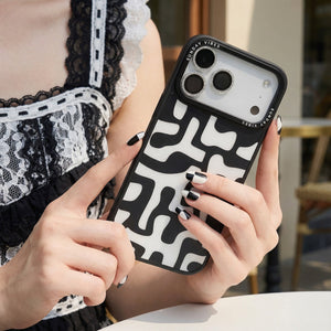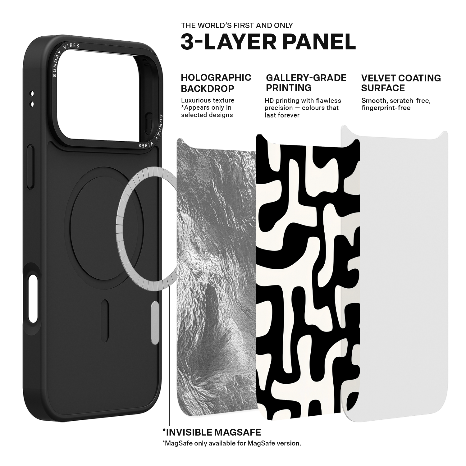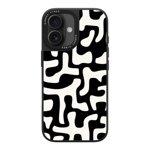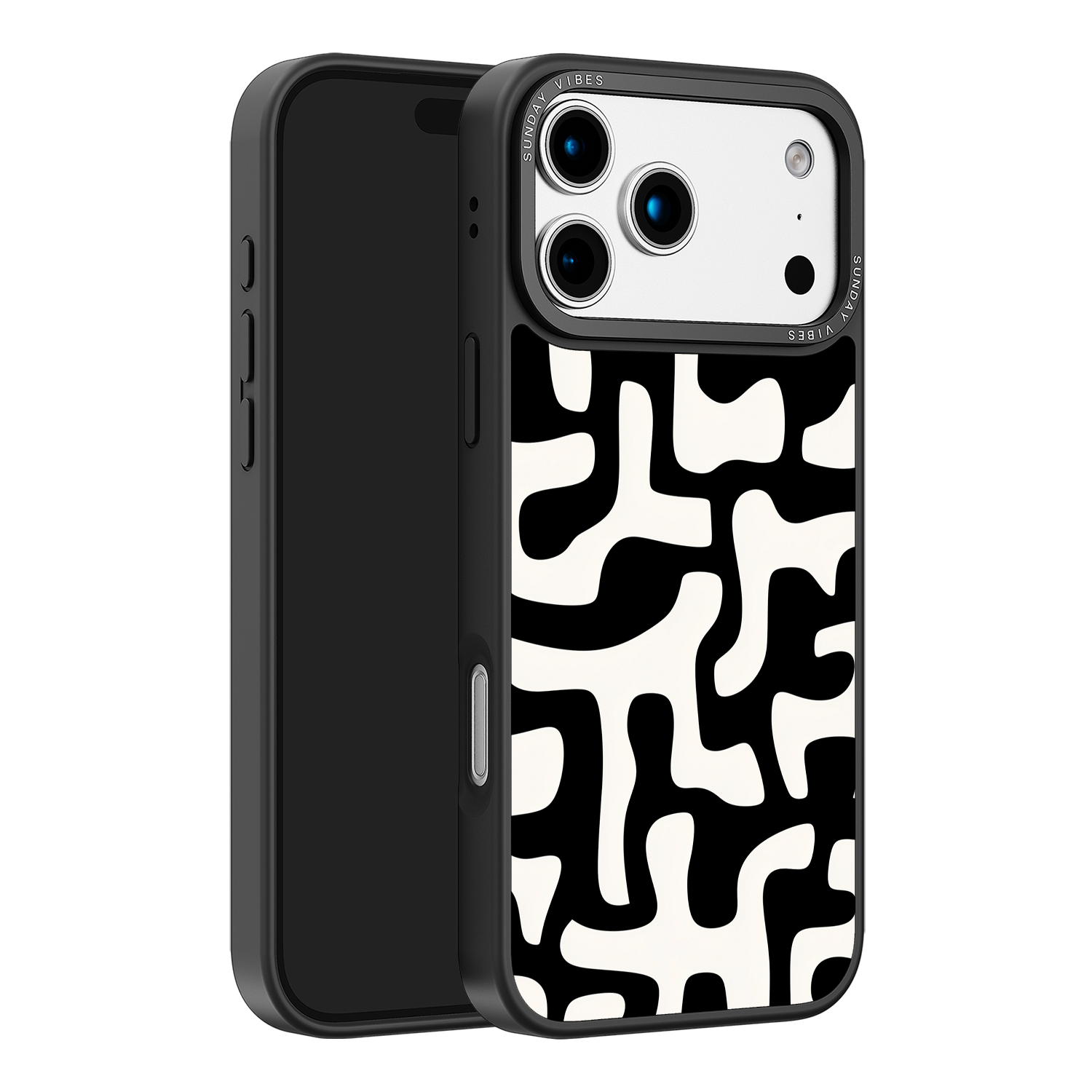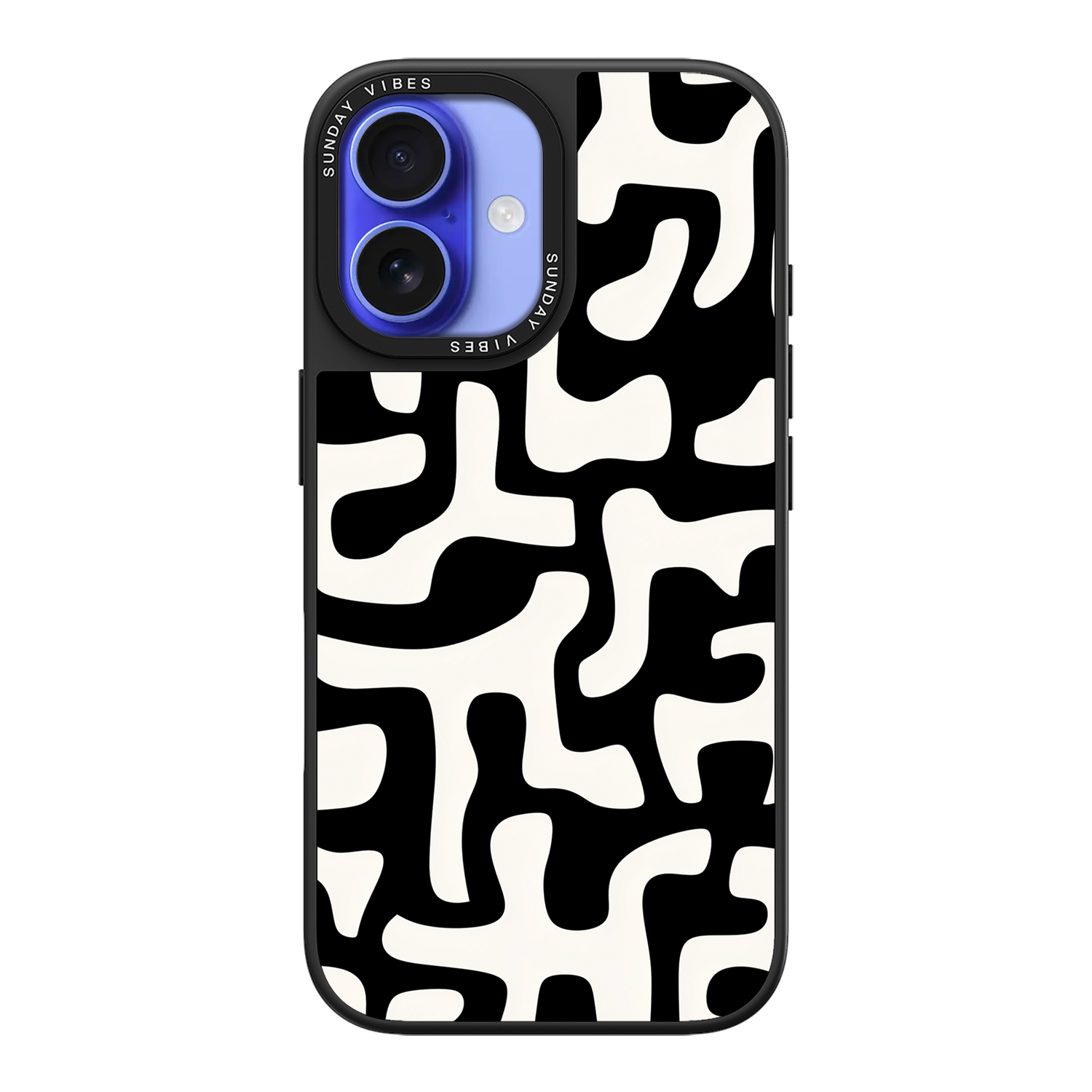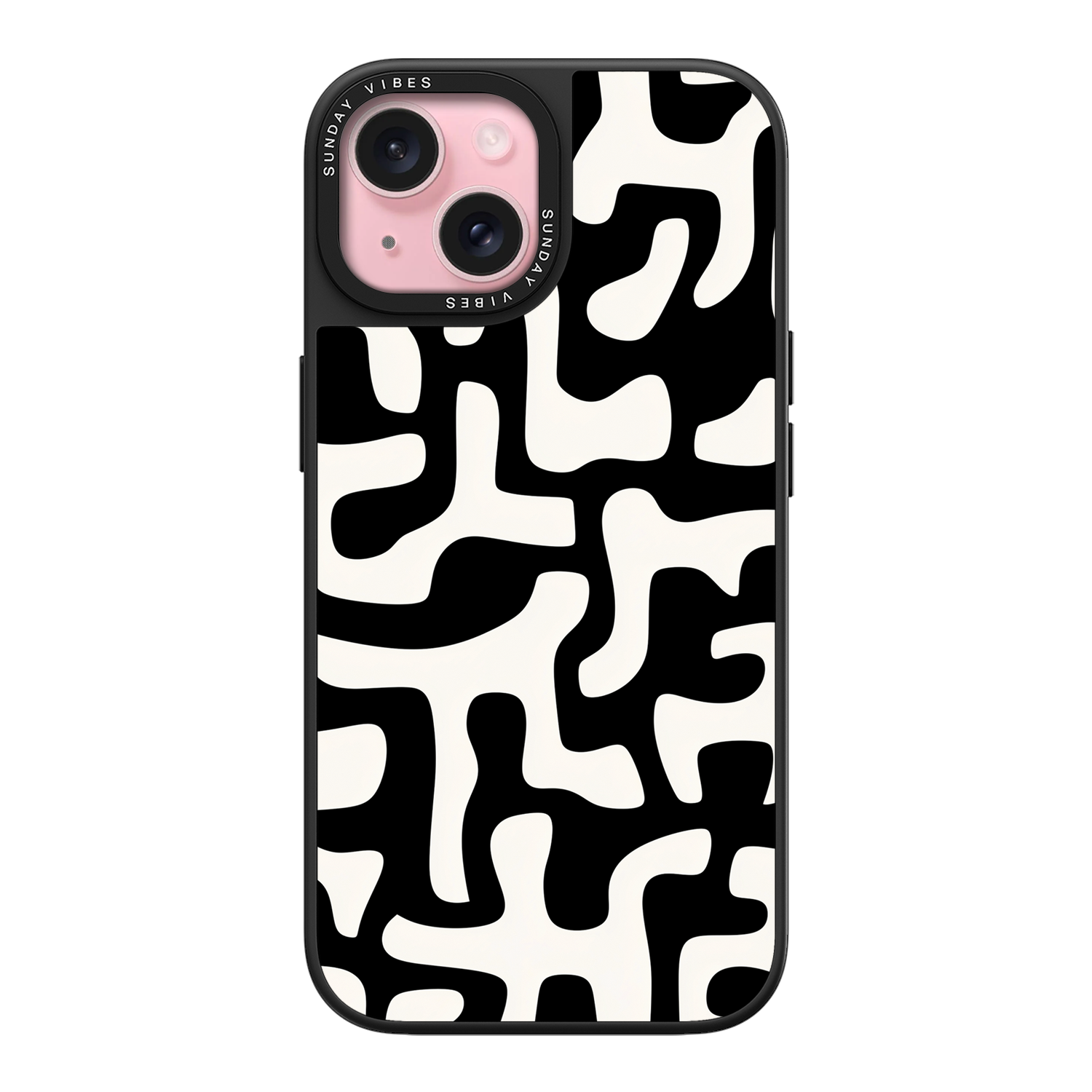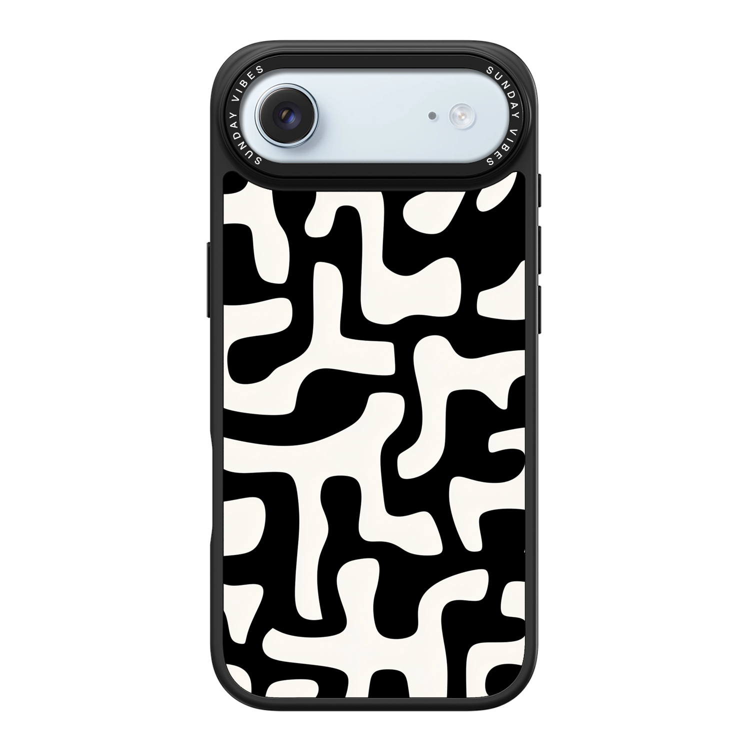 Adorn your device with the bold, graphic style of the Monochrome Moo iPhone Case. This striking design showcases an abstract, high-contrast pattern of intertwining black and cream shapes, nodding cleverly to a modern cow print aesthetic. The clean lines and strong contrast transform your phone into an instantly quirky and stylish accessory. The core aesthetic integrity is preserved by the case's premium 3-layer back panel: a base layer for protection, a middle ultra HD gallery print layer for precise detail, and a velvet smooth anti-scratch and anti-fingerprint top coating.