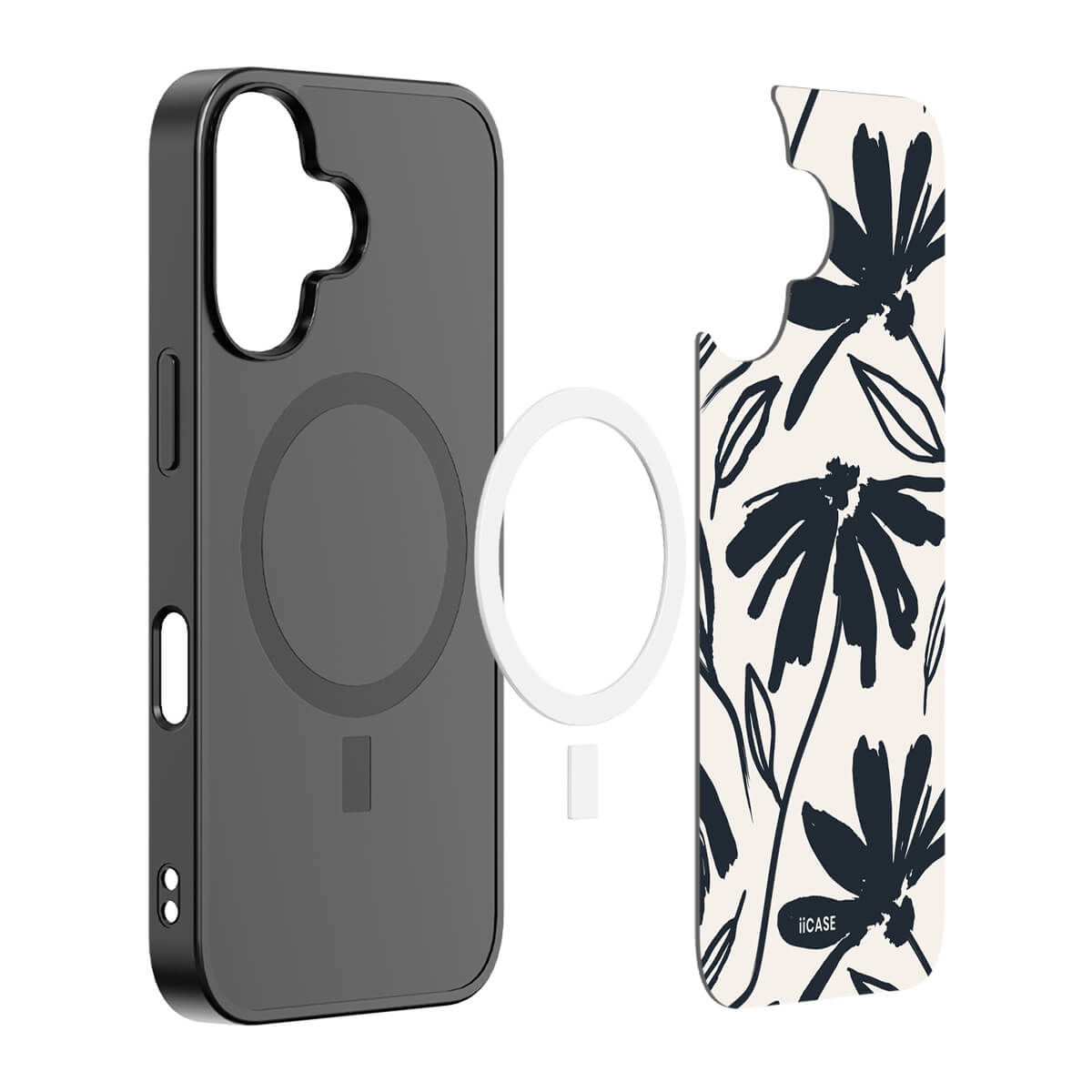 Encase your iPhone with the elegant simplicity of iiCASE's Monochrome Floral Silhouette. Its stark black floral outlines against a creamy backdrop make a sophisticated statement, perfect for the minimalist with a touch of nature's grace.