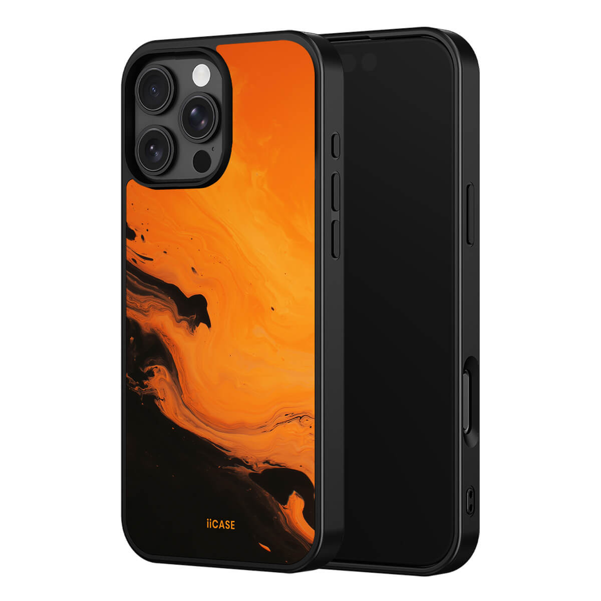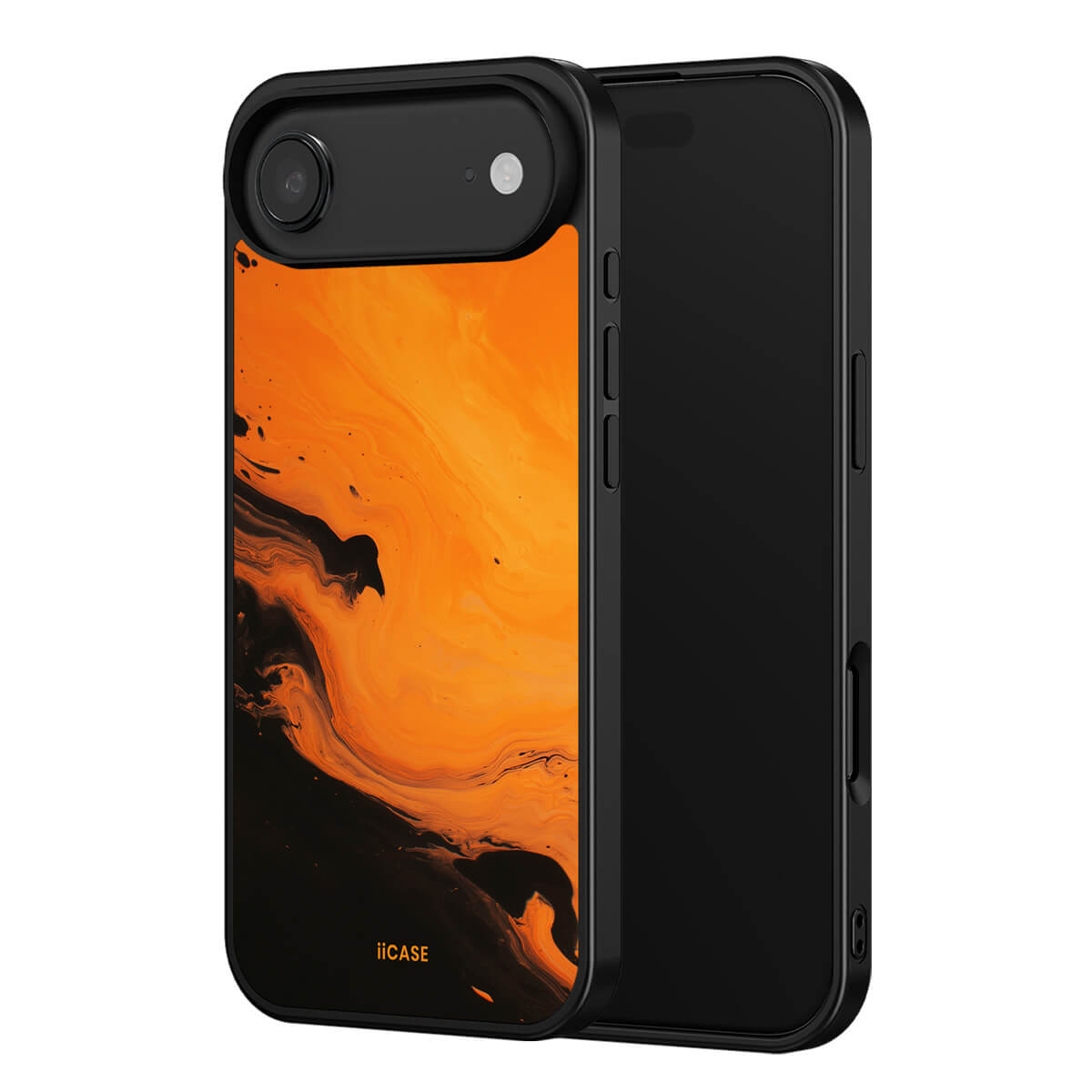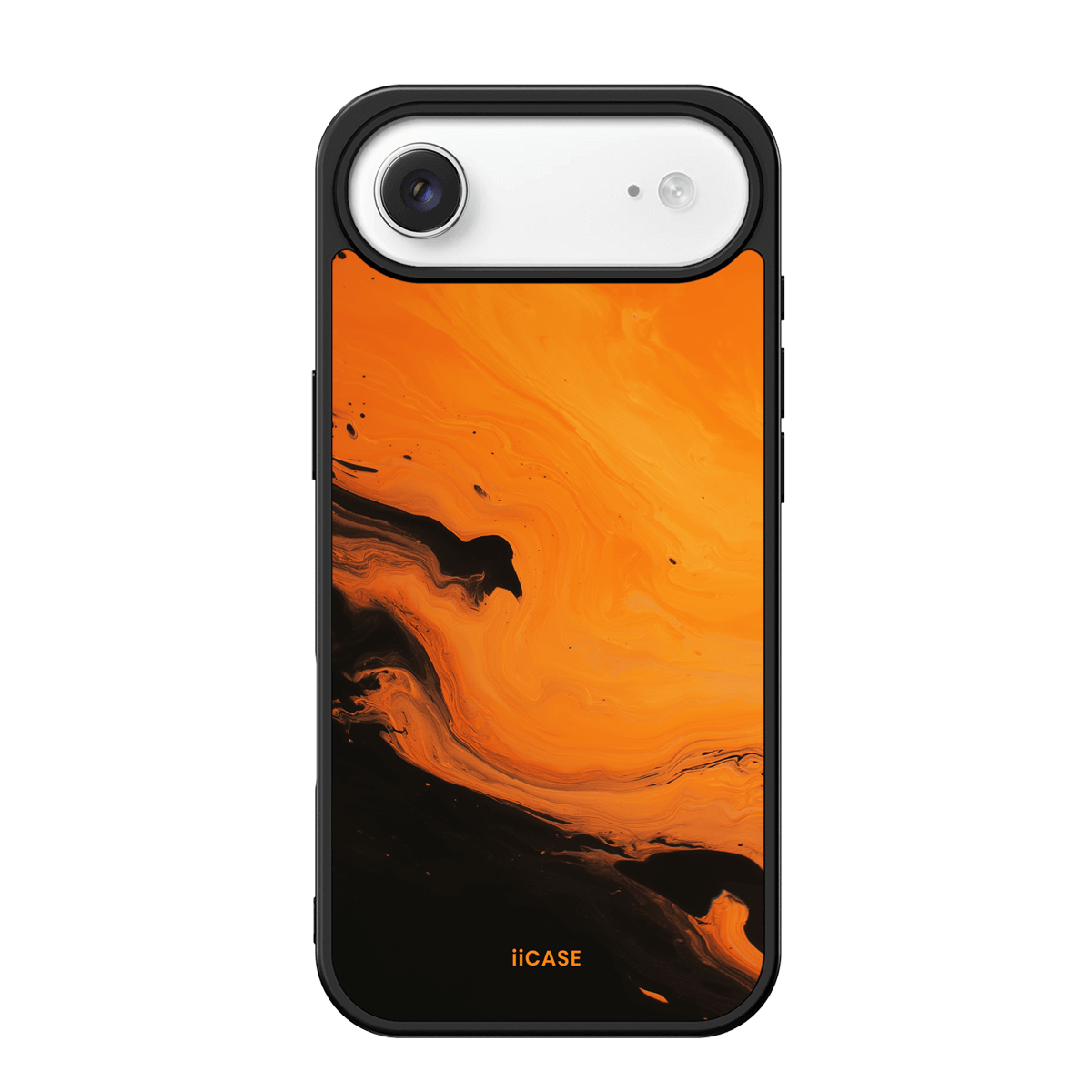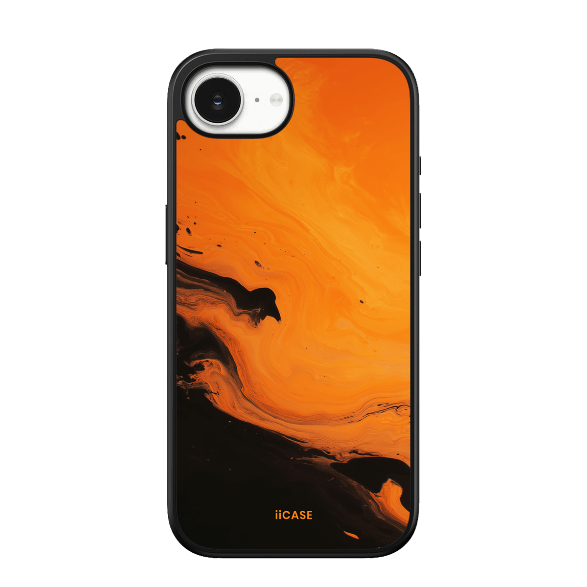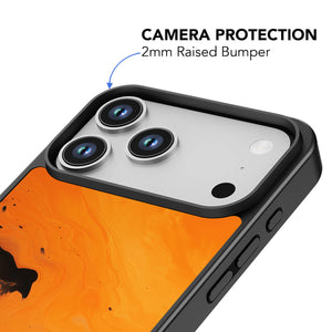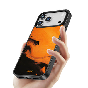 This iPhone case features a striking fluid art design with swirling orange and dark hues, creating a dynamic, marble-inspired visual effect. Crafted from durable materials, it shields your phone from daily scratches and bumps. The artistic pattern adds a touch of modern elegance to your device, while ensuring easy access to all ports and buttons.