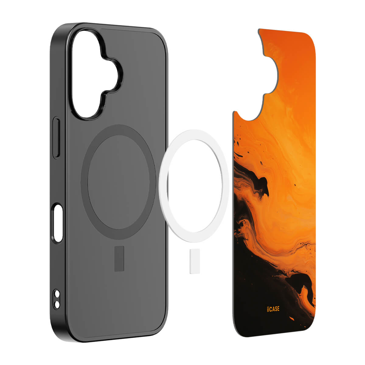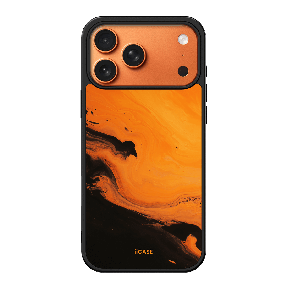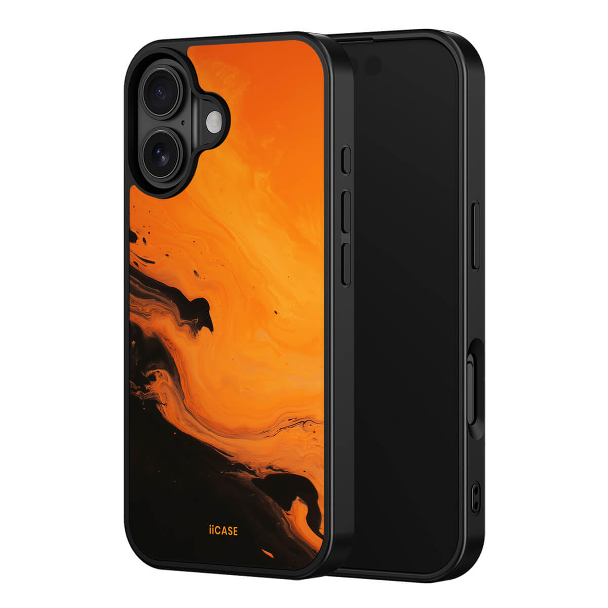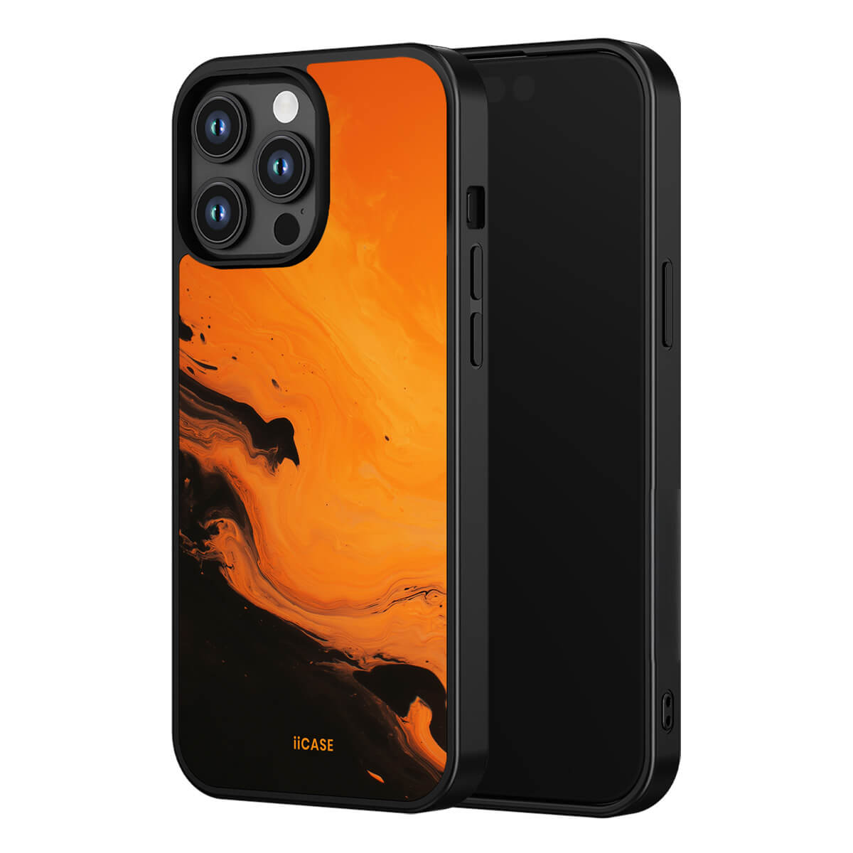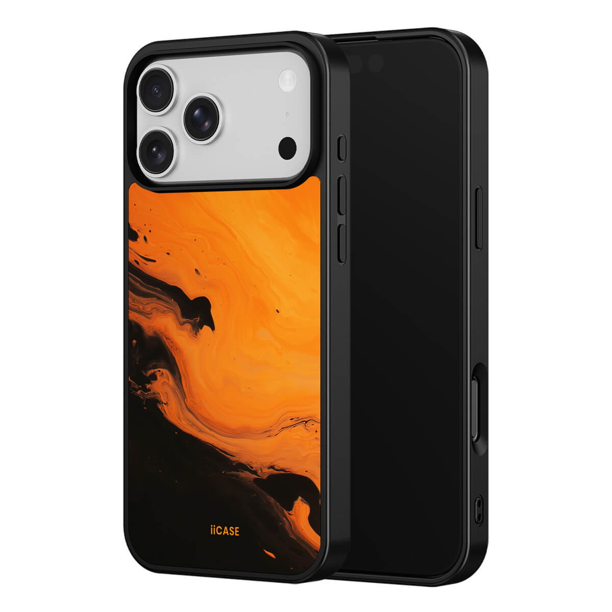 This iPhone case features a striking fluid art design with swirling orange and dark hues, creating a dynamic, marble-inspired visual effect. Crafted from durable materials, it shields your phone from daily scratches and bumps. The artistic pattern adds a touch of modern elegance to your device, while ensuring easy access to all ports and buttons.