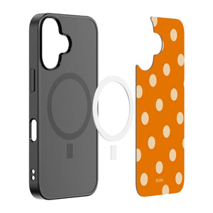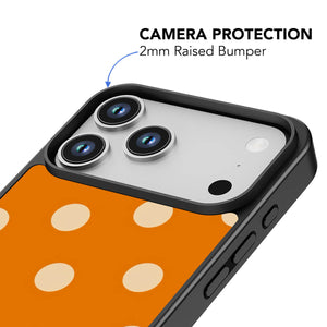 This iPhone case features a playful design with creamy white polka dots on a vibrant orange background, giving your device a retro-chic vibe. Made from durable materials, it protects your phone from daily scratches and bumps. The sleek build ensures easy access to all ports and buttons, blending whimsical style with practical protection.