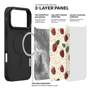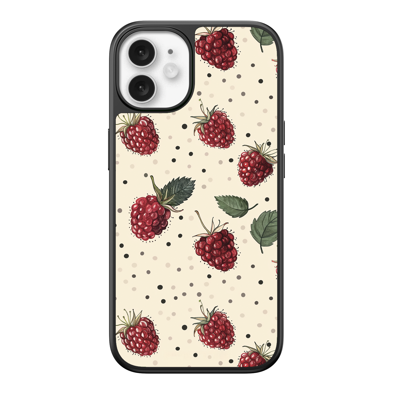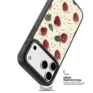 Adorn your device with the fresh, charming artistry of the Raspberry Delight iPhone Case. This delightful design features a detailed, hand-drawn pattern of ripe raspberries and green leaves set against a speckled, creamy background, evoking the sweet charm of a summer garden. This lovely artistic quality is preserved by the case's premium 3-layer back panel: a base layer for protection, a middle ultra HD gallery print layer, and a velvet smooth anti-scratch and anti-fingerprint top coating.