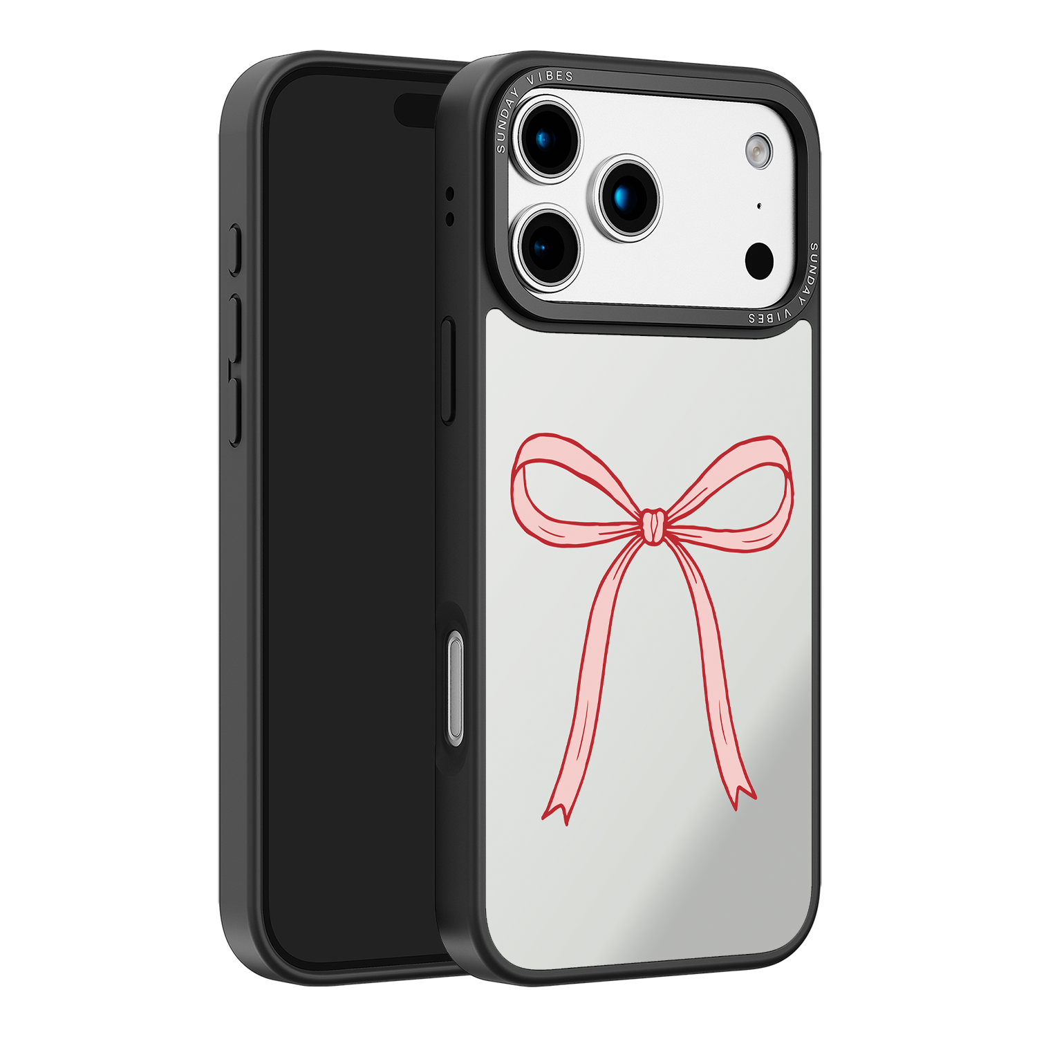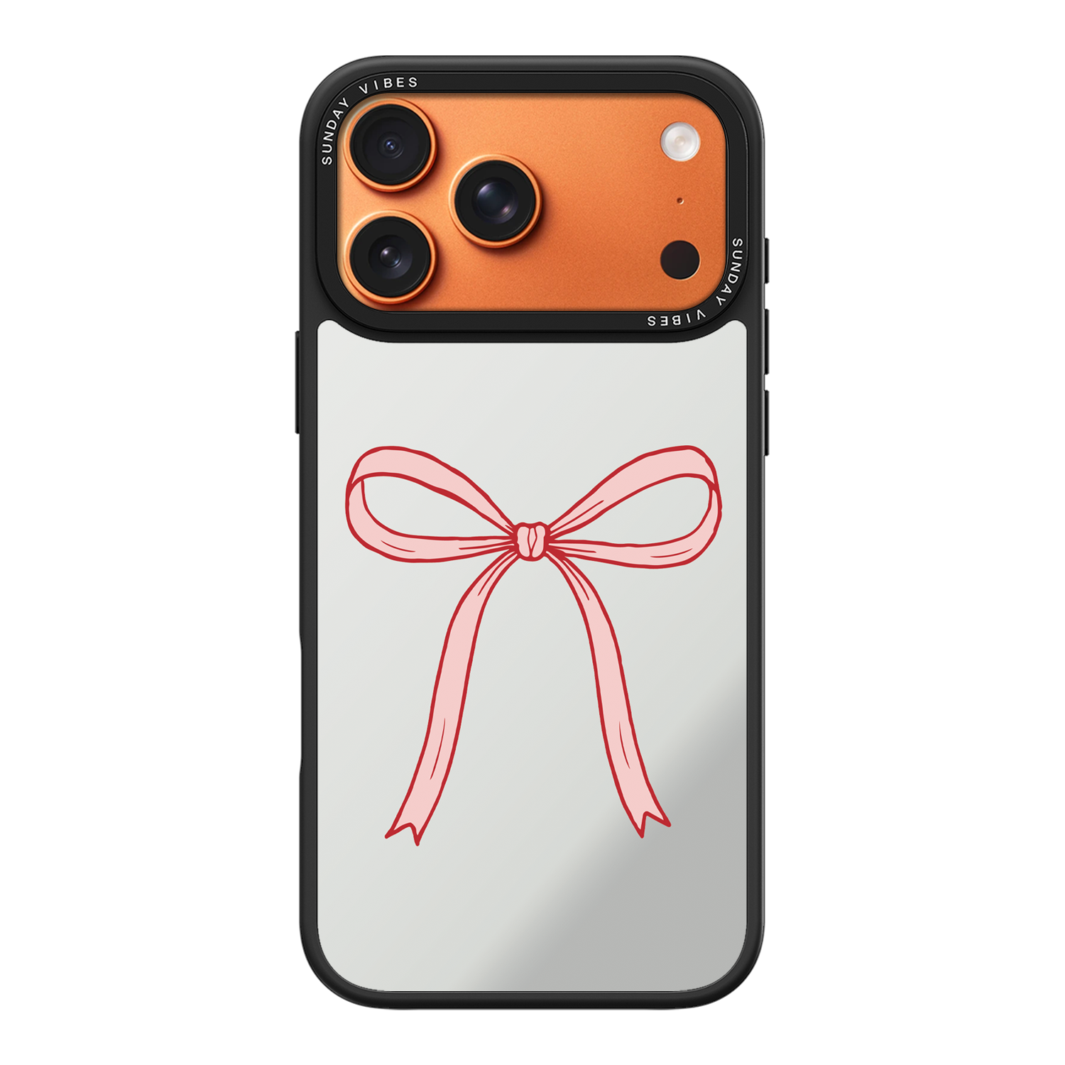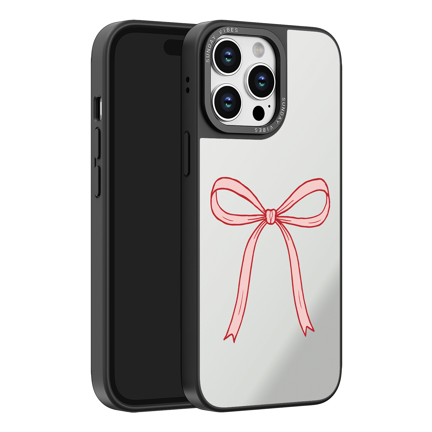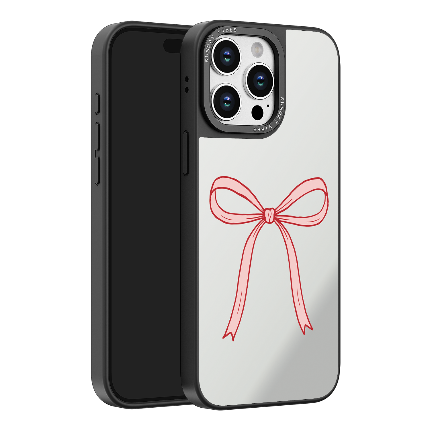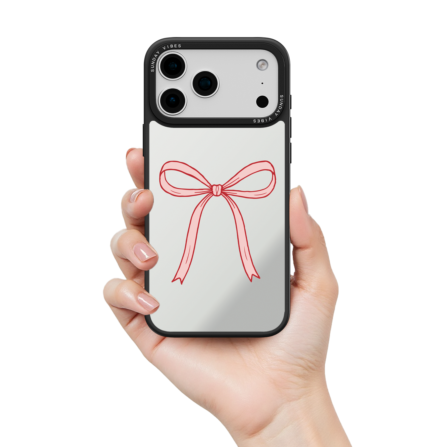 Adorn your device with the simple, sweet charm of the Ribbon Tie iPhone Case. This striking design features a clean, hand-drawn illustration of a graceful pink bow, set against the highly reflective, functional mirror backing. This minimalist, romantic aesthetic ensures you are always ready for a quick style check or selfie. The vibrant print and texture are applied directly onto the mirror surface for maximum visual impact.
