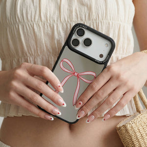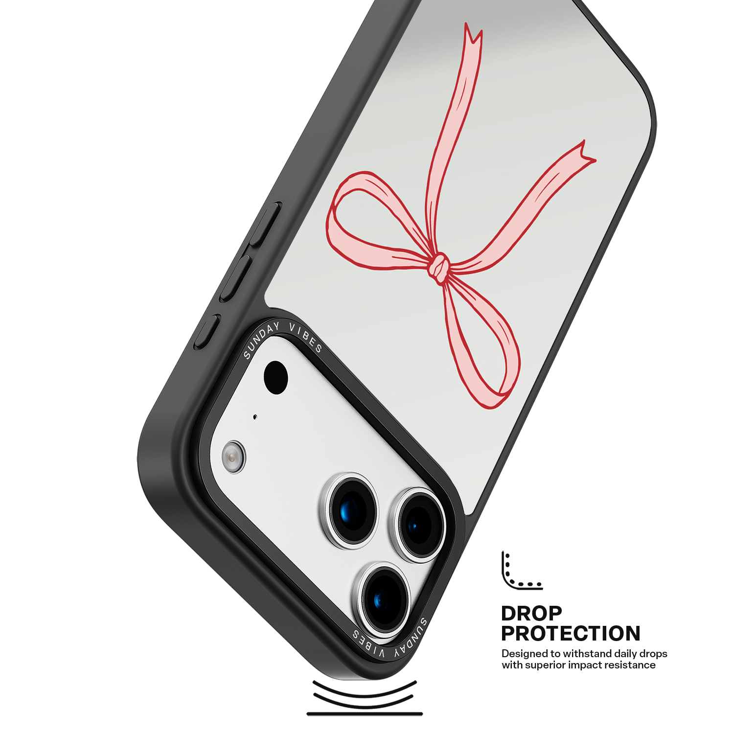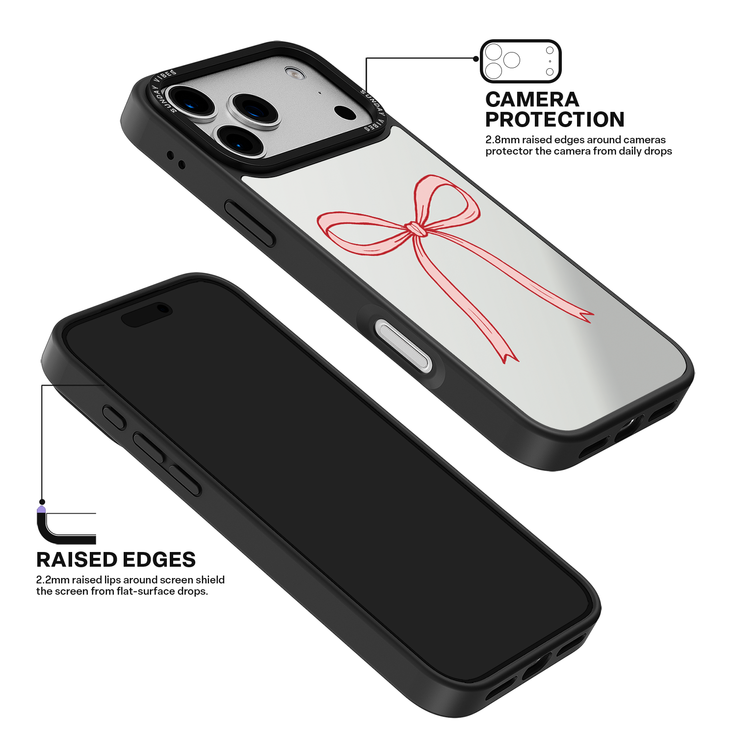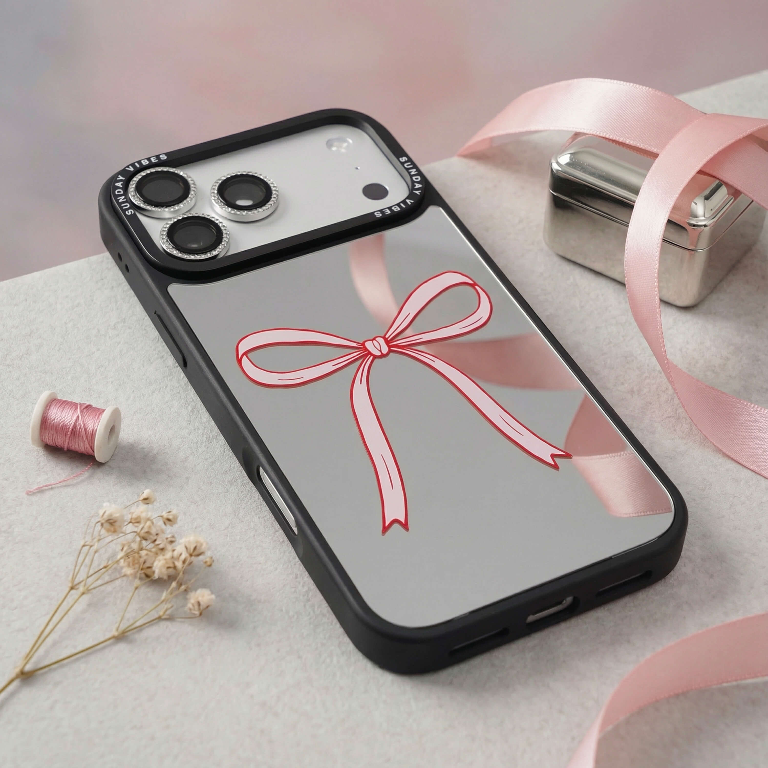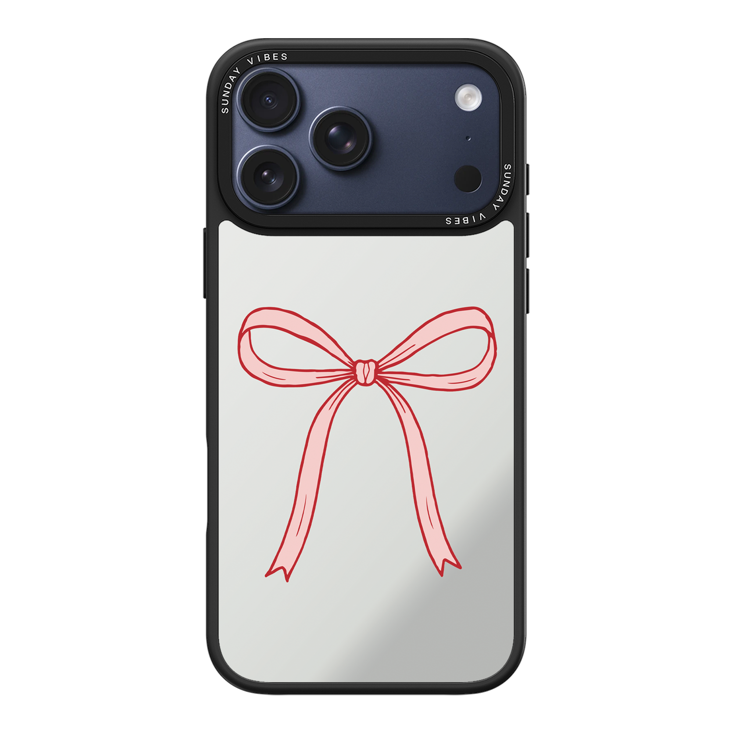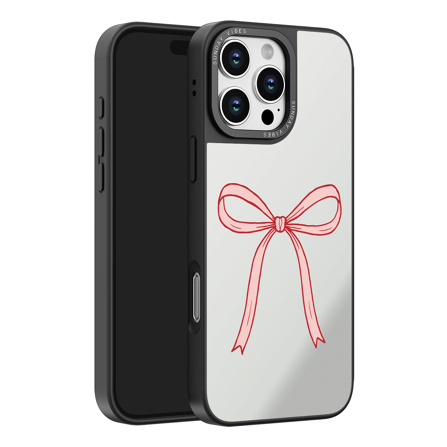 Adorn your device with the simple, sweet charm of the Ribbon Tie iPhone Case. This striking design features a clean, hand-drawn illustration of a graceful pink bow, set against the highly reflective, functional mirror backing. This minimalist, romantic aesthetic ensures you are always ready for a quick style check or selfie. The vibrant print and texture are applied directly onto the mirror surface for maximum visual impact.
