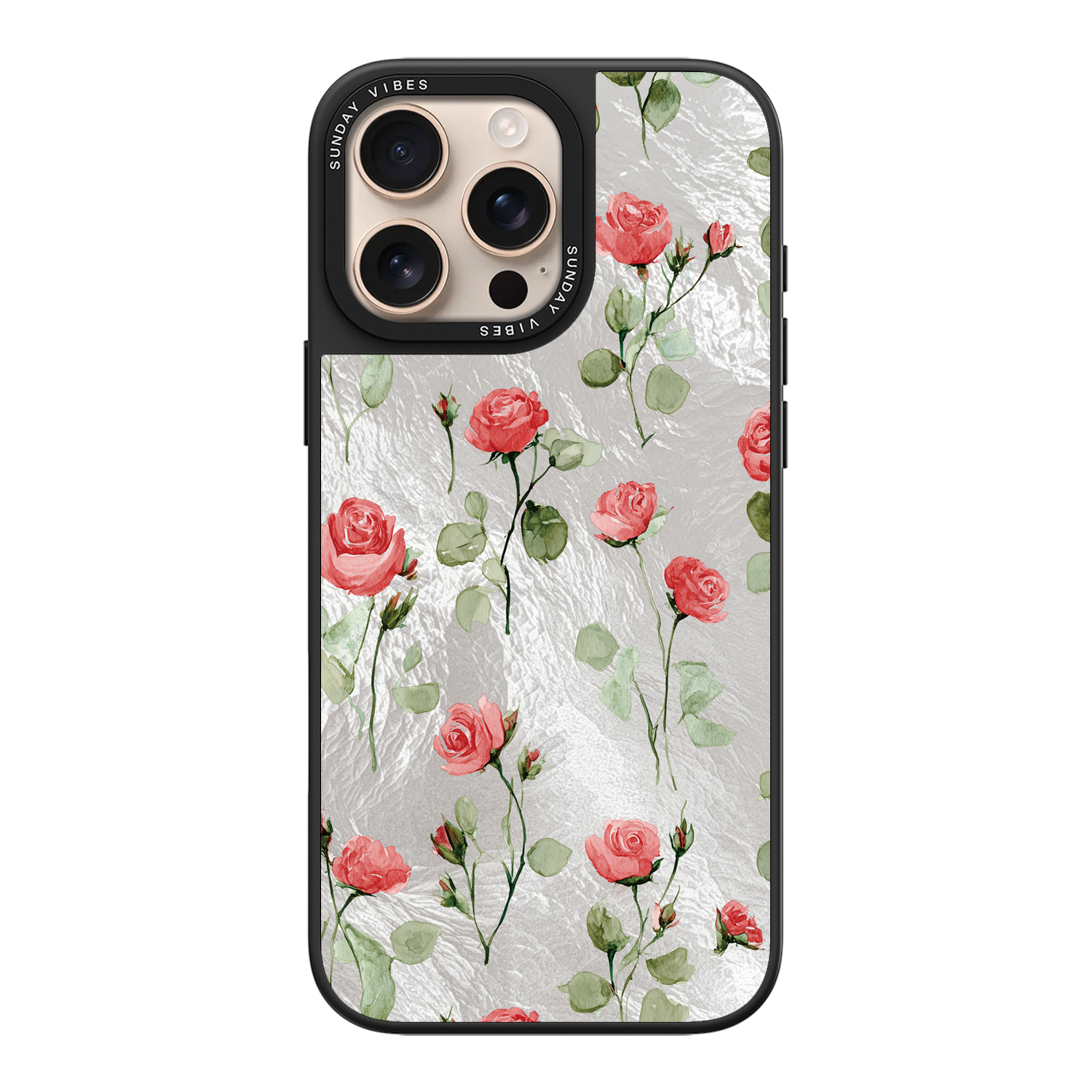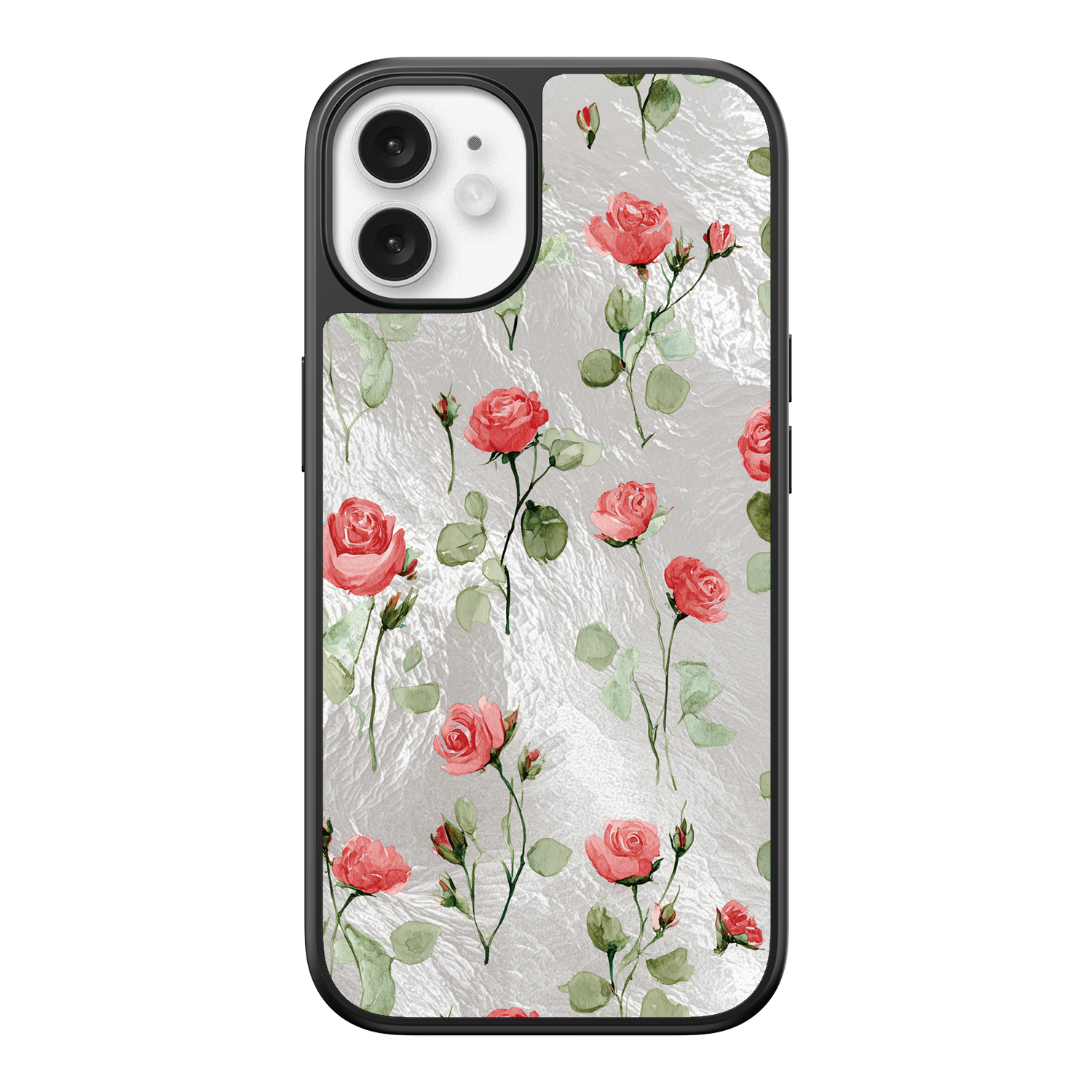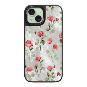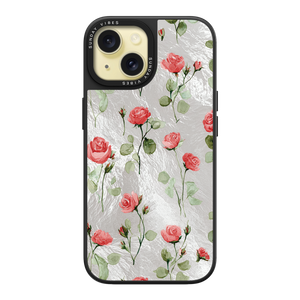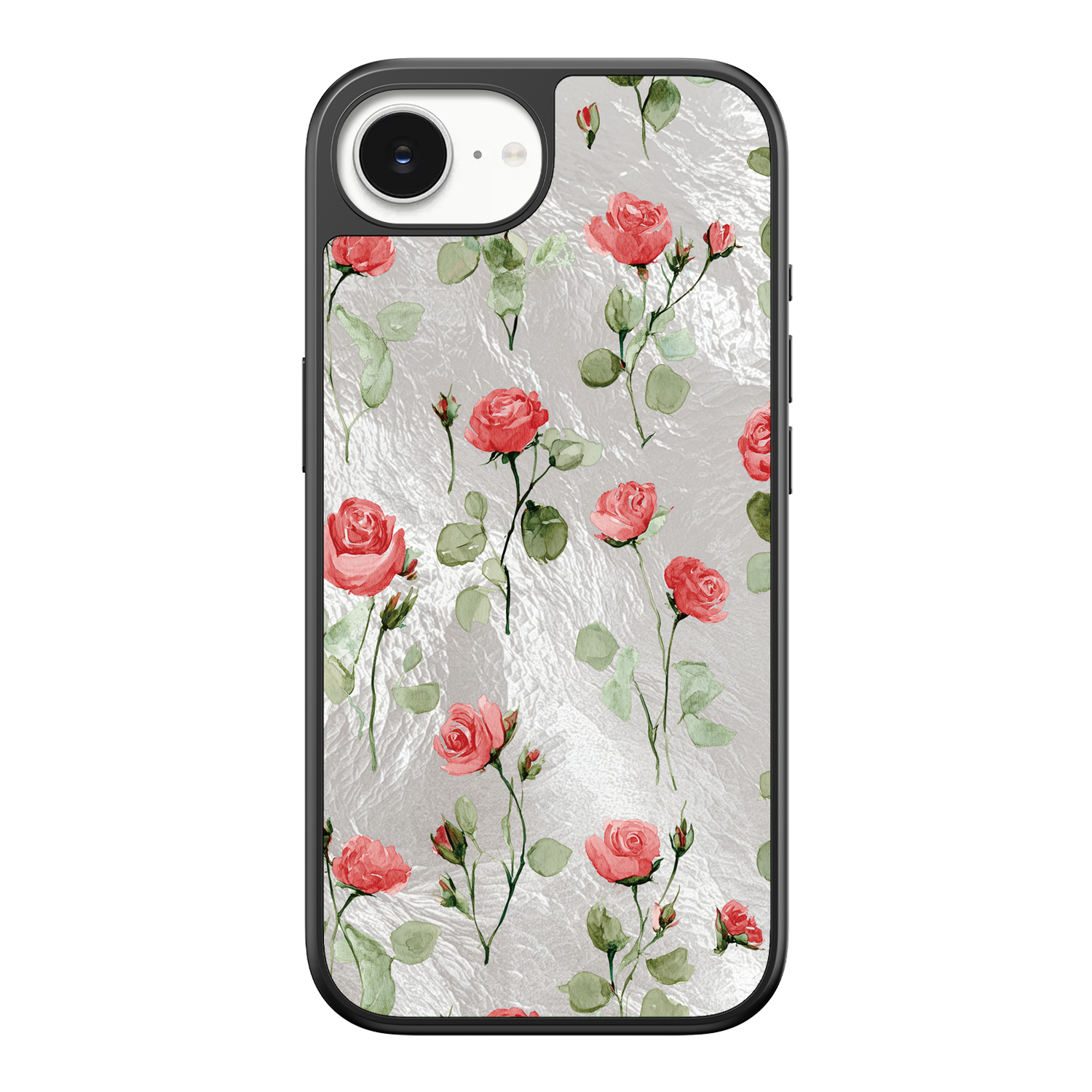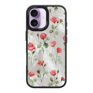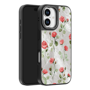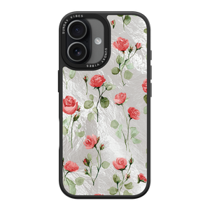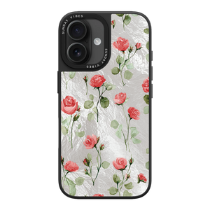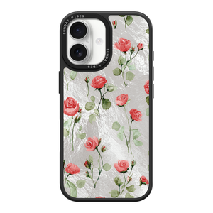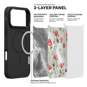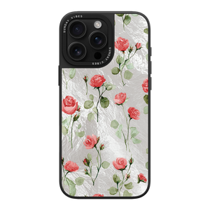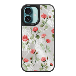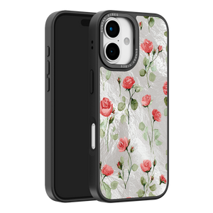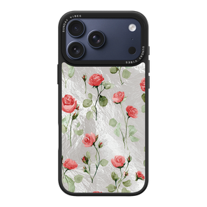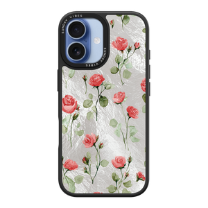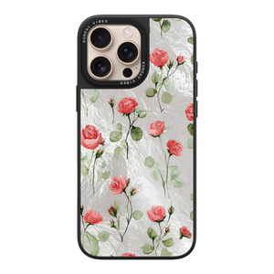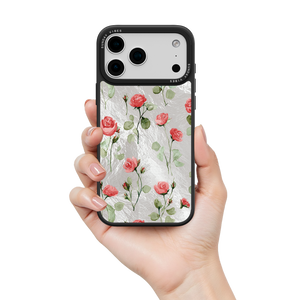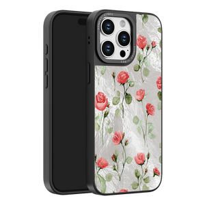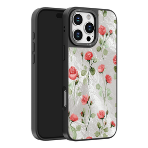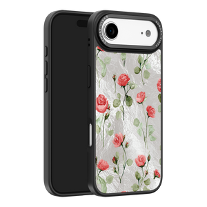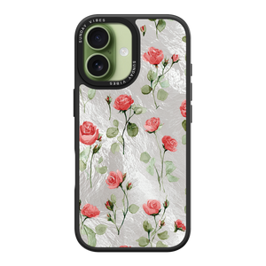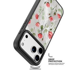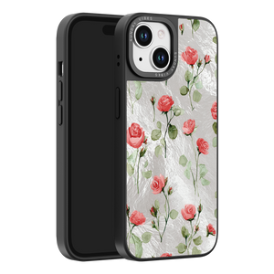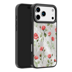Adorn your device with the enchanting beauty of the Rose Bloom iPhone Case. This delightful design features soft pink roses with delicate green stems, scattered gracefully across a shimmering, light yellow holographic background. This unique blend of classic floral charm and dazzling metallic texture creates a truly romantic and elegant style. The case is built with a premium 3-layer back panel: a base holographic layer with texture, a middle ultra HD gallery print layer, and a velvet smooth anti-scratch and anti-fingerprint top coating.