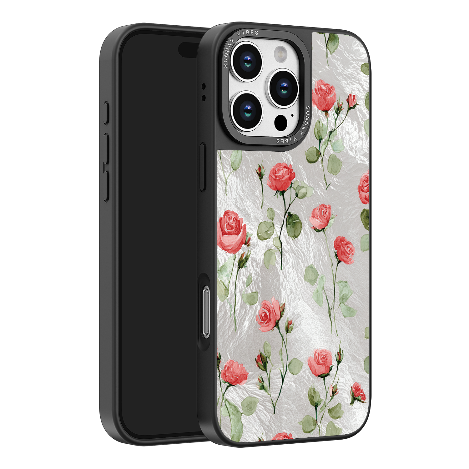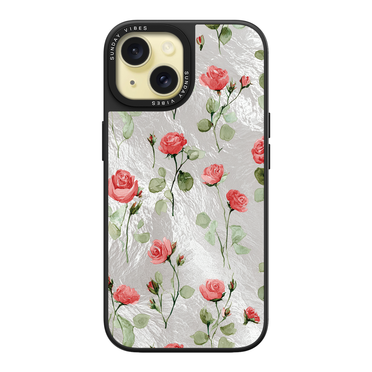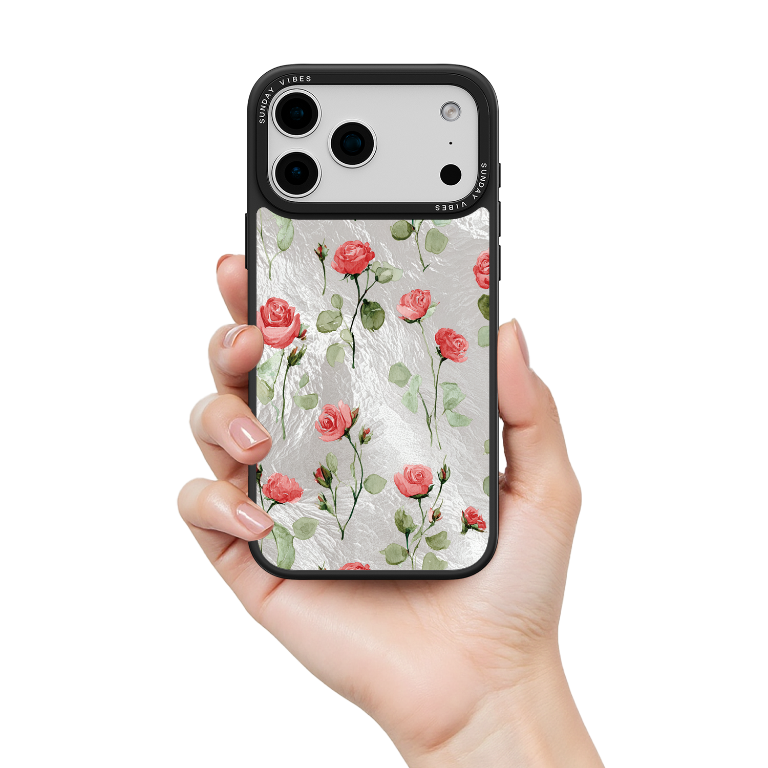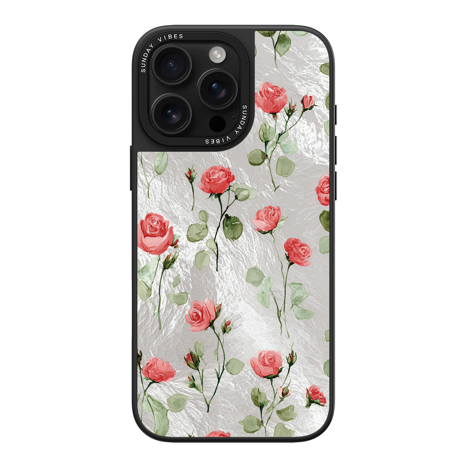 Adorn your device with the enchanting beauty of the Rose Bloom iPhone Case. This delightful design features soft pink roses with delicate green stems, scattered gracefully across a shimmering, light yellow holographic background. This unique blend of classic floral charm and dazzling metallic texture creates a truly romantic and elegant style. The case is built with a premium 3-layer back panel: a base holographic layer with texture, a middle ultra HD gallery print layer, and a velvet smooth anti-scratch and anti-fingerprint top coating.
