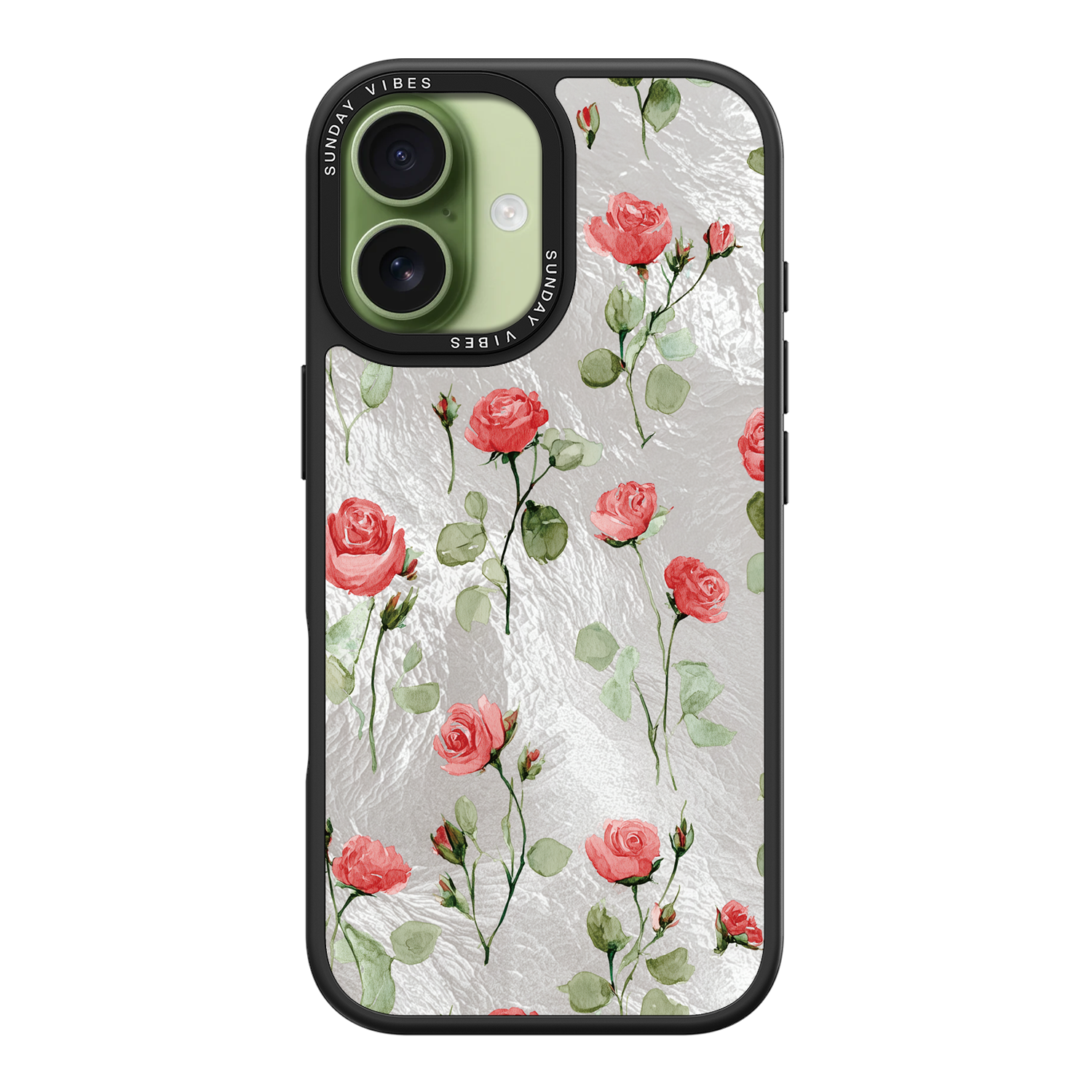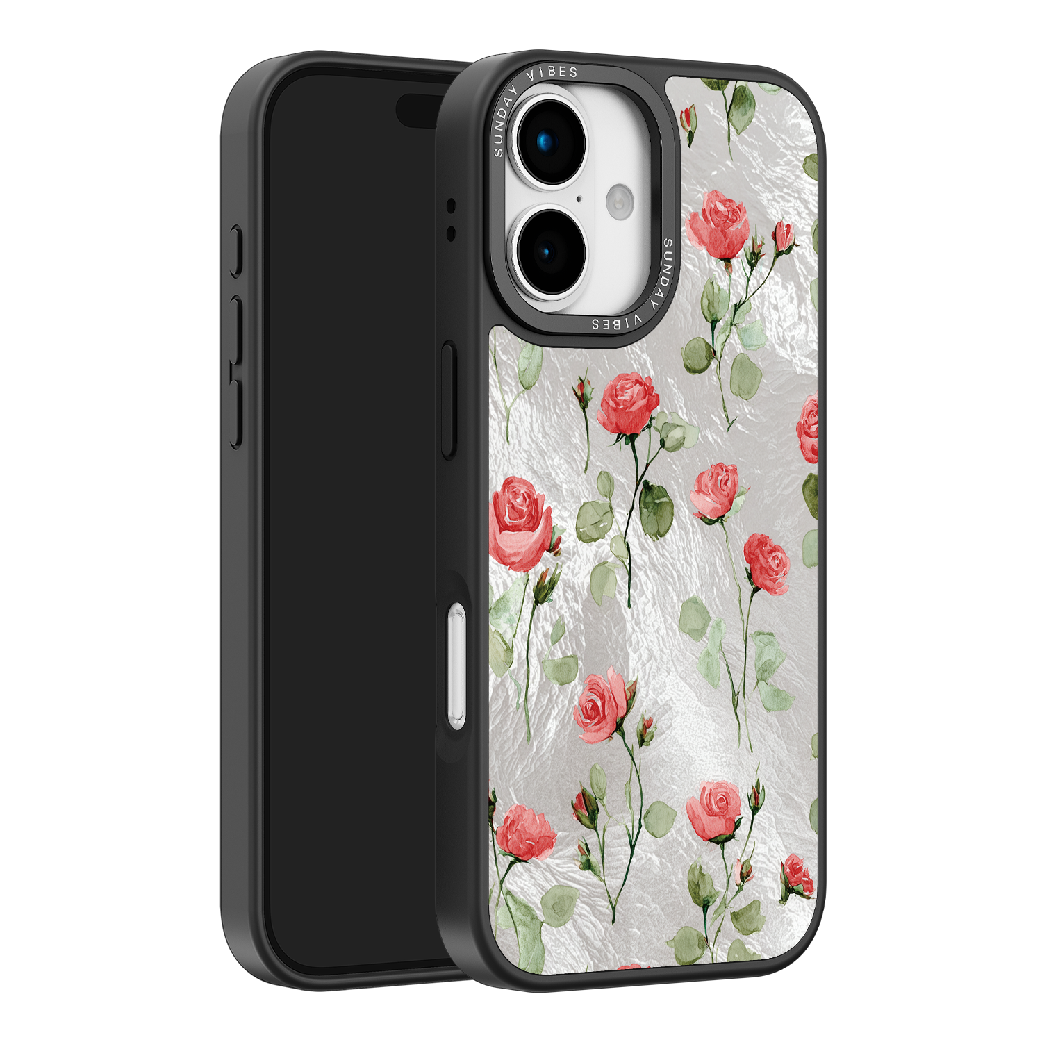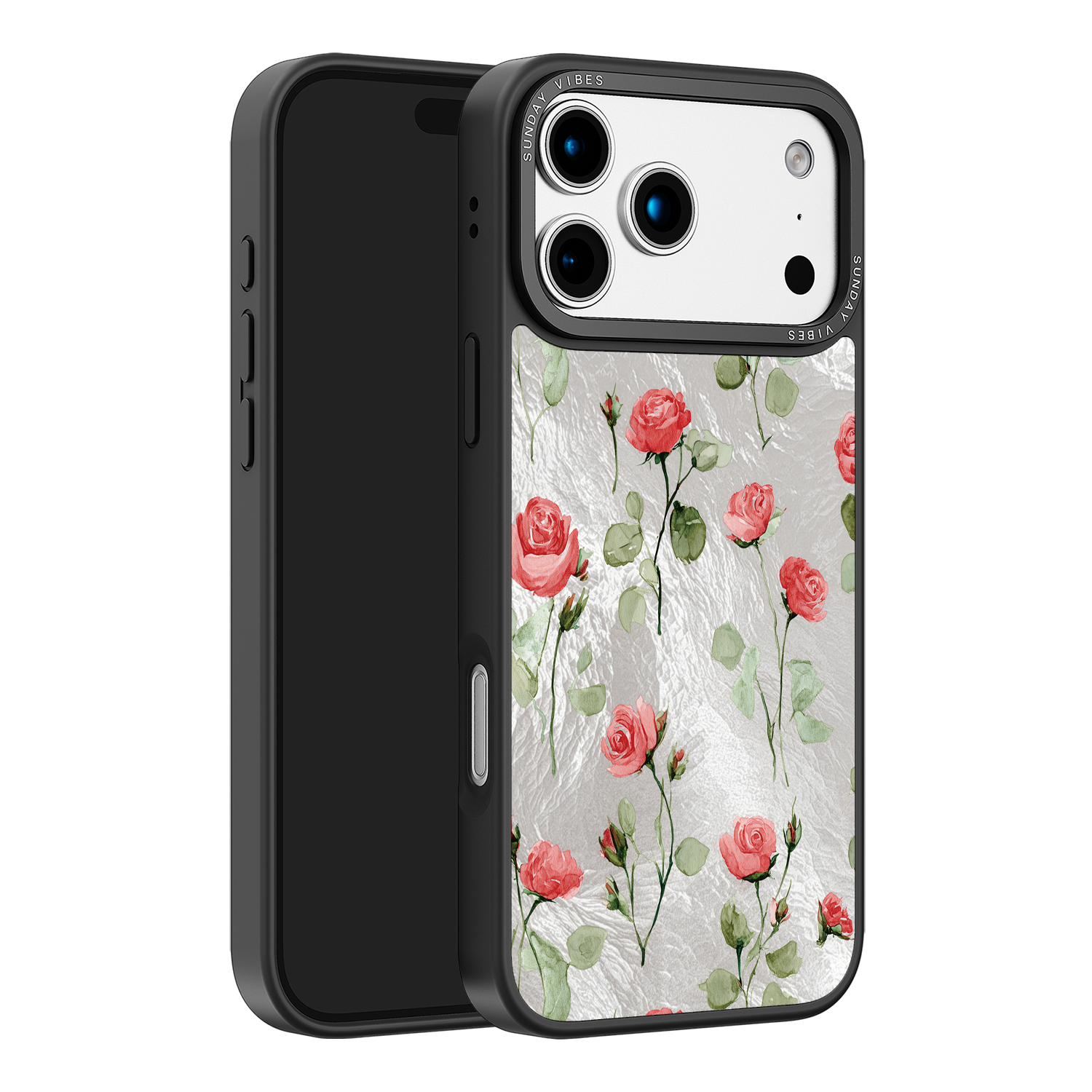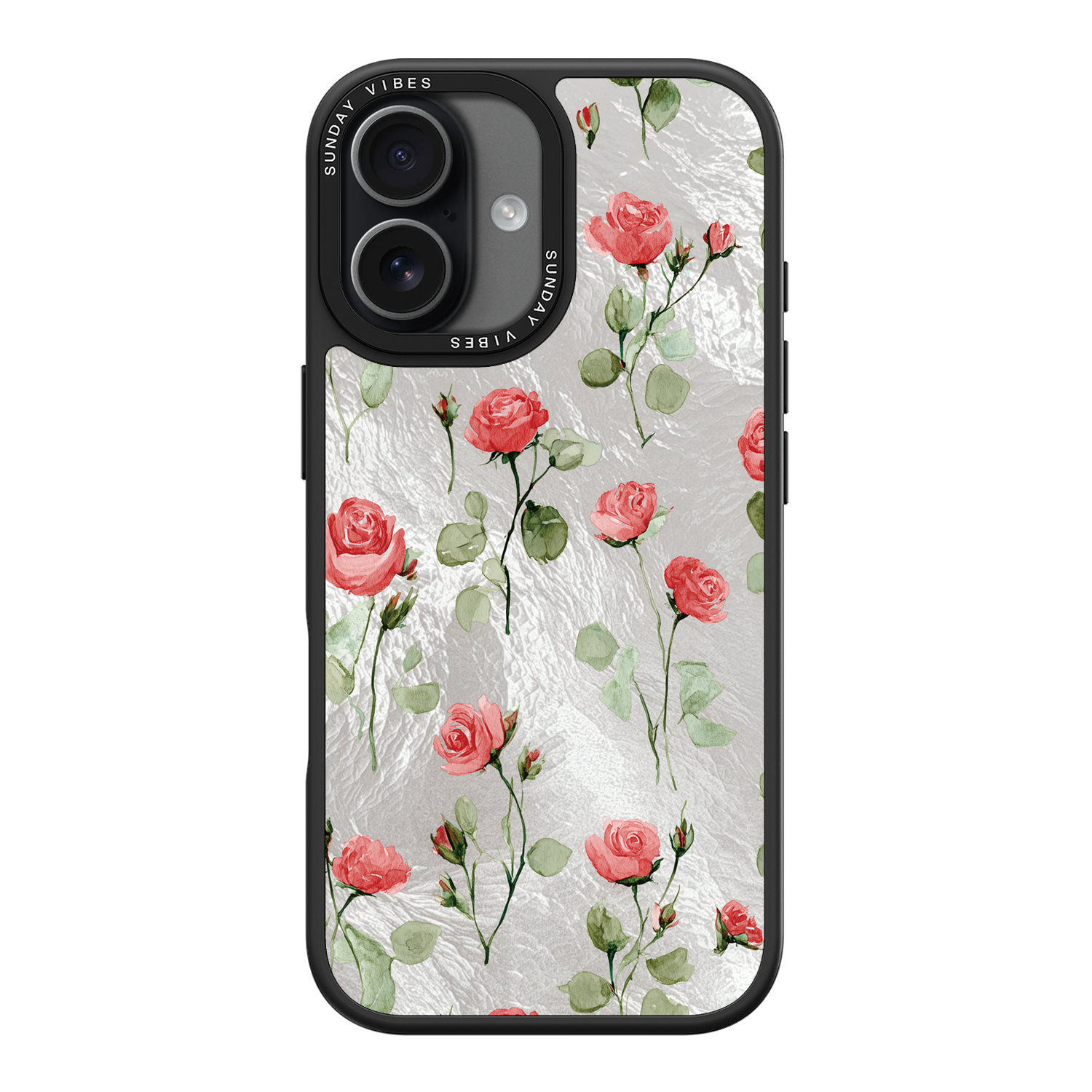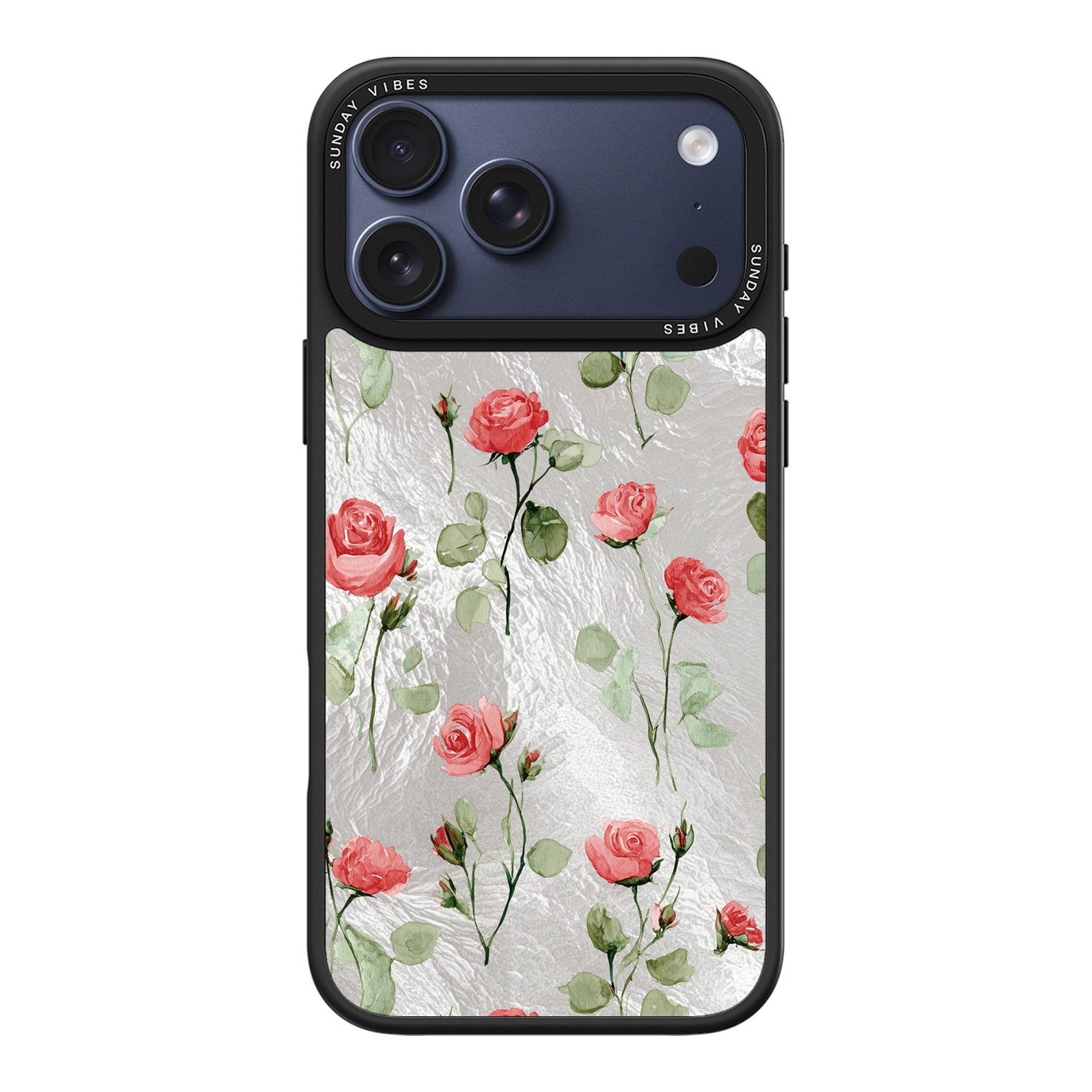 Adorn your device with the enchanting beauty of the Rose Bloom iPhone Case. This delightful design features soft pink roses with delicate green stems, scattered gracefully across a shimmering, light yellow holographic background. This unique blend of classic floral charm and dazzling metallic texture creates a truly romantic and elegant style. The case is built with a premium 3-layer back panel: a base holographic layer with texture, a middle ultra HD gallery print layer, and a velvet smooth anti-scratch and anti-fingerprint top coating.