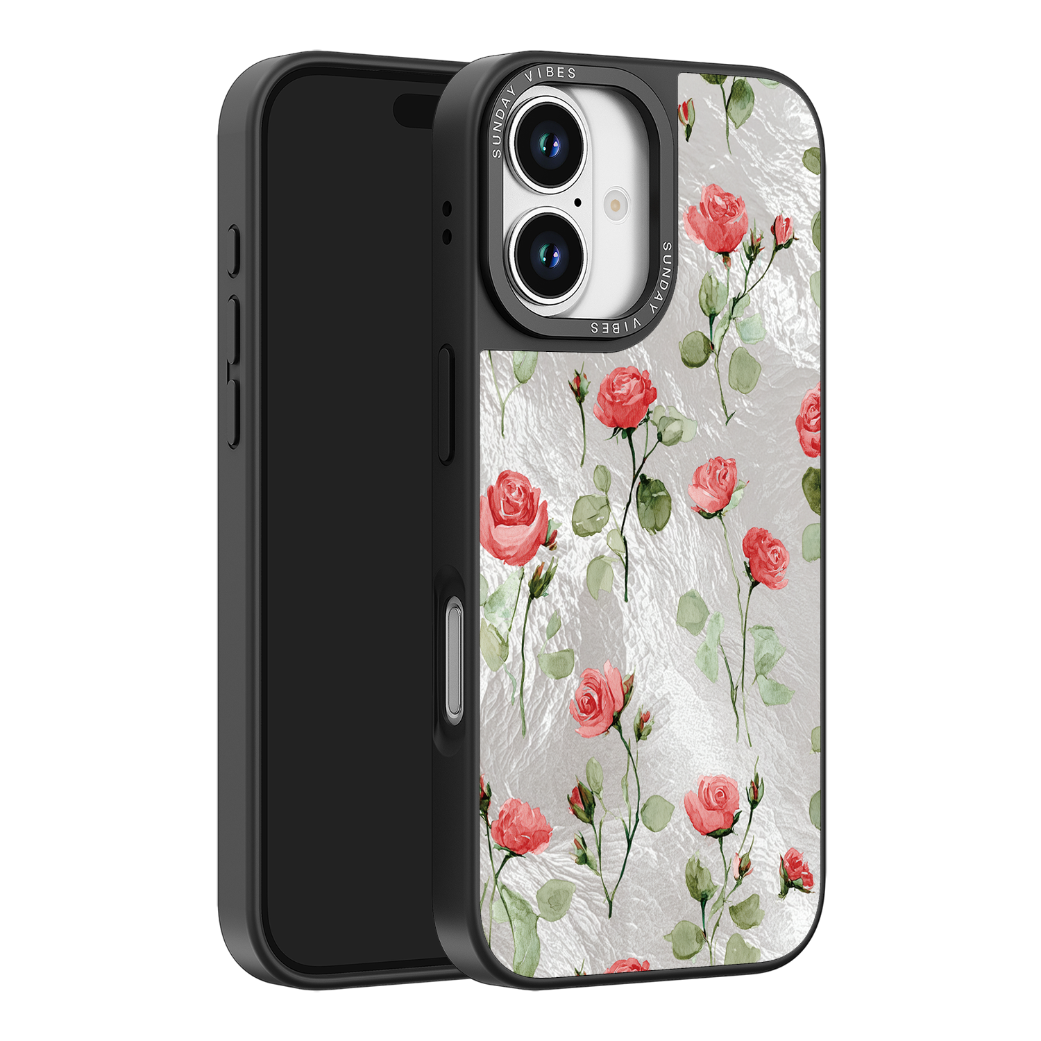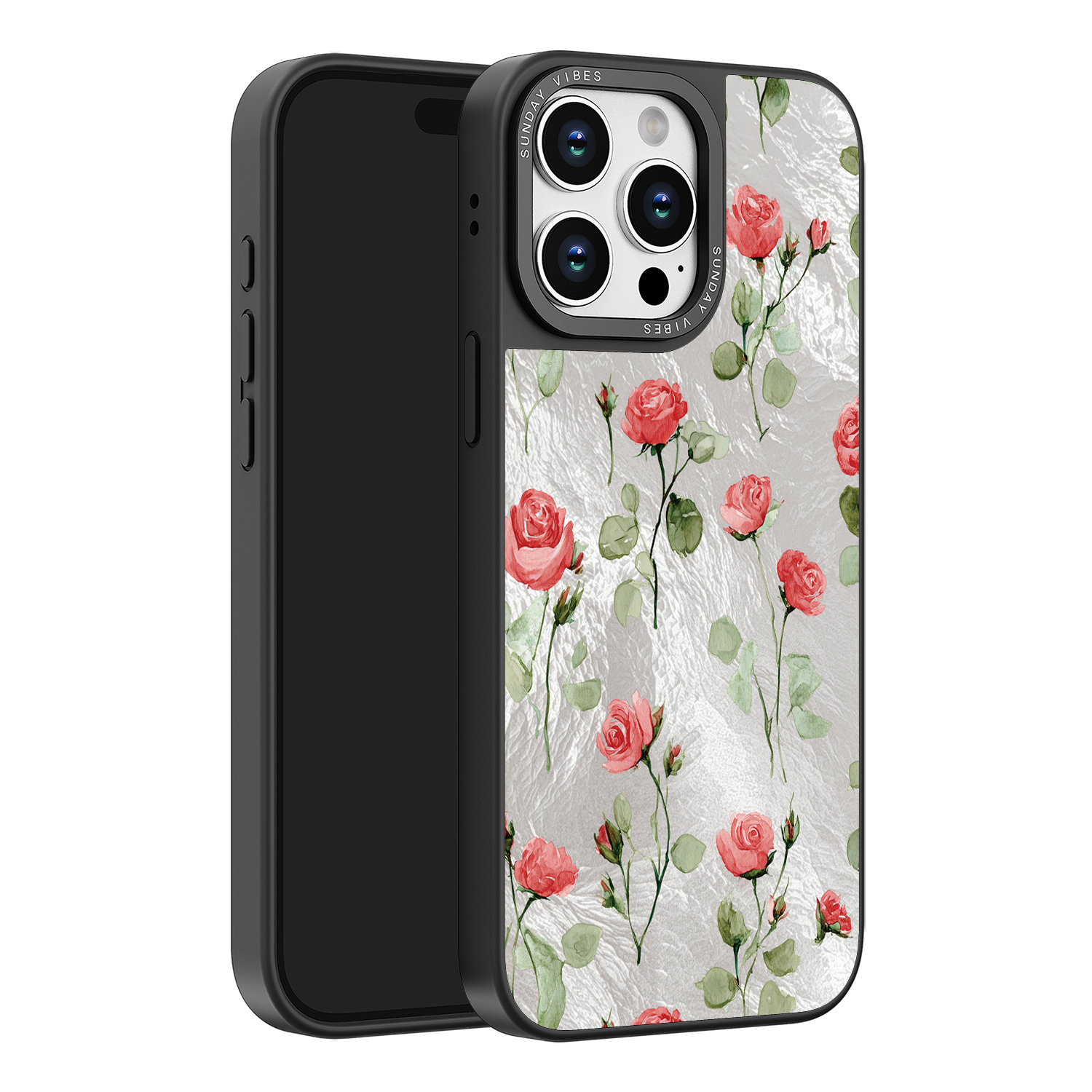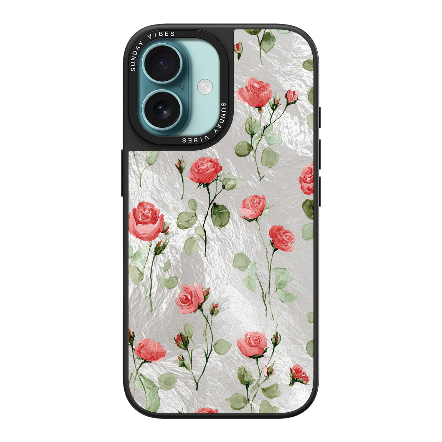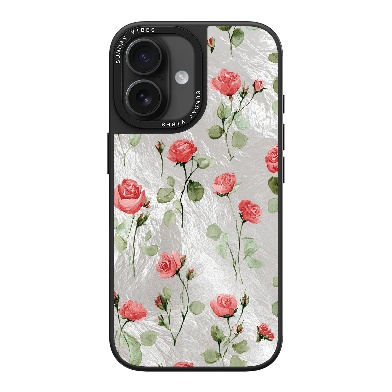 Adorn your device with the enchanting beauty of the Rose Bloom iPhone Case. This delightful design features soft pink roses with delicate green stems, scattered gracefully across a shimmering, light yellow holographic background. This unique blend of classic floral charm and dazzling metallic texture creates a truly romantic and elegant style. The case is built with a premium 3-layer back panel: a base holographic layer with texture, a middle ultra HD gallery print layer, and a velvet smooth anti-scratch and anti-fingerprint top coating.