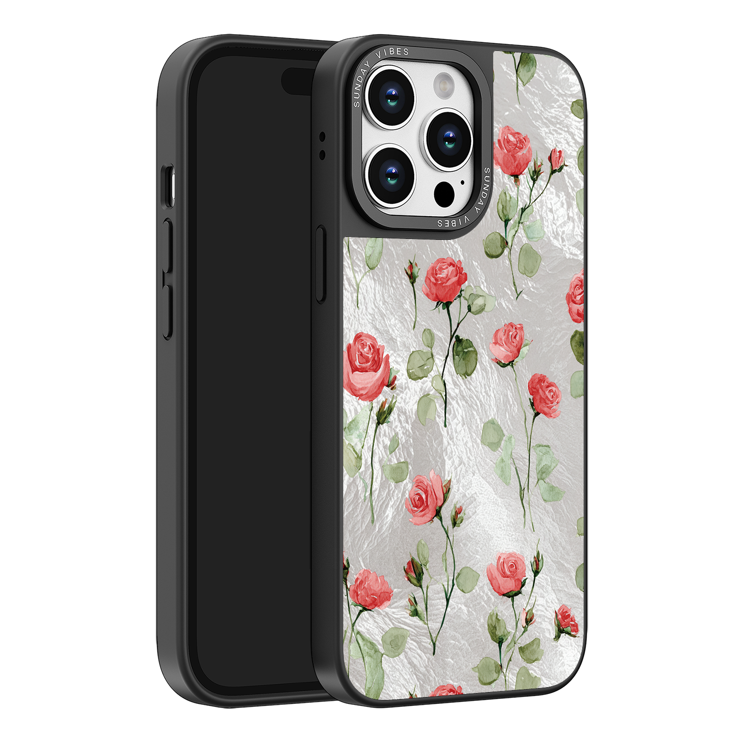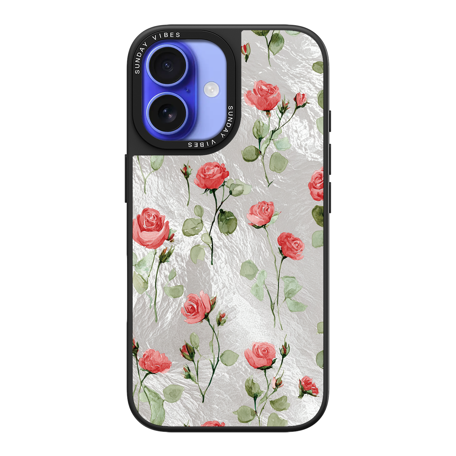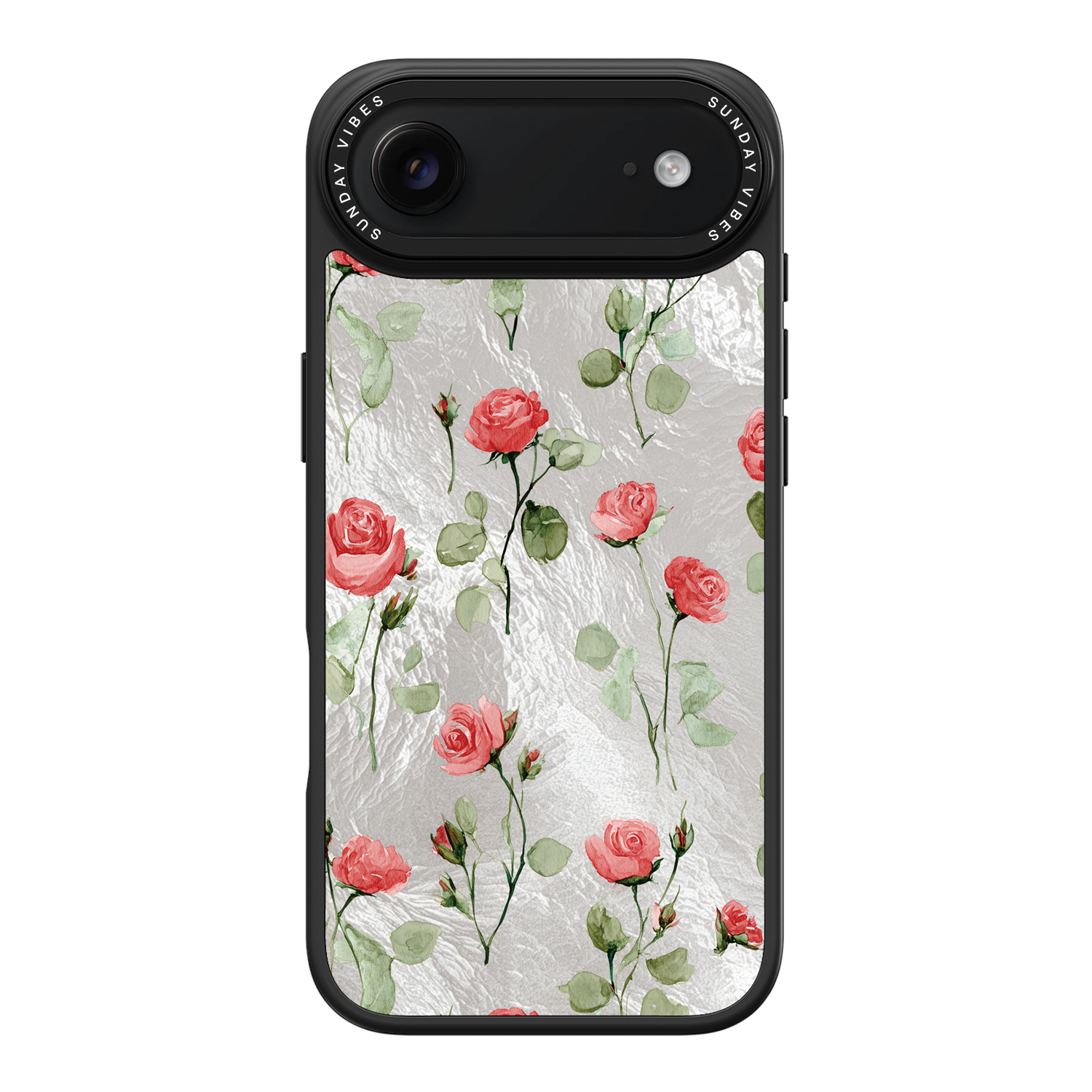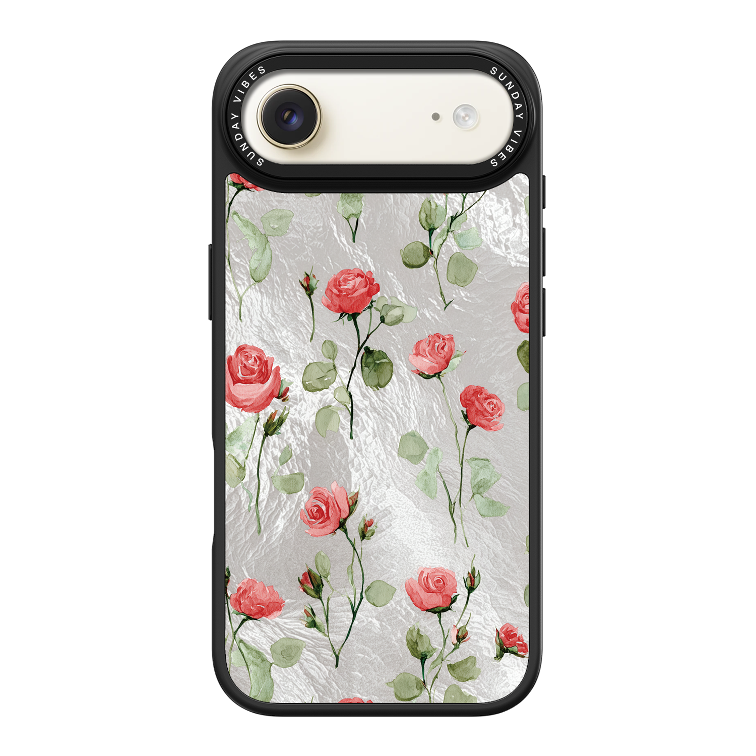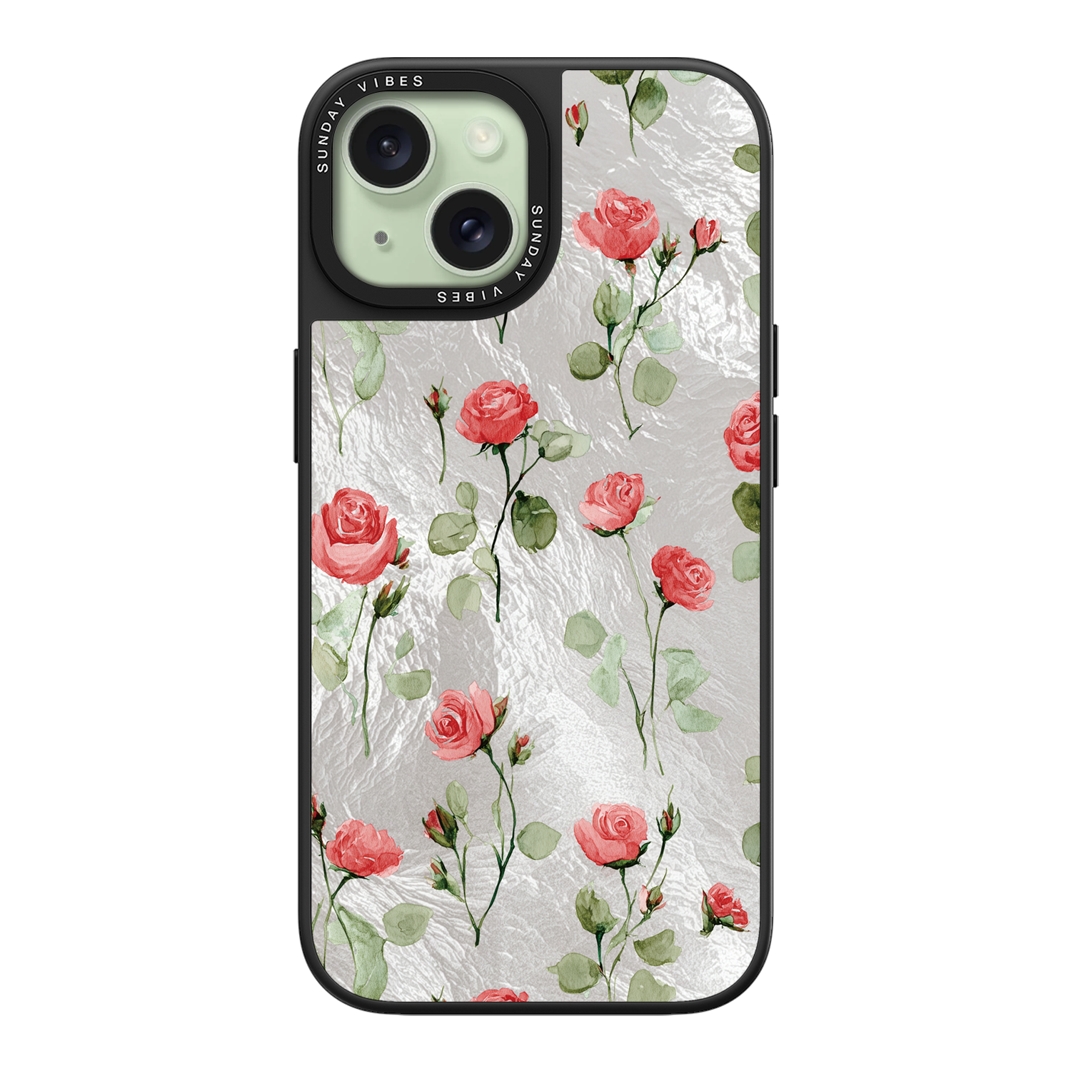 Adorn your device with the enchanting beauty of the Rose Bloom iPhone Case. This delightful design features soft pink roses with delicate green stems, scattered gracefully across a shimmering, light yellow holographic background. This unique blend of classic floral charm and dazzling metallic texture creates a truly romantic and elegant style. The case is built with a premium 3-layer back panel: a base holographic layer with texture, a middle ultra HD gallery print layer, and a velvet smooth anti-scratch and anti-fingerprint top coating.