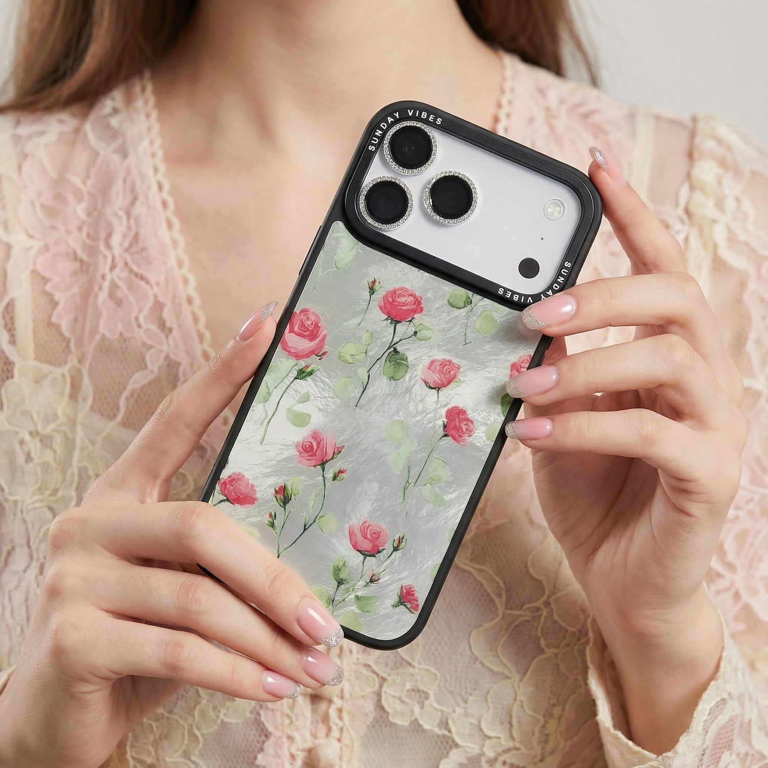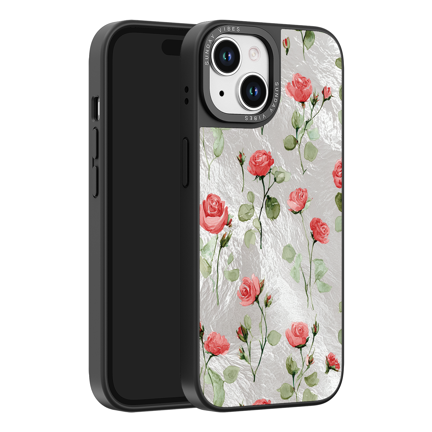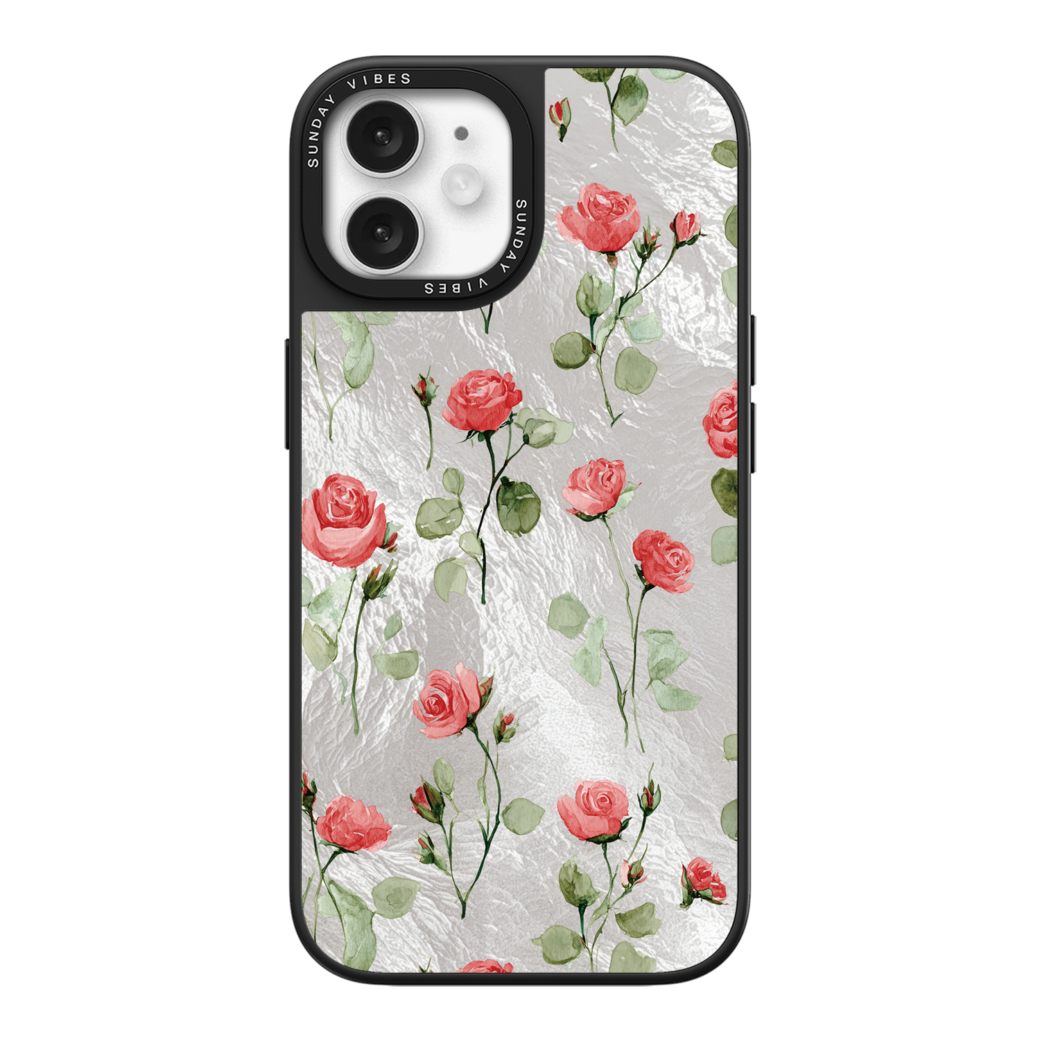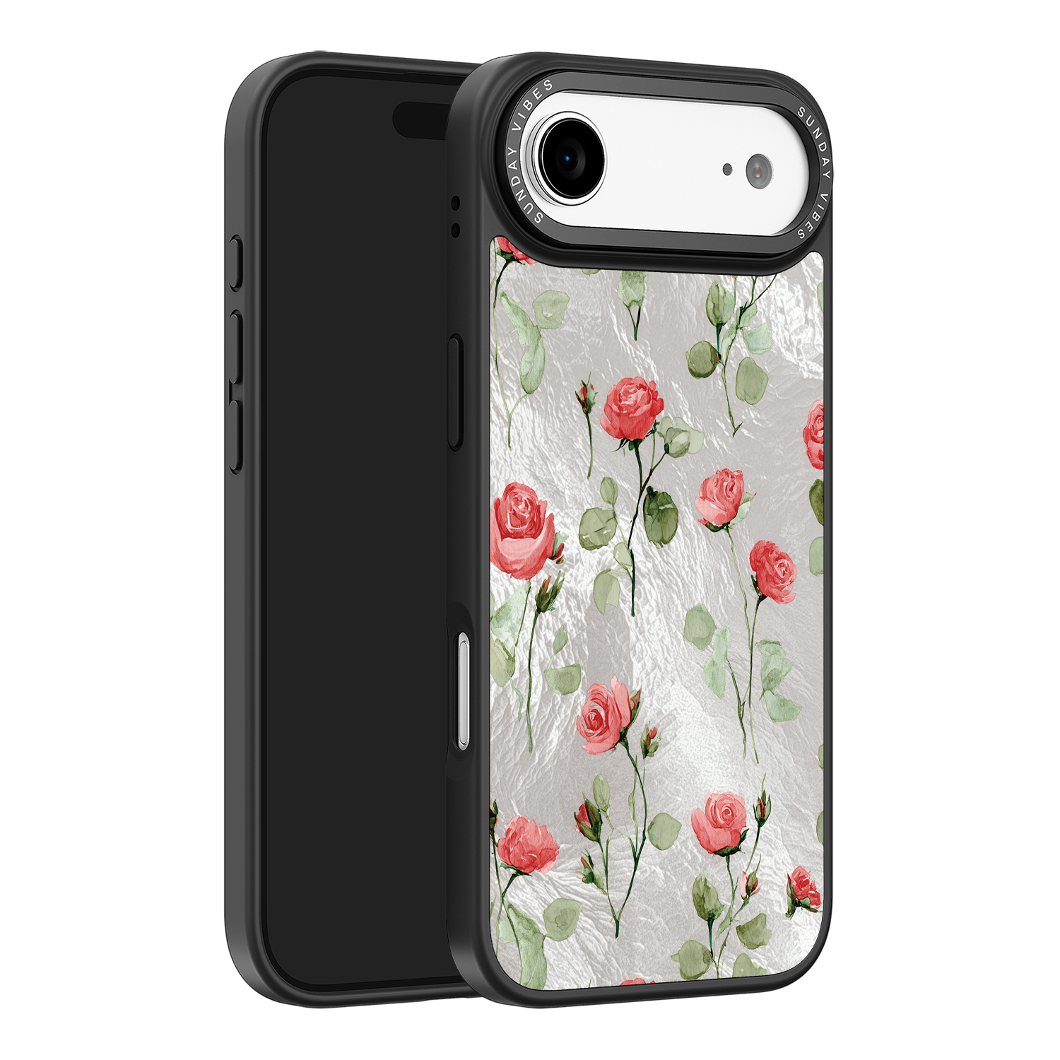 Adorn your device with the enchanting beauty of the Rose Bloom iPhone Case. This delightful design features soft pink roses with delicate green stems, scattered gracefully across a shimmering, light yellow holographic background. This unique blend of classic floral charm and dazzling metallic texture creates a truly romantic and elegant style. The case is built with a premium 3-layer back panel: a base holographic layer with texture, a middle ultra HD gallery print layer, and a velvet smooth anti-scratch and anti-fingerprint top coating.