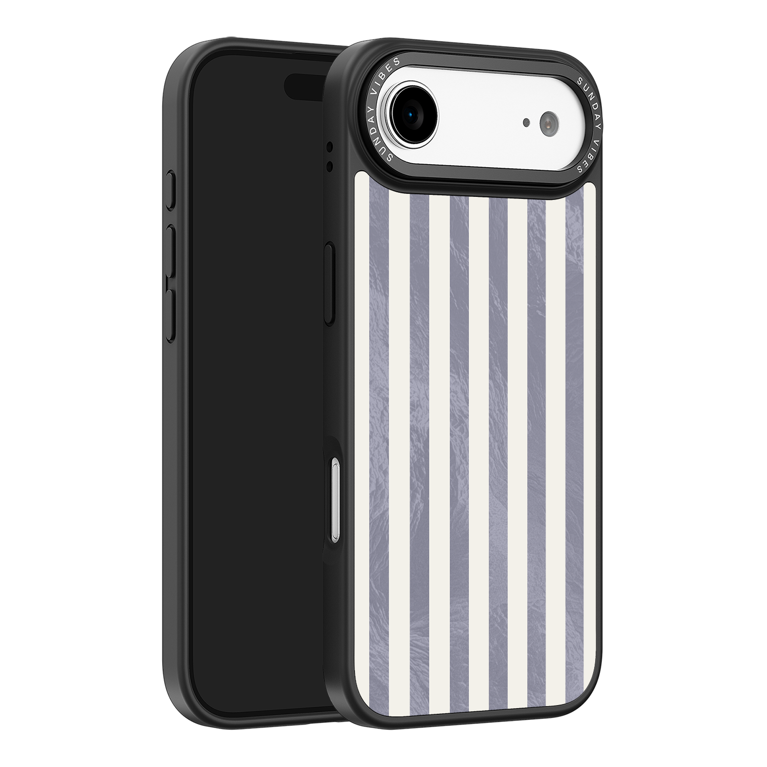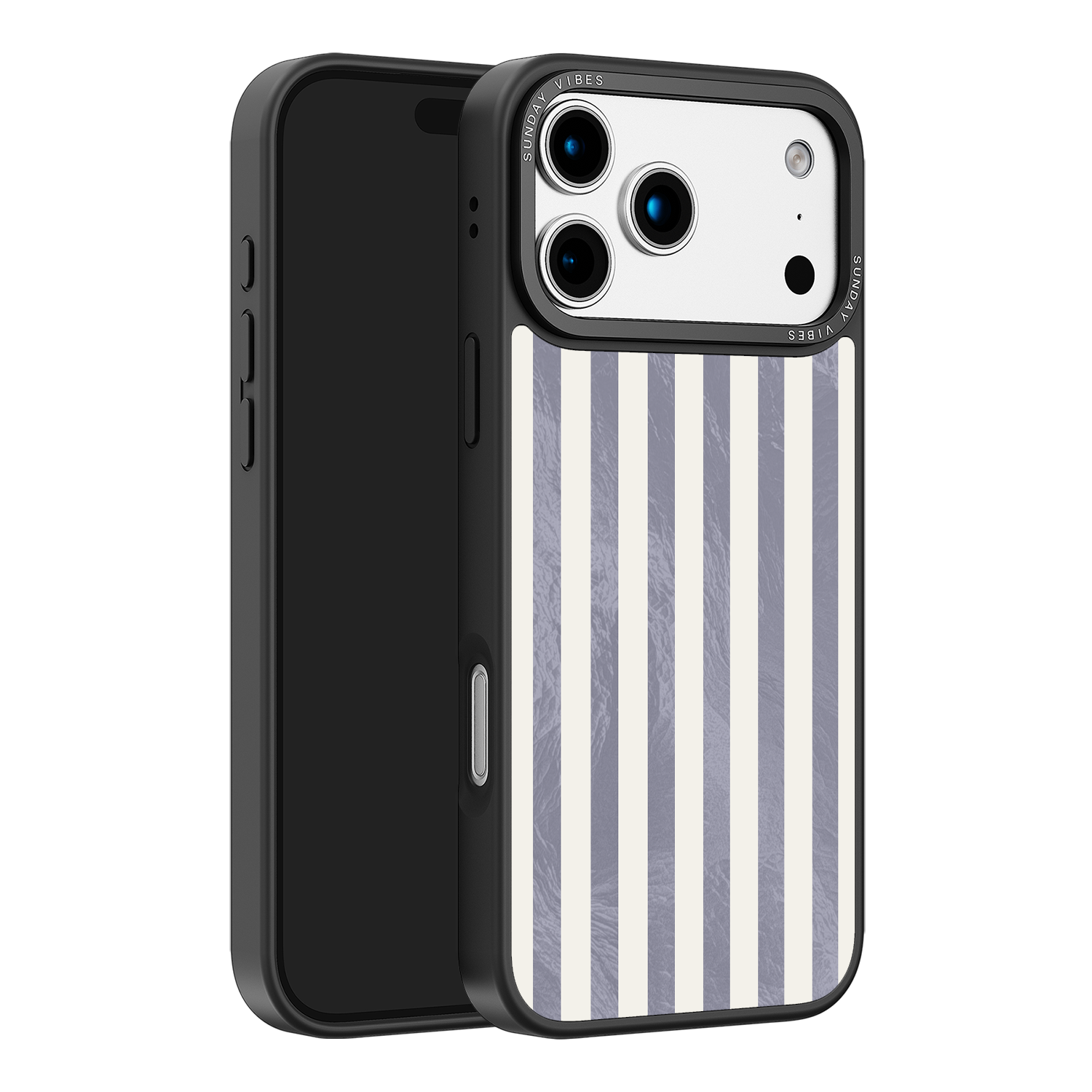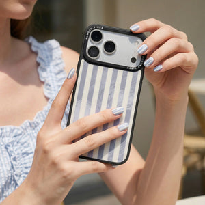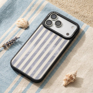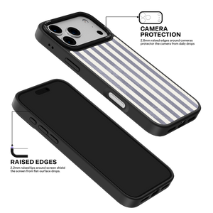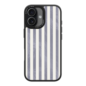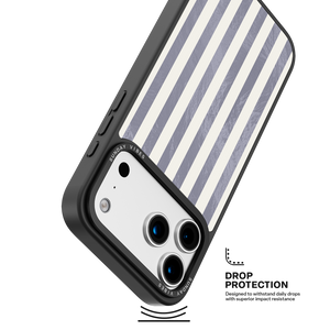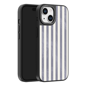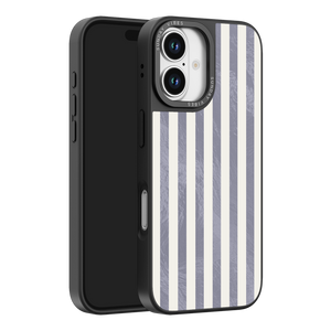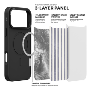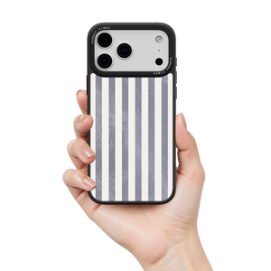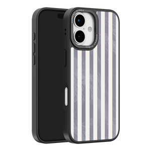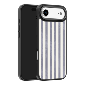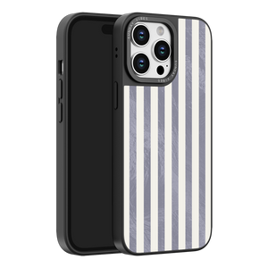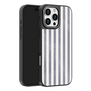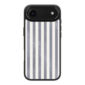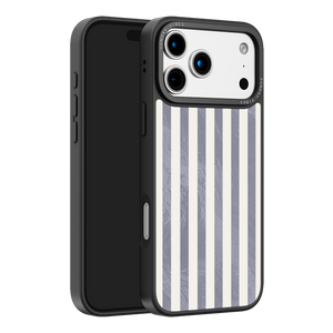 Elevate your look with the moody, modern glamour of the Silver Coast iPhone Case. The pattern features alternating stripes where the dark grey sections catch the light with an intense holographic shimmer, contrasting sharply with the matte cream bands. This gorgeous blend of classic geometry and shimmering texture ensures a uniquely stylish statement piece.